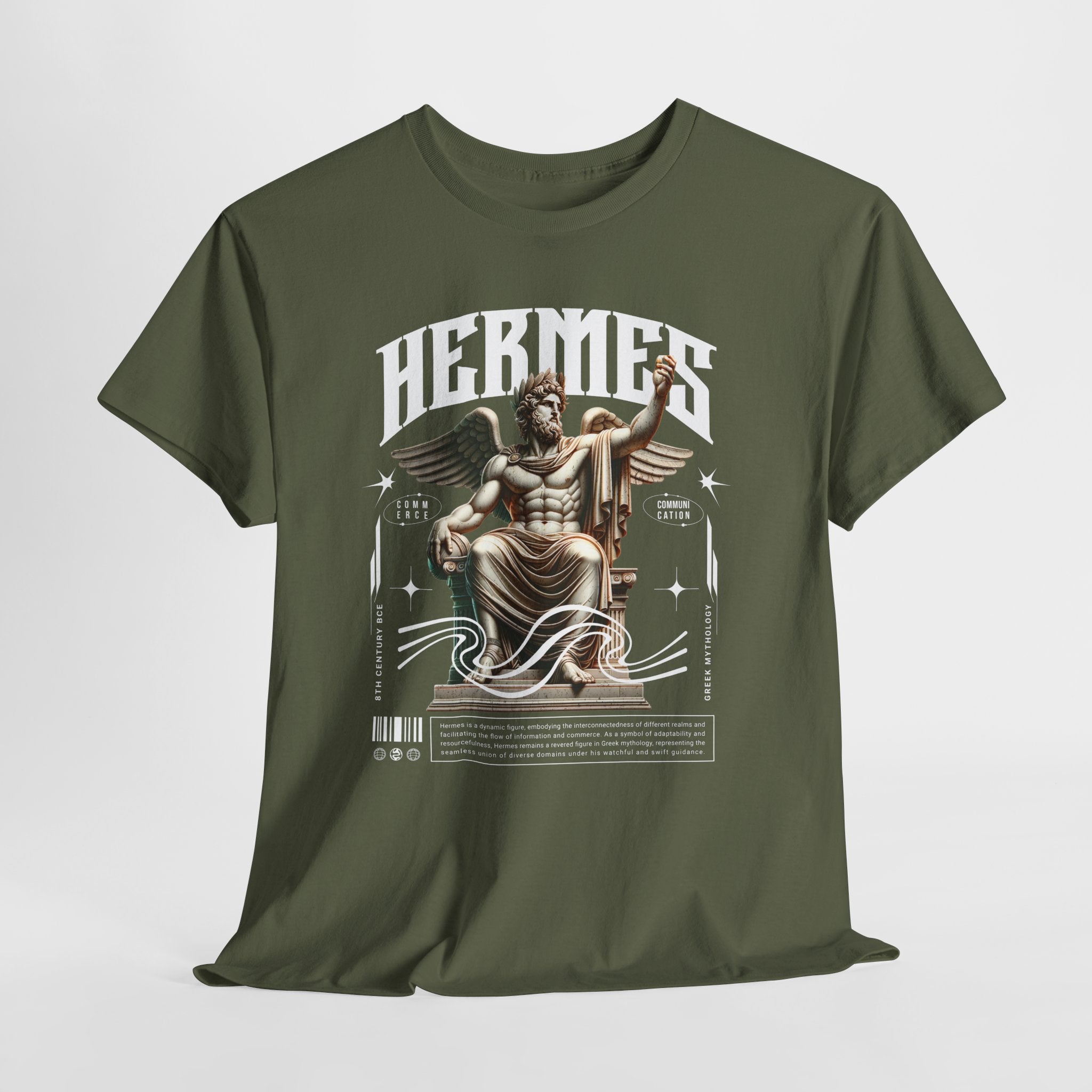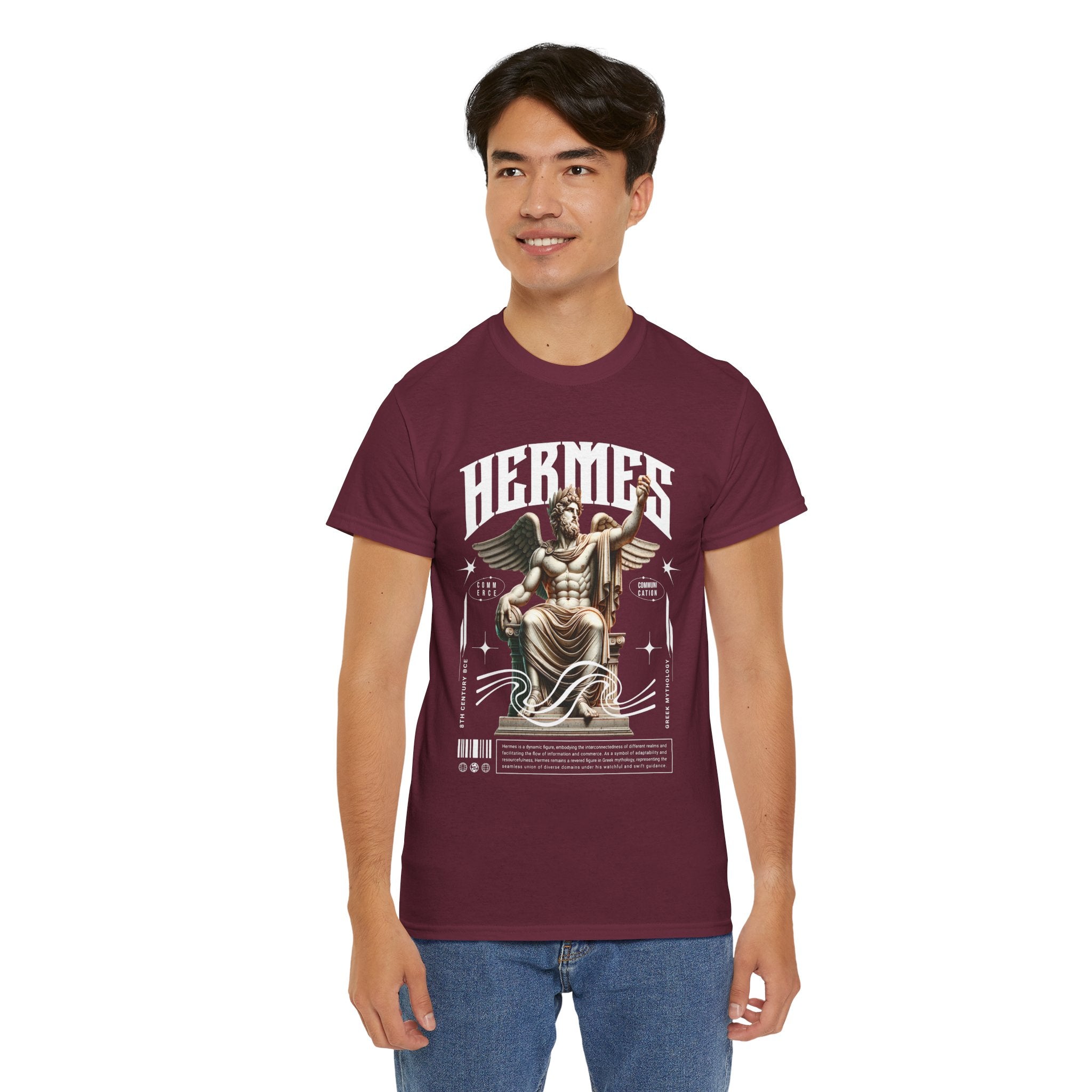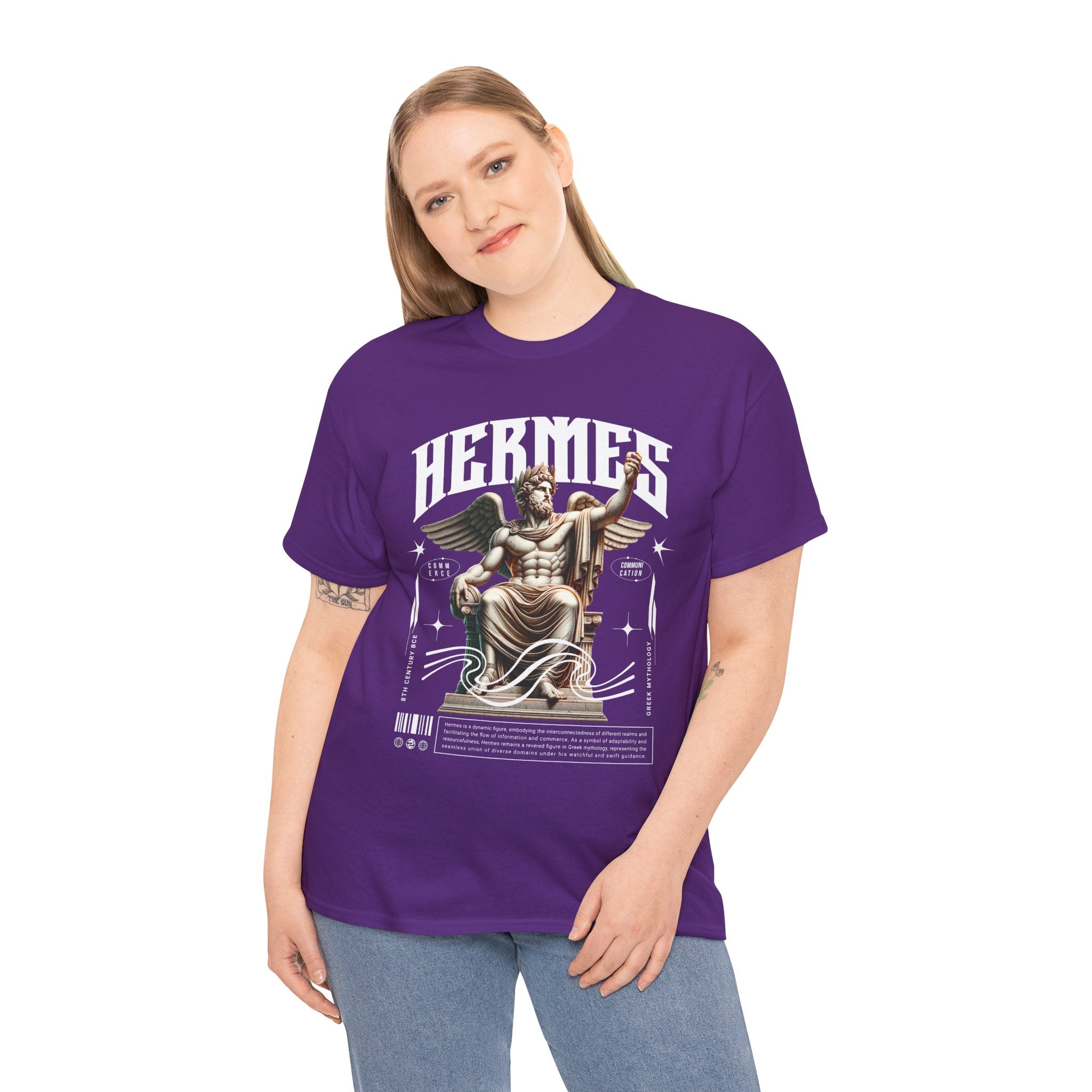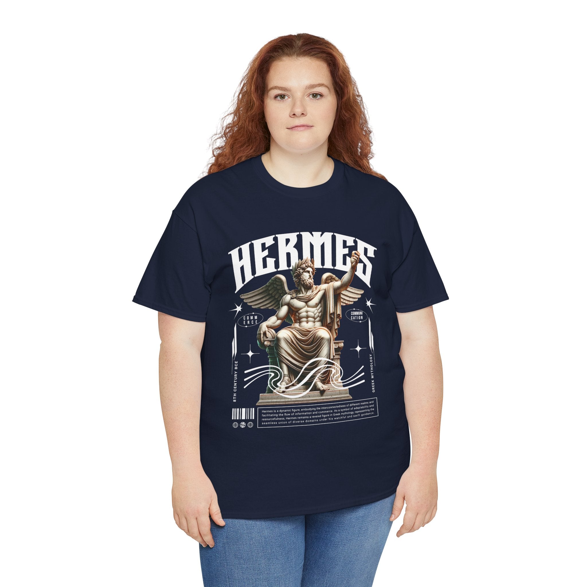 Step into mythology with the Hermes Greek Mythology Unisex Heavy Cotton Tee. This striking design showcases Hermes, the Greek god of speed, communication, and travel, bringing an ancient symbol of wisdom and energy into modern streetwear.