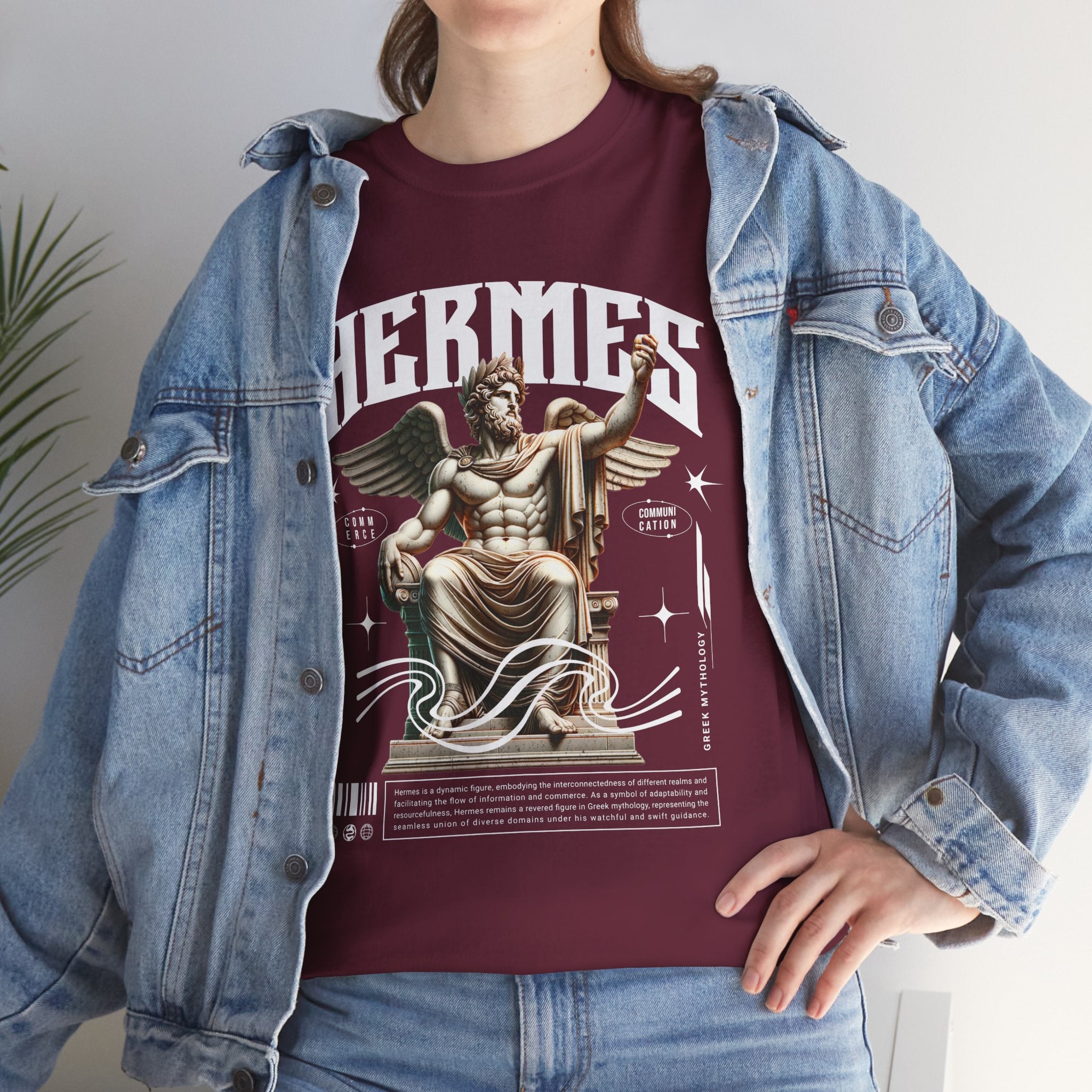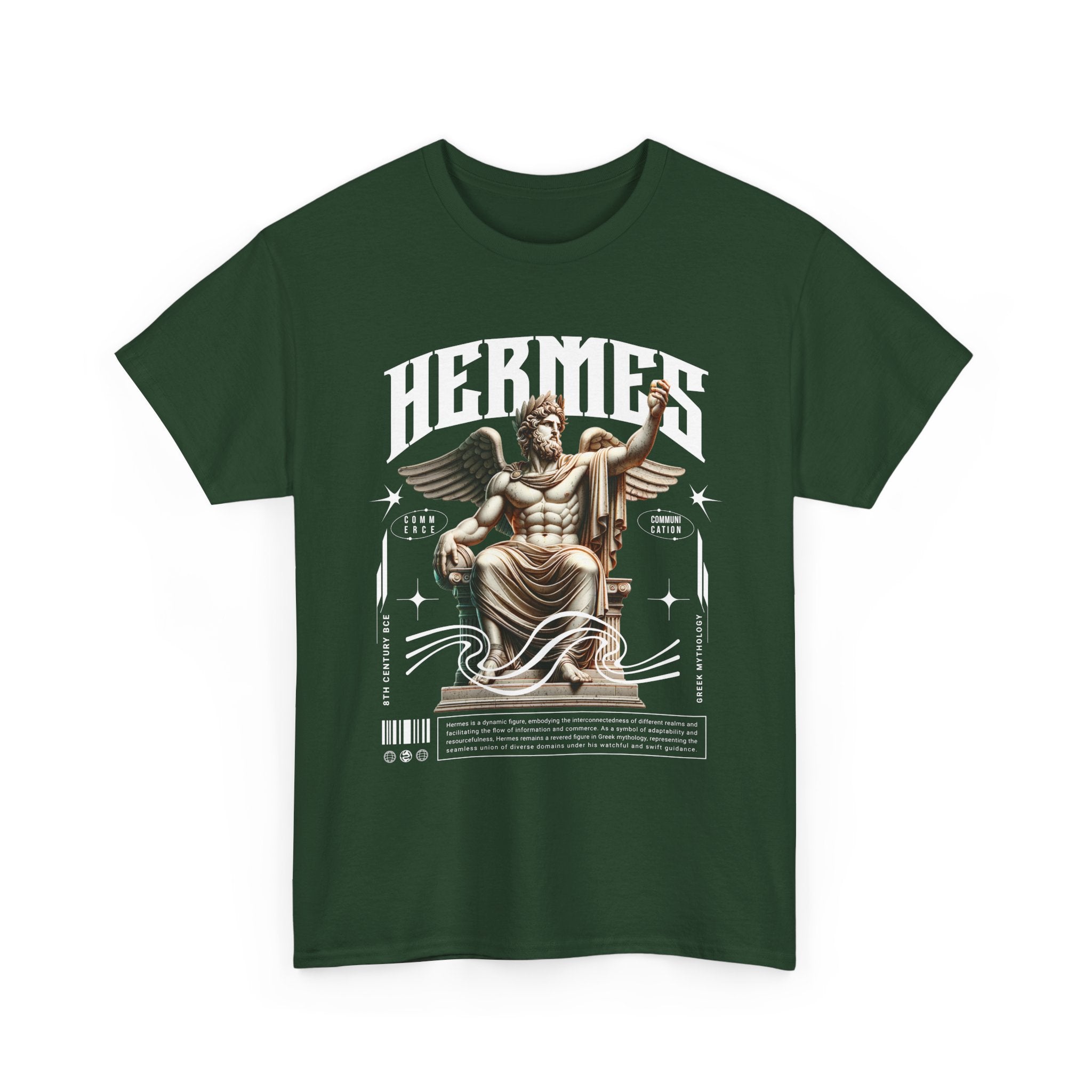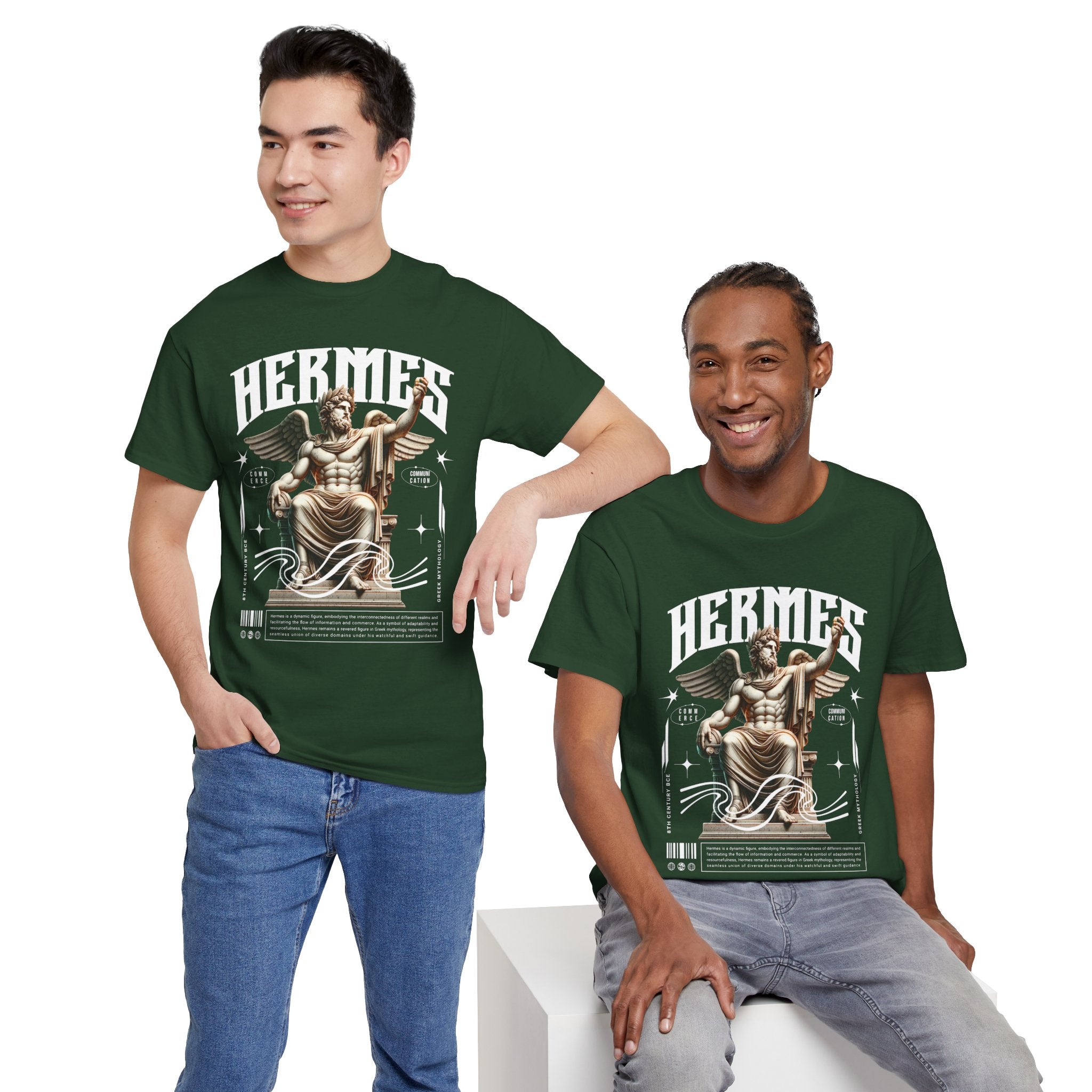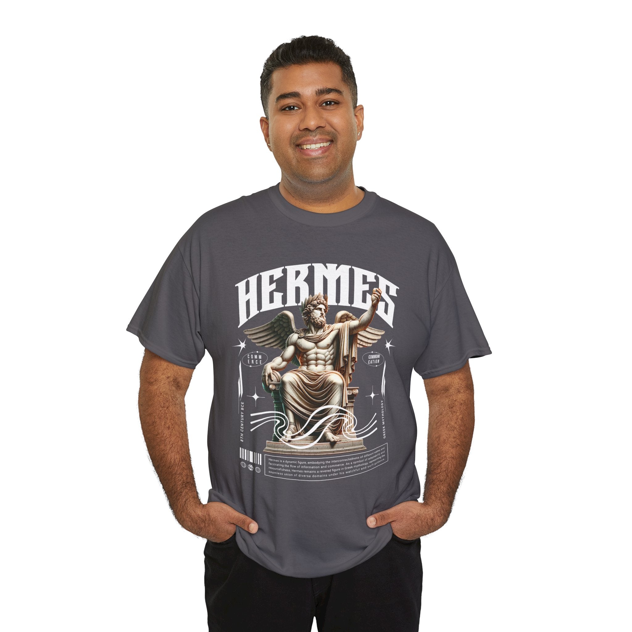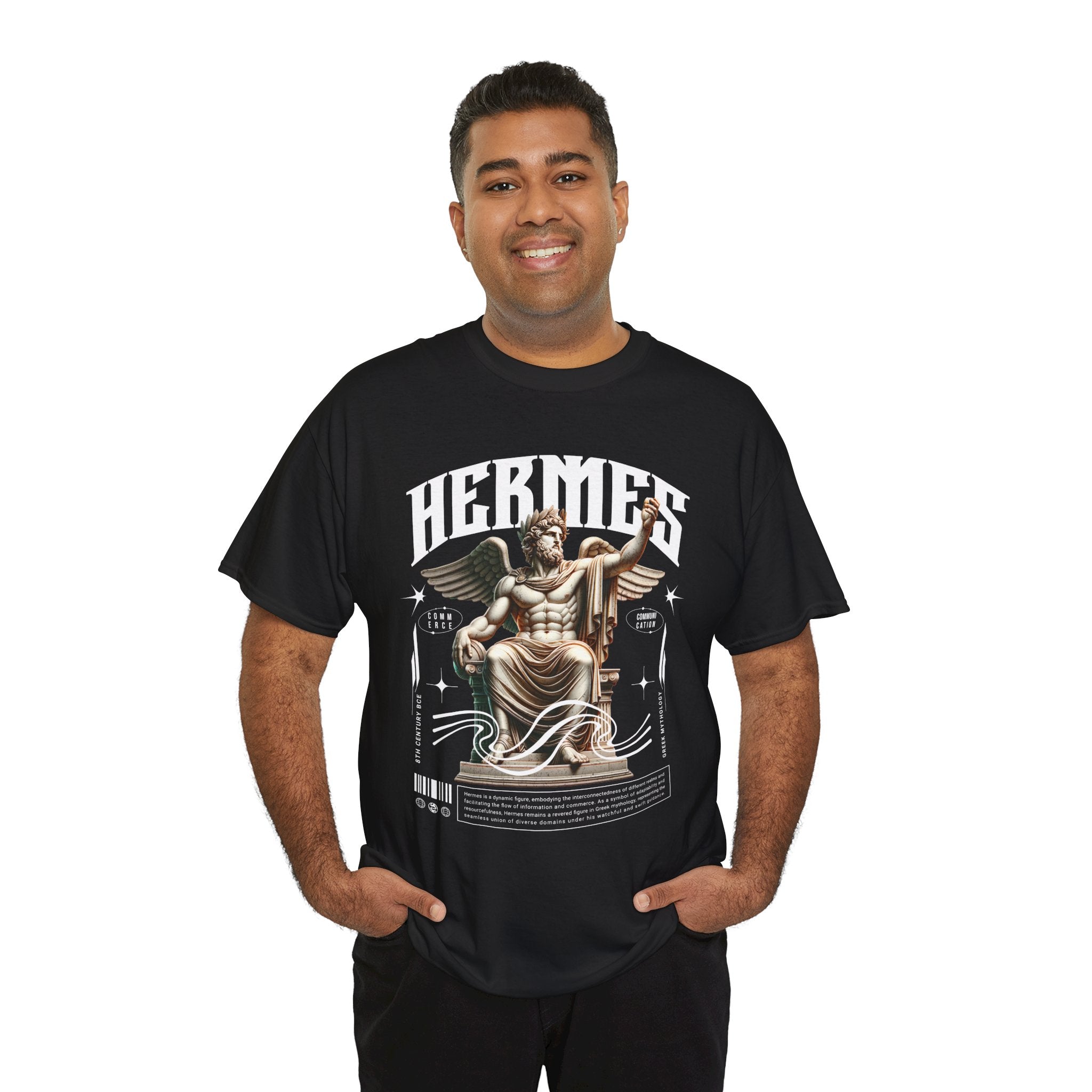Step into mythology with the Hermes Greek Mythology Unisex Heavy Cotton Tee. This striking design showcases Hermes, the Greek god of speed, communication, and travel, bringing an ancient symbol of wisdom and energy into modern streetwear.