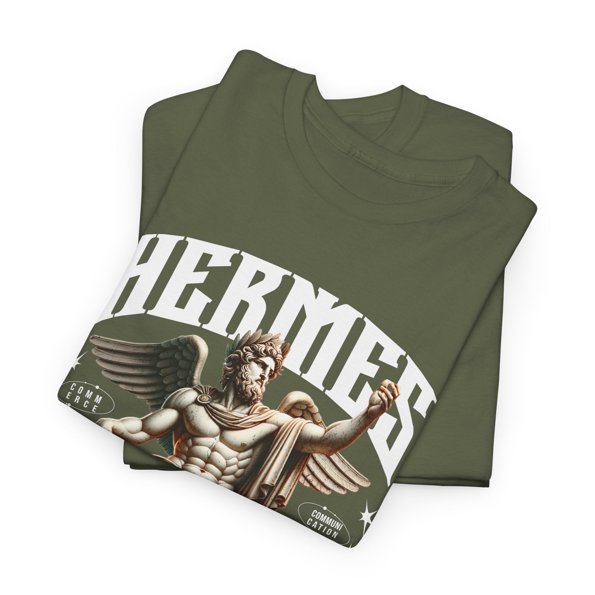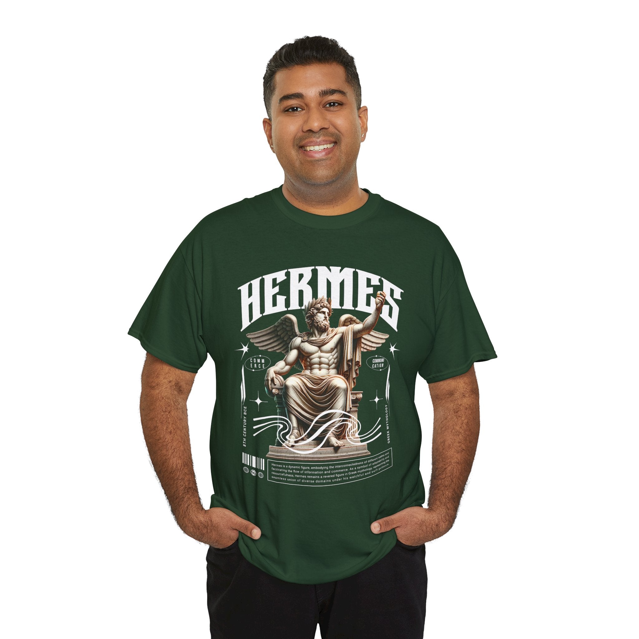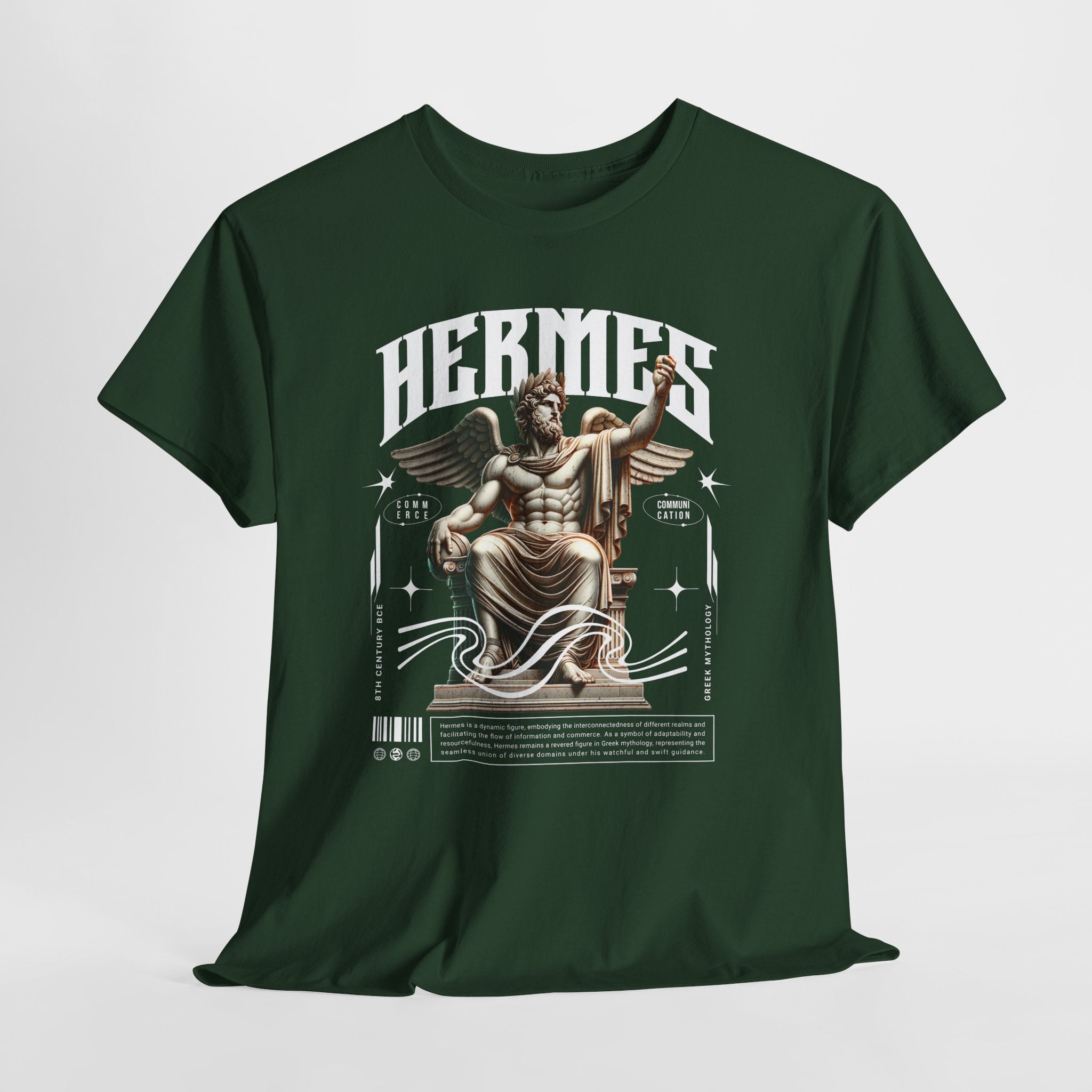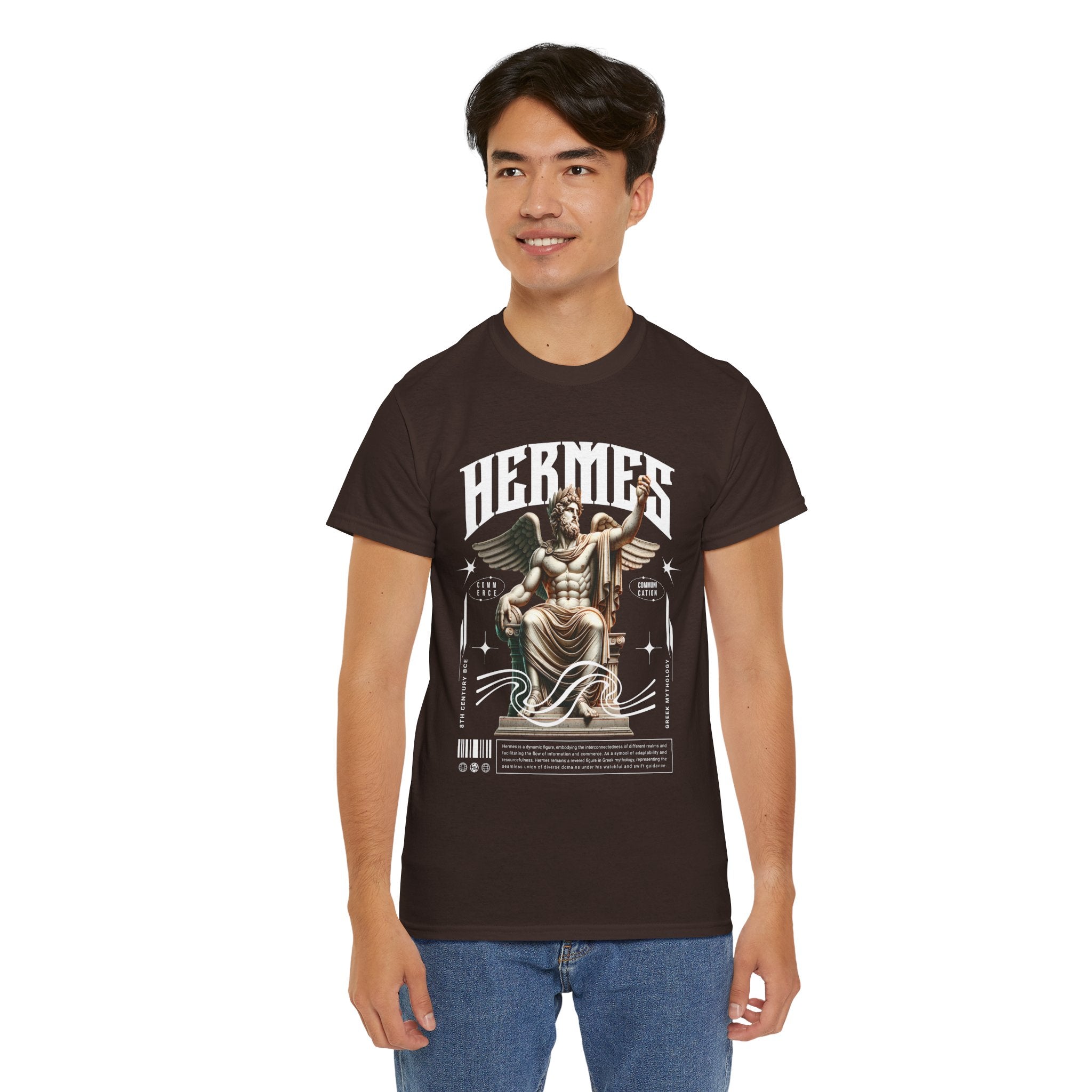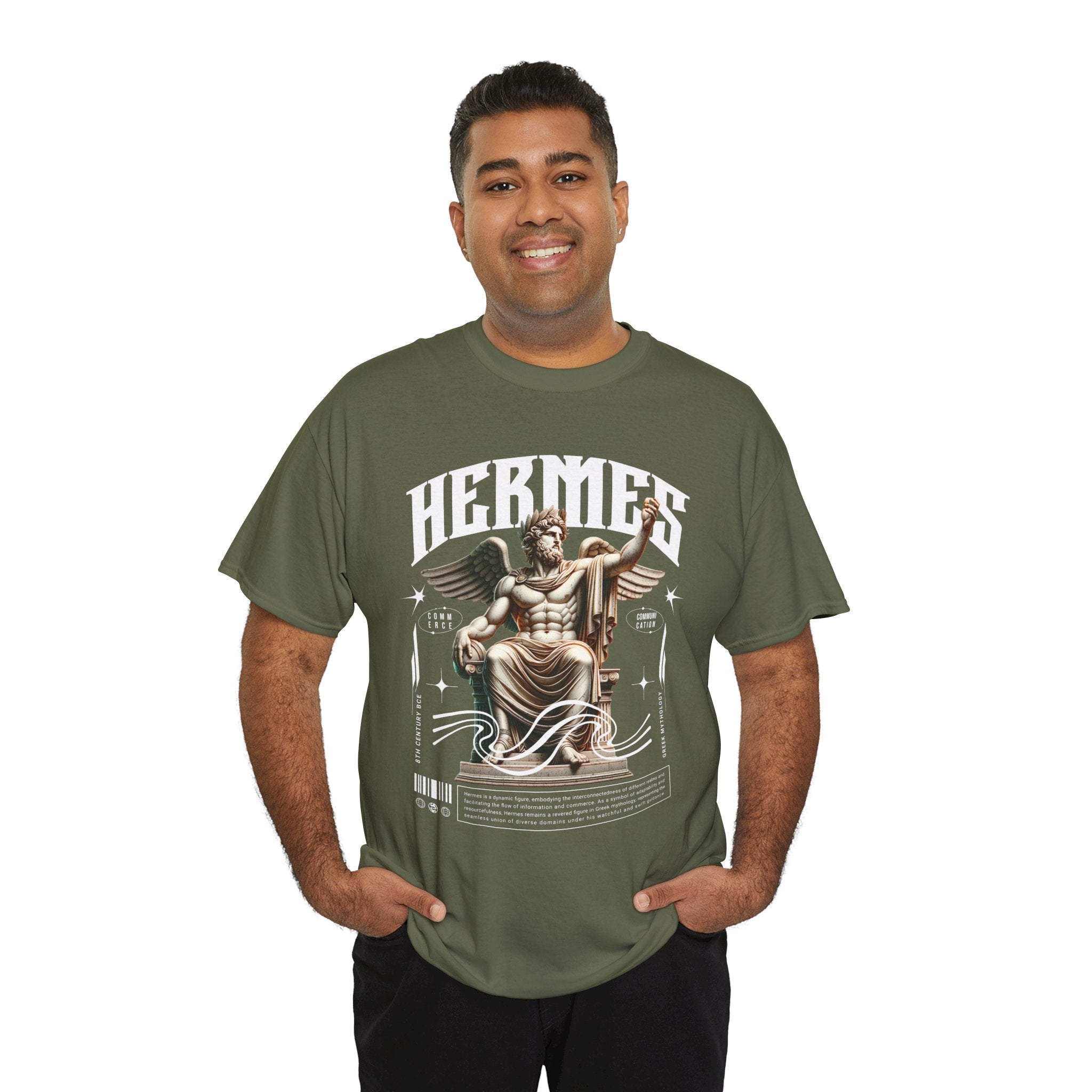 Step into mythology with the Hermes Greek Mythology Unisex Heavy Cotton Tee. This striking design showcases Hermes, the Greek god of speed, communication, and travel, bringing an ancient symbol of wisdom and energy into modern streetwear.