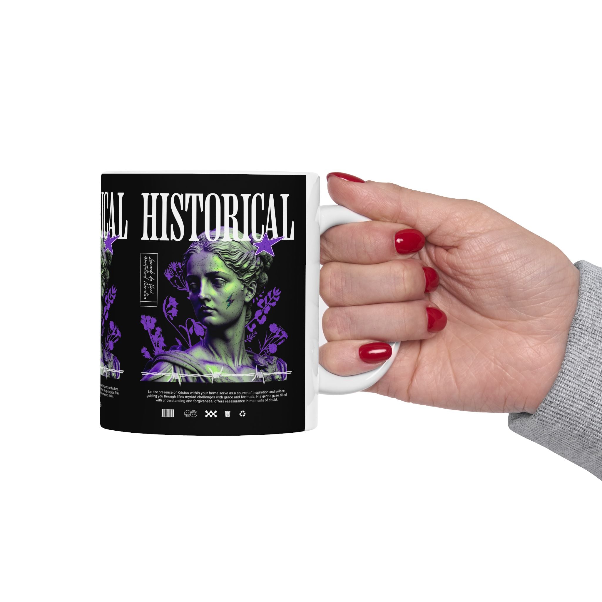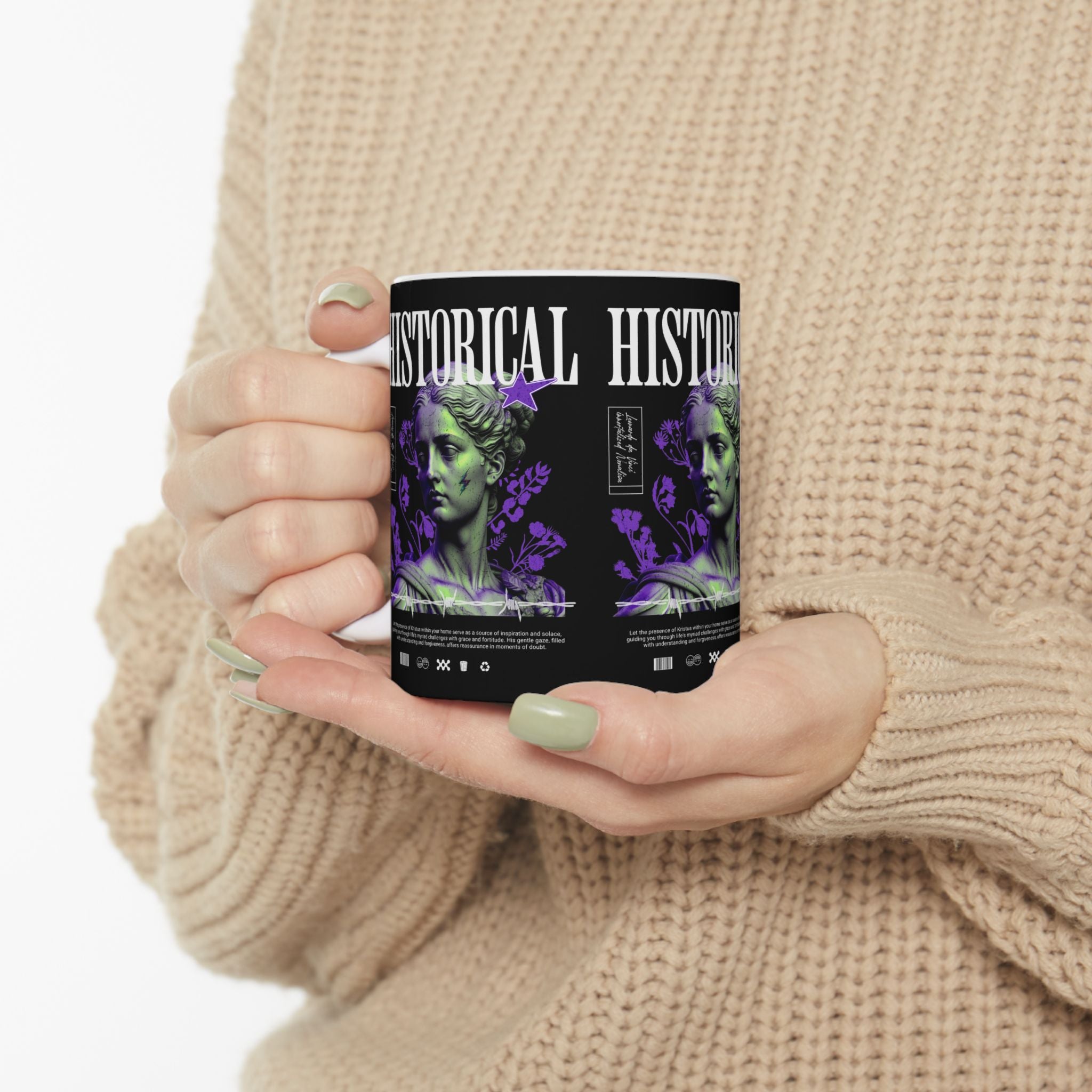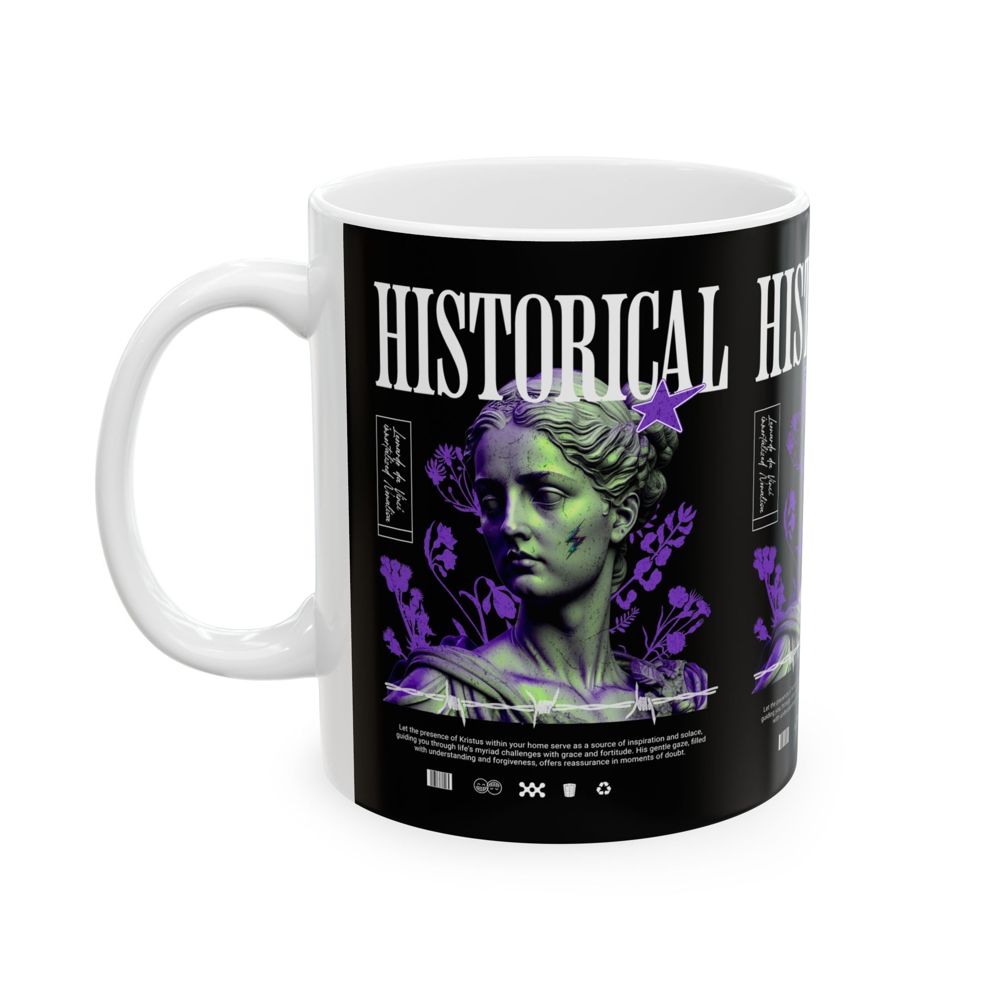 Sip history with every cup. The Historical Ceramic Mug blends the power of Greek and Roman classical art with modern design, making your coffee or tea ritual a cultural experience. Featuring a striking graphic of a timeless statue reimagined in bold colors, this mug transforms ordinary moments into daily inspiration.