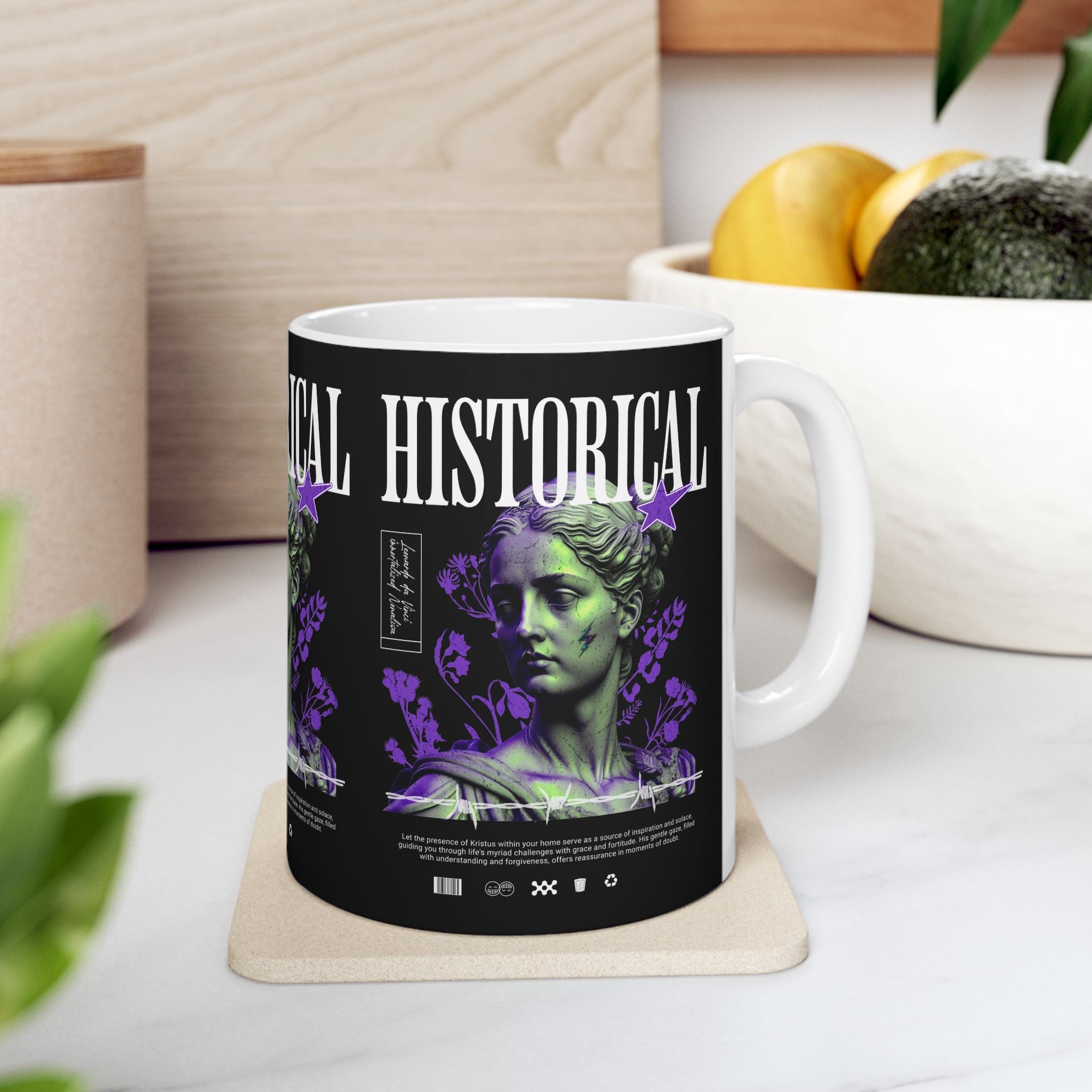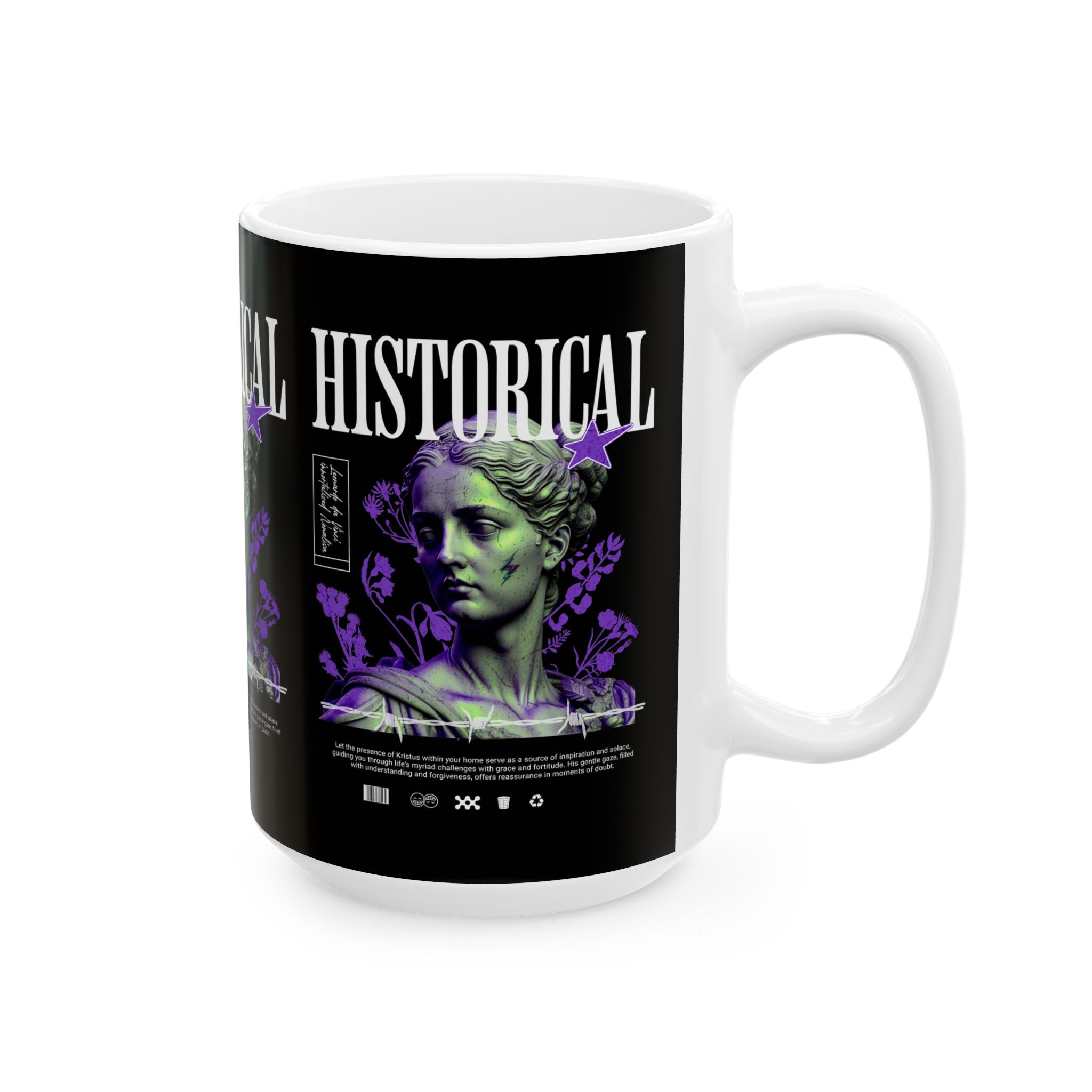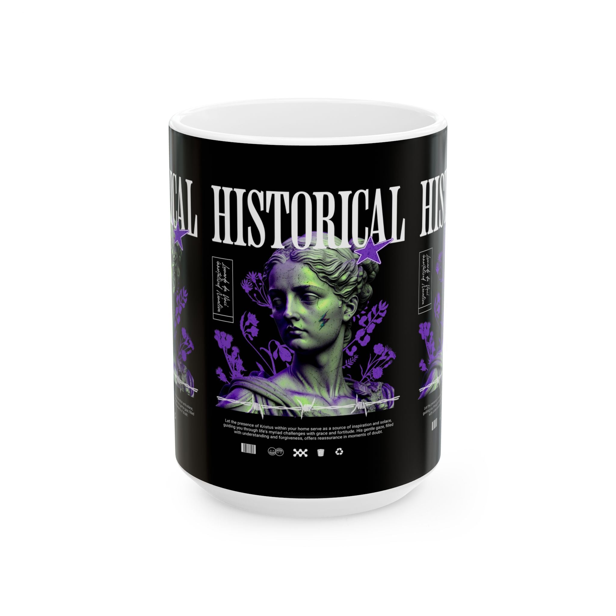 Sip history with every cup. The Historical Ceramic Mug blends the power of Greek and Roman classical art with modern design, making your coffee or tea ritual a cultural experience. Featuring a striking graphic of a timeless statue reimagined in bold colors, this mug transforms ordinary moments into daily inspiration.