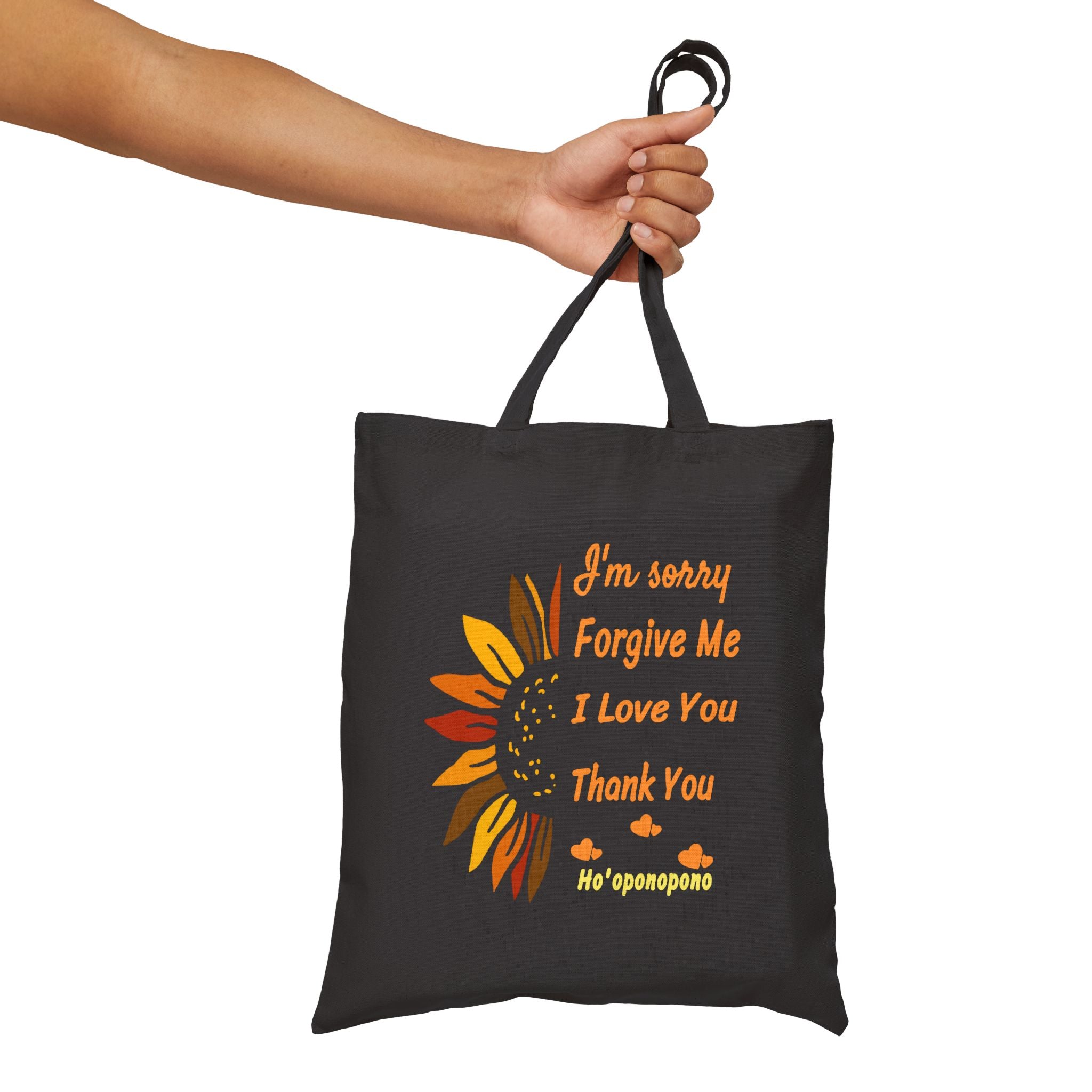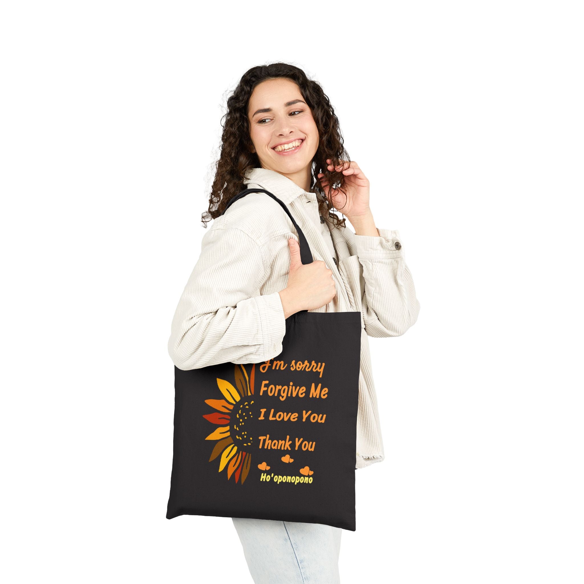 The Ho’oponopono Sunflower Cotton Canvas Tote Bag is more than just a bag — it’s a daily reminder of love, forgiveness, and gratitude. Featuring a vibrant sunflower design with the powerful Hawaiian prayer “I’m sorry, Forgive me, I love you, Thank you”, this tote embodies healing energy and positivity.