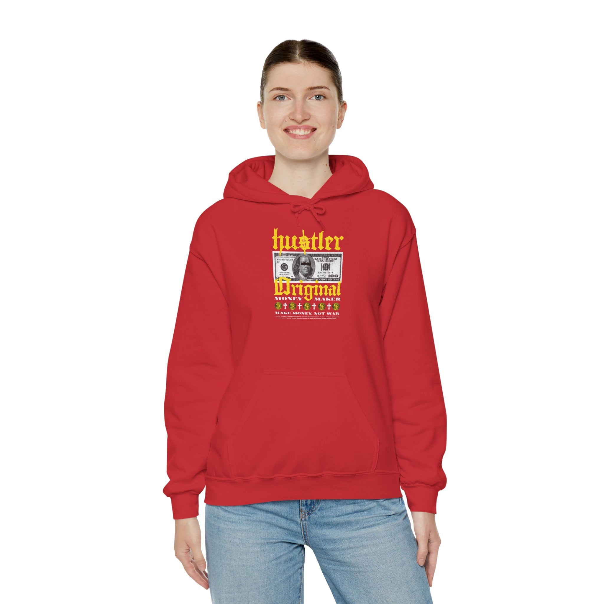 The Hustler Original Money Maker Unisex Heavy Blend™ Hooded Sweatshirt is a streetwear essential for the ambitious and bold. With its striking gothic yellow lettering and $100 bill graphic, this hoodie embodies the grind, the hustle, and the mindset of a true entrepreneur.