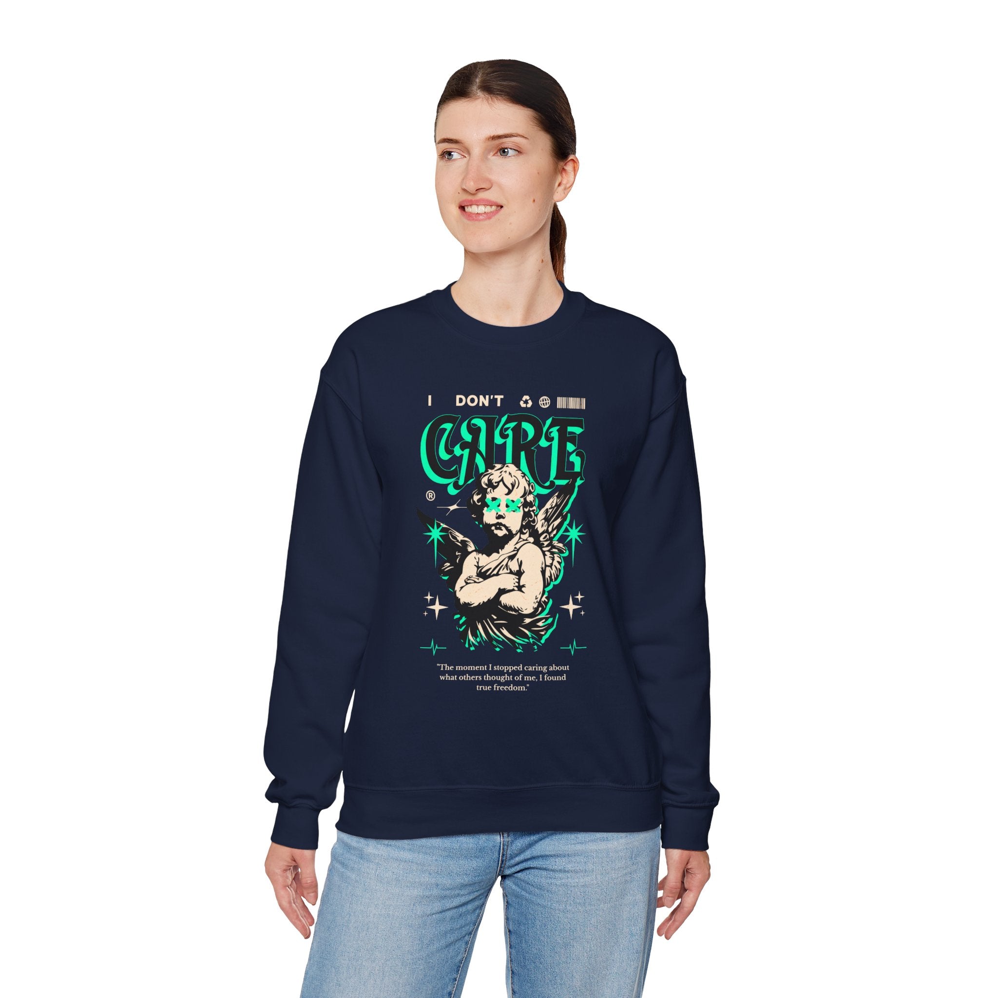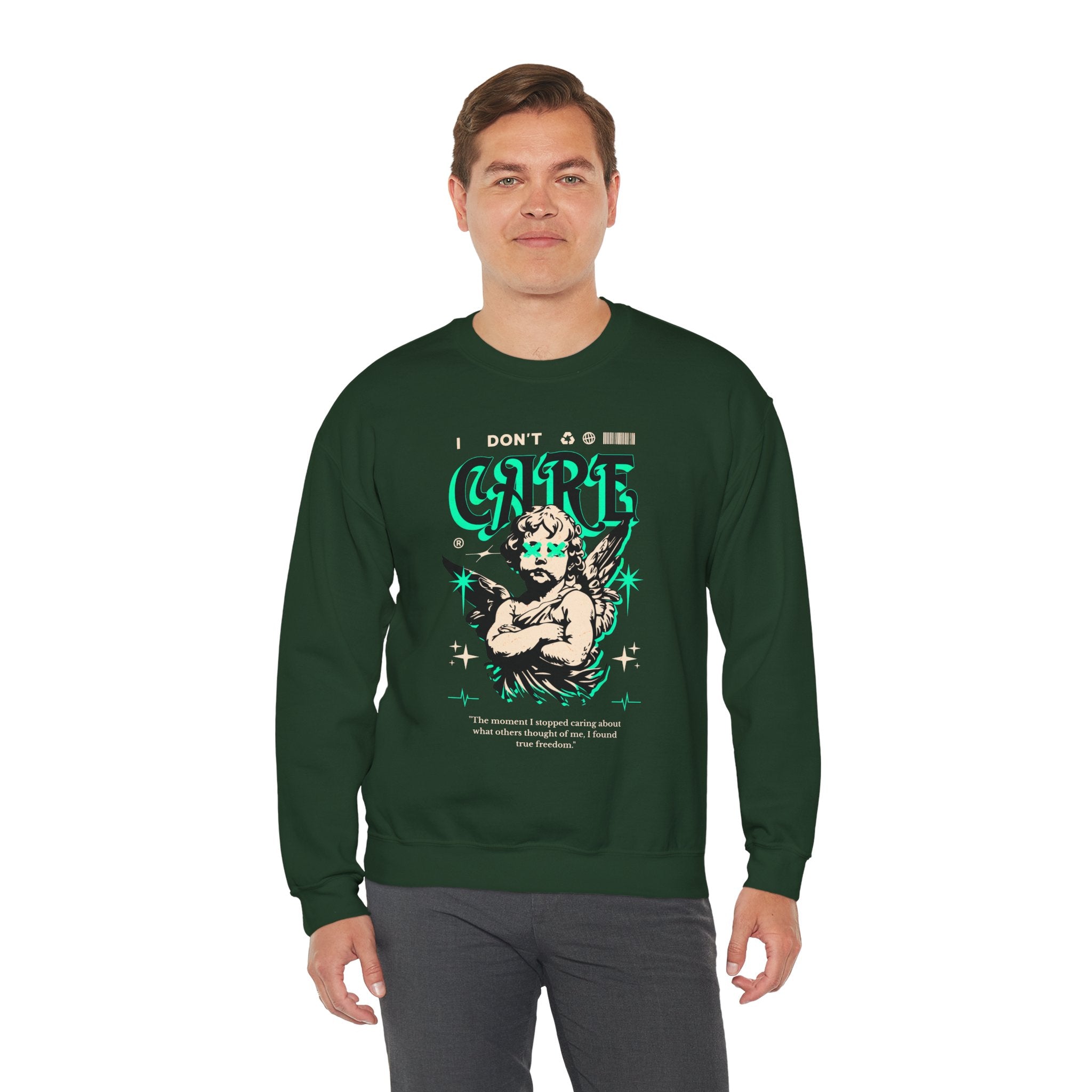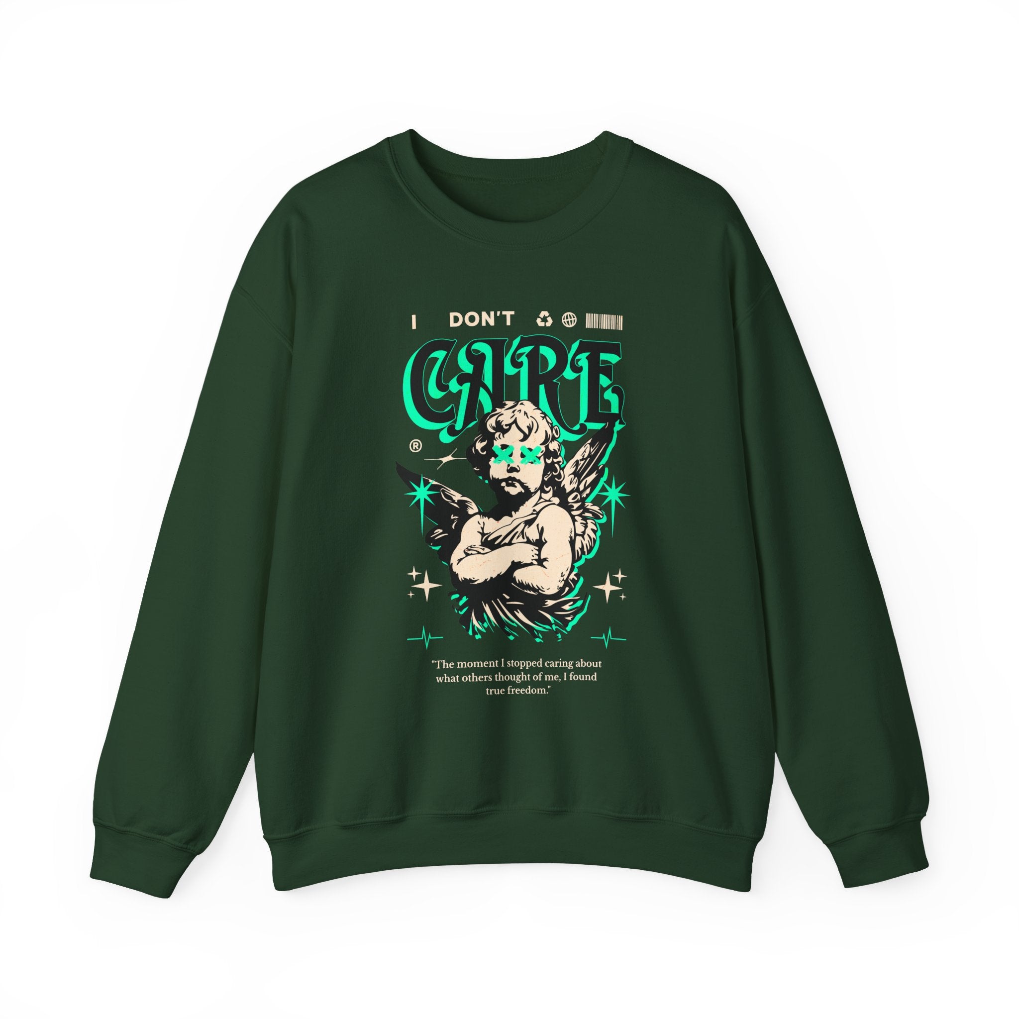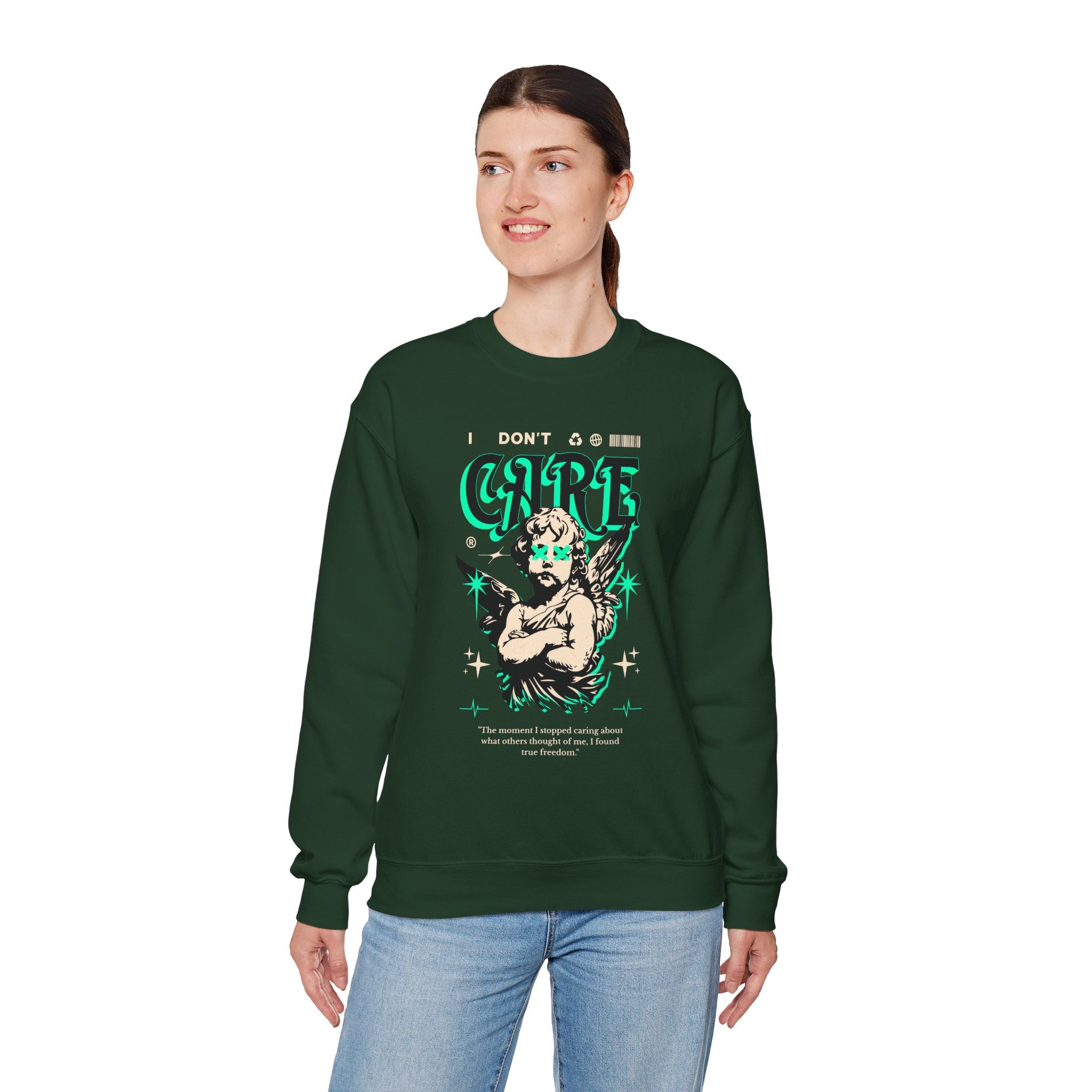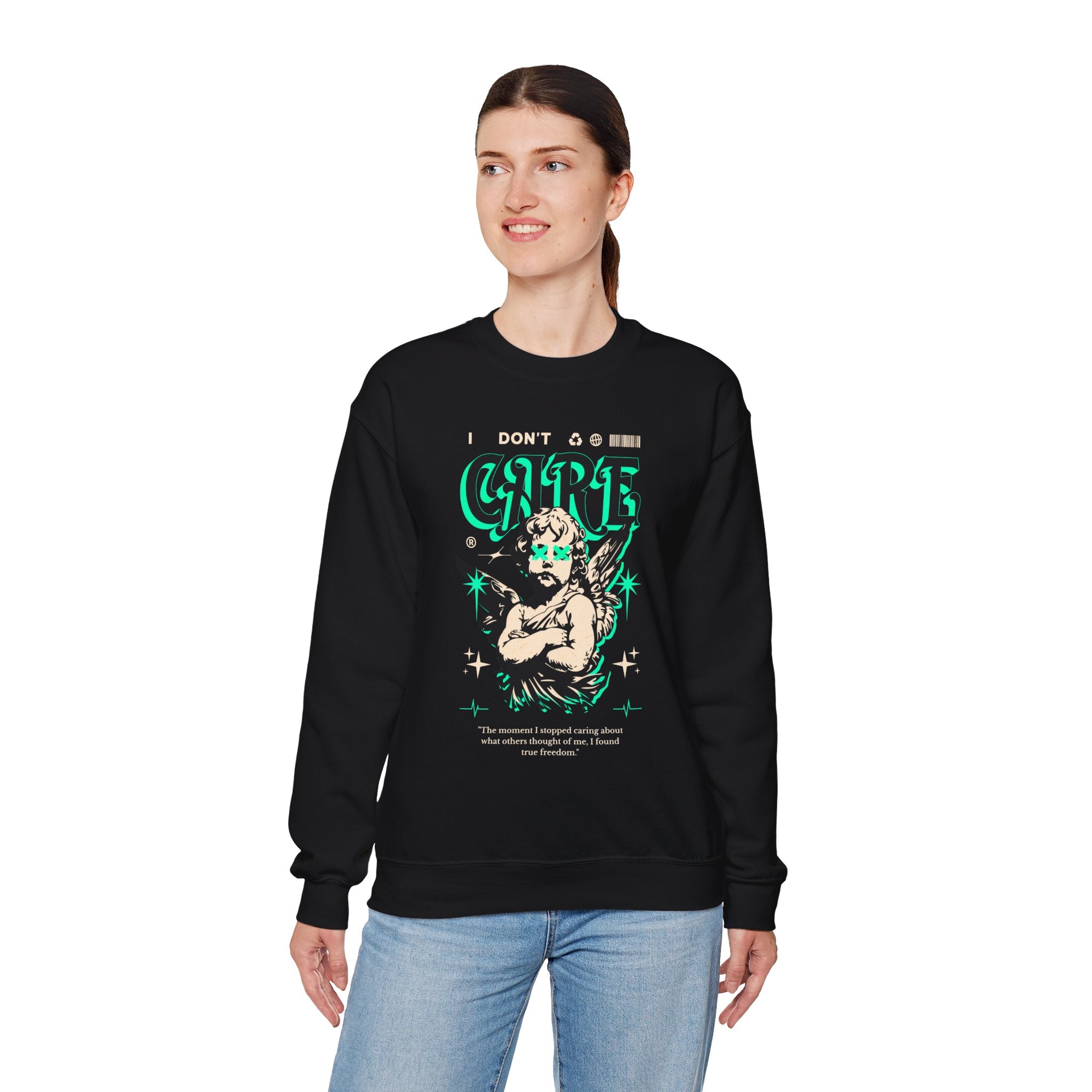 The I Don’t Care – True Freedom Angel Unisex Heavy Blend™ Crewneck Sweatshirt is made for those who embrace fearless self-expression. Featuring a bold cherub graphic with folded arms, accented in neon green highlights and gothic typography, this pullover declares: “The moment I stopped caring about what others thought of me, I found true freedom.”