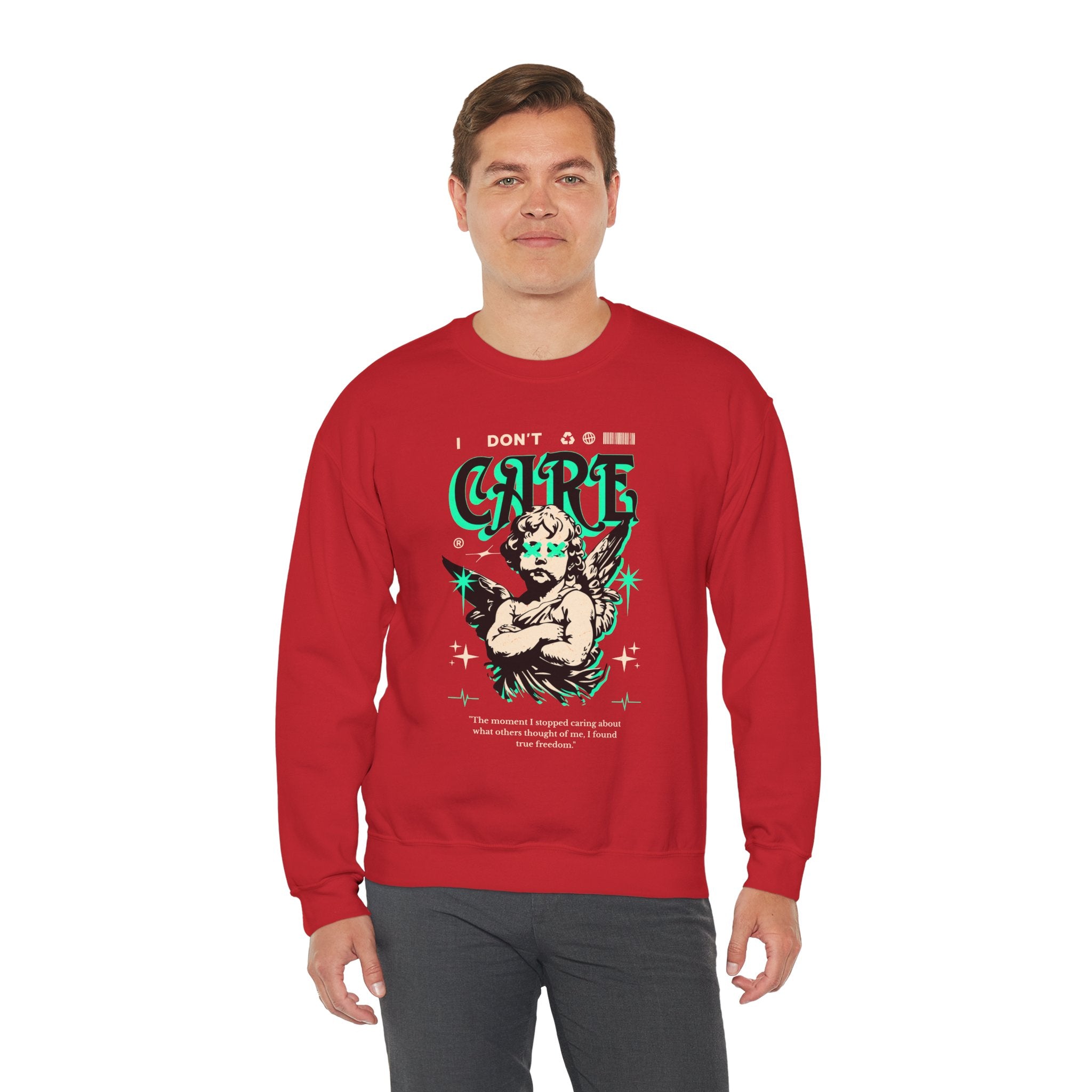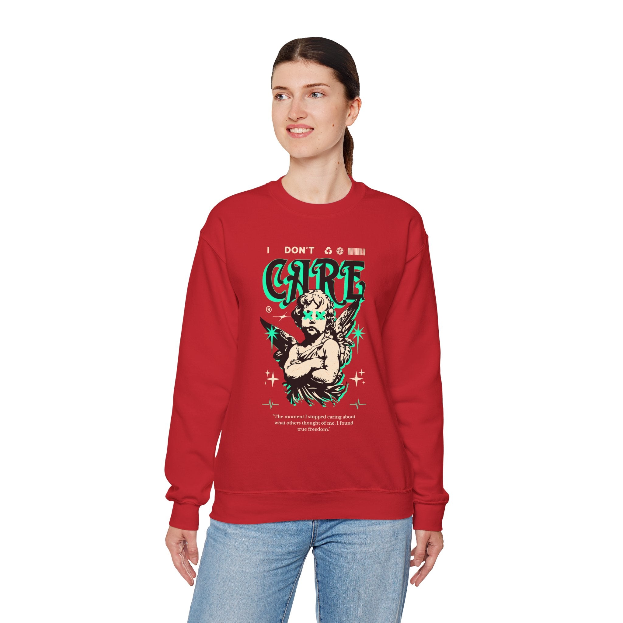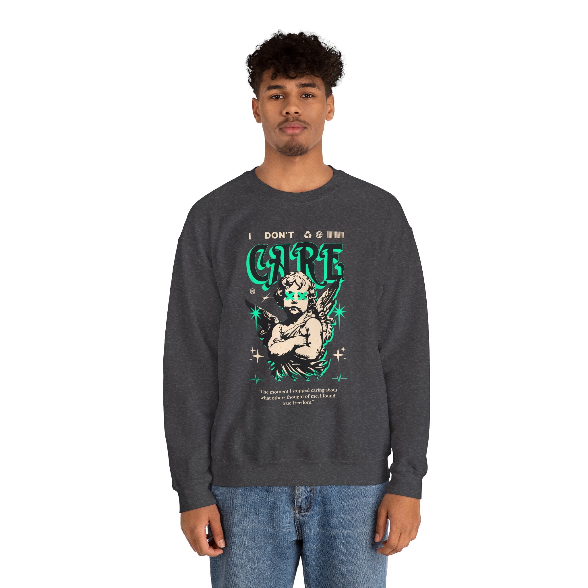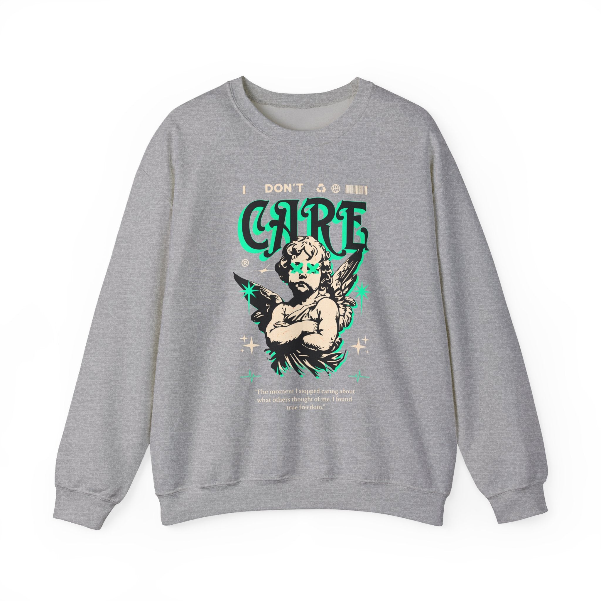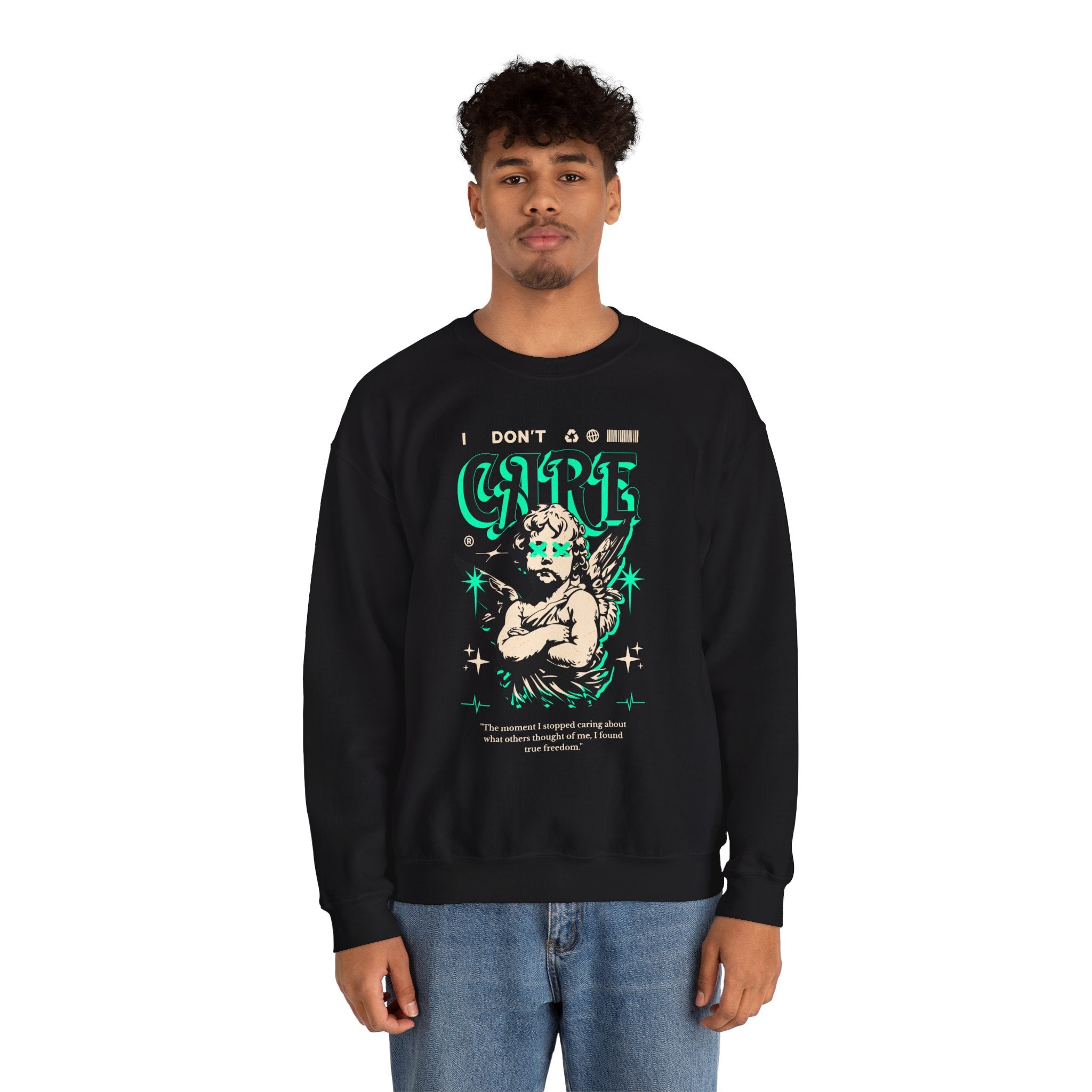 The I Don’t Care – True Freedom Angel Unisex Heavy Blend™ Crewneck Sweatshirt is made for those who embrace fearless self-expression. Featuring a bold cherub graphic with folded arms, accented in neon green highlights and gothic typography, this pullover declares: “The moment I stopped caring about what others thought of me, I found true freedom.”
