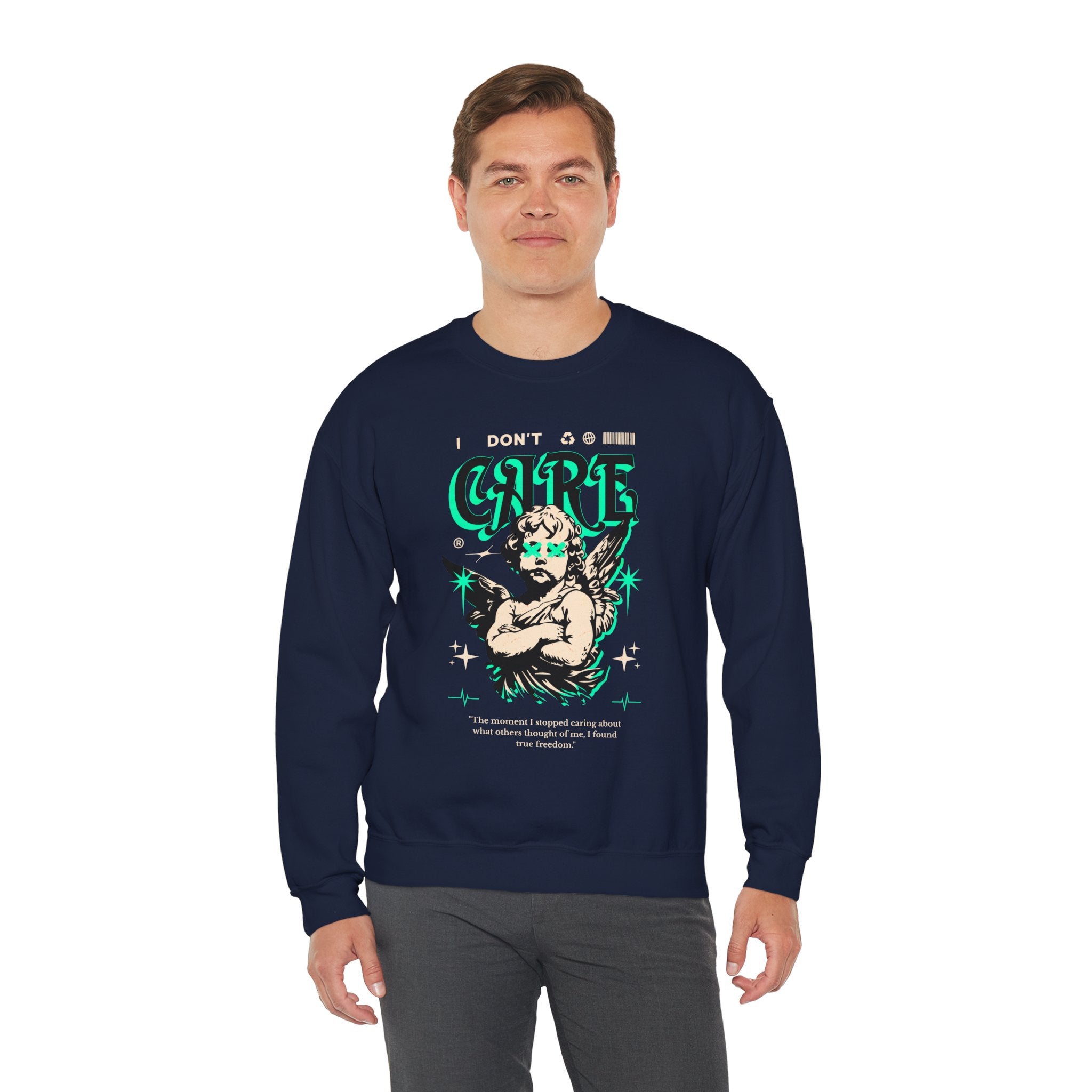 Unisex Heavy Blend™ Crewneck Sweatshirt with I Don’t Care Angel graphic