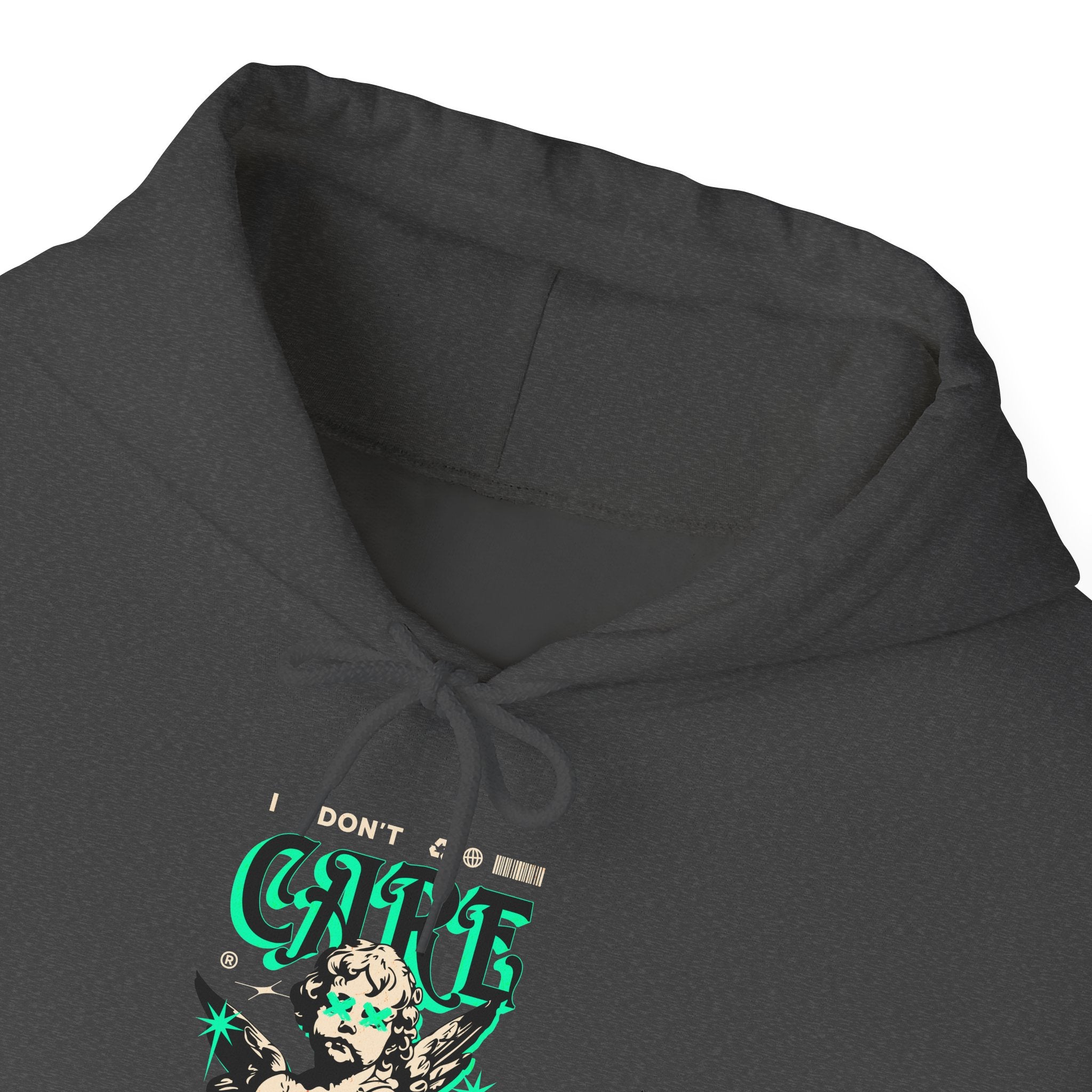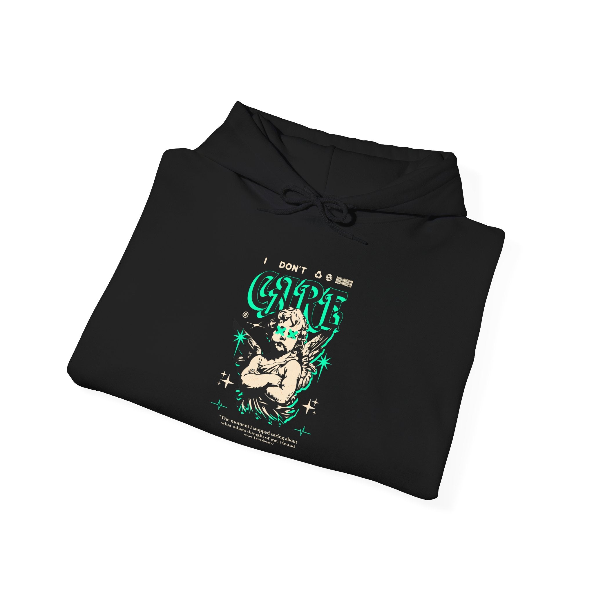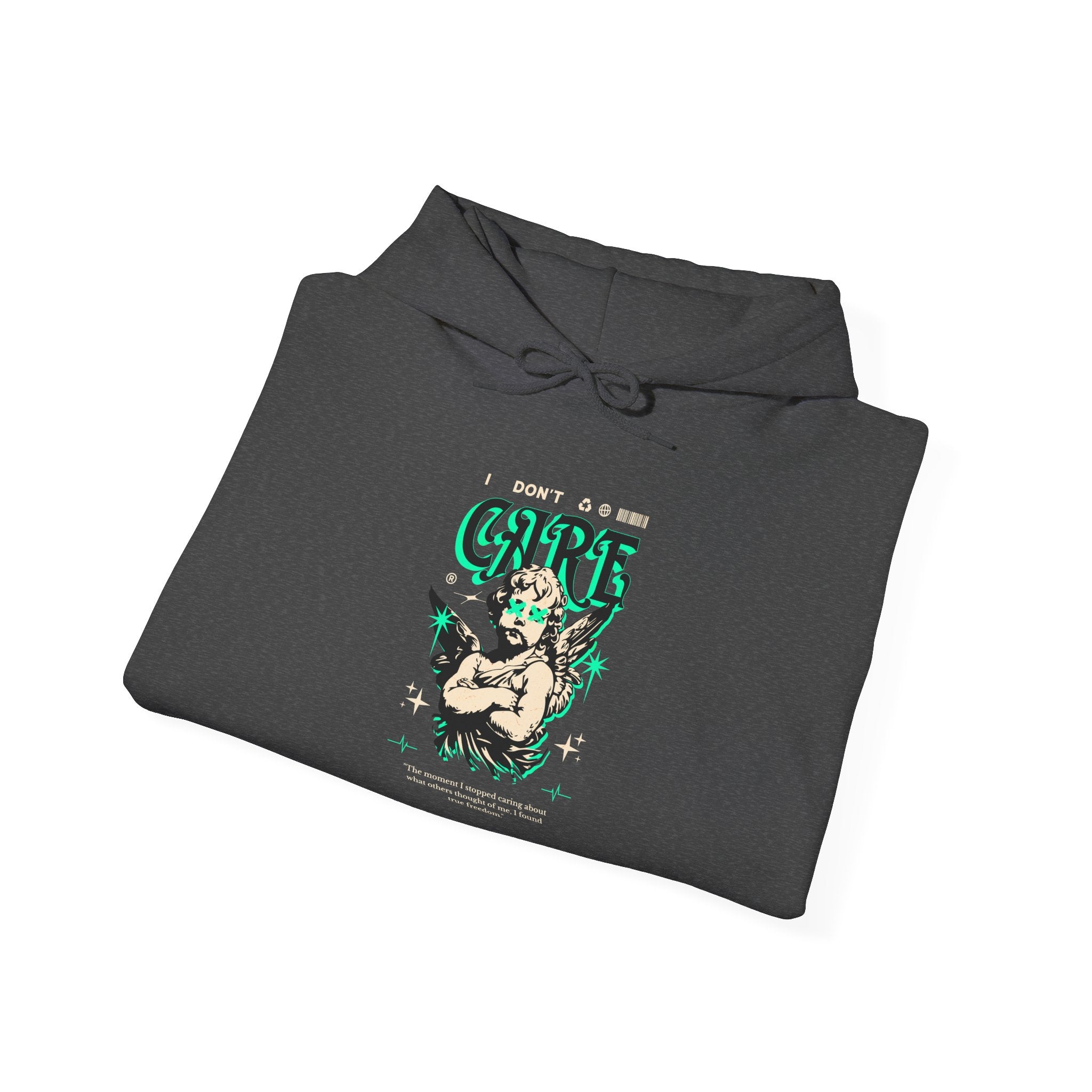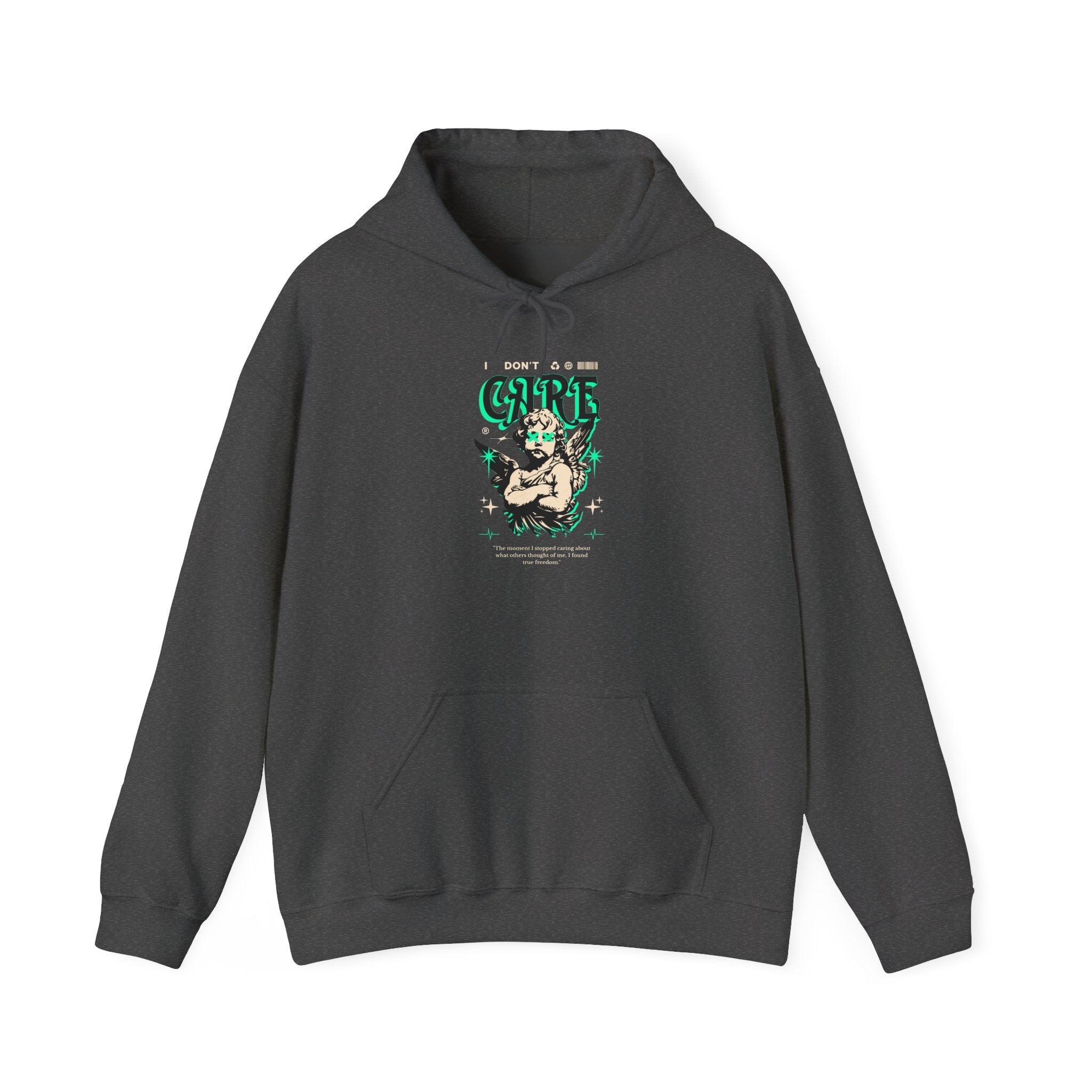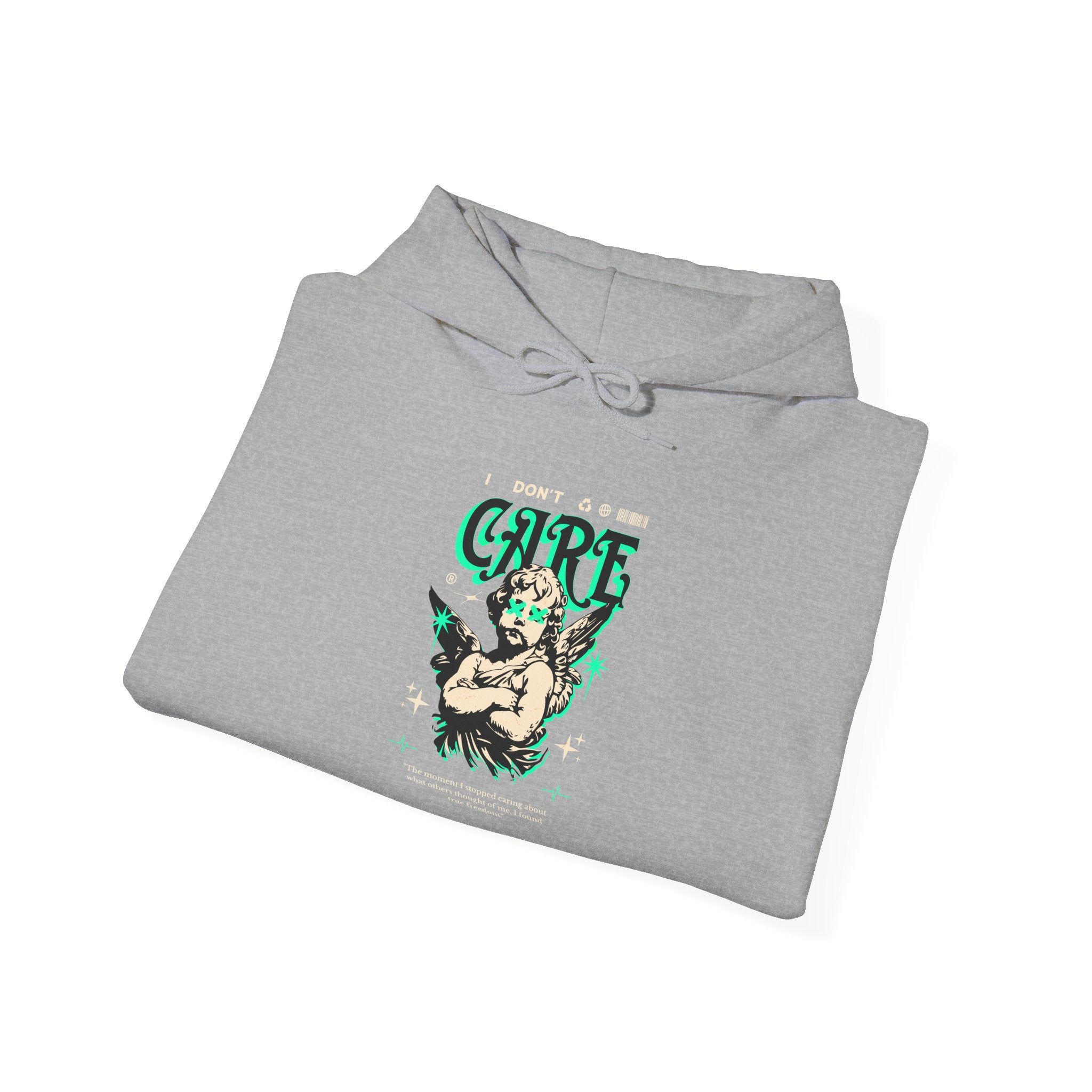 The I Don’t Care – True Freedom Angel Unisex Heavy Blend™ Hooded Sweatshirt represents fearless individuality and unapologetic confidence. Featuring a gothic cherub with arms folded, accented in neon green highlights, this hoodie carries the powerful message: “The moment I stopped caring about what others thought of me, I found true freedom.”