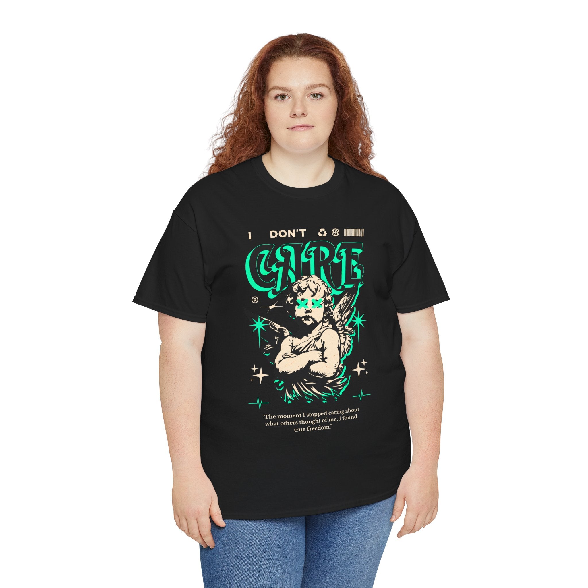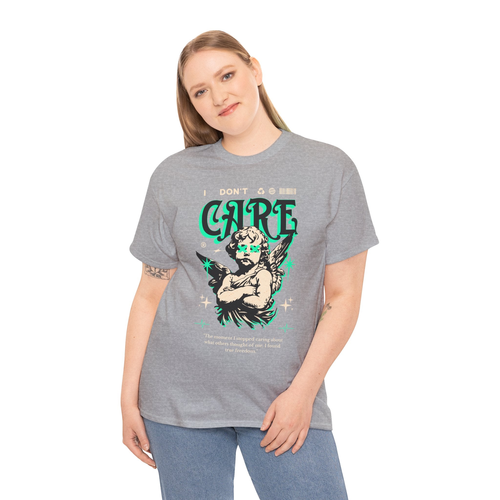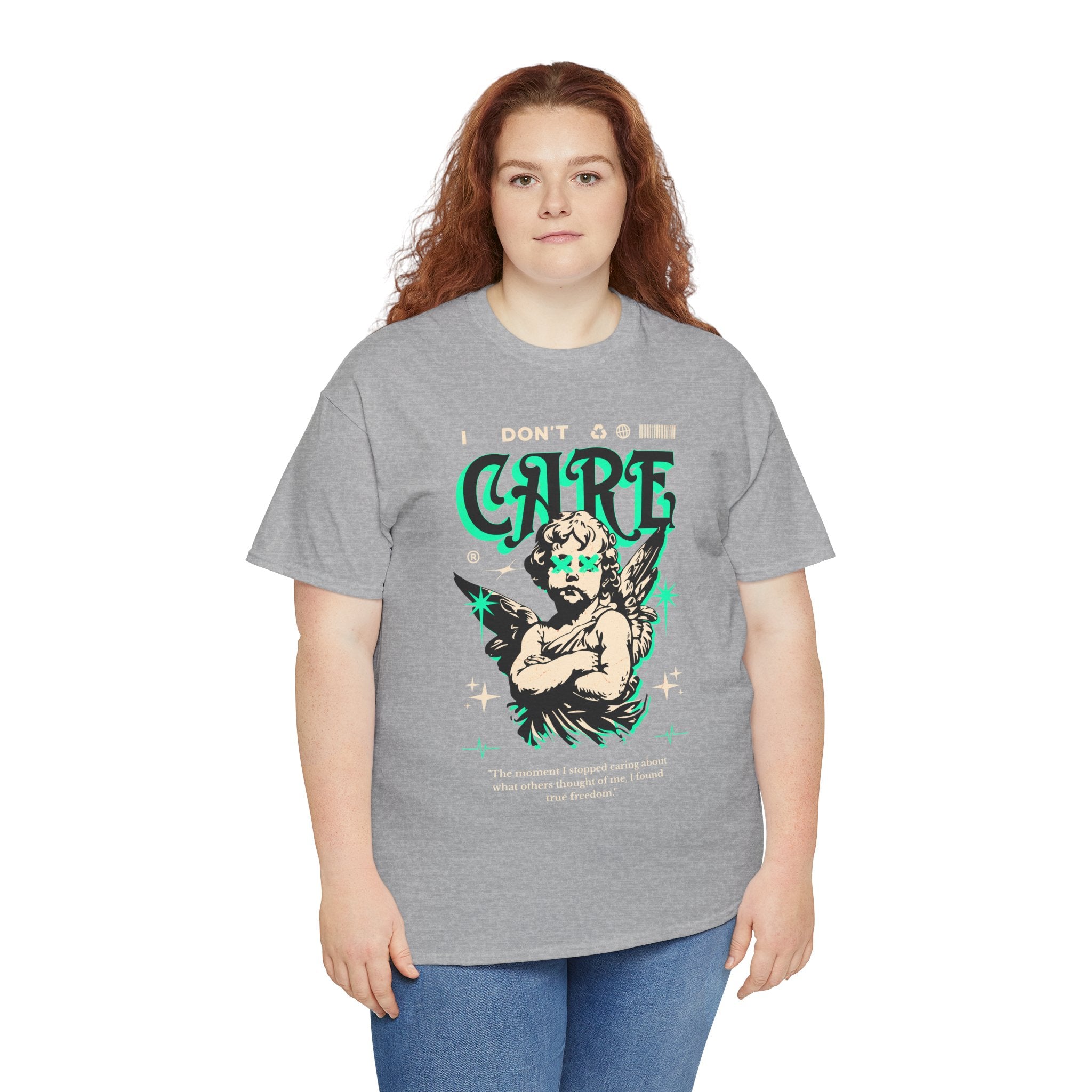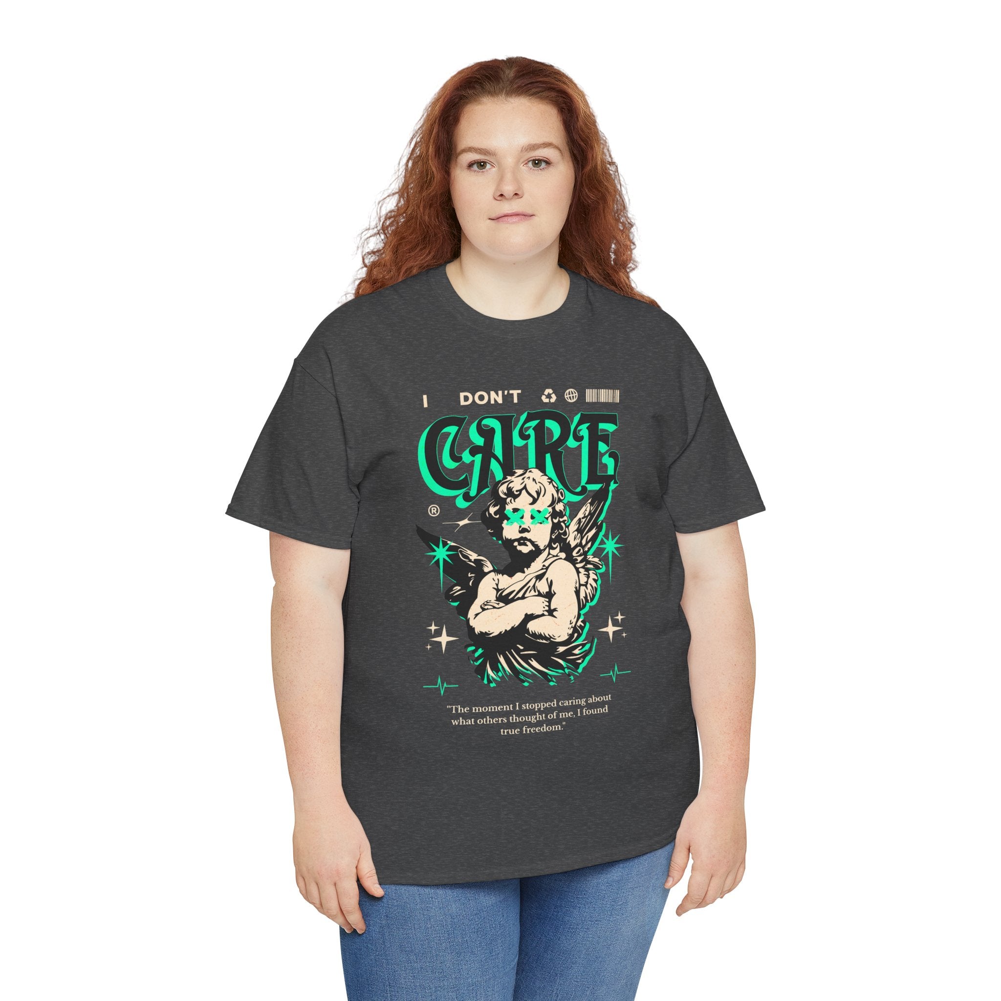 Unisex Heavy Cotton Tee with I Don’t Care Angel design