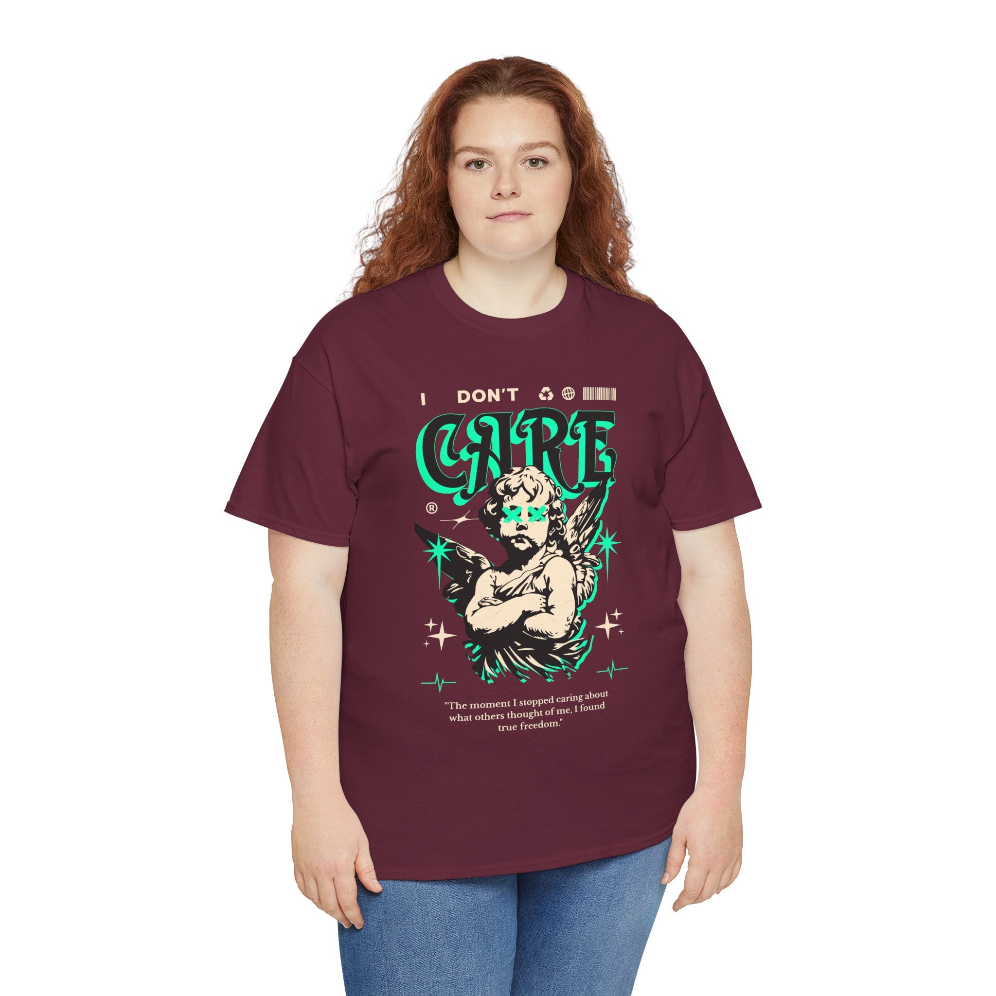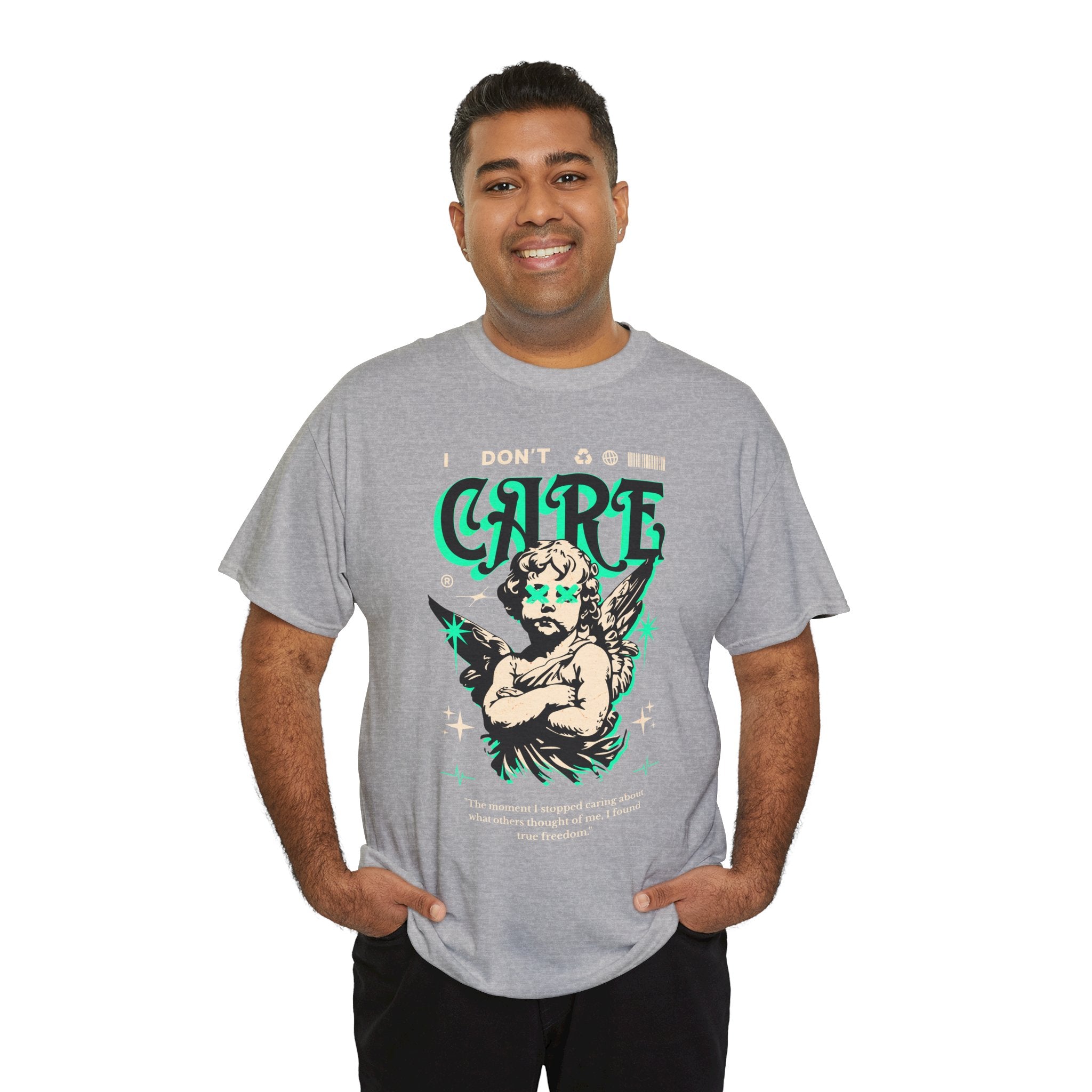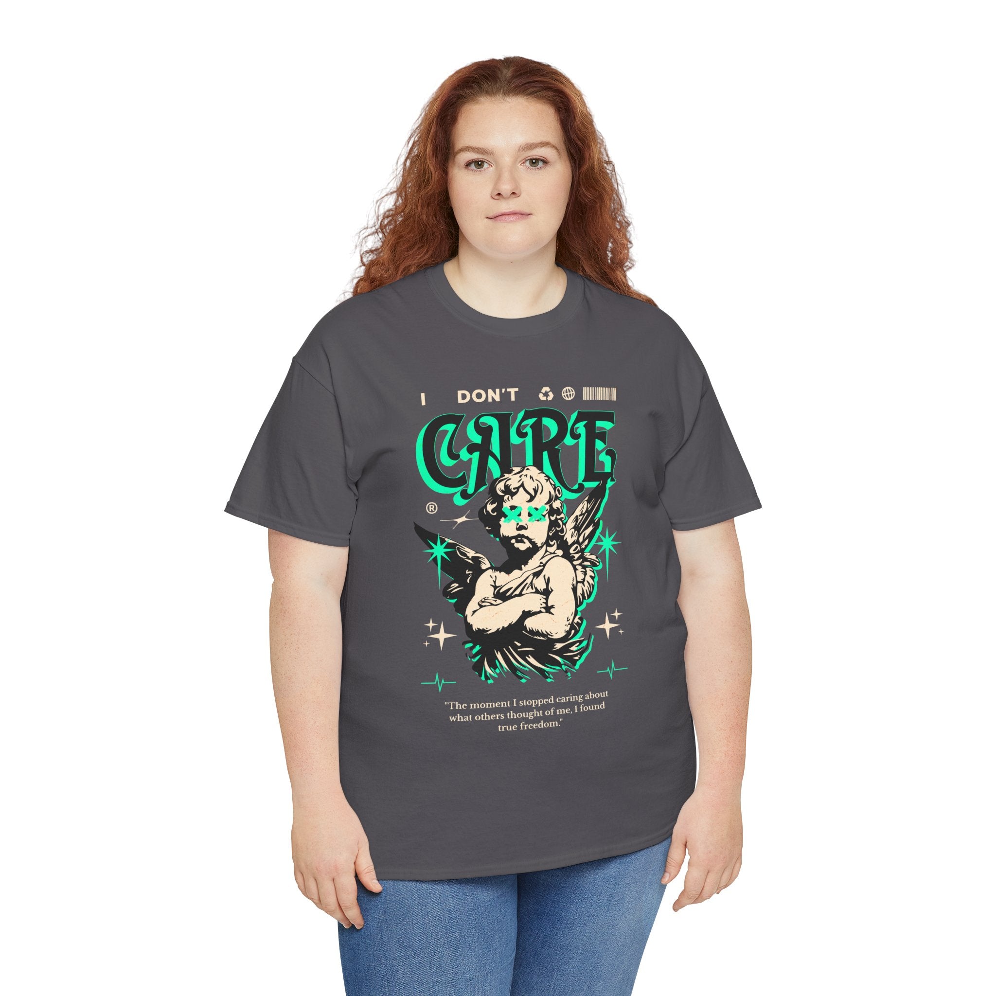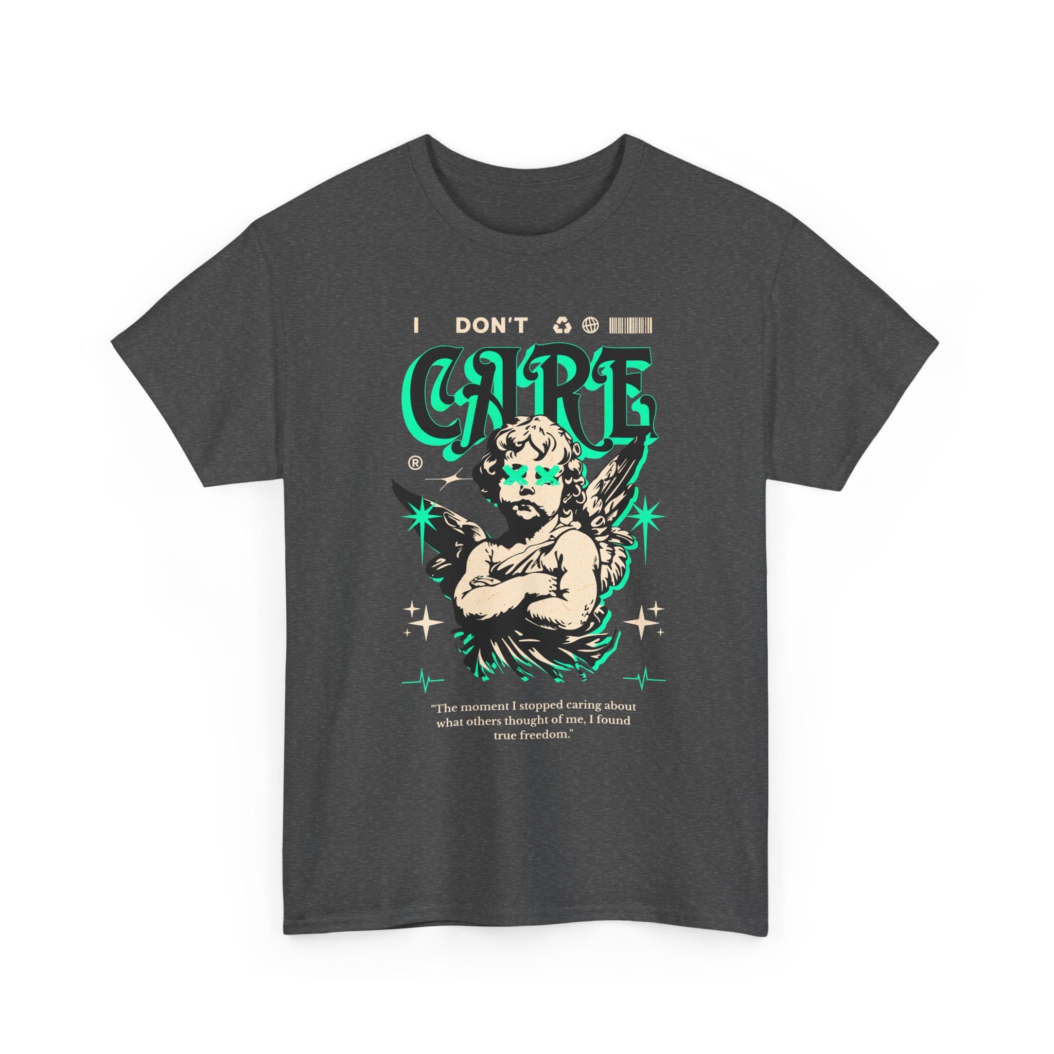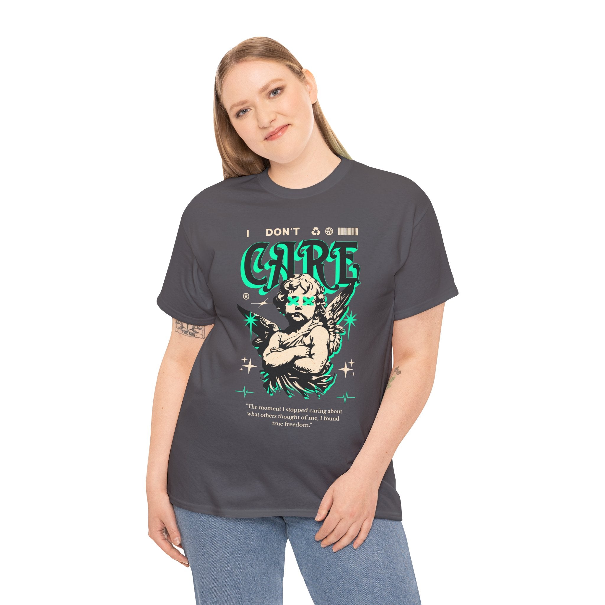 Unisex Heavy Cotton Tee with I Don’t Care Angel design