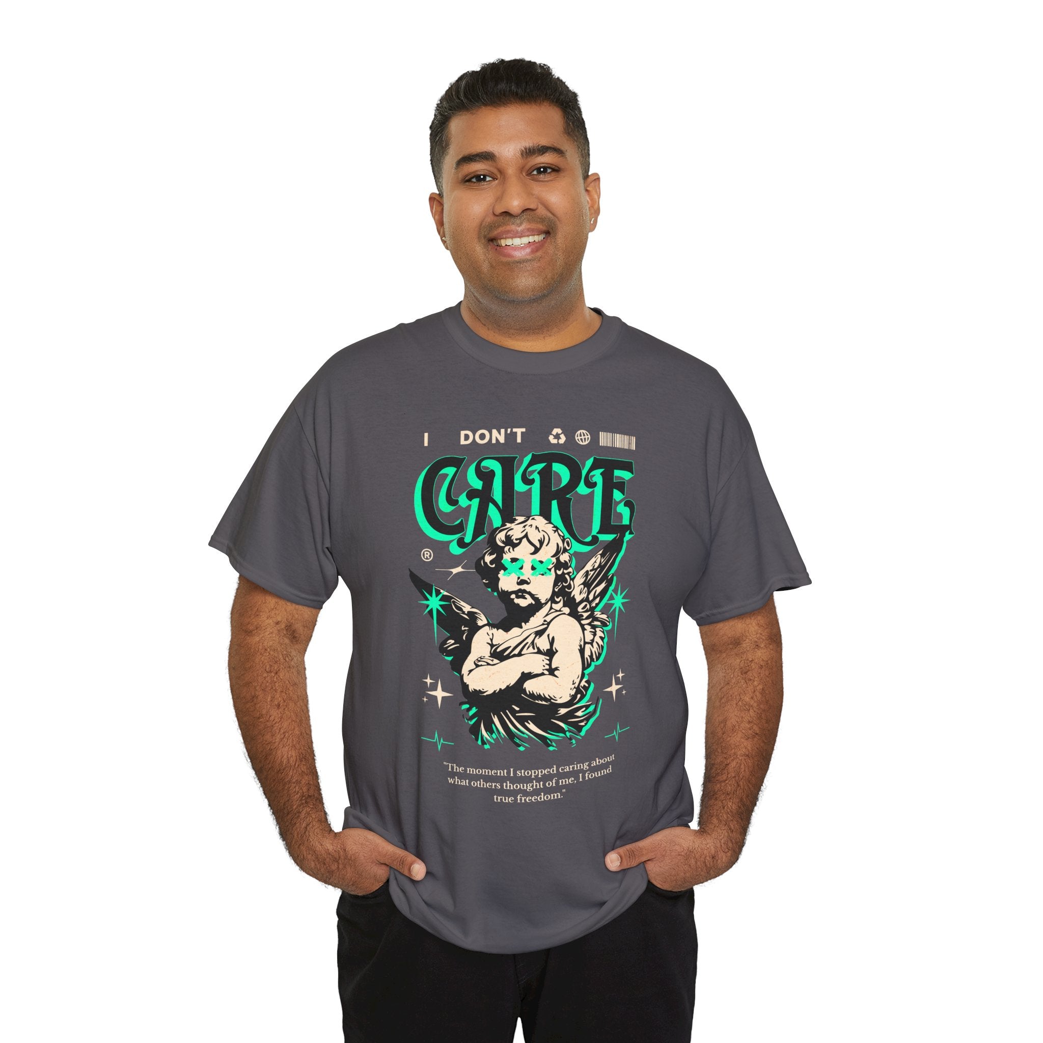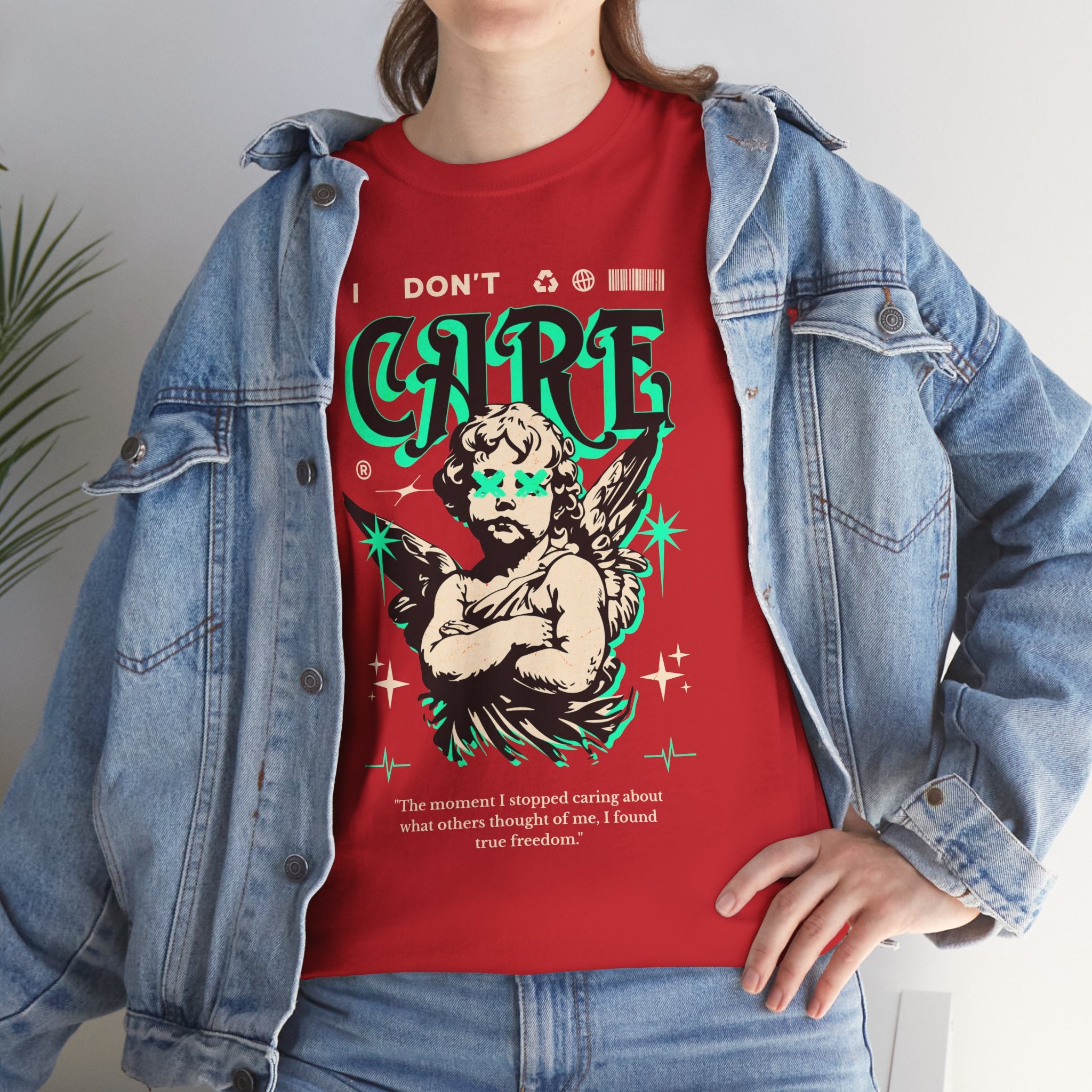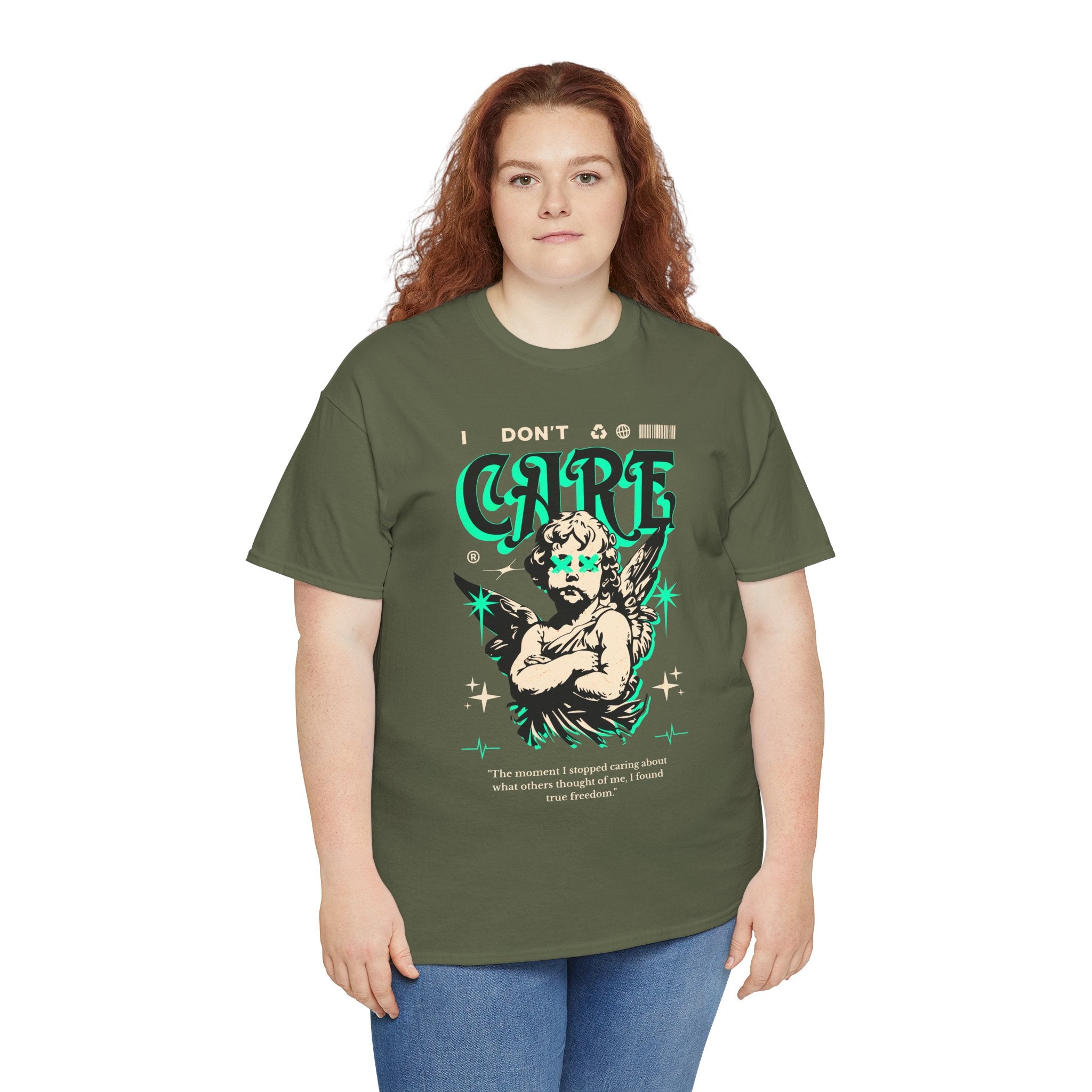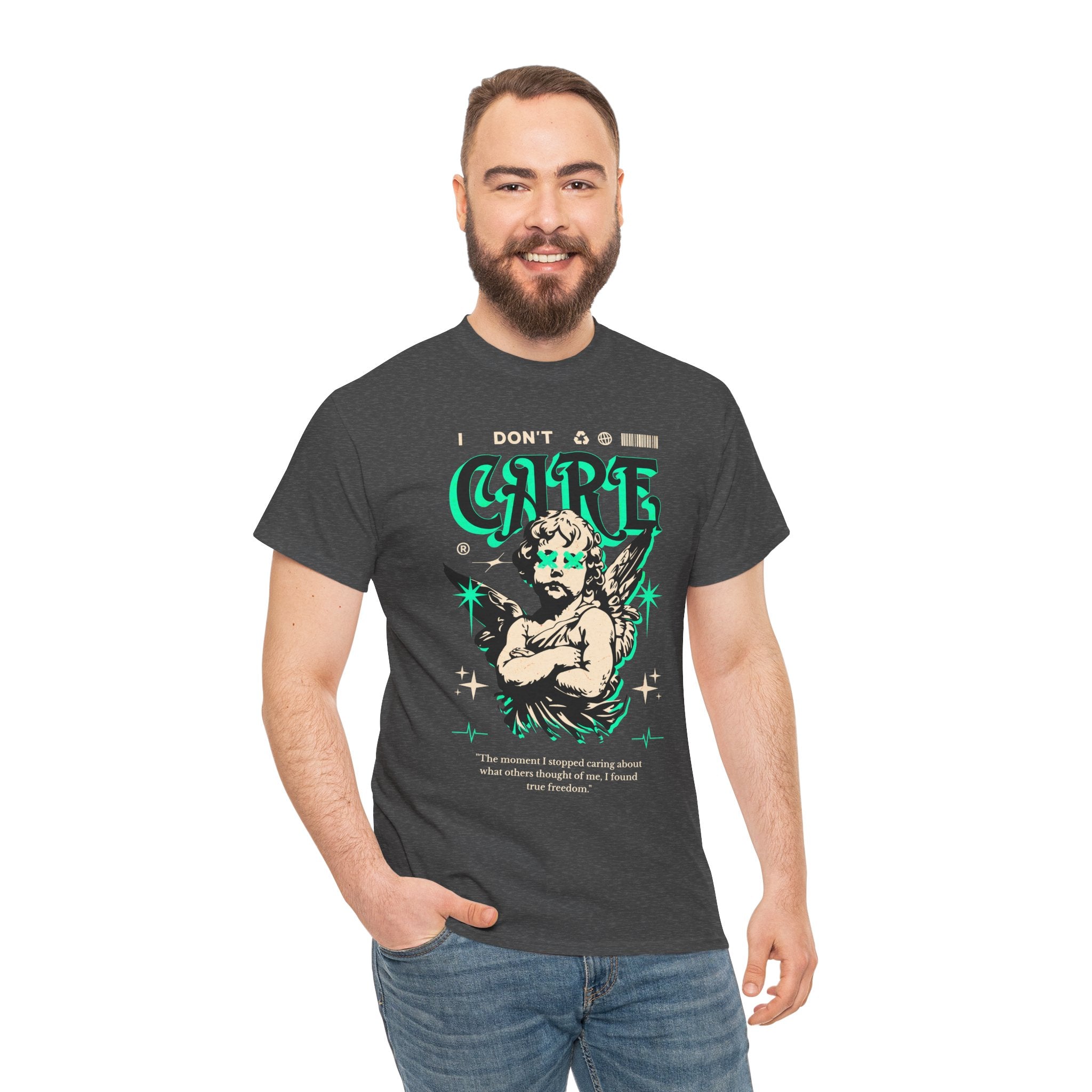 Unisex Heavy Cotton Tee with I Don’t Care Angel design