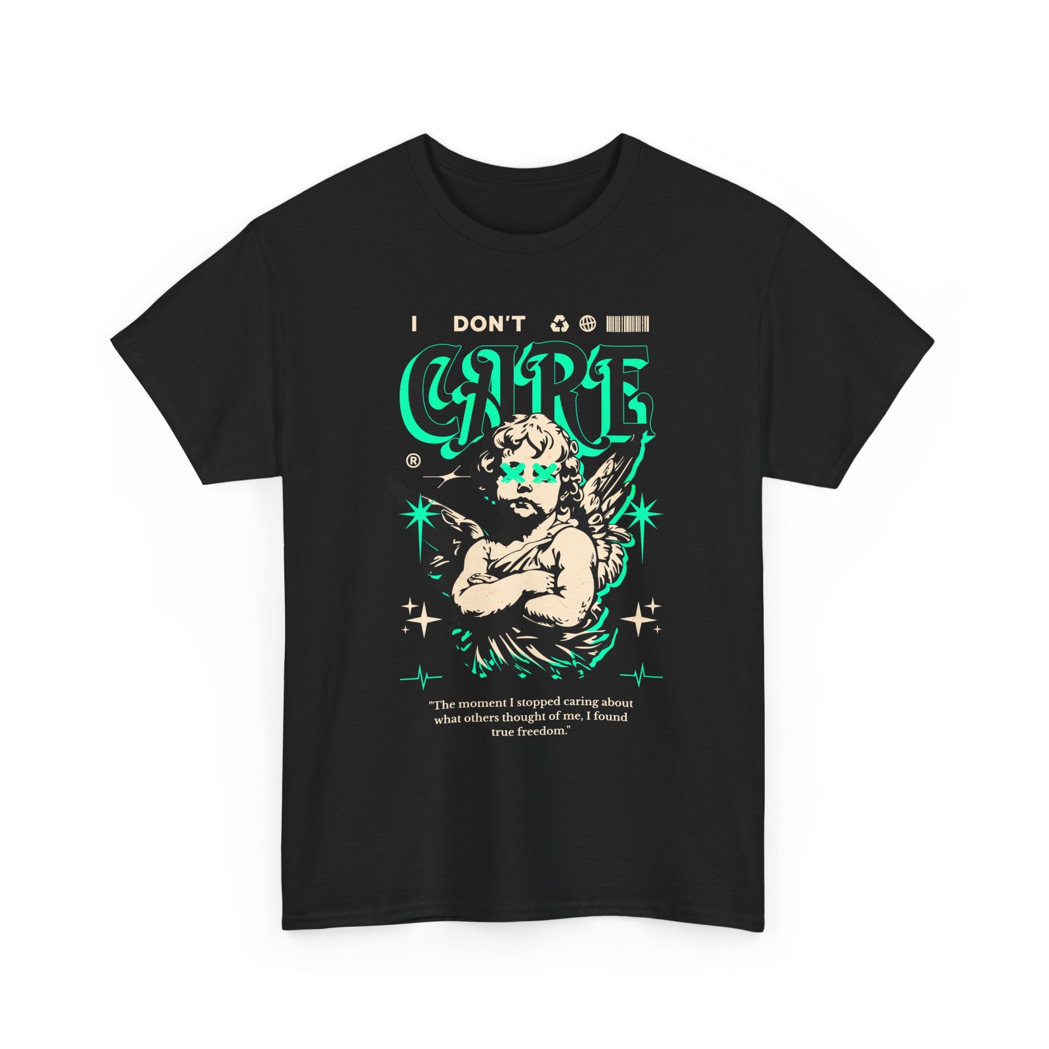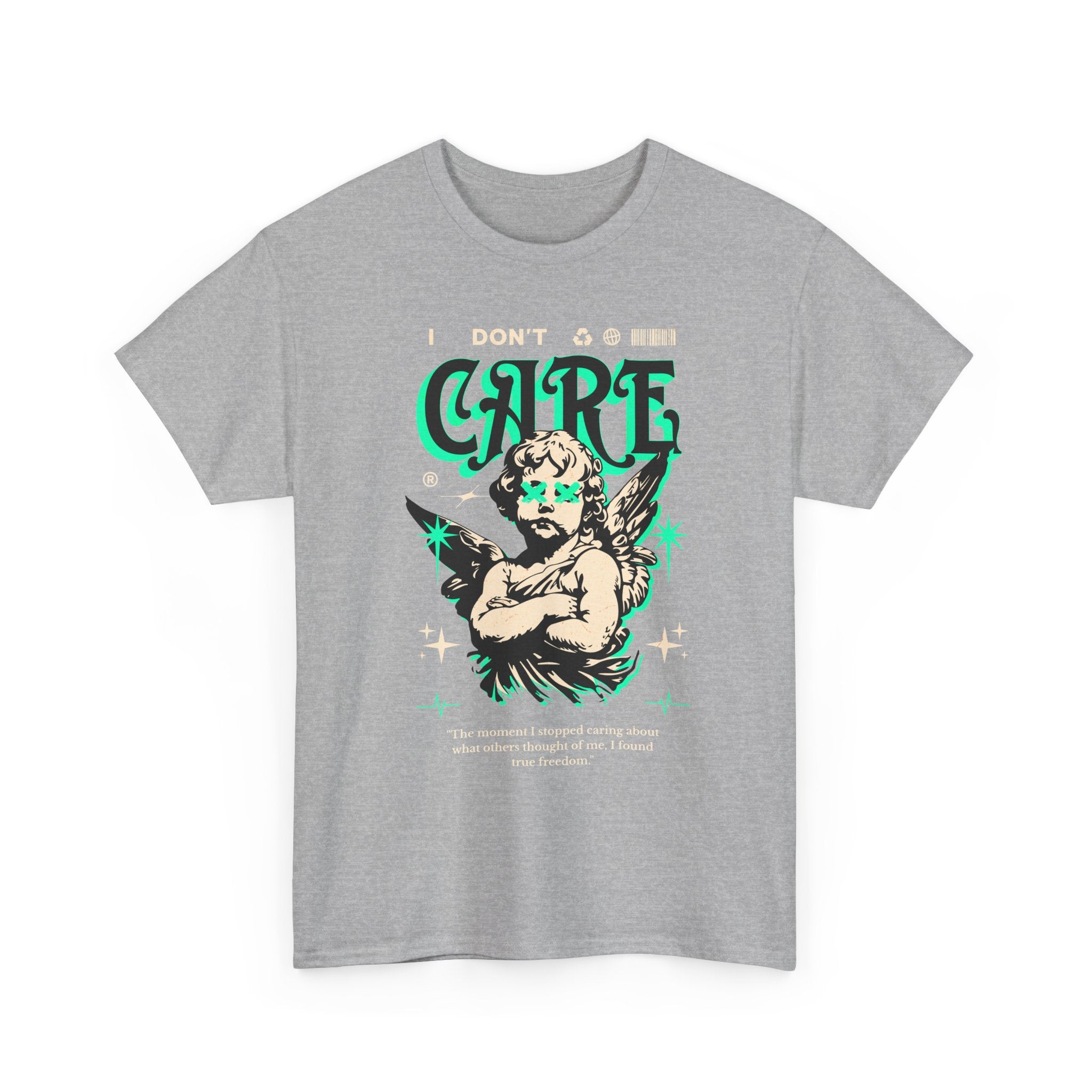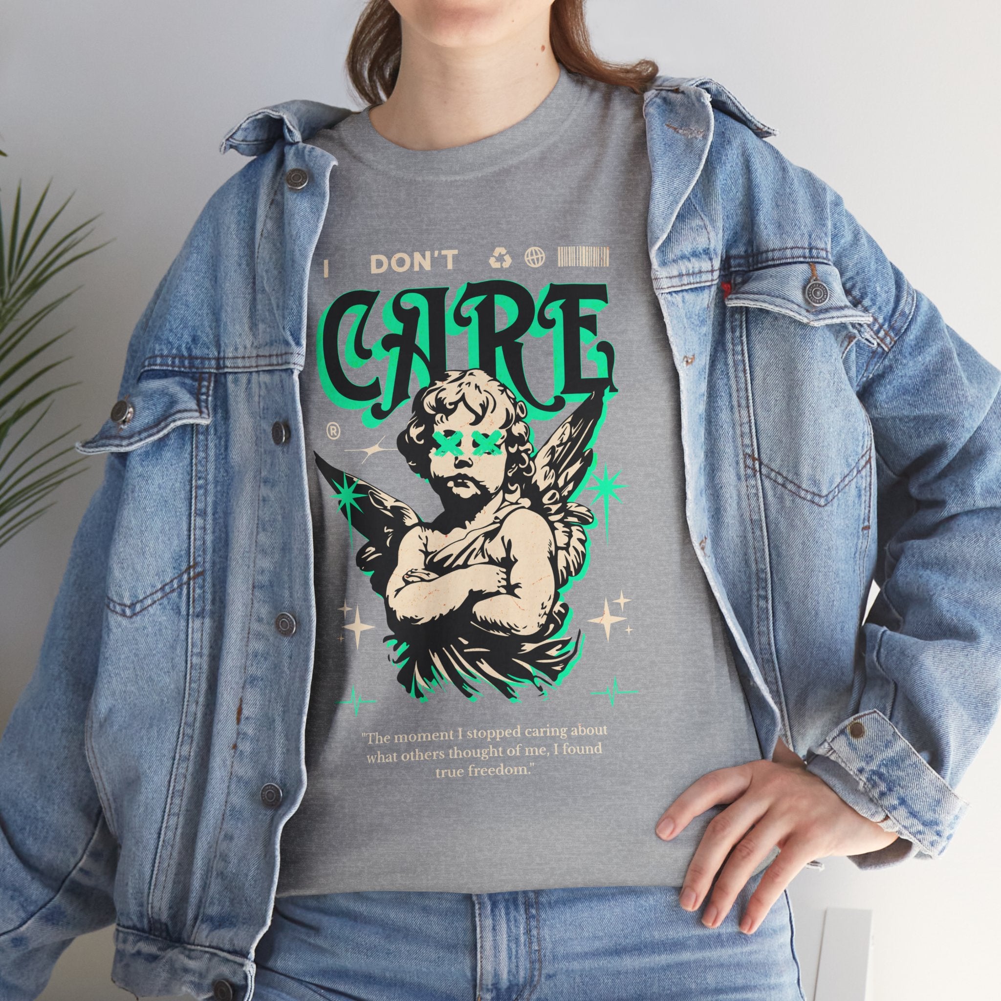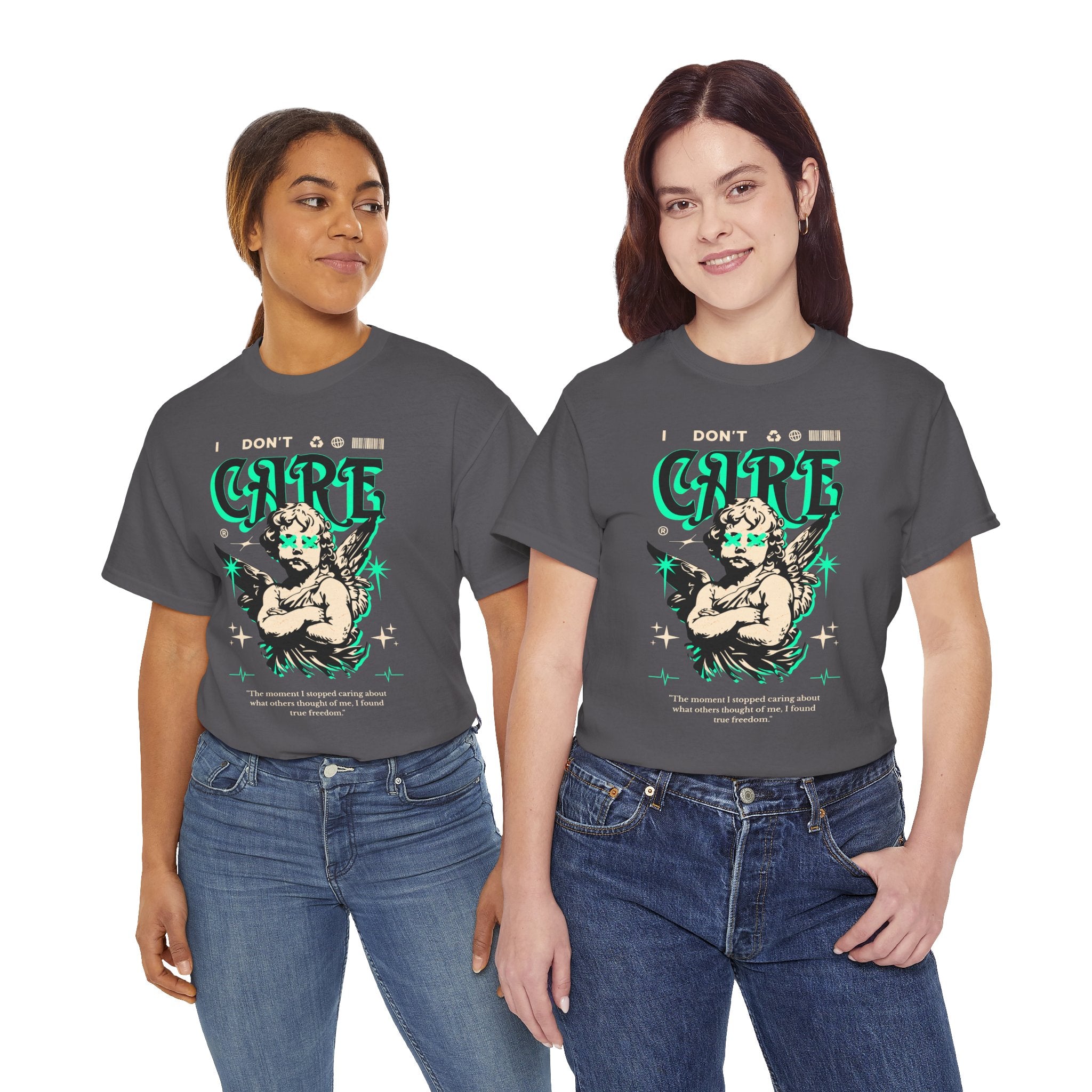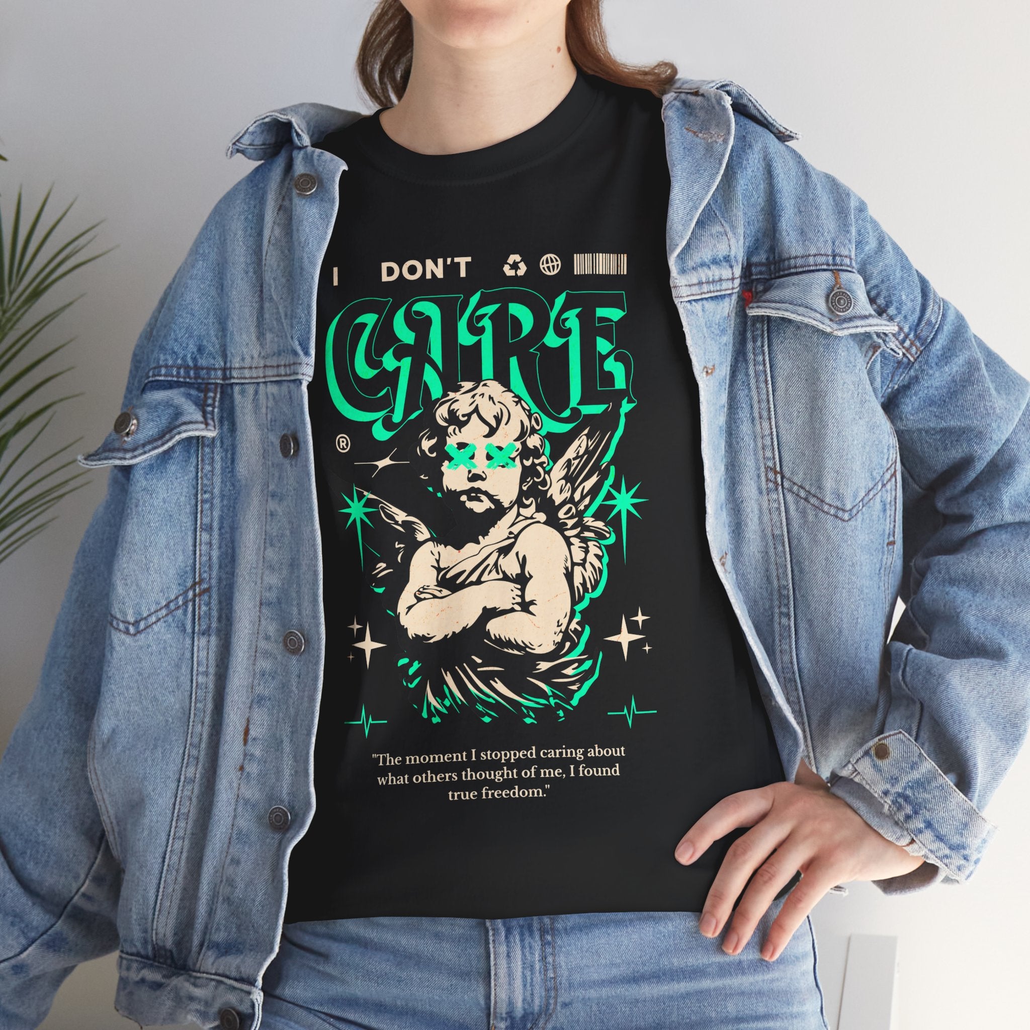 Unisex Heavy Cotton Tee with I Don’t Care Angel design