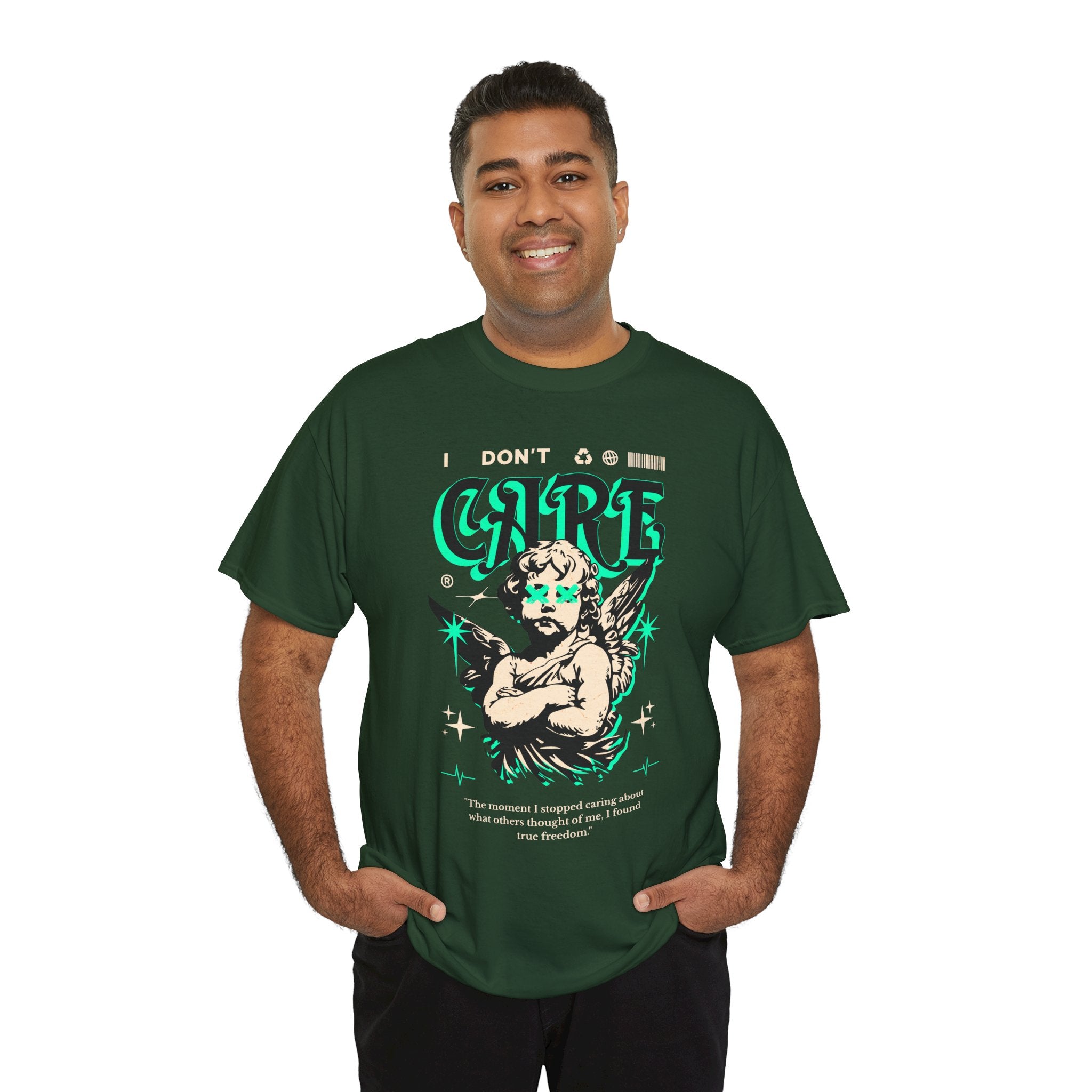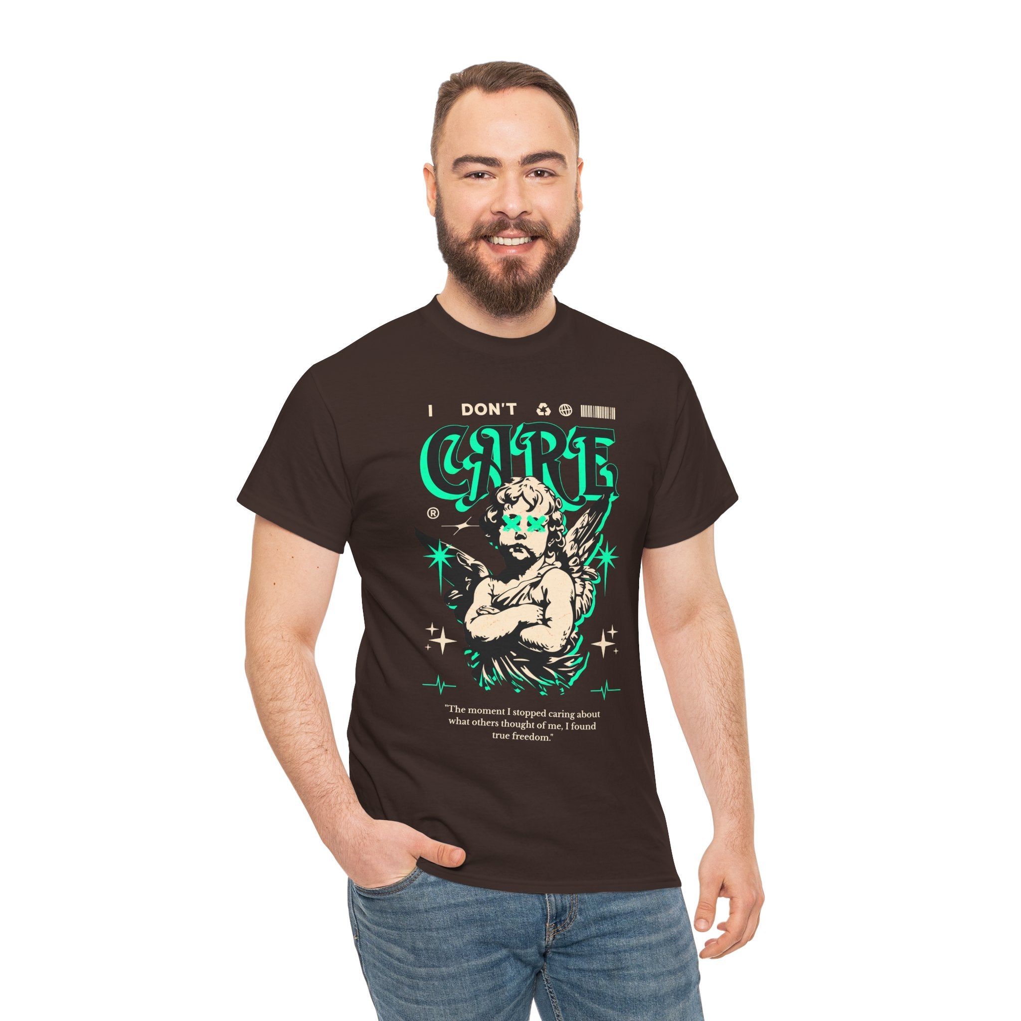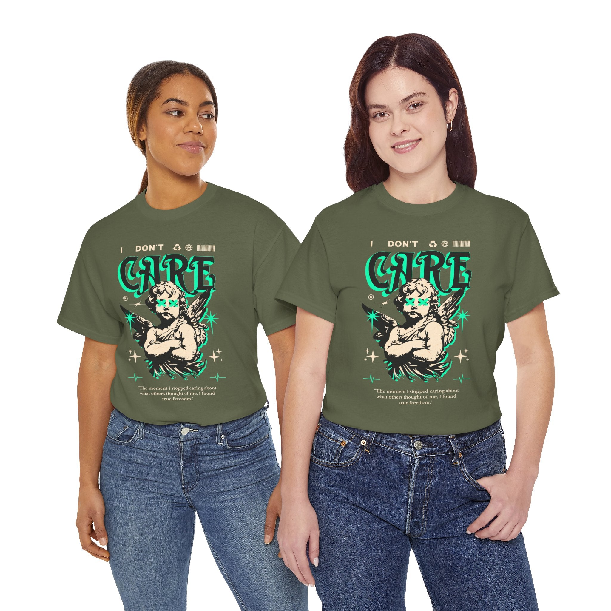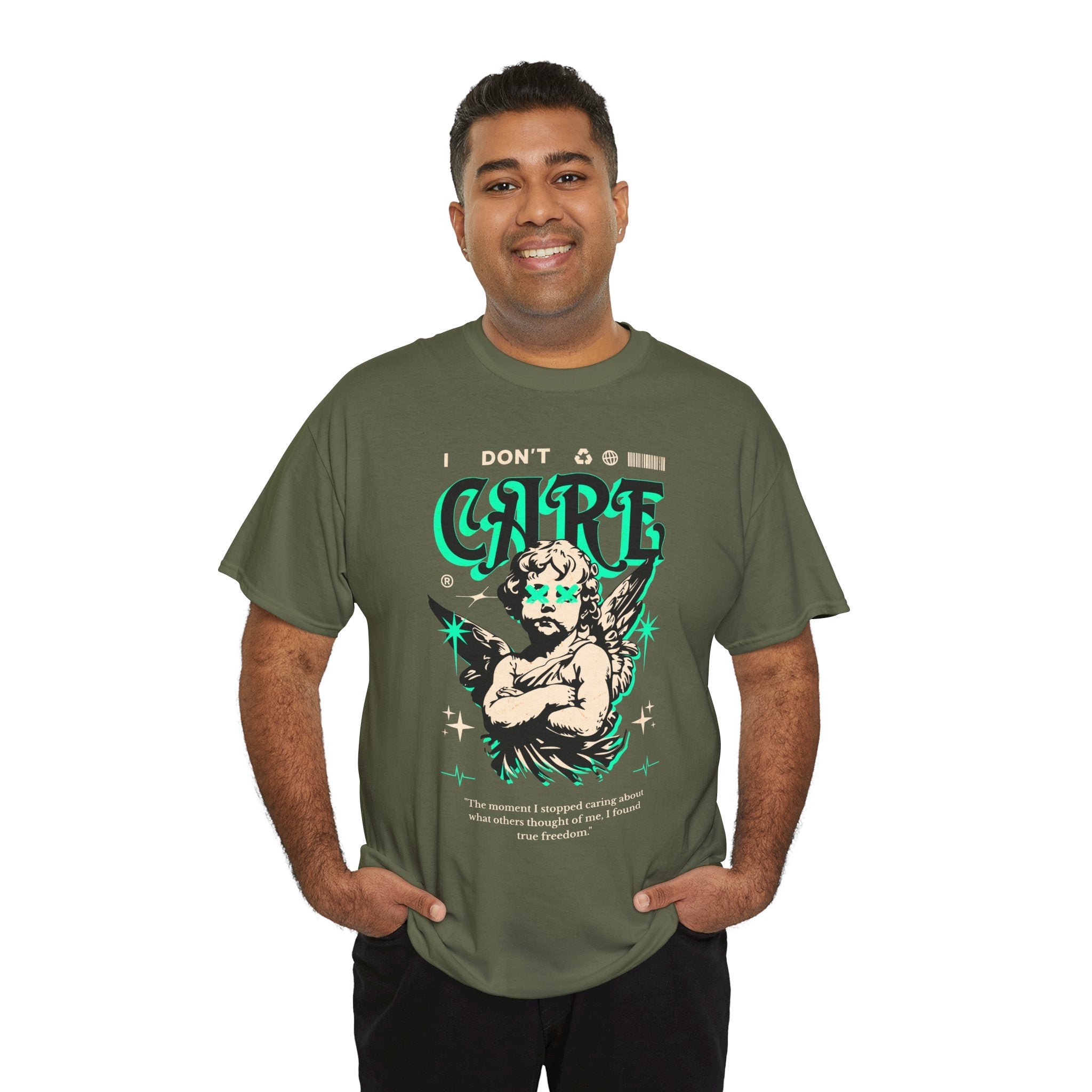 Unisex Heavy Cotton Tee with I Don’t Care Angel design