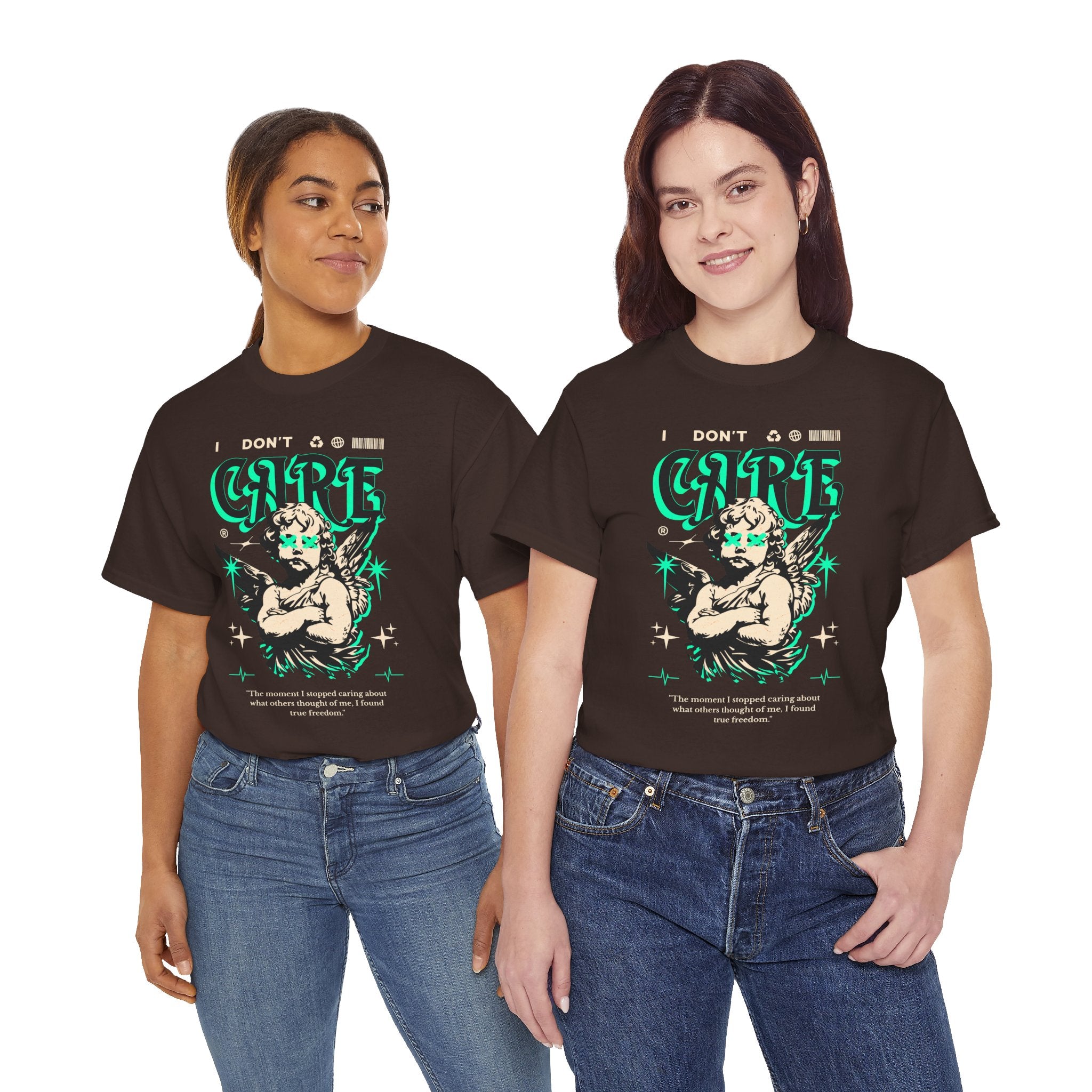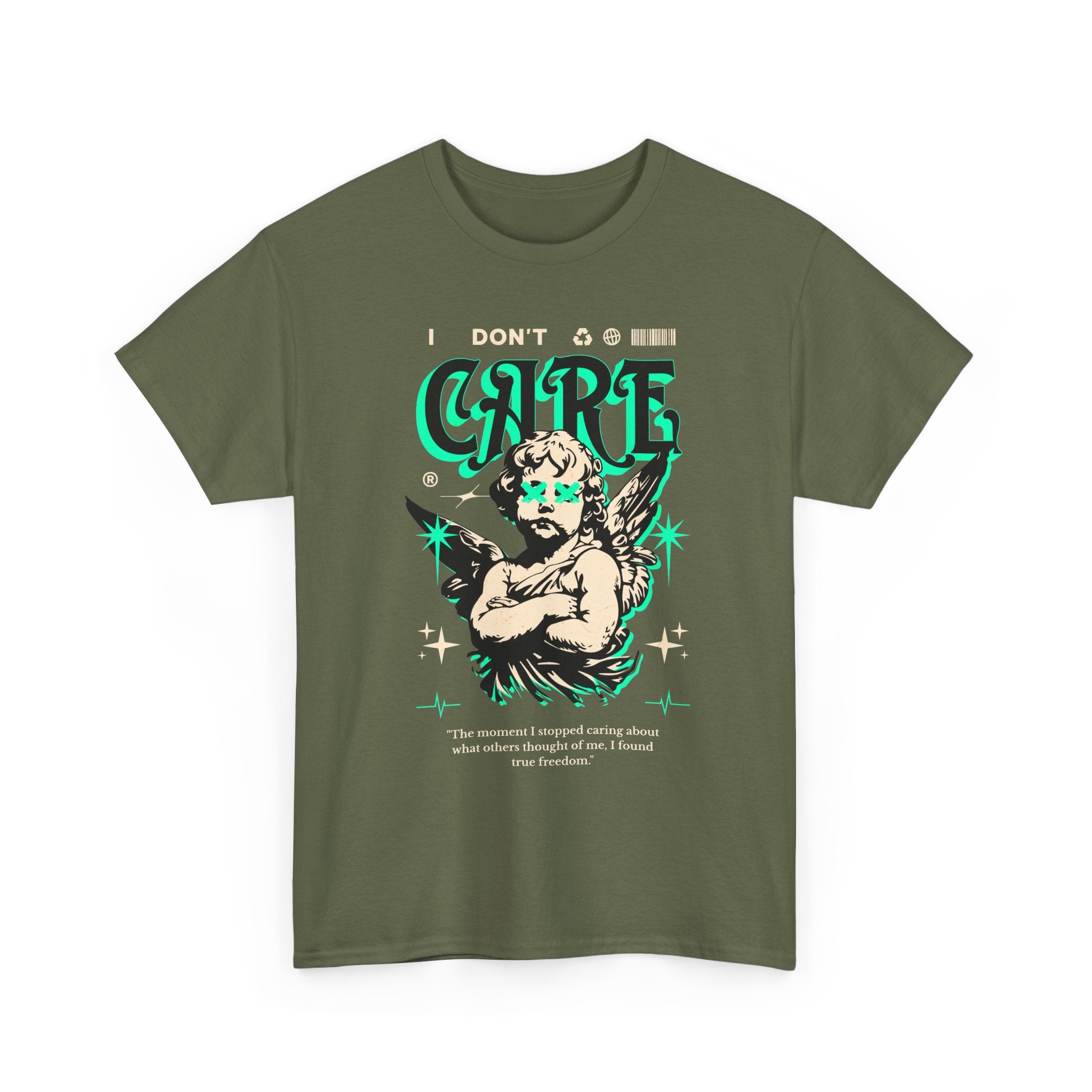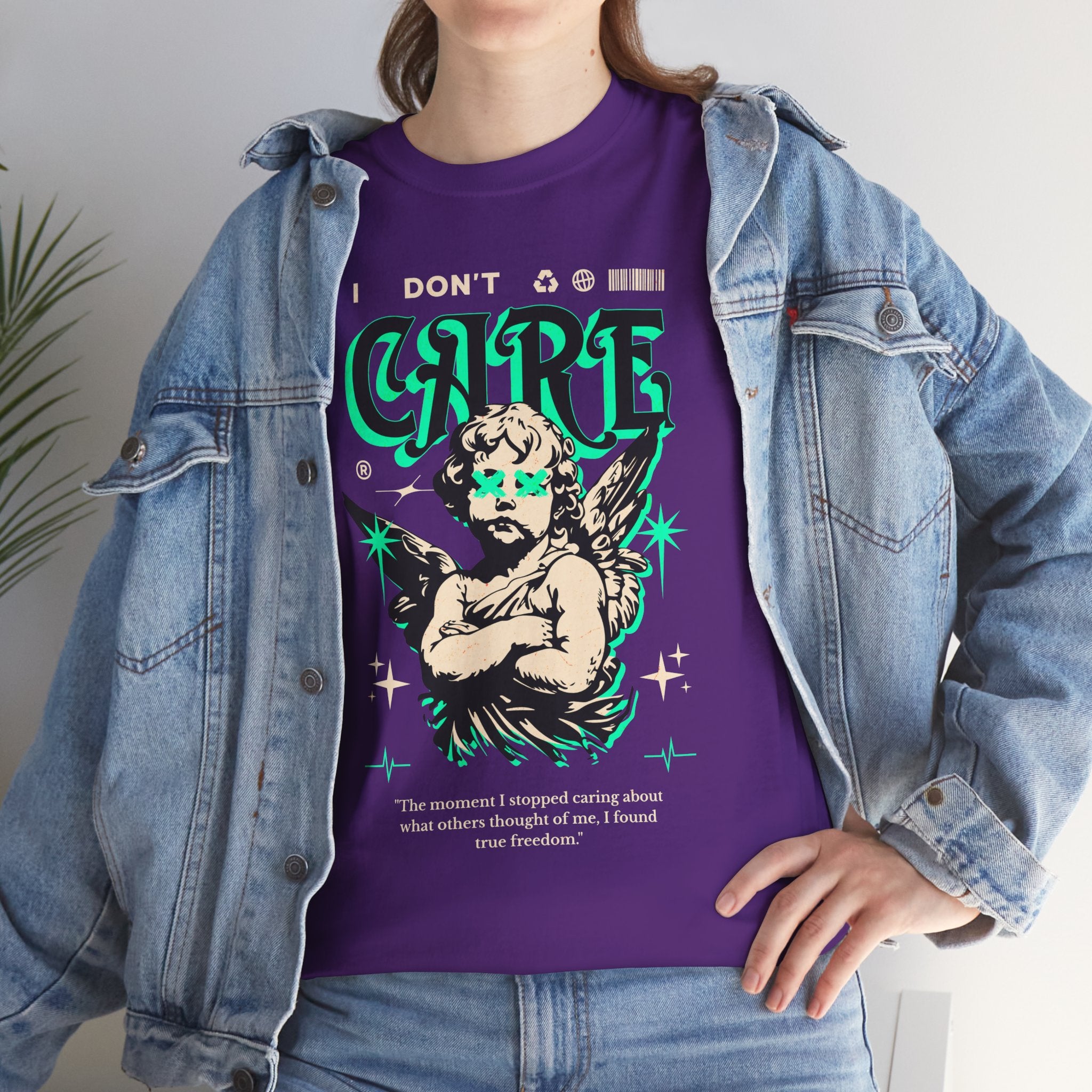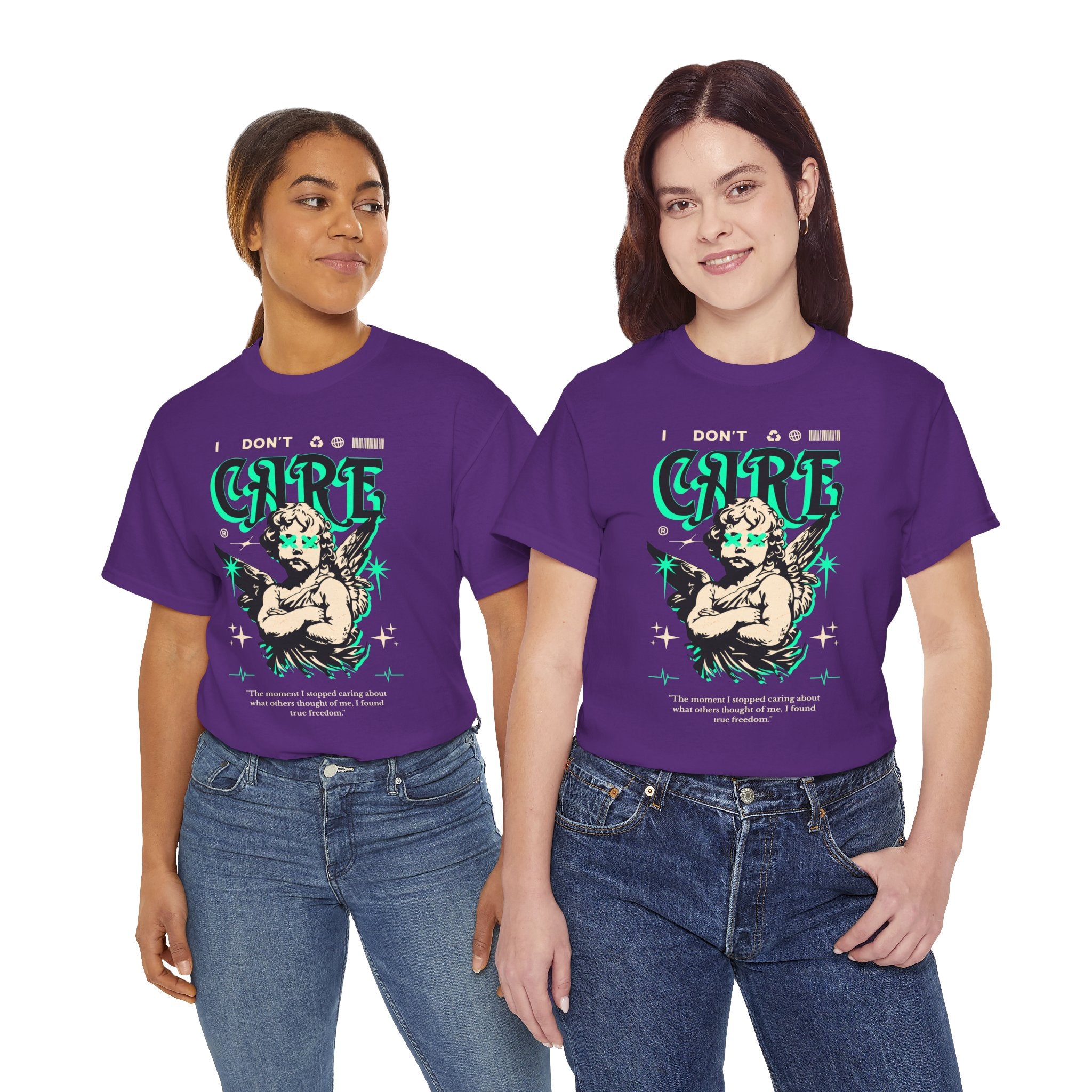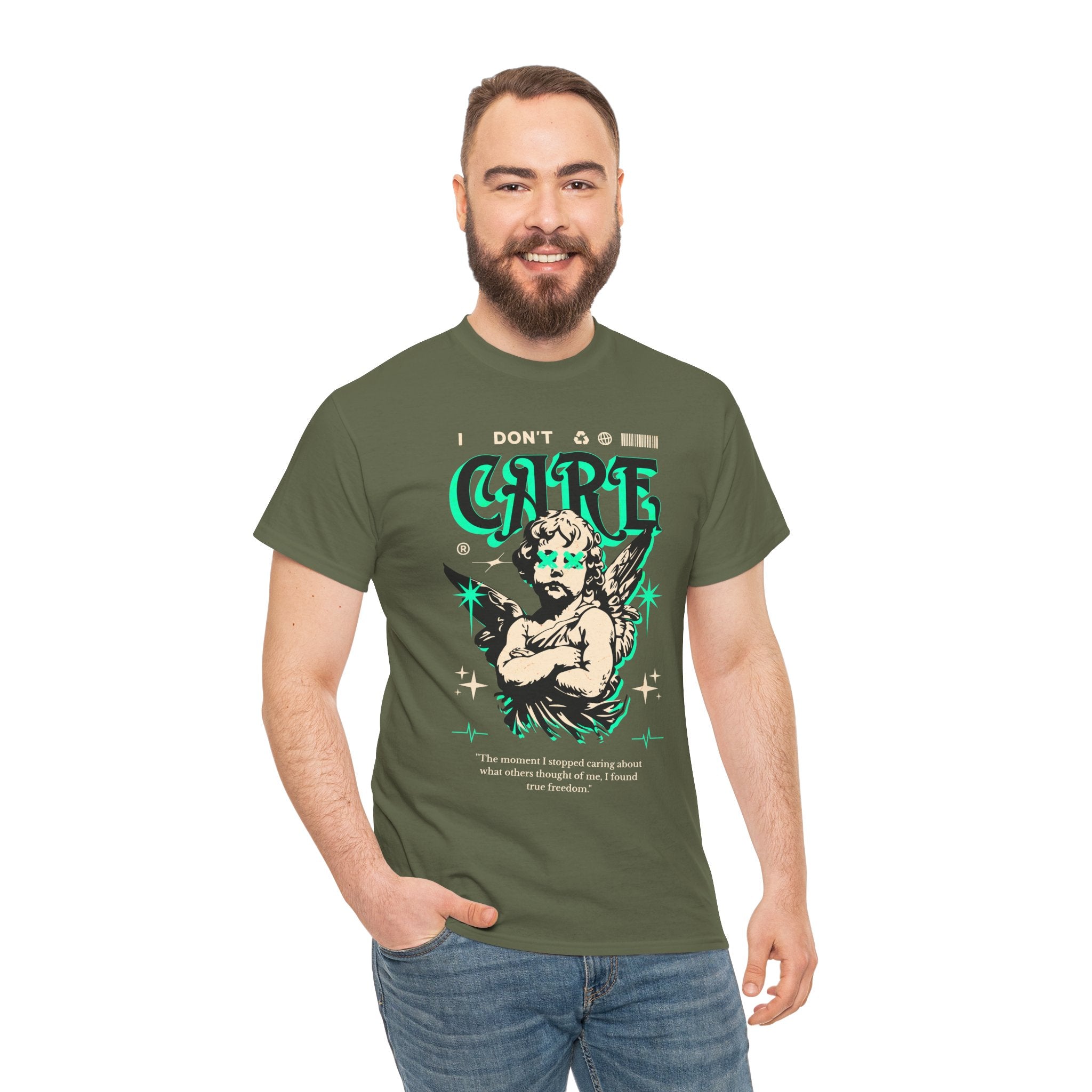 Unisex Heavy Cotton Tee with I Don’t Care Angel design