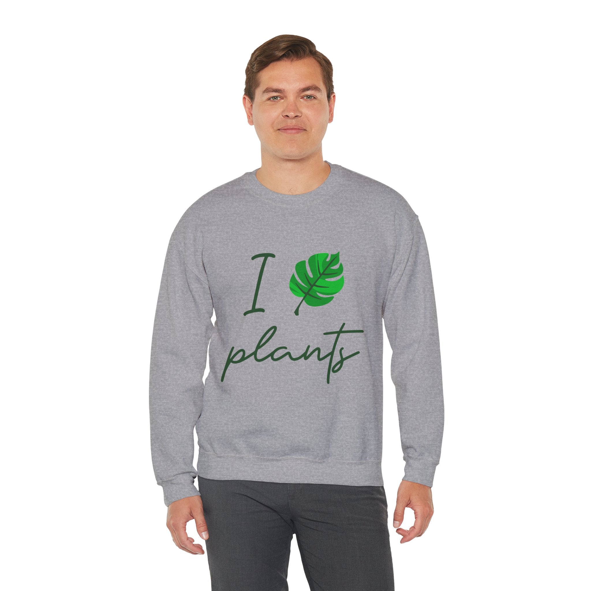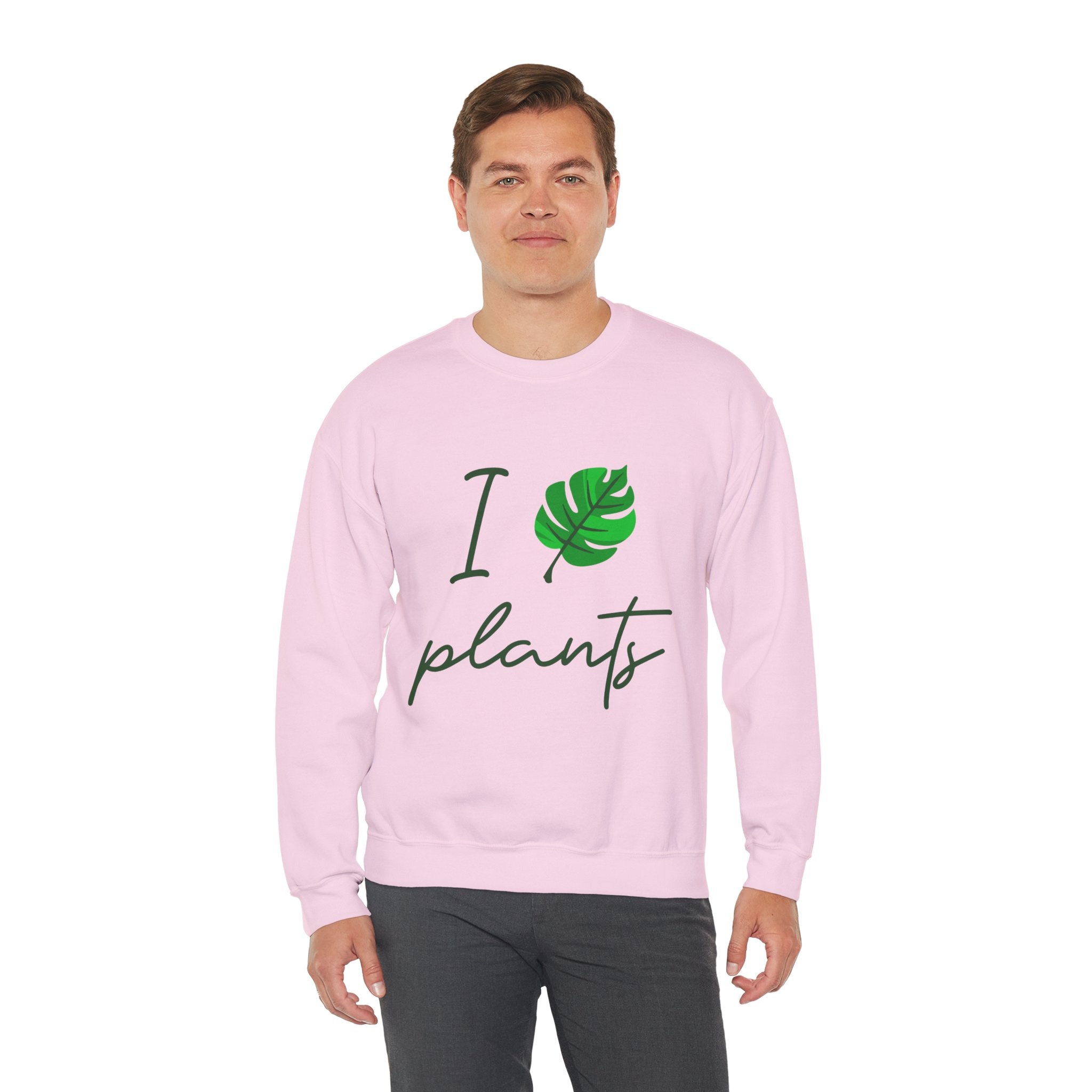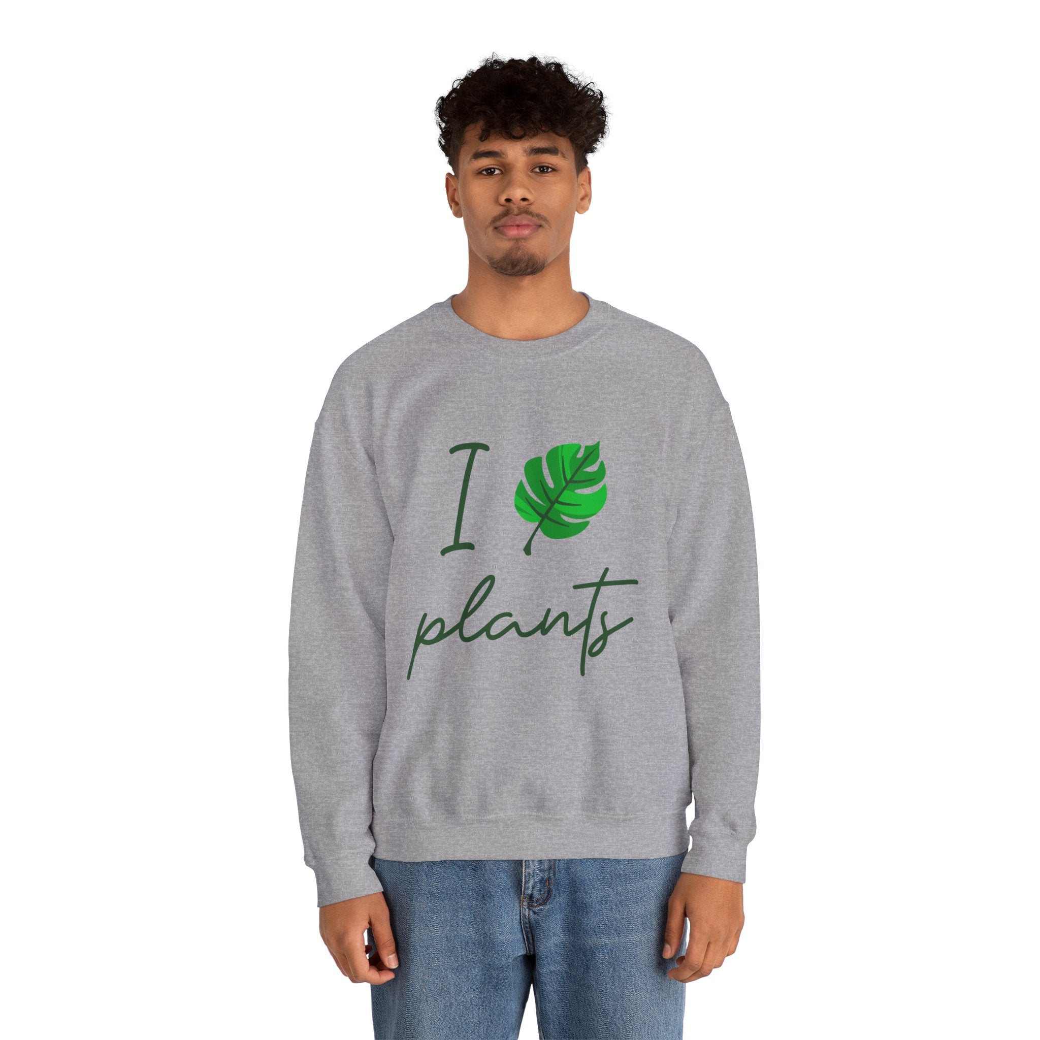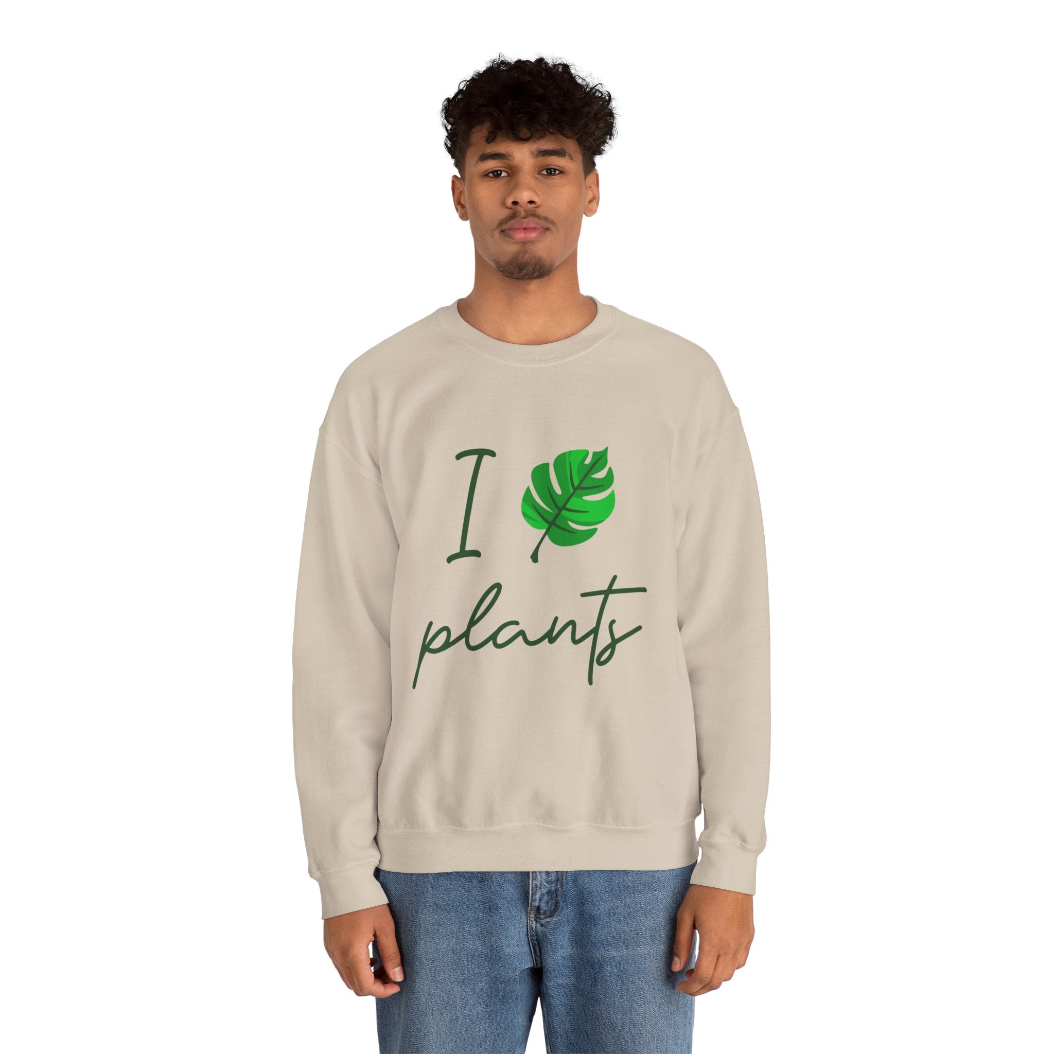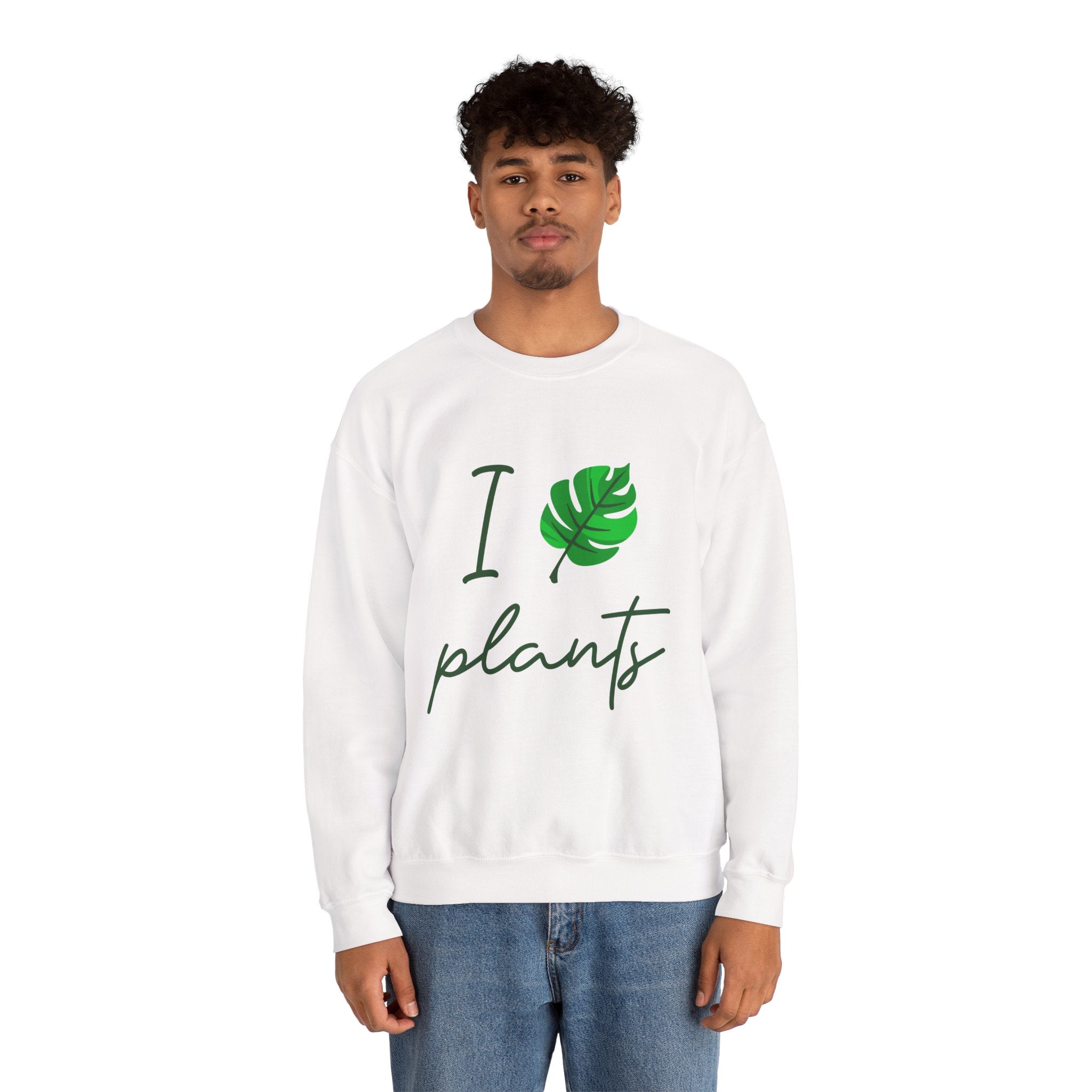 Unisex crewneck sweatshirt with I Love Plants leaf design