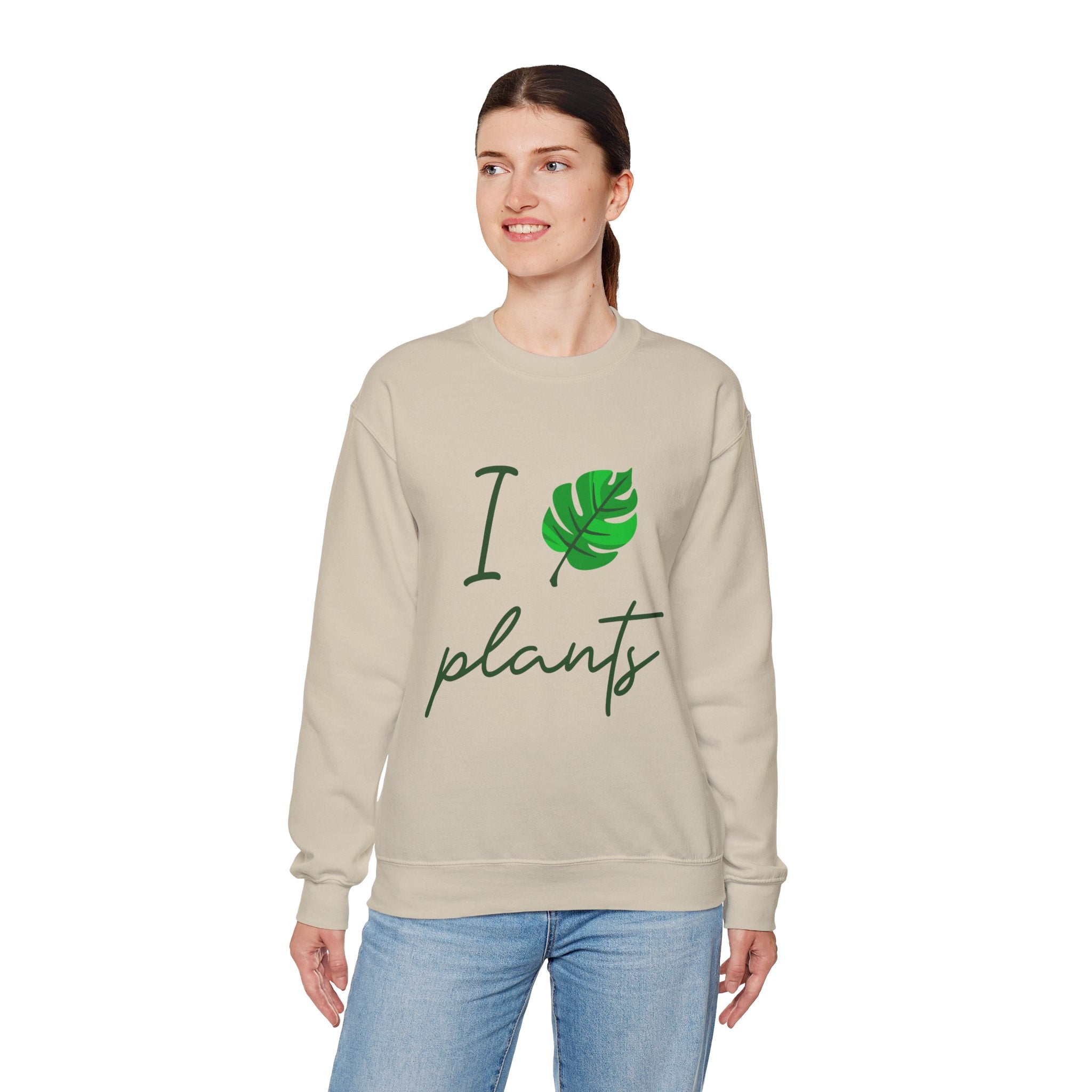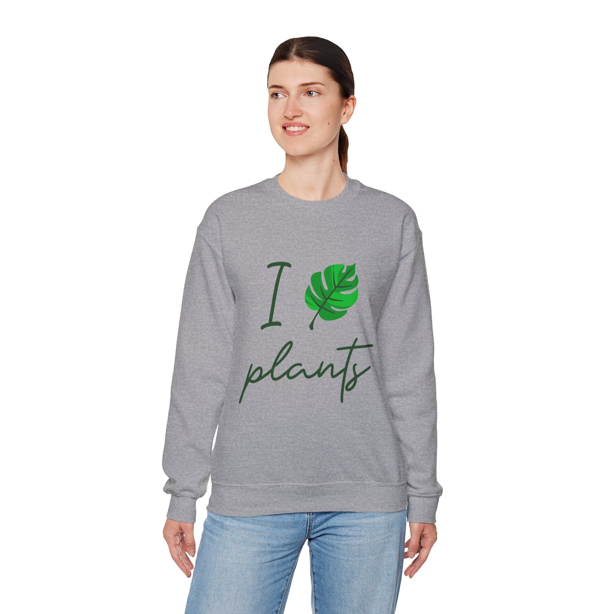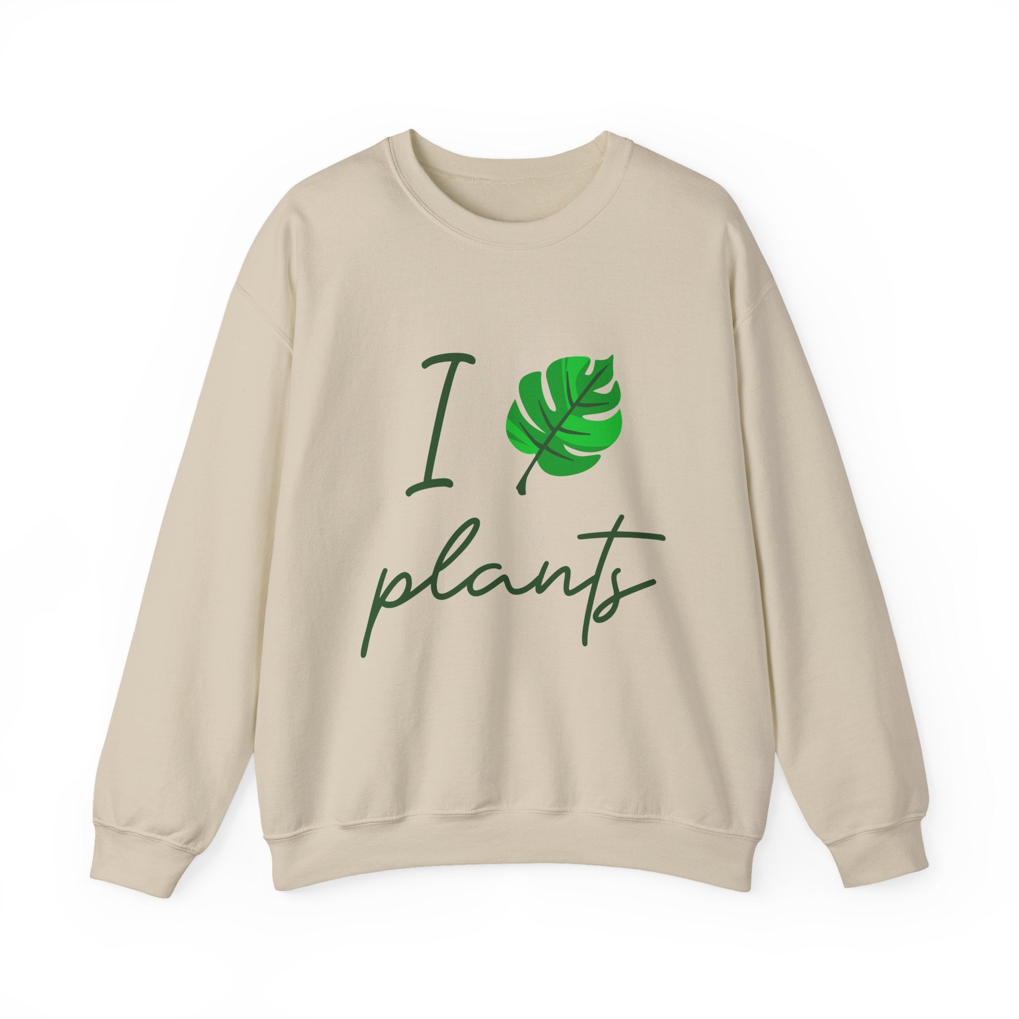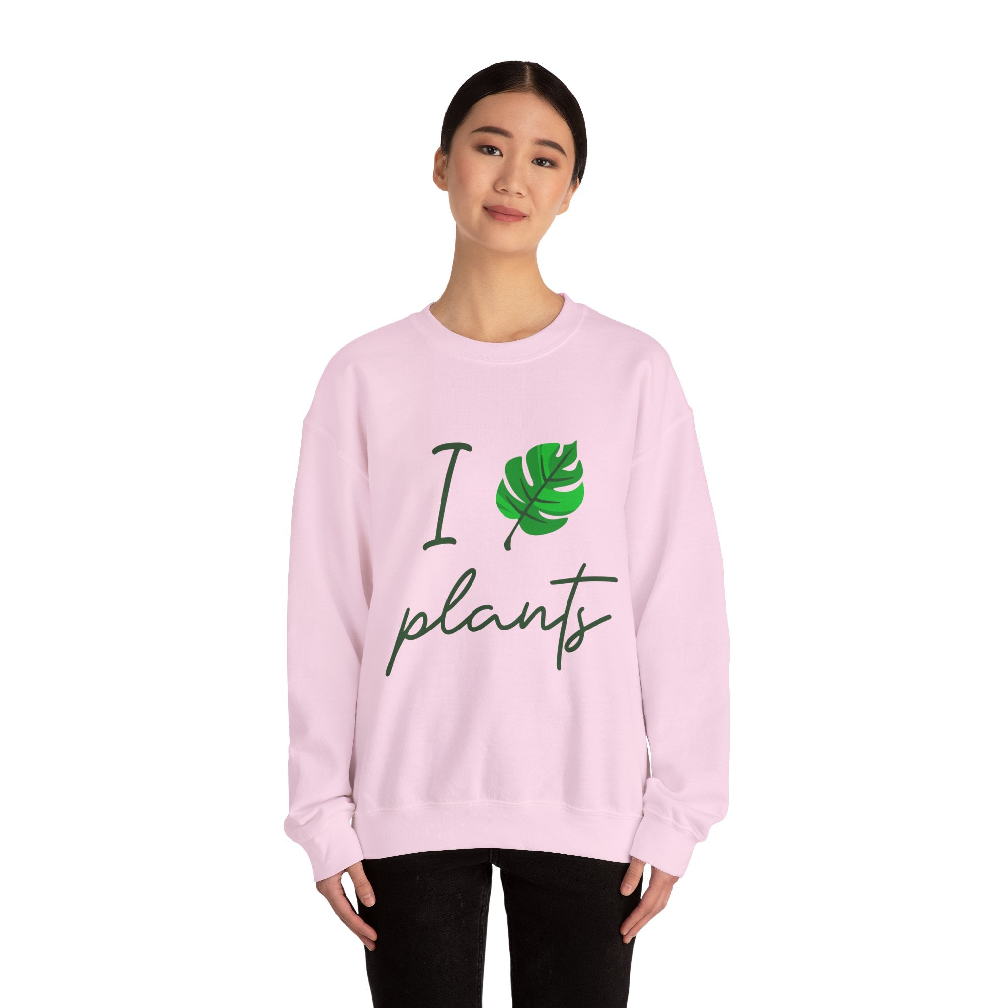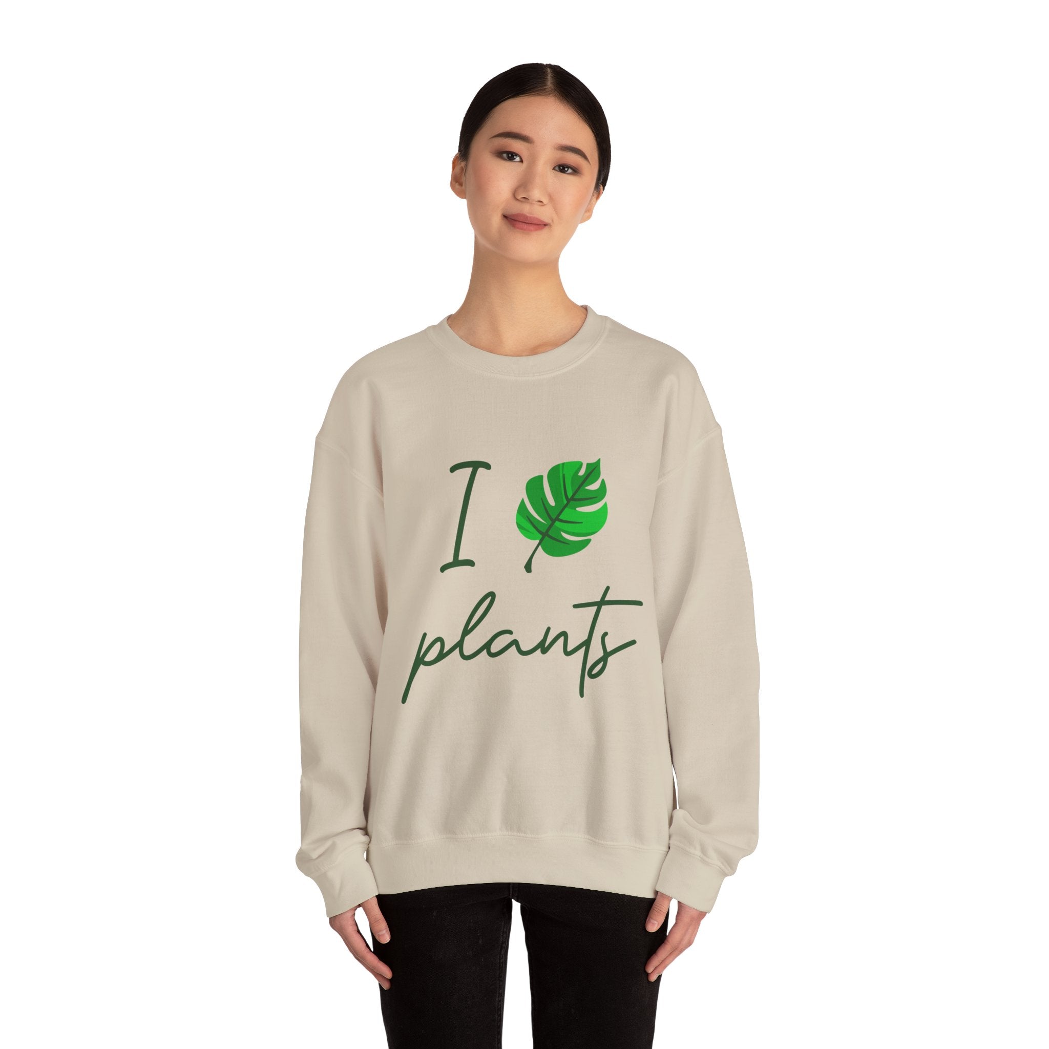 Unisex crewneck sweatshirt with I Love Plants leaf design