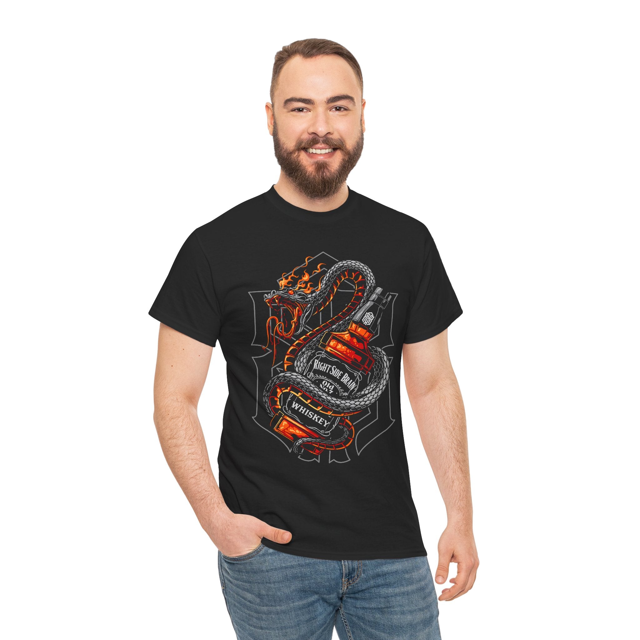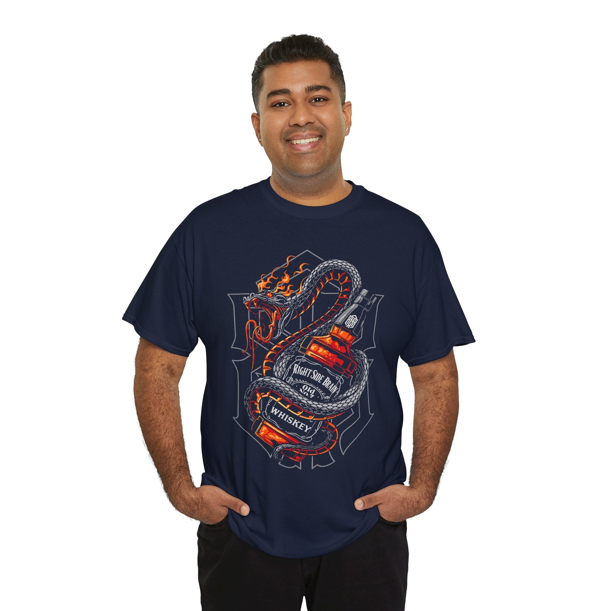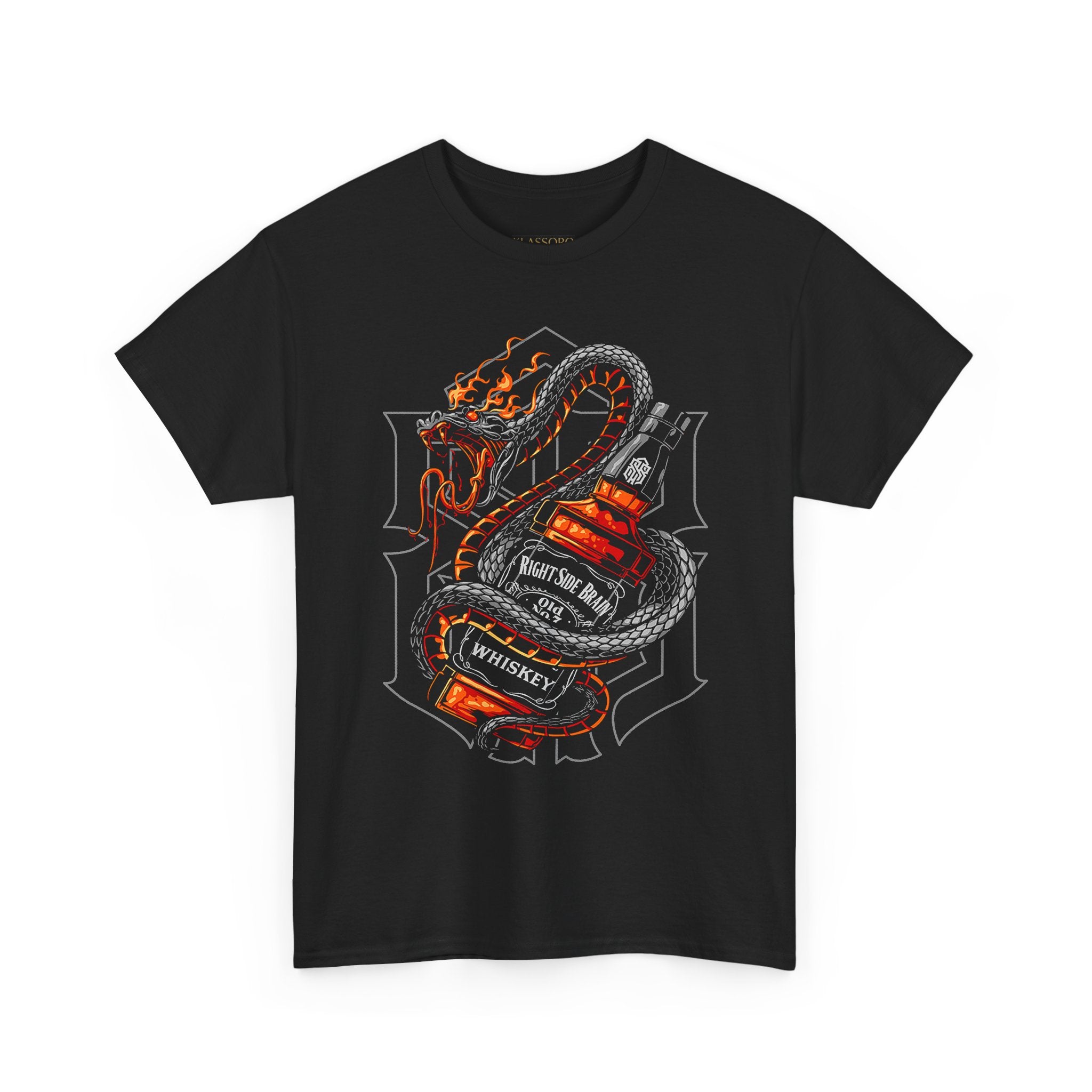 The Inferno Spirit Tee captures the essence of rebellion and raw strength — a fierce, flame-wrapped dragon coiled around a glowing whiskey bottle.