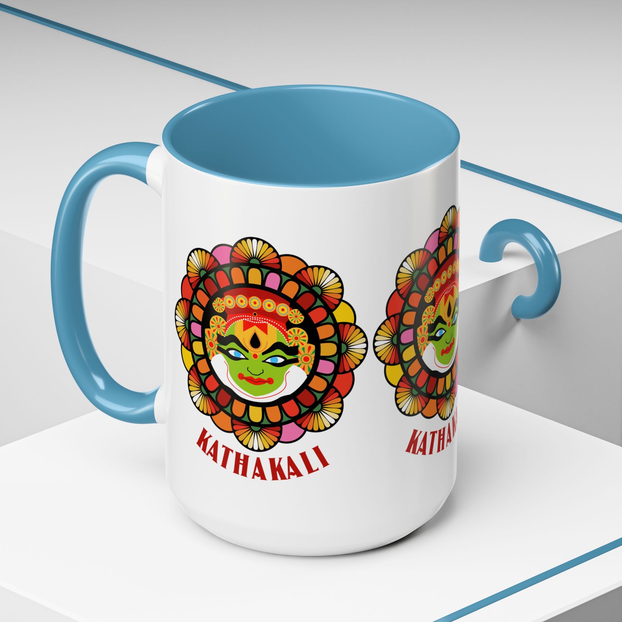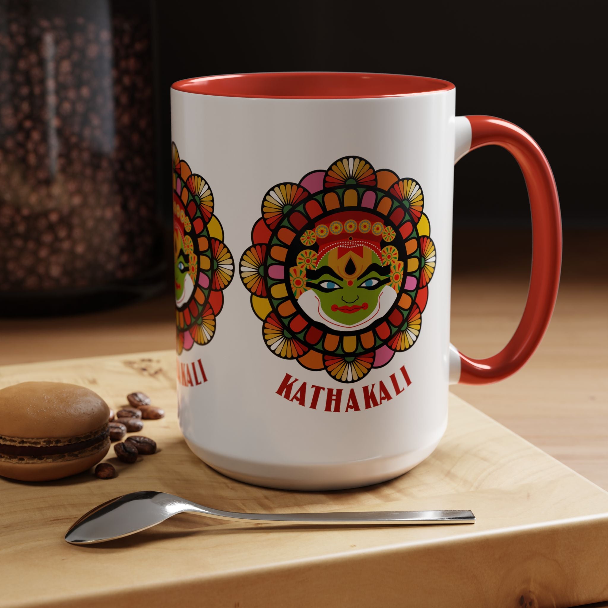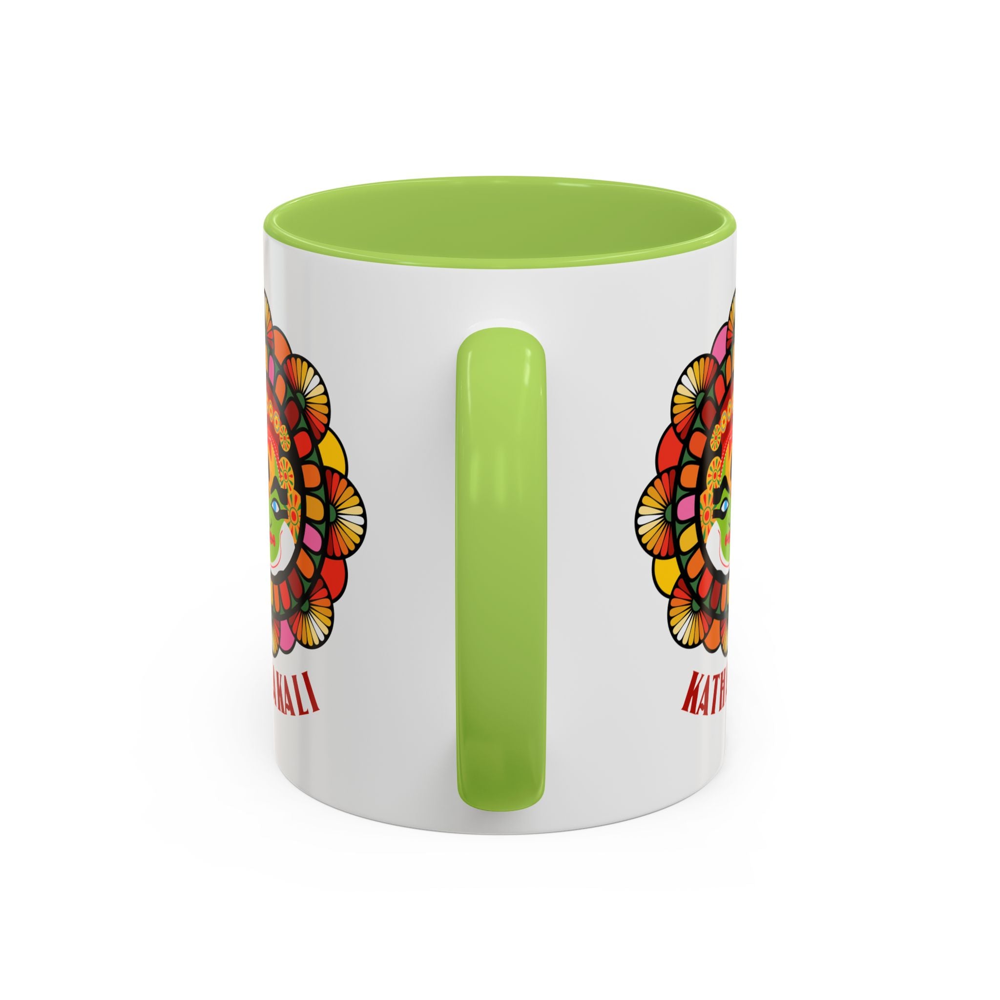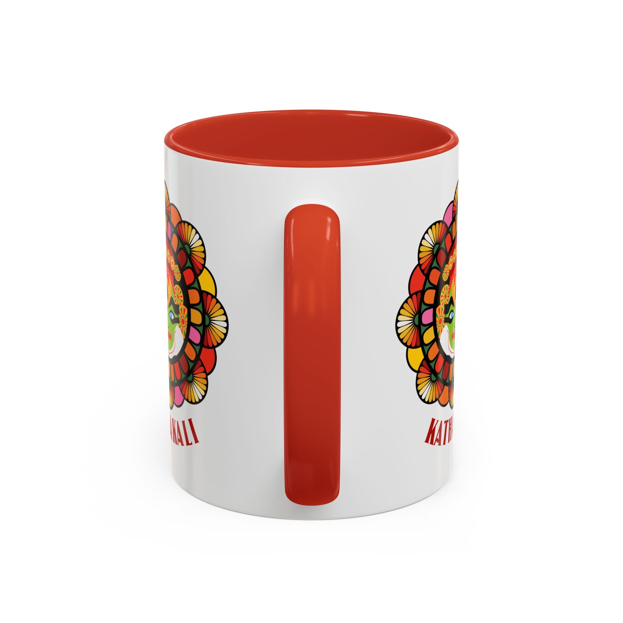 The Kathakali Accent Coffee Mug celebrates the timeless art form of Kerala, India, bringing the vivid colors and intricate face painting of this classical dance right into your daily routine.