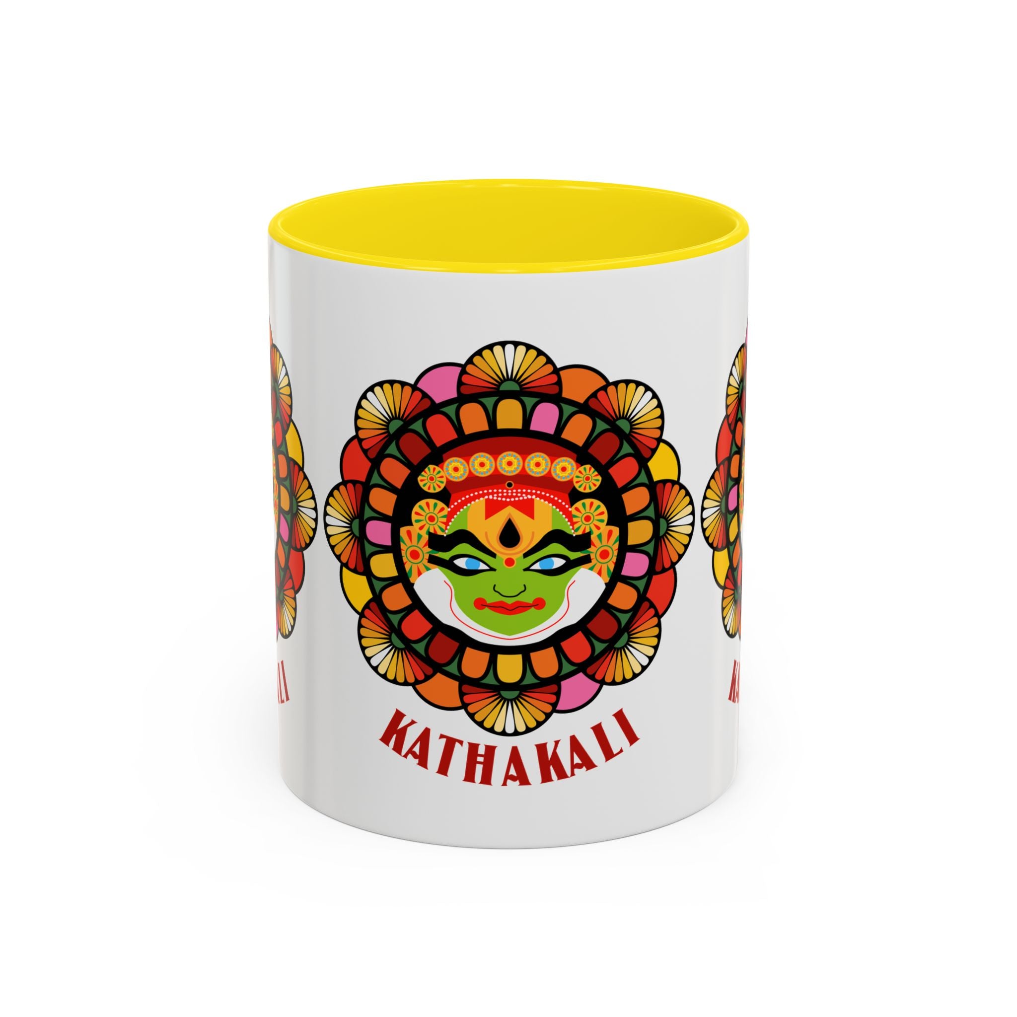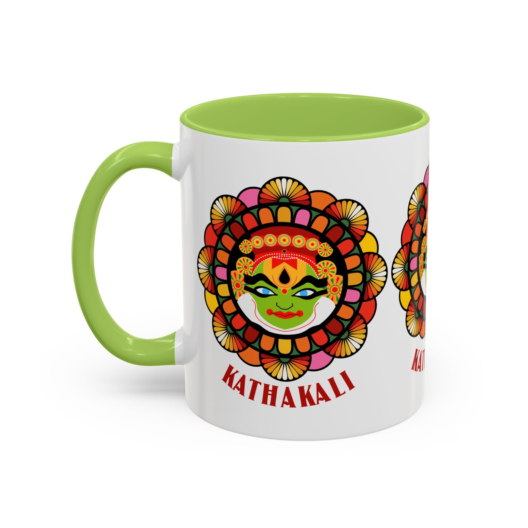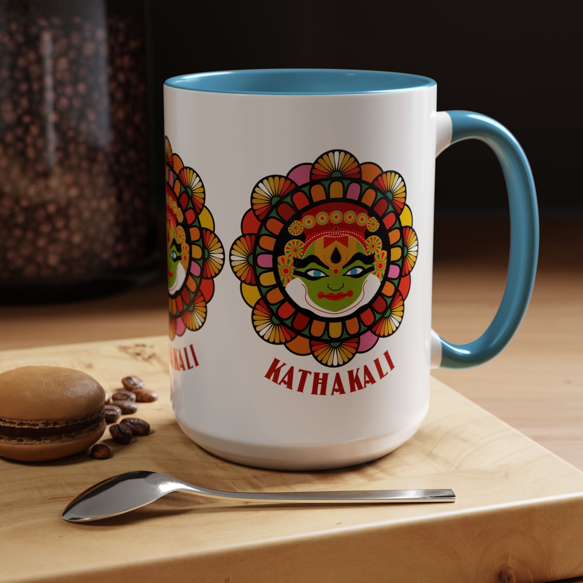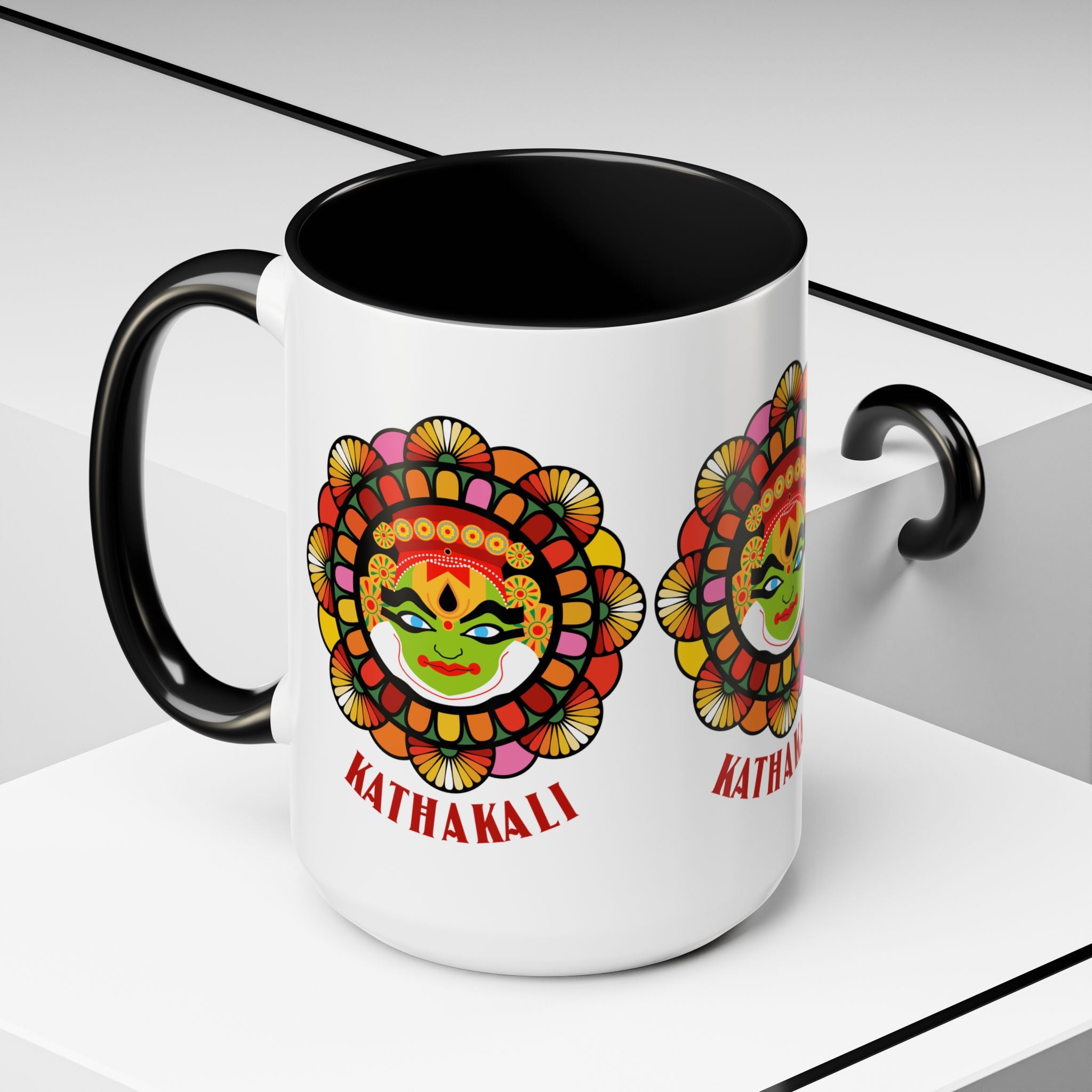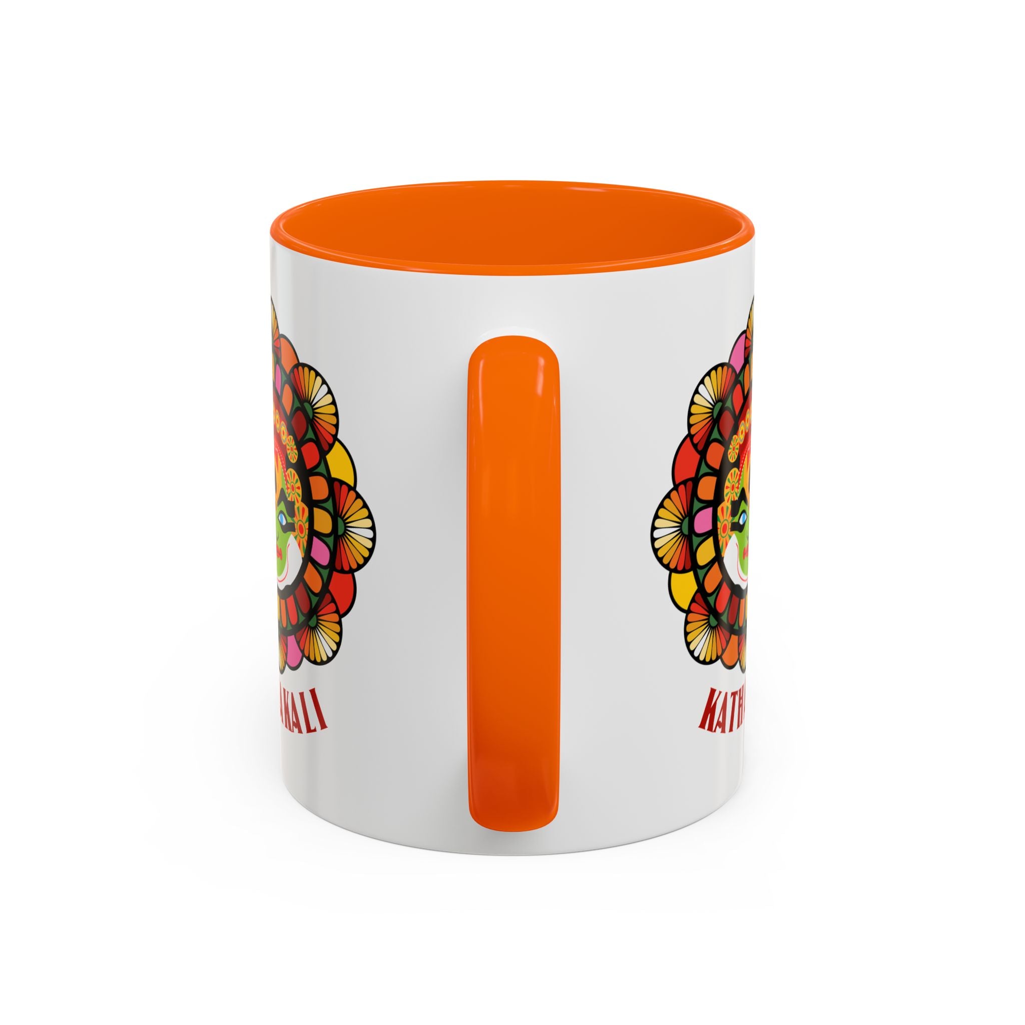 The Kathakali Accent Coffee Mug celebrates the timeless art form of Kerala, India, bringing the vivid colors and intricate face painting of this classical dance right into your daily routine.