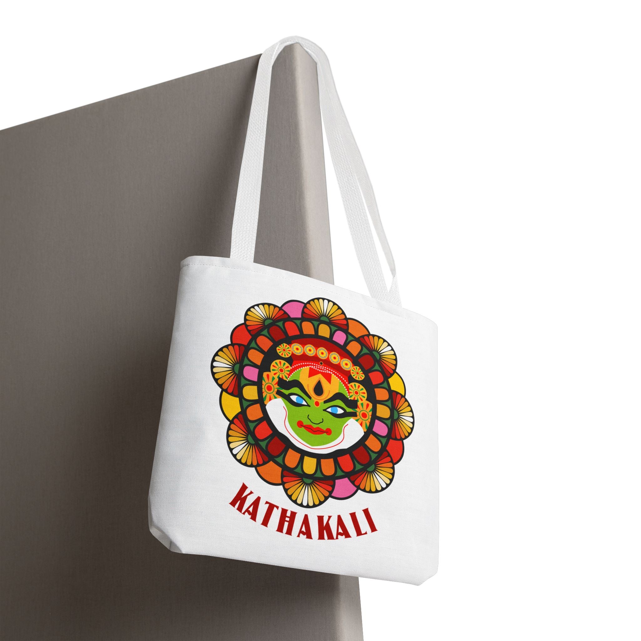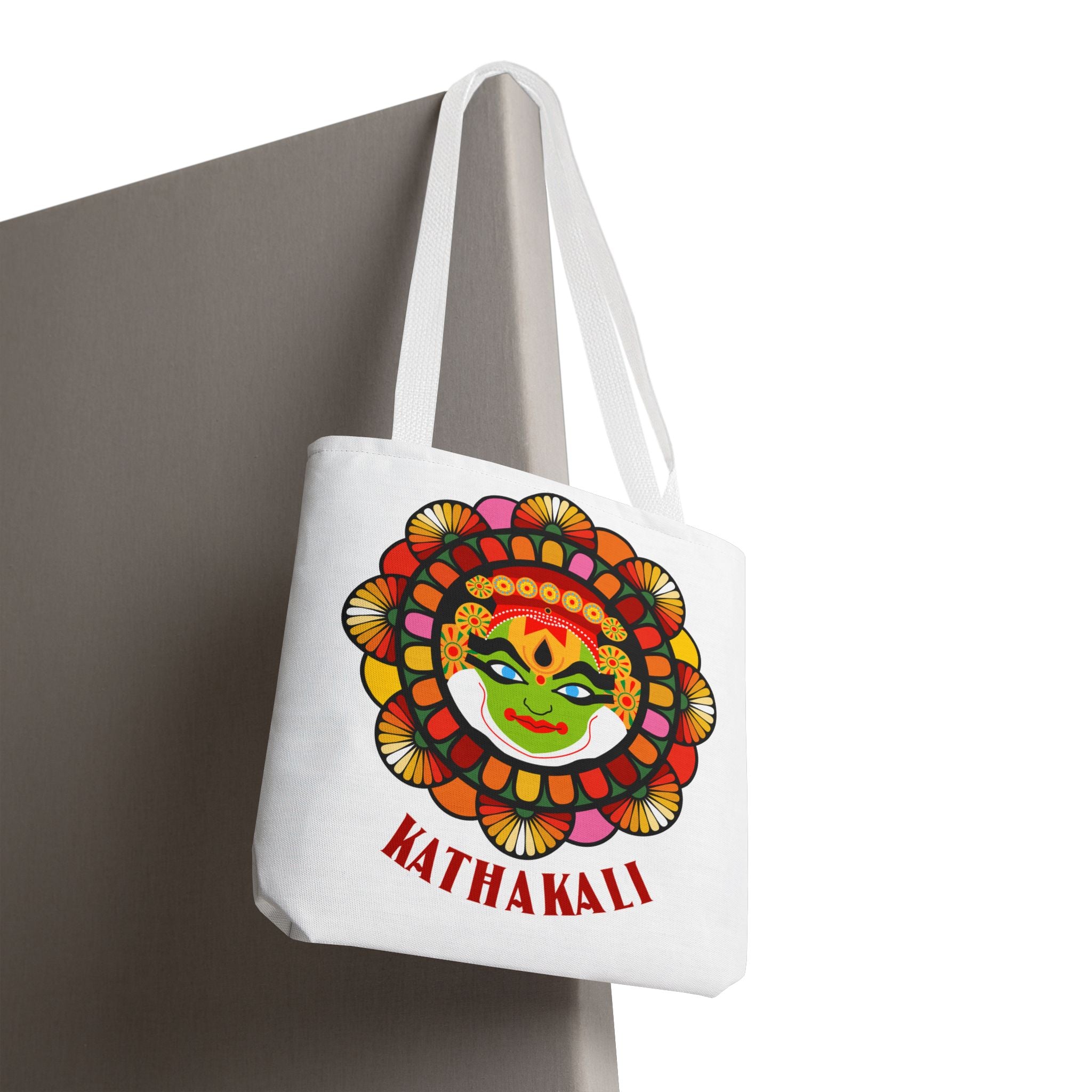 Celebrate Kerala’s iconic Kathakali dance-drama with this Kathakali Tote Bag. Featuring a vibrant Kathakali face design, this reusable canvas bag blends cultural pride with everyday practicality.