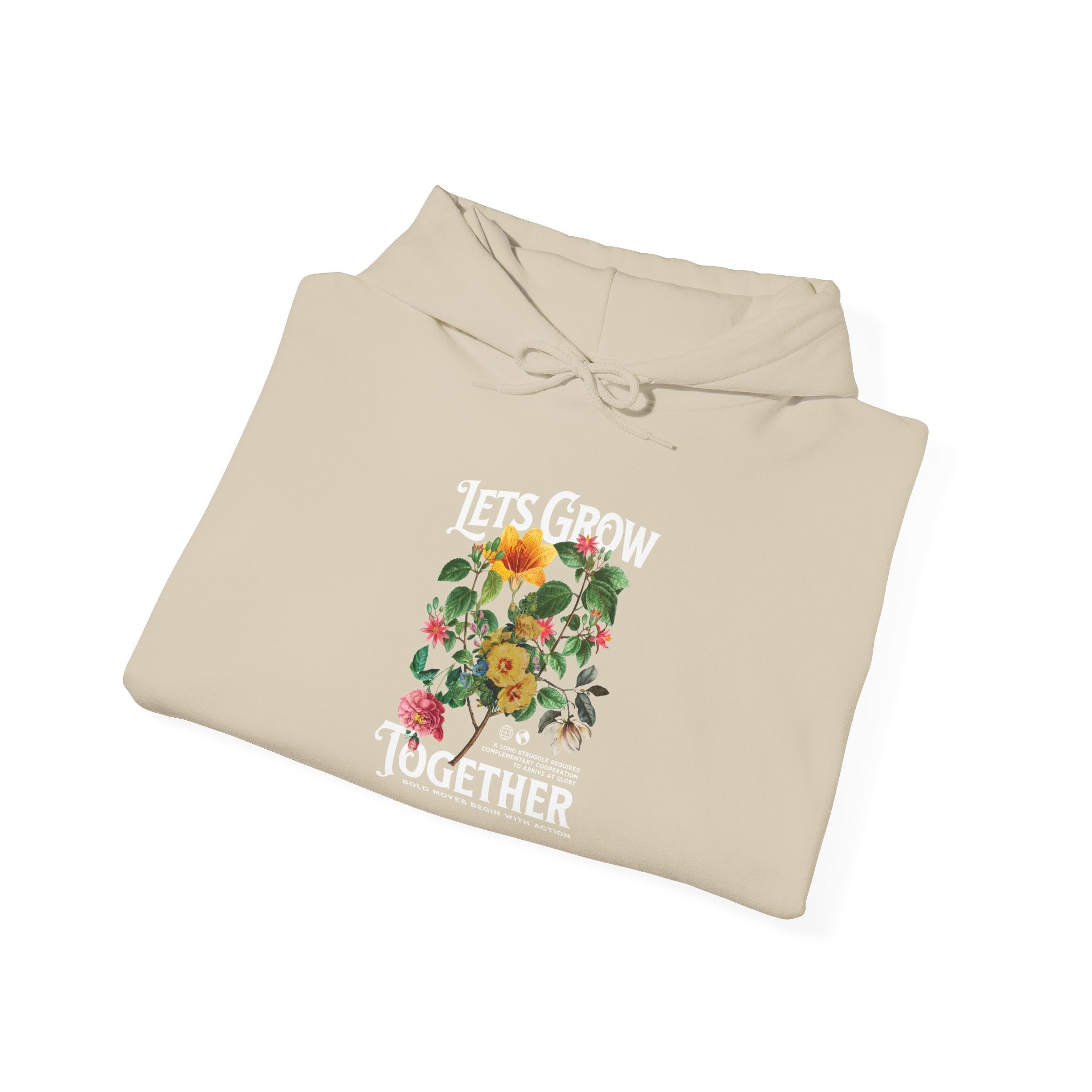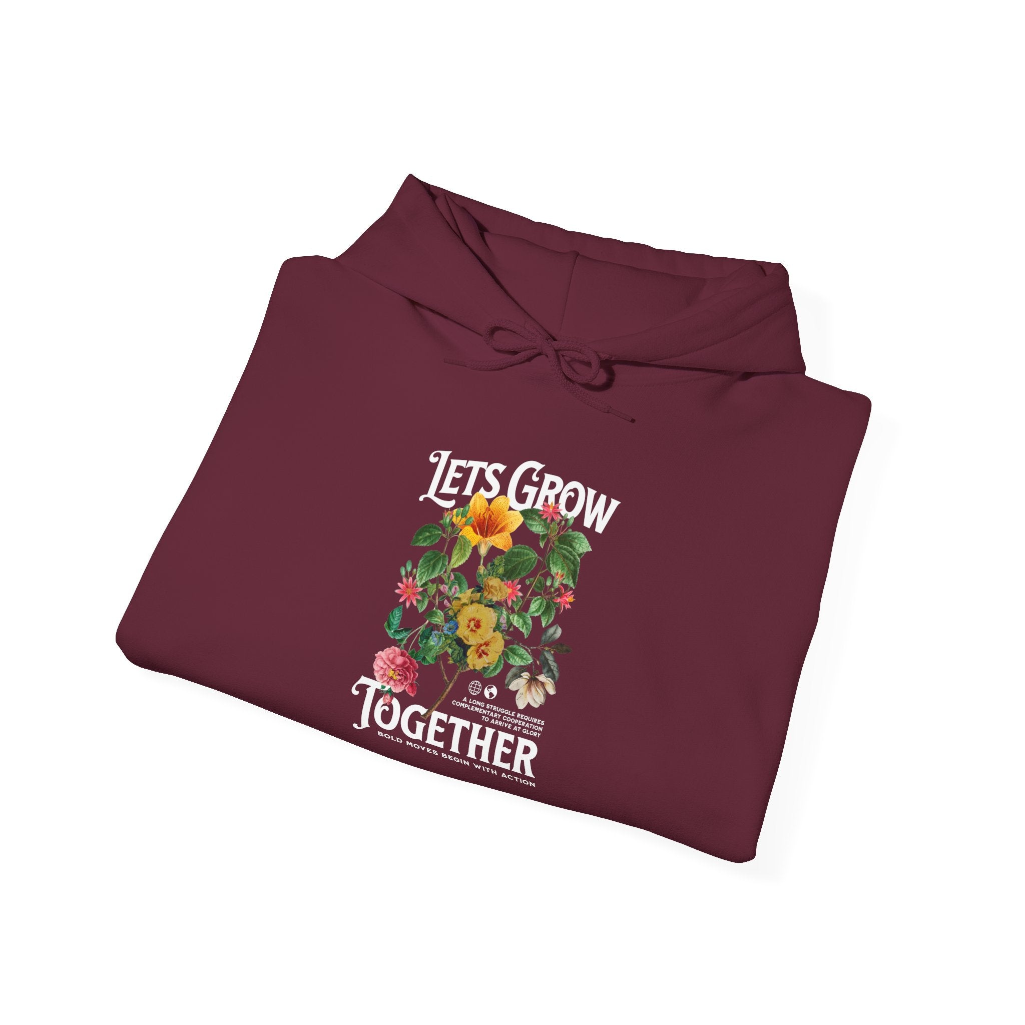 This unisex heavy blend hooded sweatshirt offers both comfort and style, perfect for anyone who embraces a cozy yet trendy look. The vibrant design promotes positivity with the message "Let's Grow Together," making it an excellent choice for community events, gardening enthusiasts, or those who appreciate nature's beauty. Ideal for chilly days, this sweatshirt brings warmth and style to your daily wardrobe. Celebrate friendships, growth, and togetherness during family gatherings, outdoor festivals, or casual outings. It's a thoughtful gift for special occasions such as birthdays, holidays, or just because; its universal appeal makes it suitable for everyone, from teenagers to adults. Wear it while lounging at home, running errands, or enjoying a day out with friends.