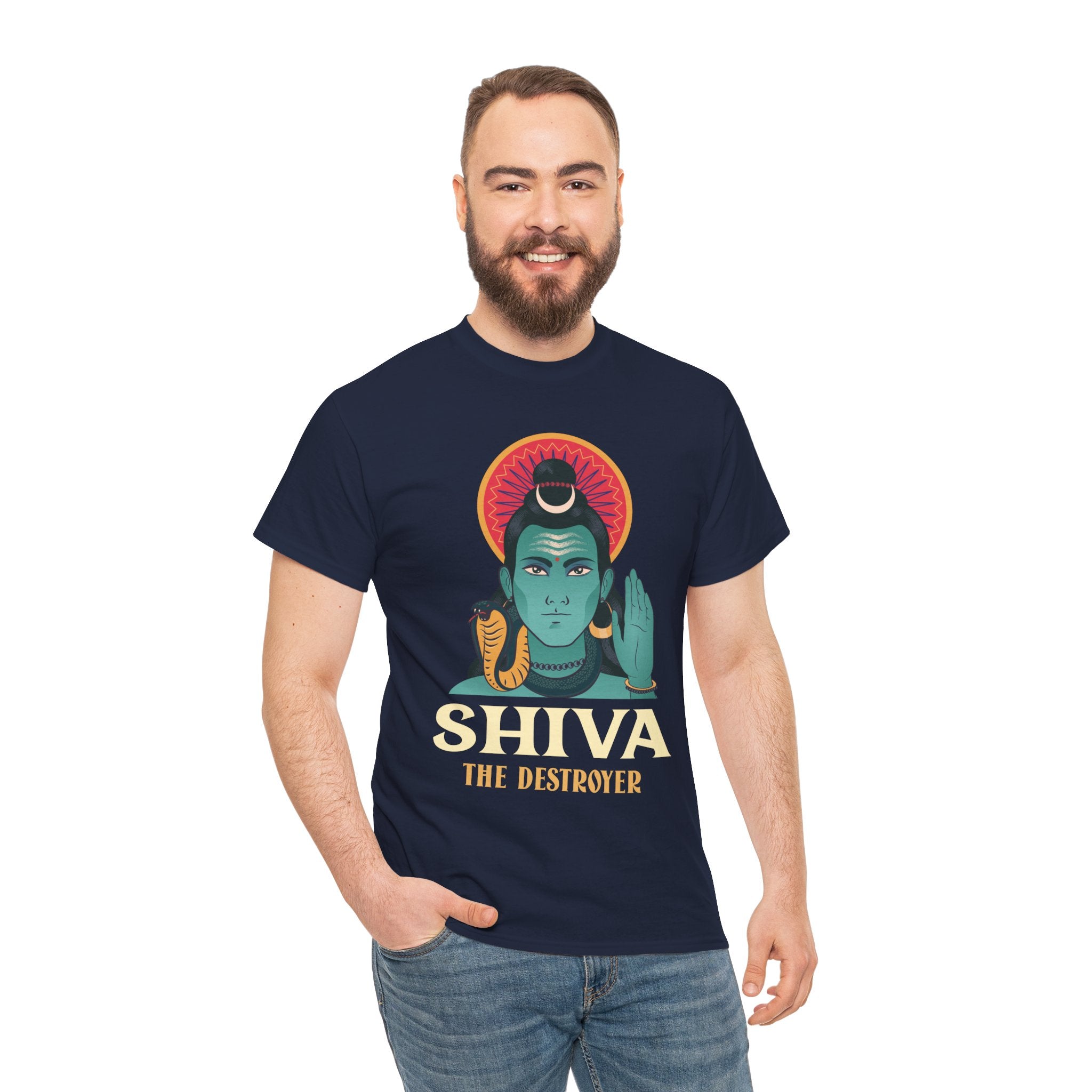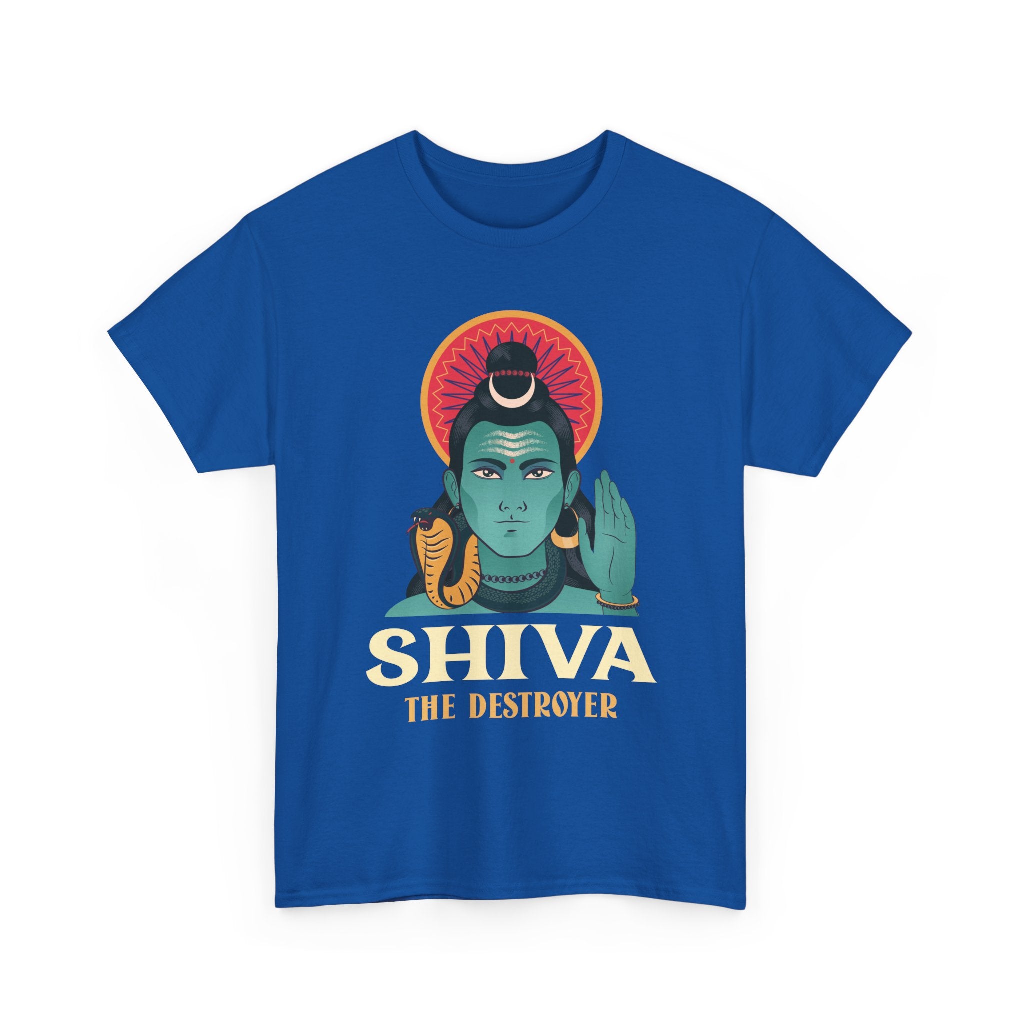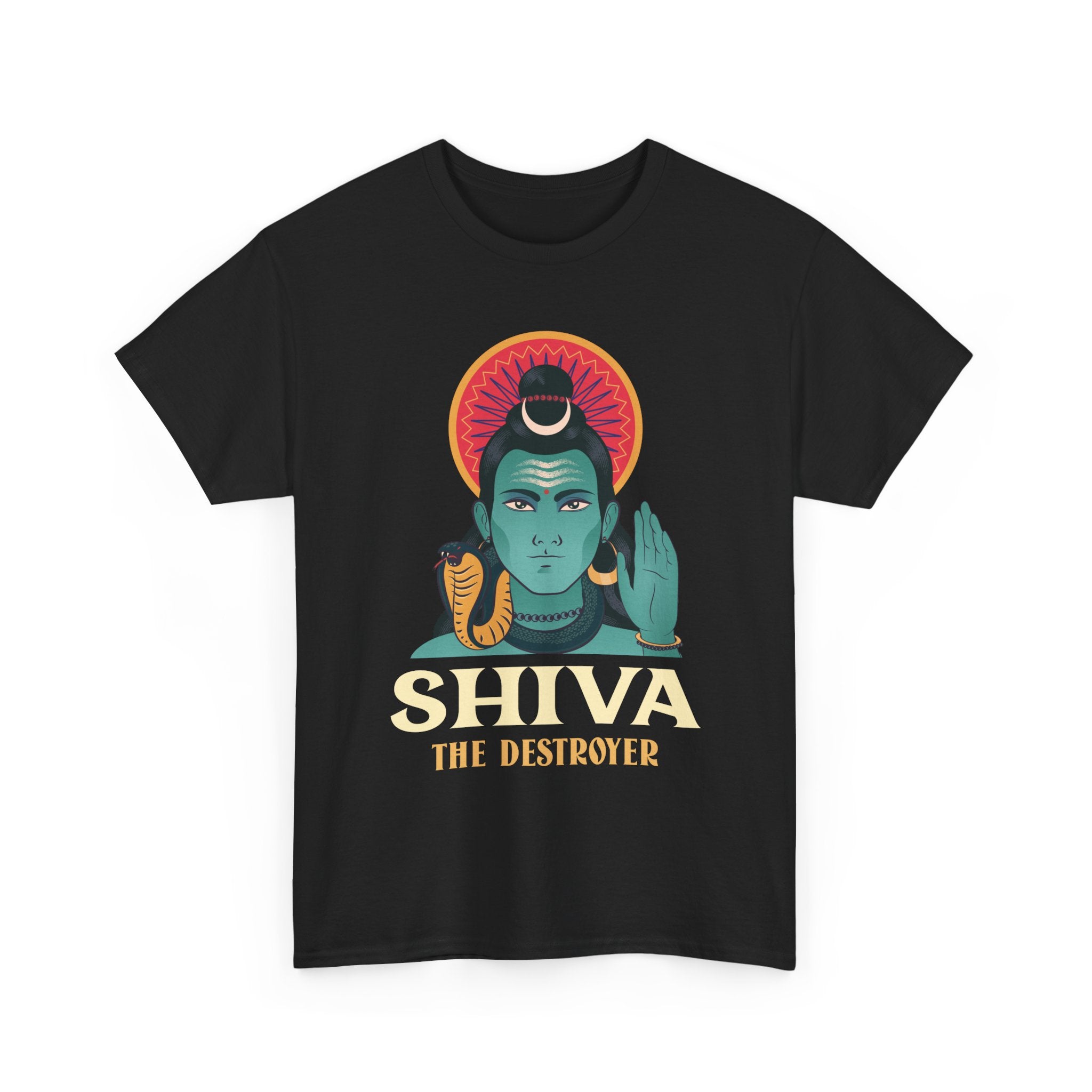 This Lord Shiva The Destroyer design captures Mahadev in a calm yet commanding form, symbolizing the destruction of negativity and the awakening of higher consciousness. The bold graphic styling combined with sacred Hindu symbolism makes this T shirt a powerful expression of faith, strength, and Sanatana Dharma pride.