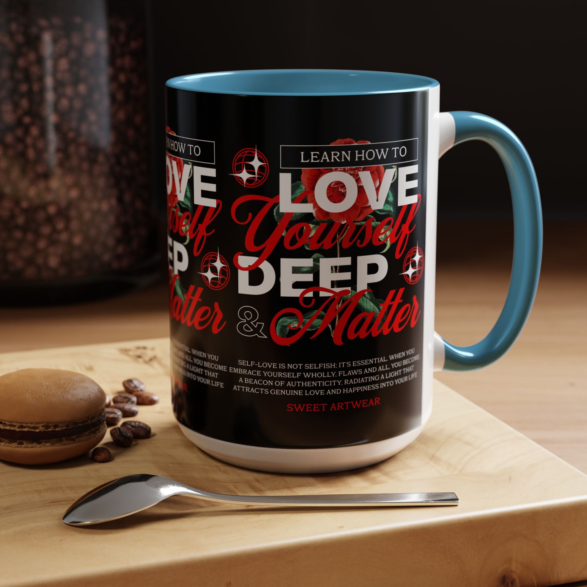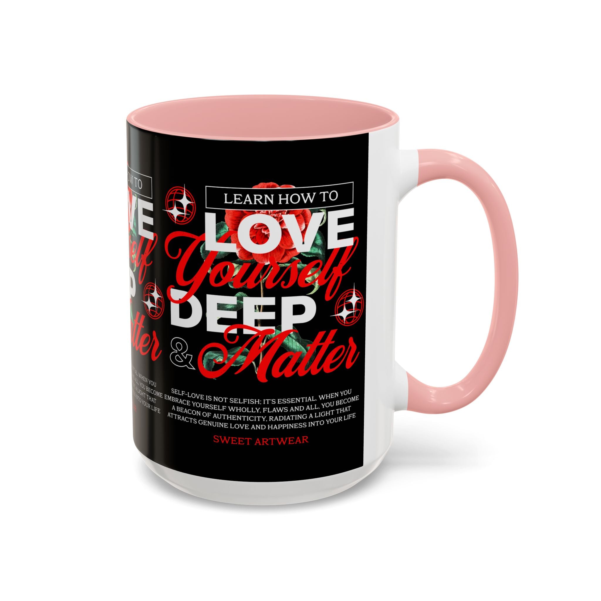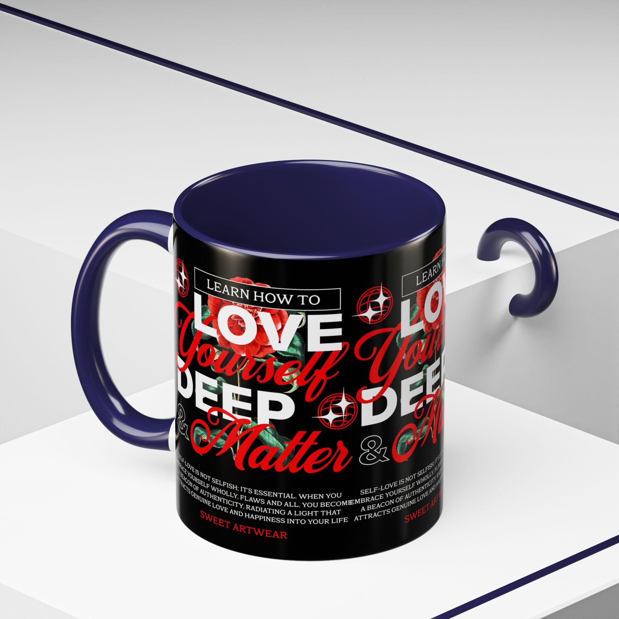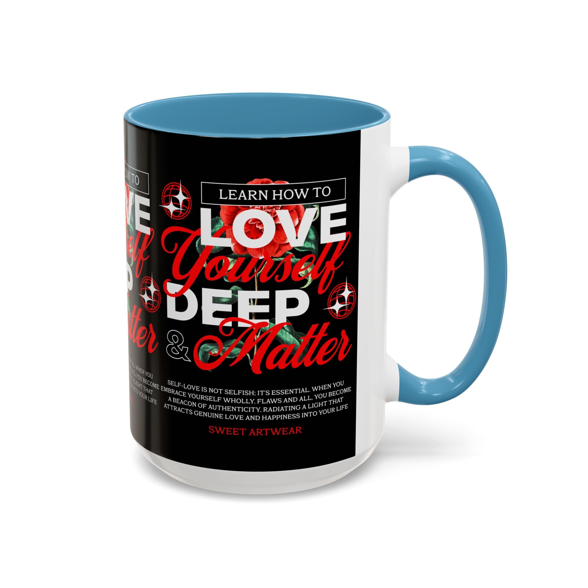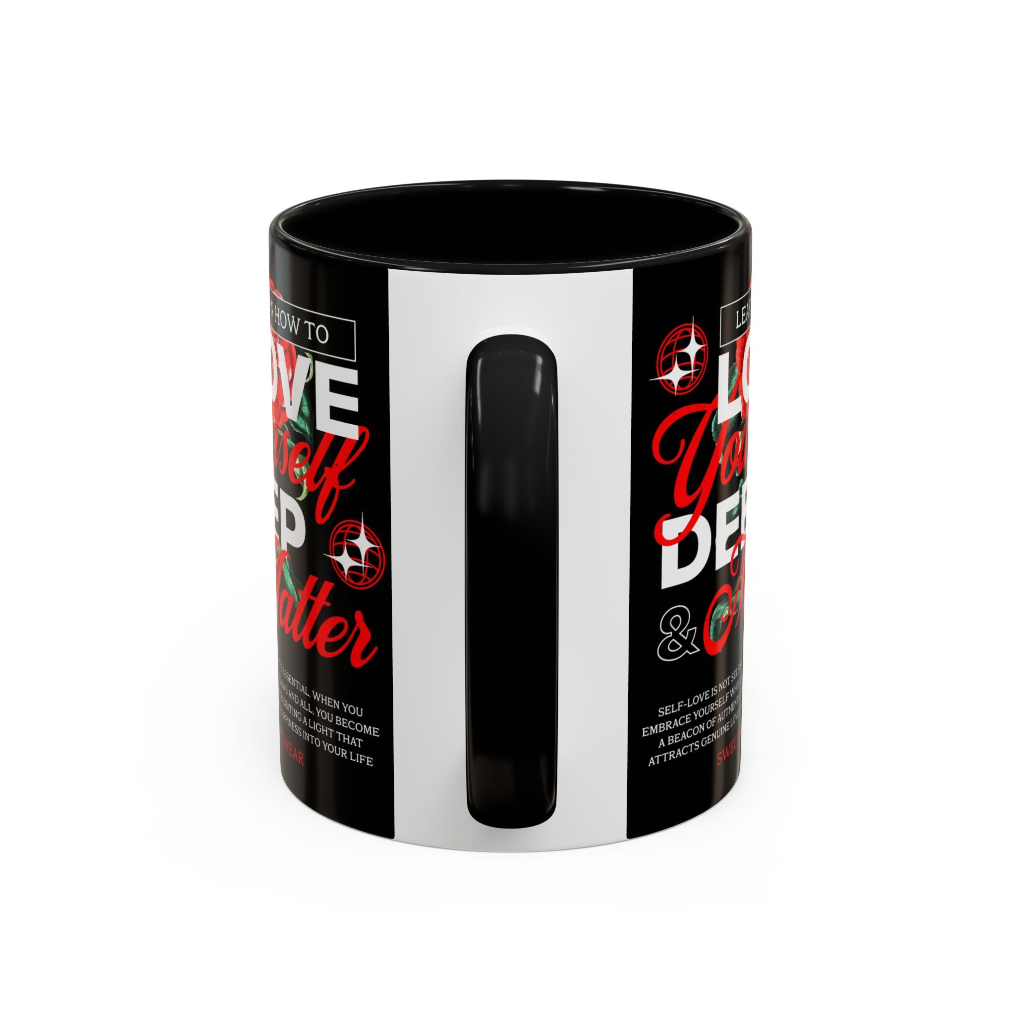 The Love Yourself Deep Accent Coffee Mug is more than just a mug β itβs a daily ritual of positivity and empowerment. Featuring bold typography, a striking red rose design, and motivational words, this mug inspires you to embrace confidence and self-love with every sip.