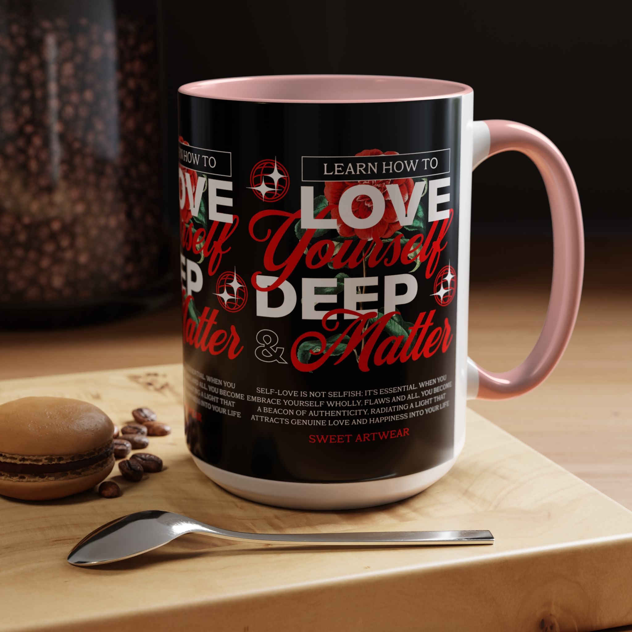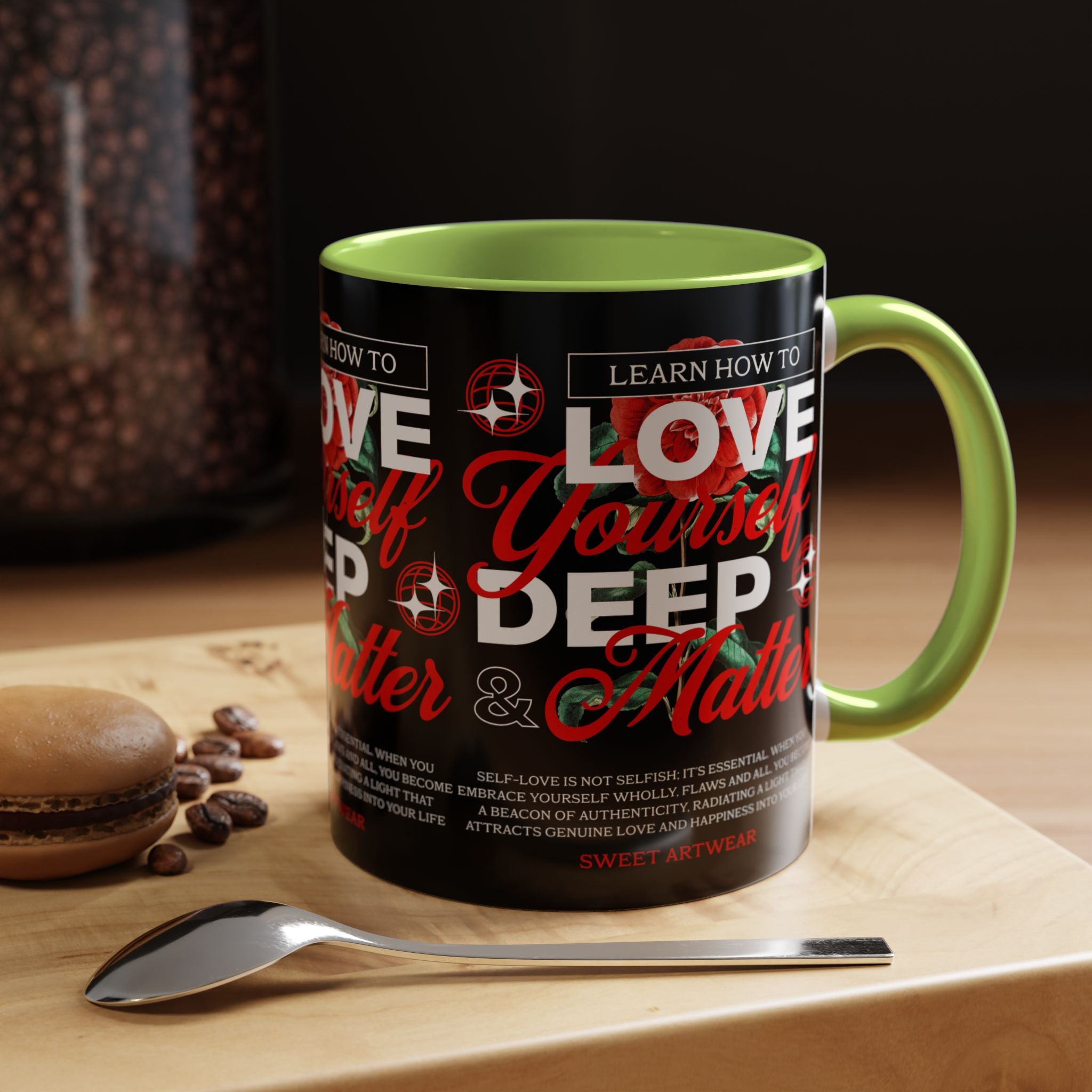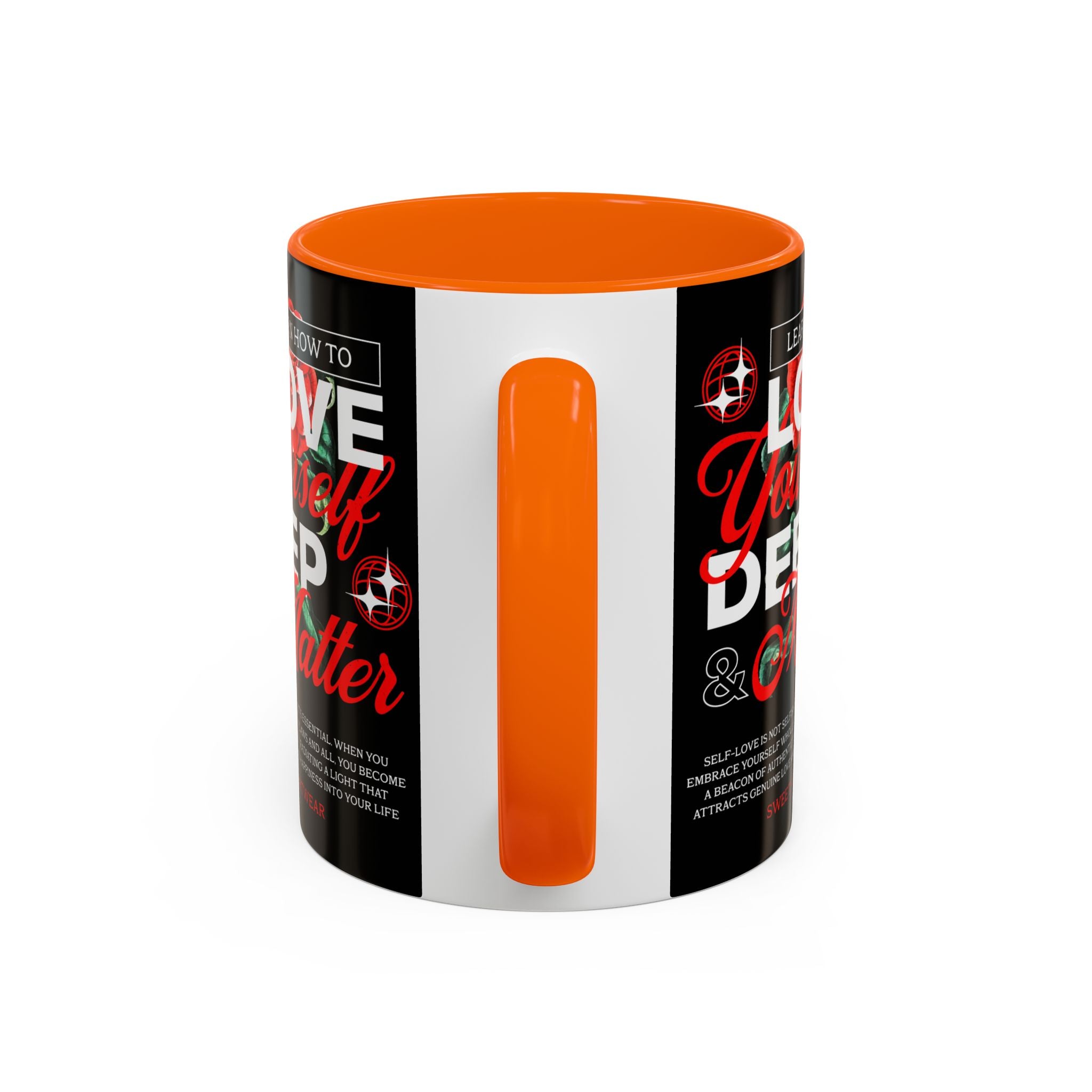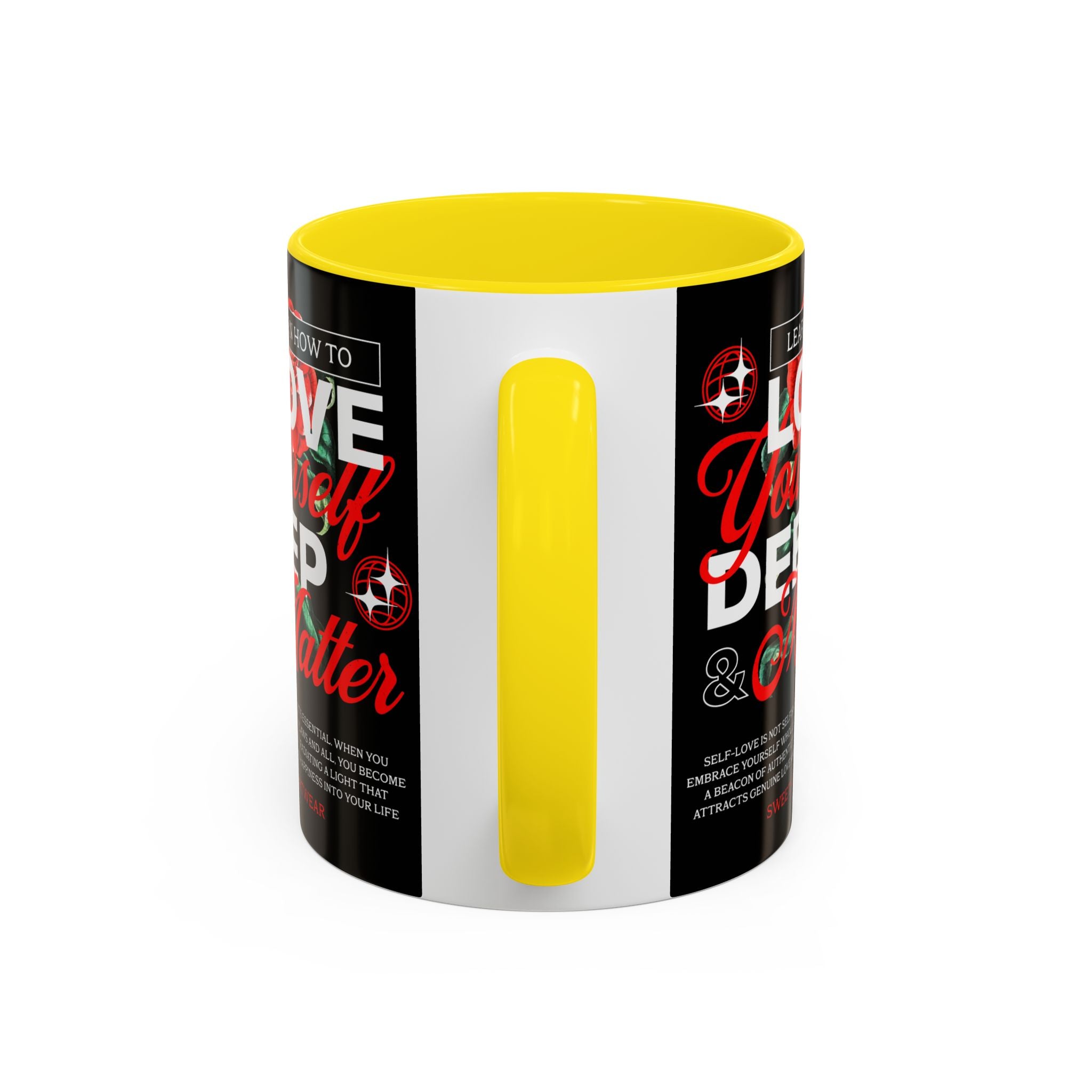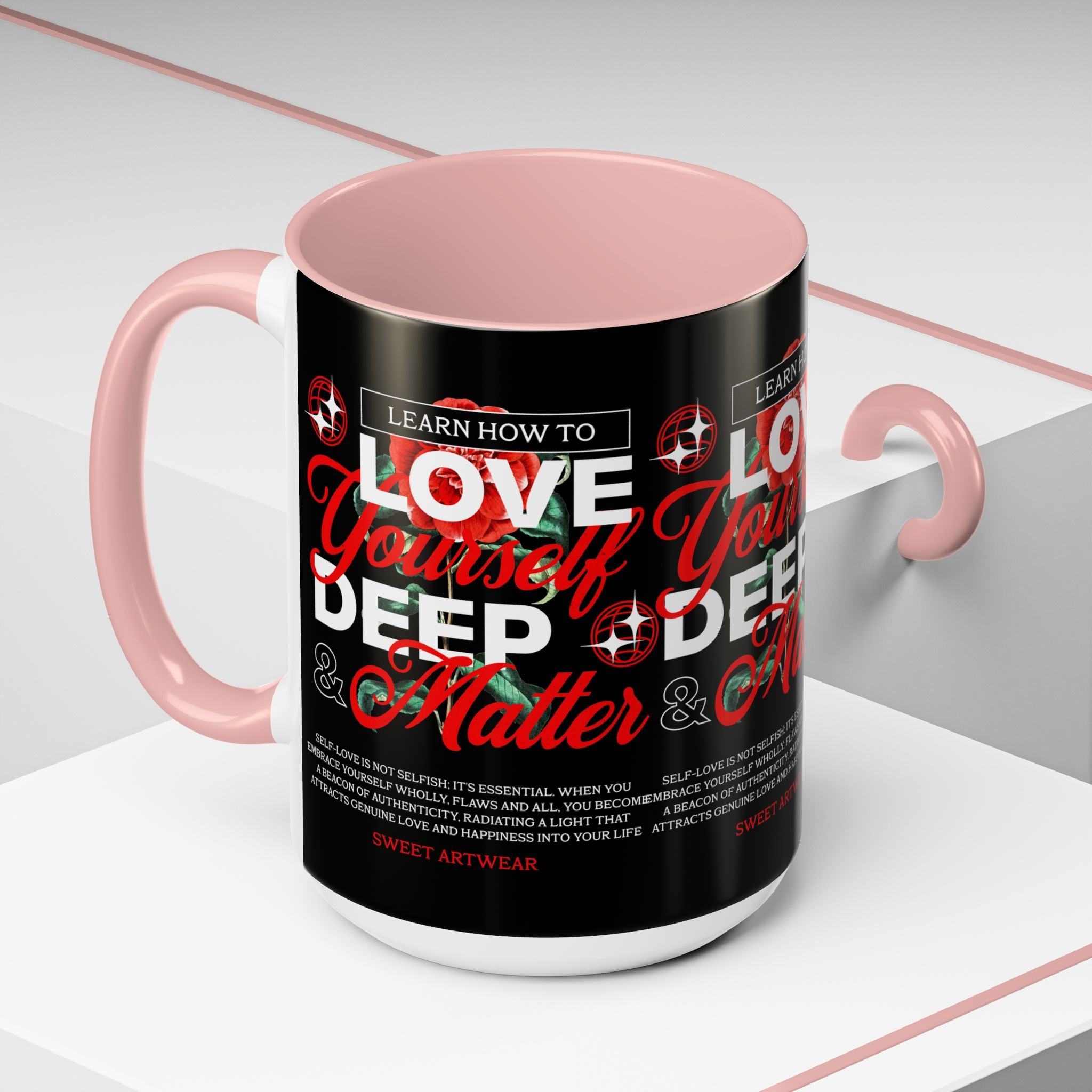 The Love Yourself Deep Accent Coffee Mug is more than just a mug β itβs a daily ritual of positivity and empowerment. Featuring bold typography, a striking red rose design, and motivational words, this mug inspires you to embrace confidence and self-love with every sip.