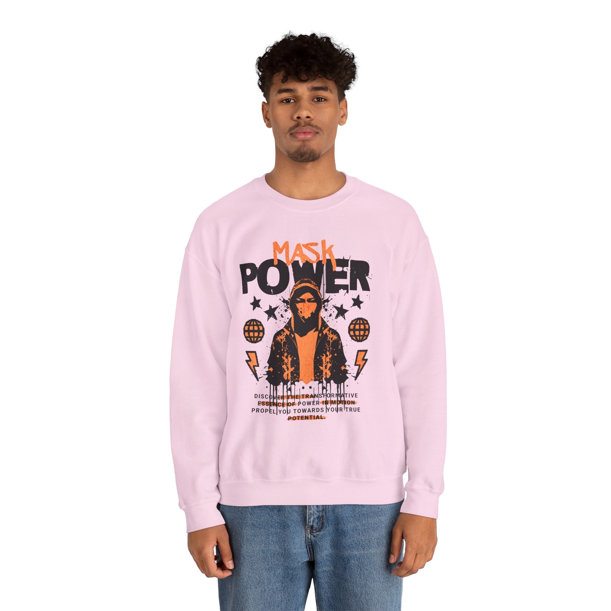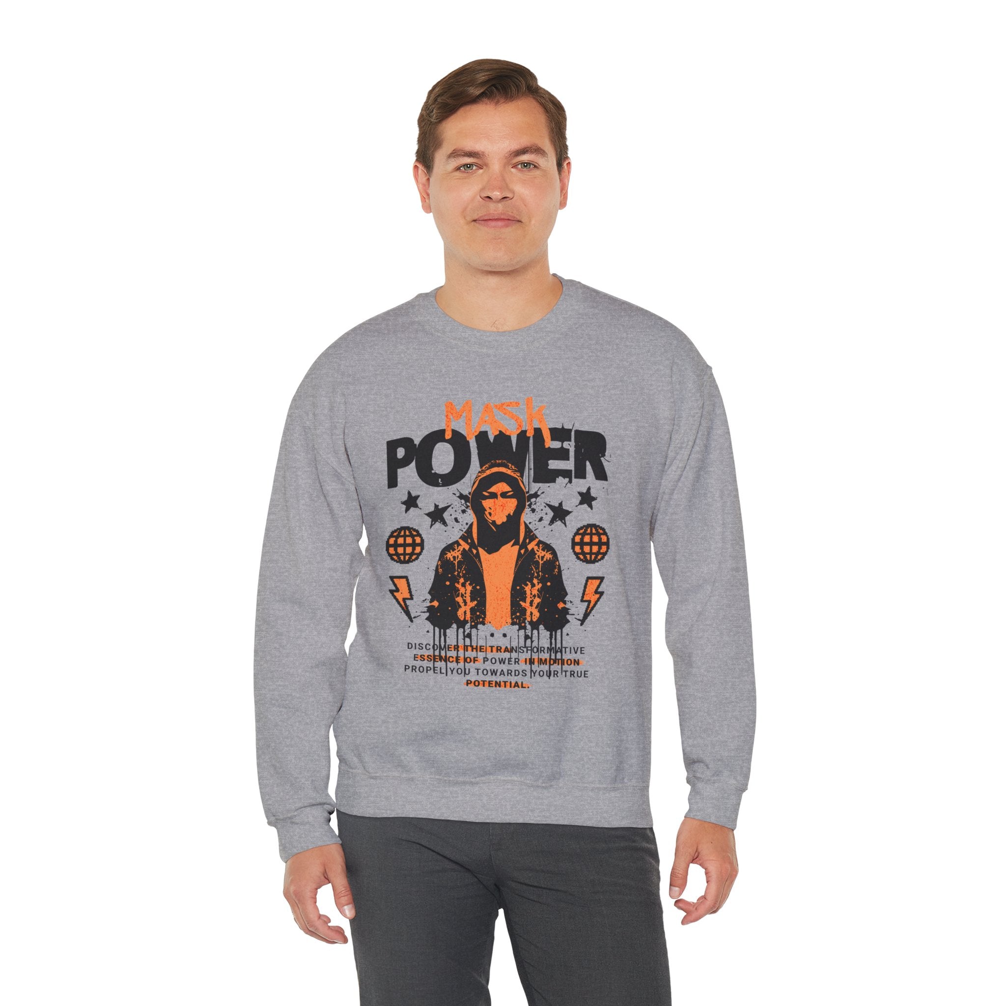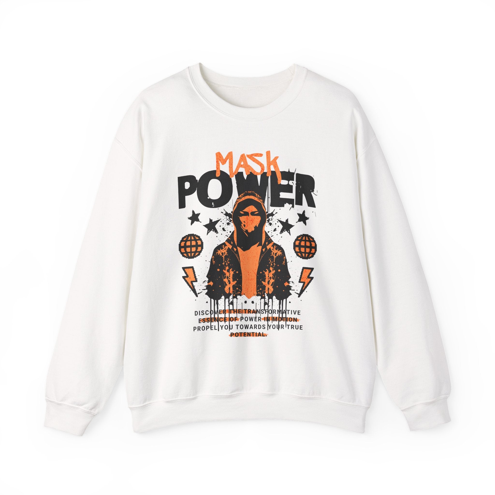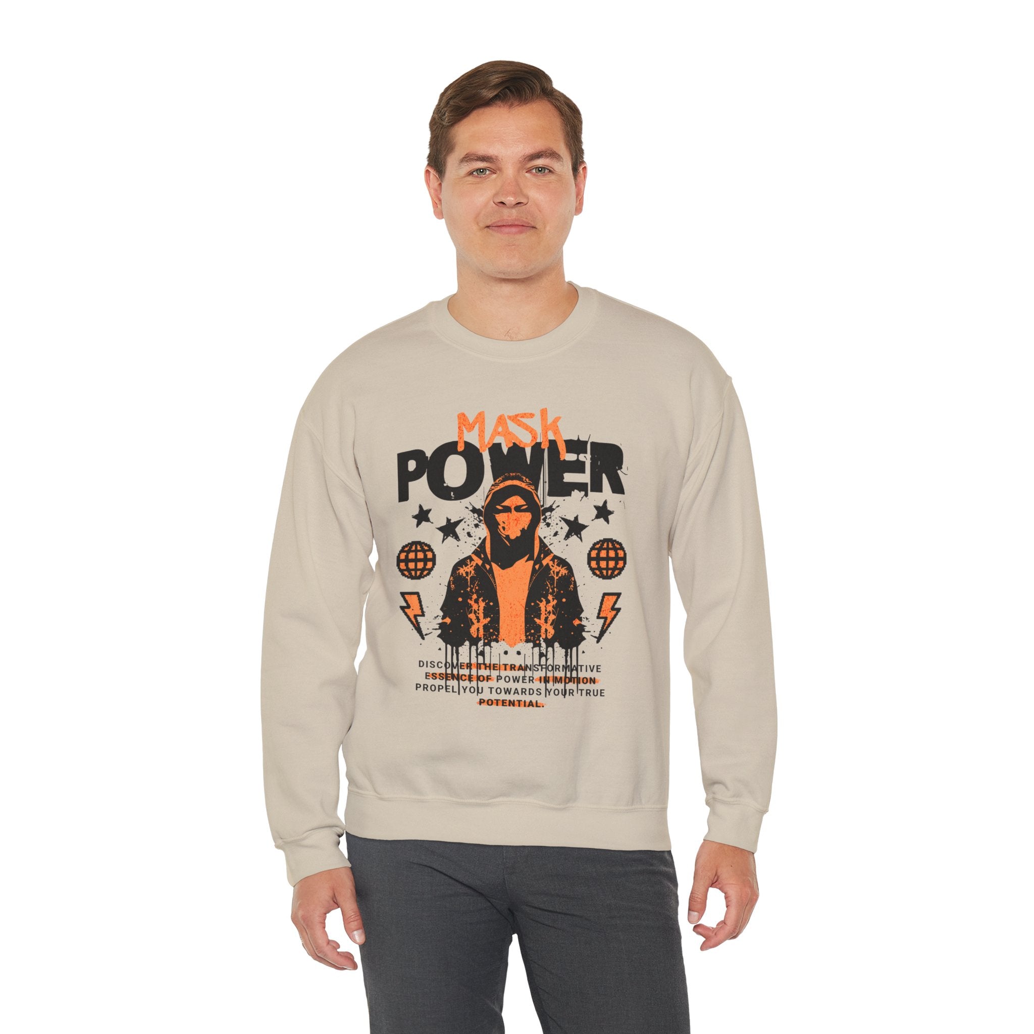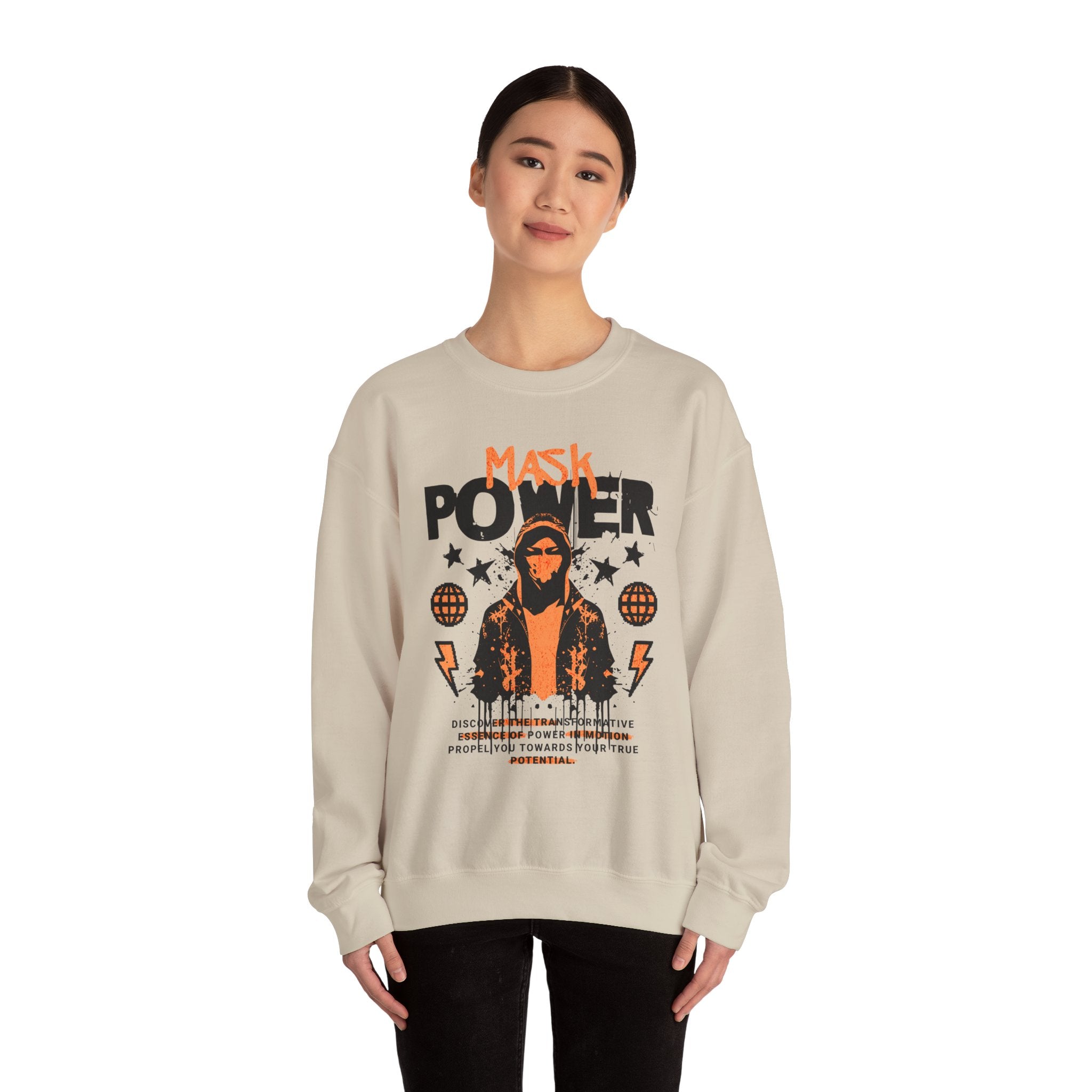 The Mask Power Unisex Heavy Blend™ Crewneck Sweatshirt blends urban resilience, hacker-inspired mystery, and motivational energy. Featuring a hooded masked figure surrounded by bold lightning bolts, stars, and power symbols, it’s a powerful design that speaks to inner strength and unshakable confidence.