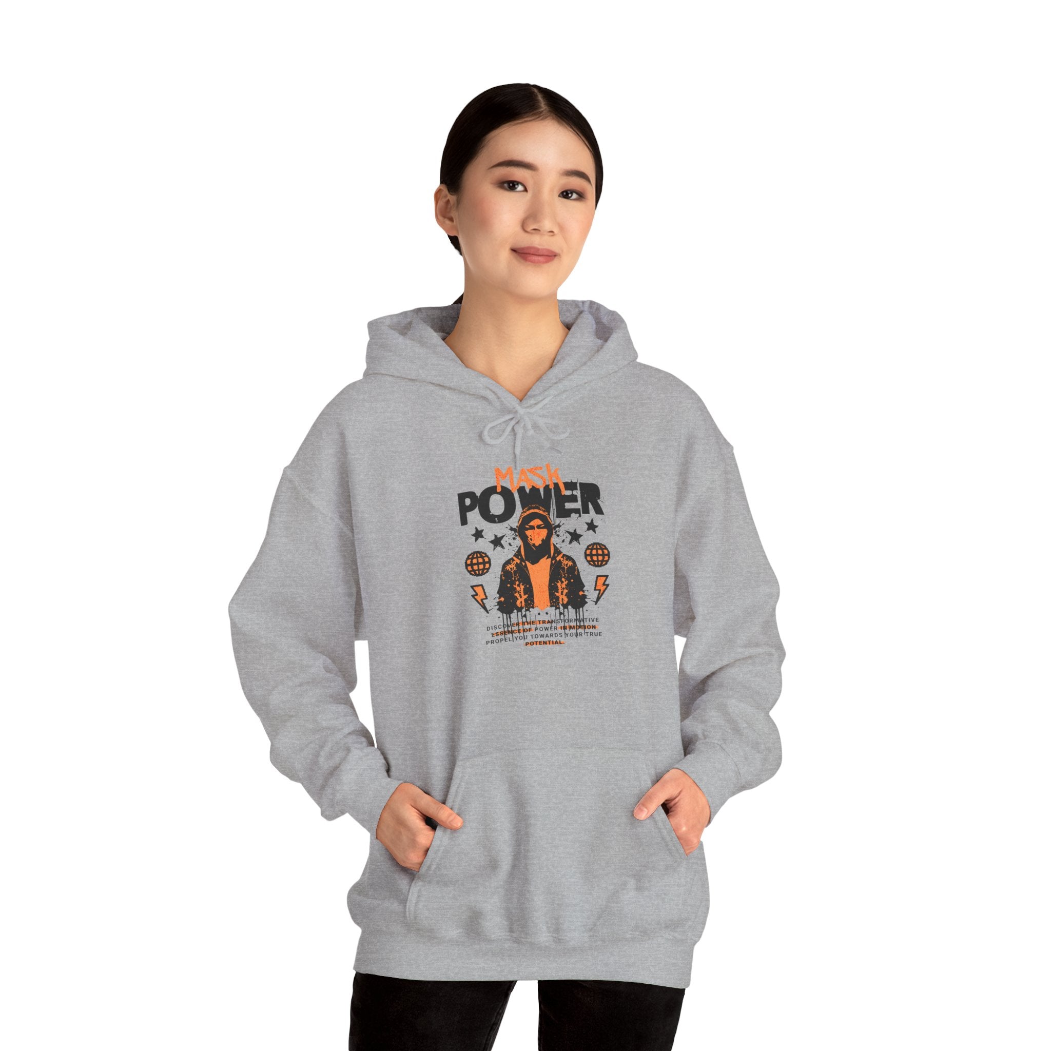 The Mask Power Unisex Heavy Blend™ Hooded Sweatshirt is more than just fashion—it’s a statement of resilience, strength, and inner potential. Featuring a bold hooded masked figure surrounded by lightning bolts, stars, and power symbols, this hoodie reflects the mystery of anonymity and the force of hidden power. Its striking orange and black design makes it a standout urban streetwear essential.
