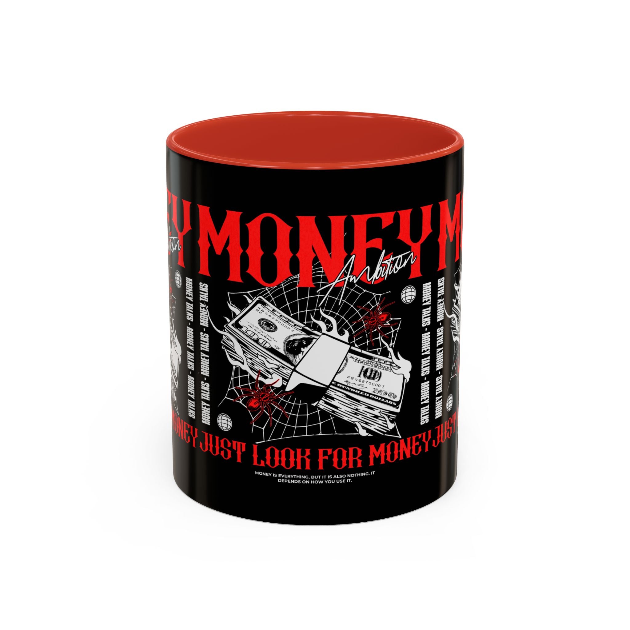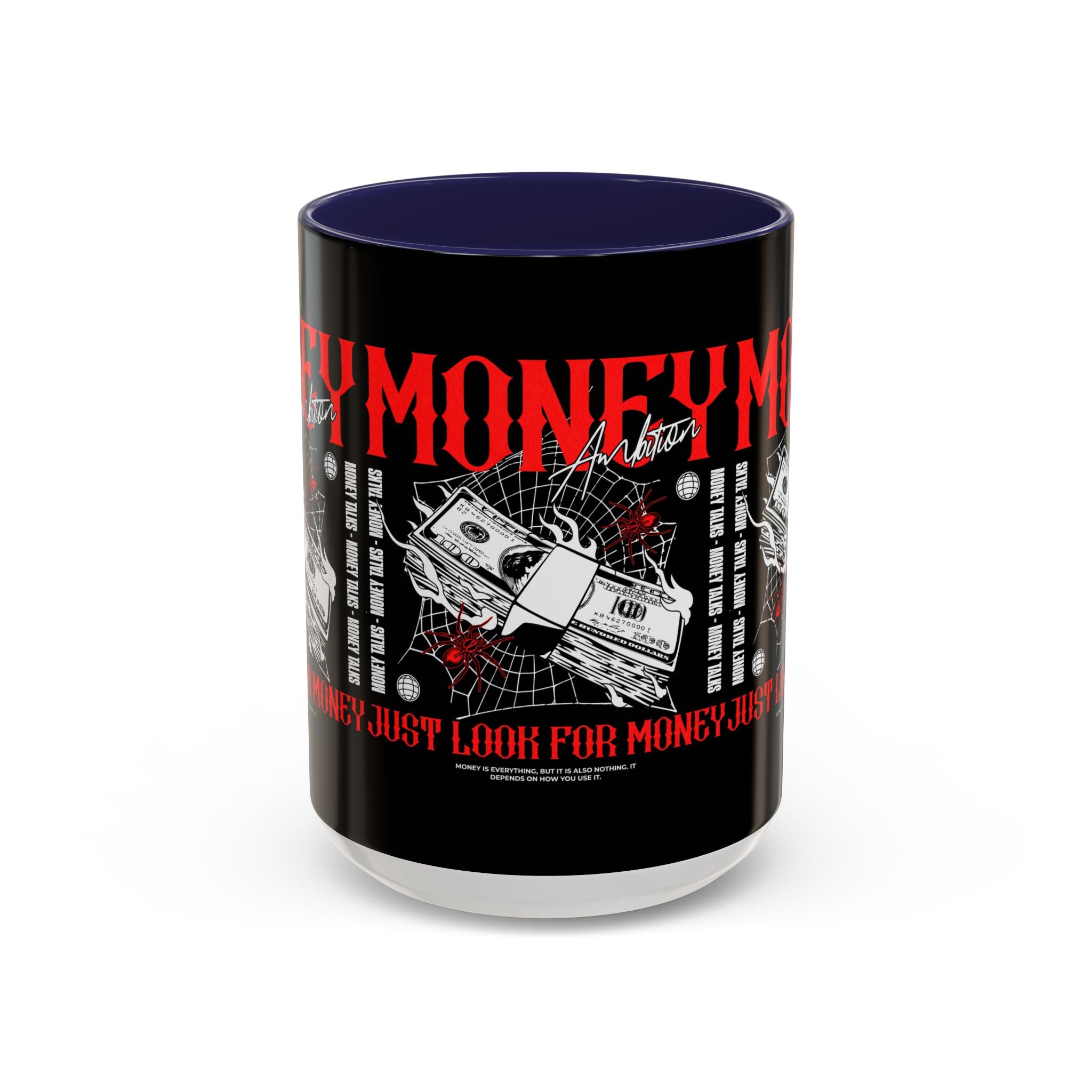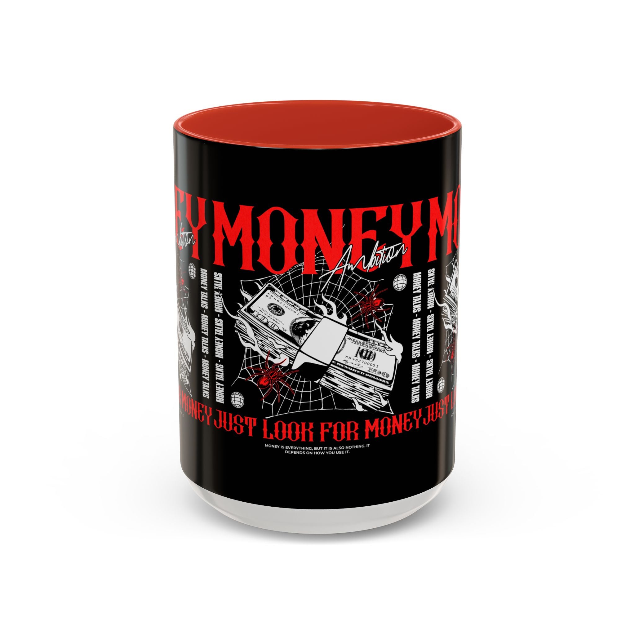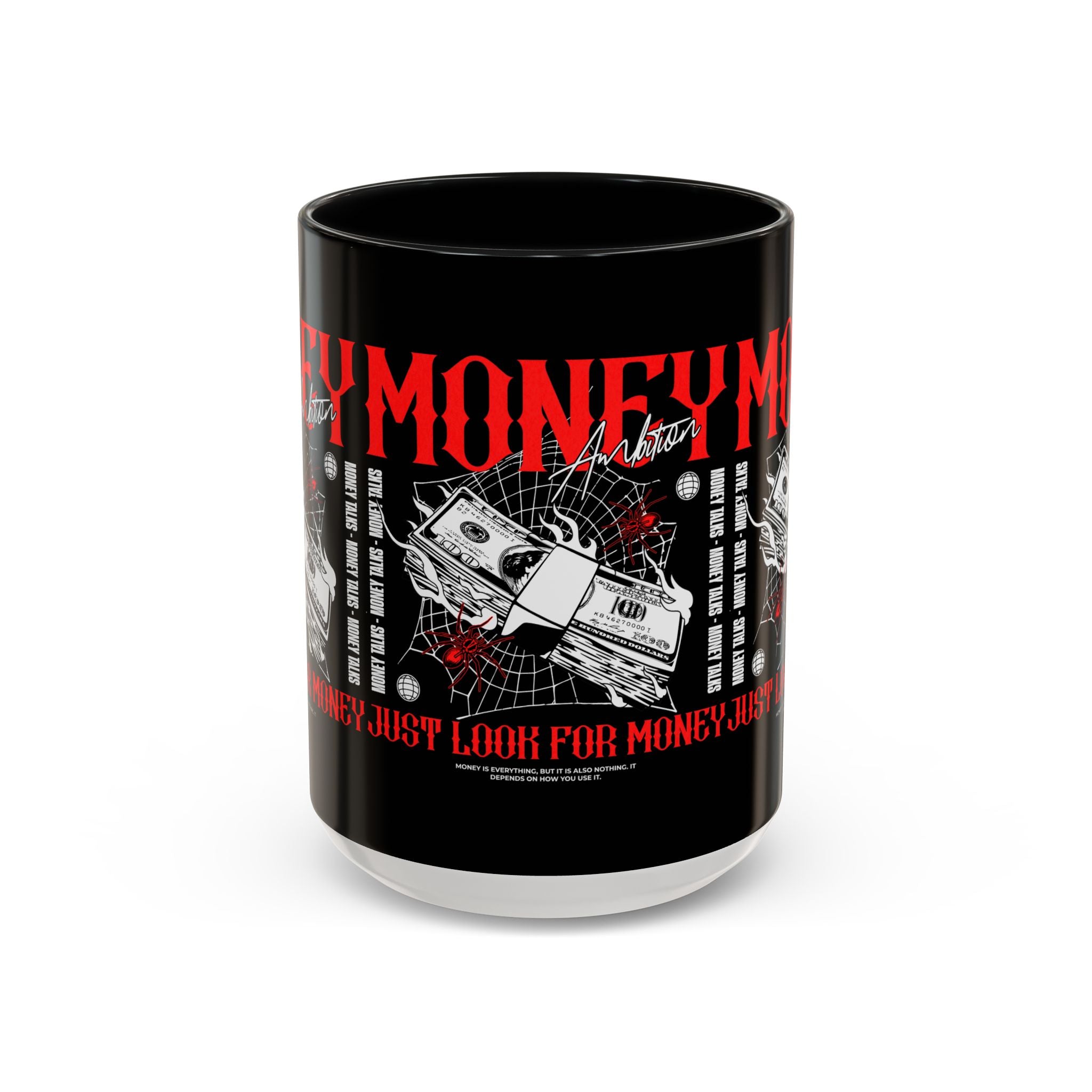 Fuel your grind with the Money Ambition Accent Coffee Mug, a bold statement piece for entrepreneurs, hustlers, and dream-chasers. Featuring a striking cash stack and spider web design with vivid red typography, this mug captures the raw energy of ambition and the relentless pursuit of success. Every sip is a reminder that money isn’t just currency—it’s power, mindset, and motivation.