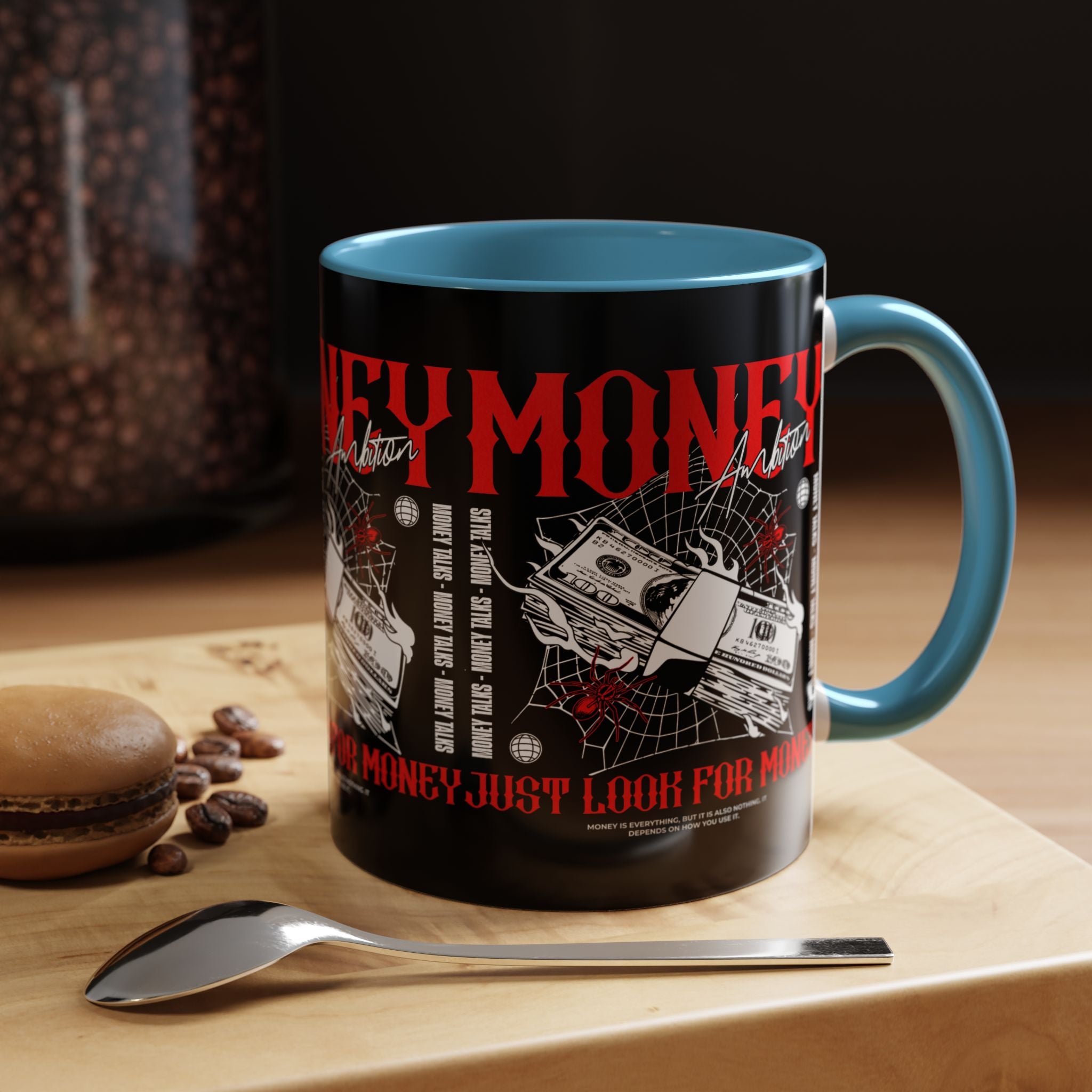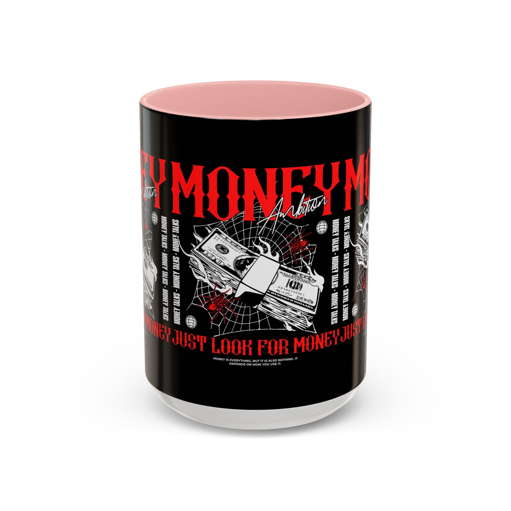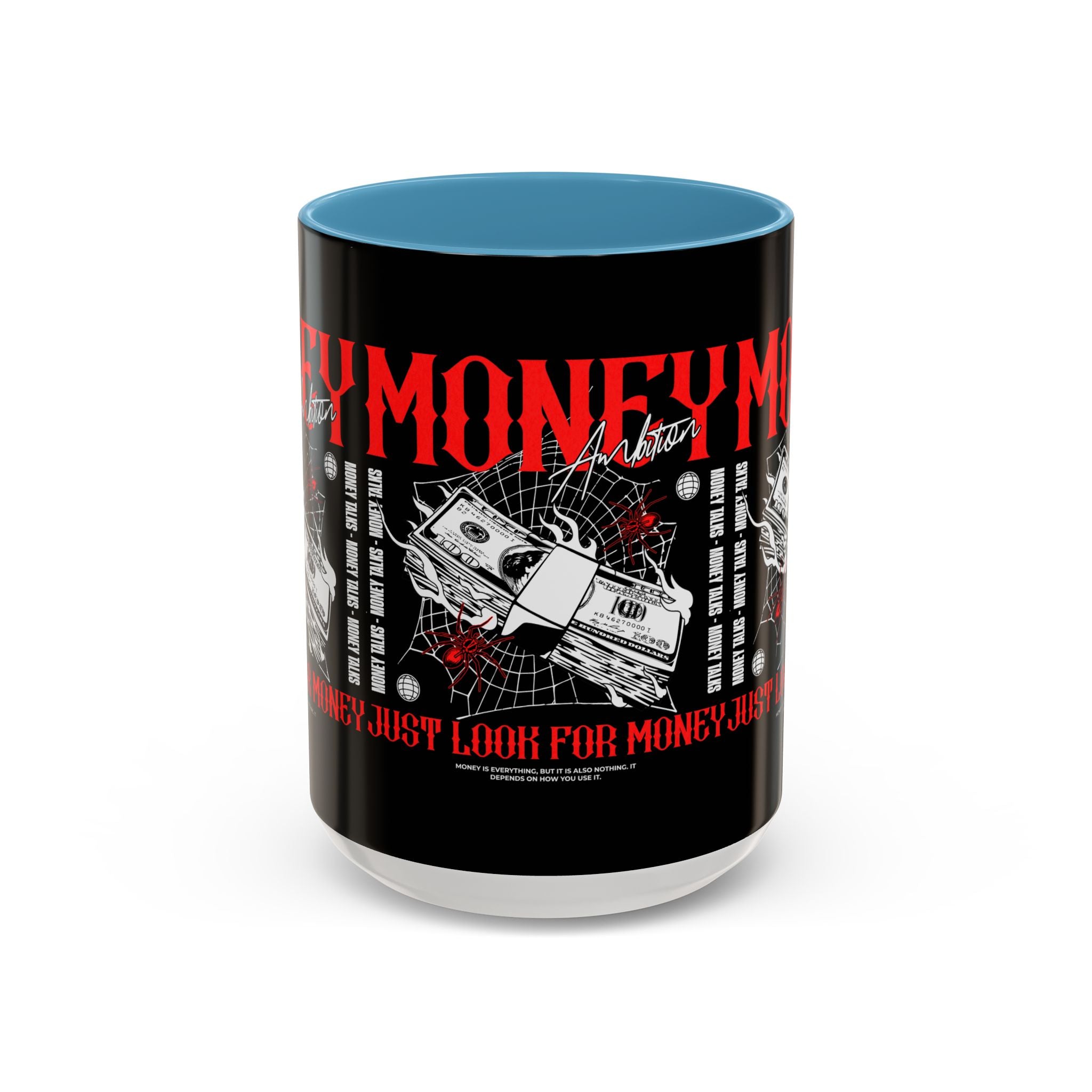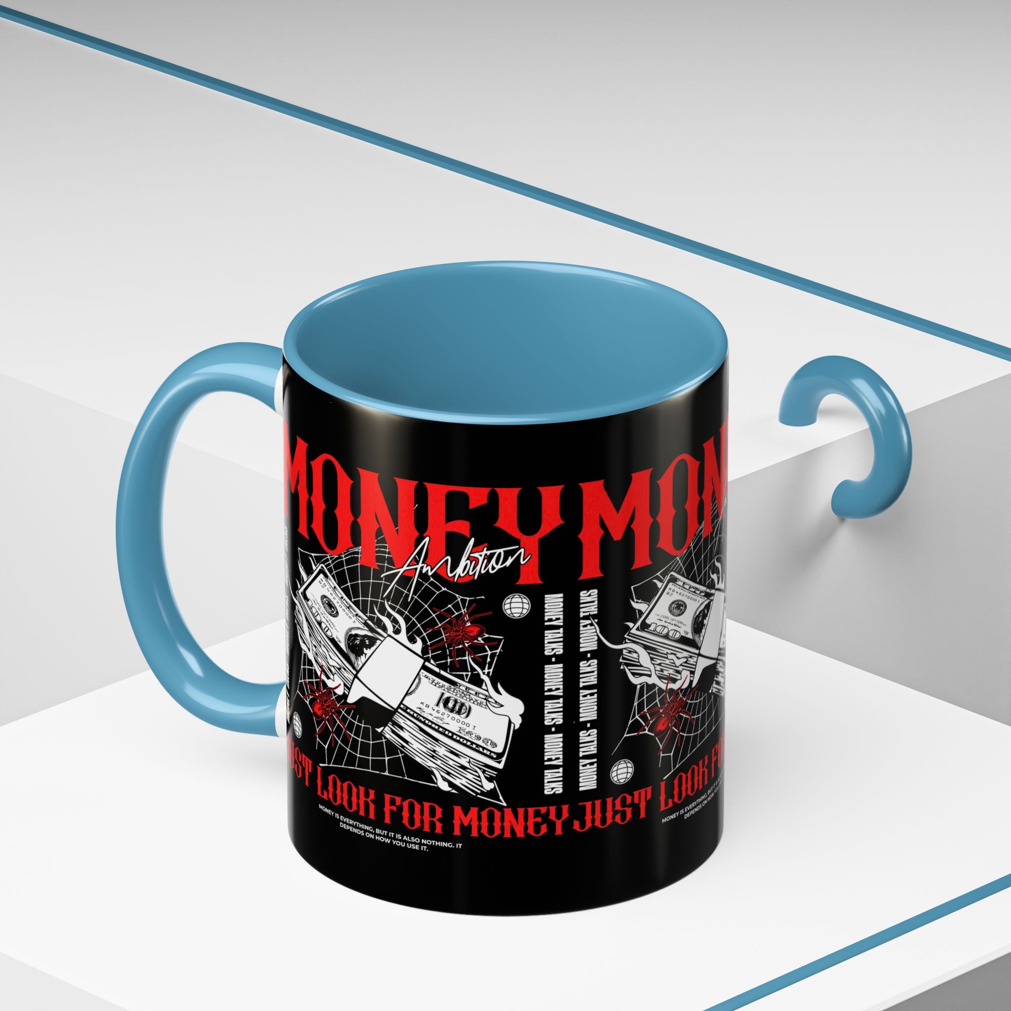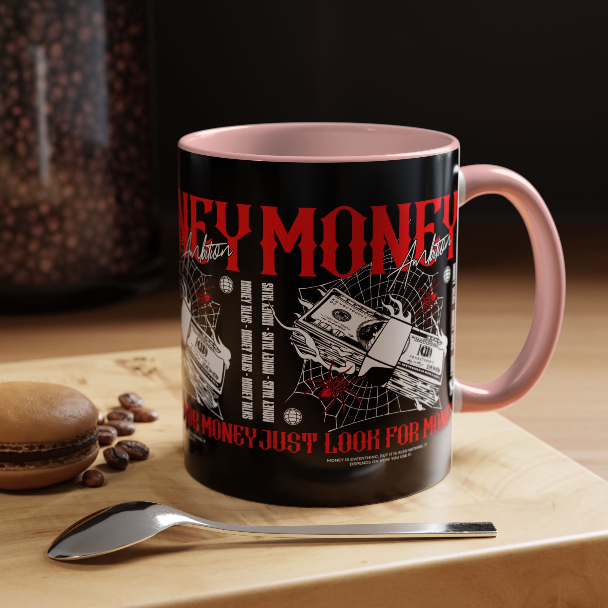 Fuel your grind with the Money Ambition Accent Coffee Mug, a bold statement piece for entrepreneurs, hustlers, and dream-chasers. Featuring a striking cash stack and spider web design with vivid red typography, this mug captures the raw energy of ambition and the relentless pursuit of success. Every sip is a reminder that money isn’t just currency—it’s power, mindset, and motivation.