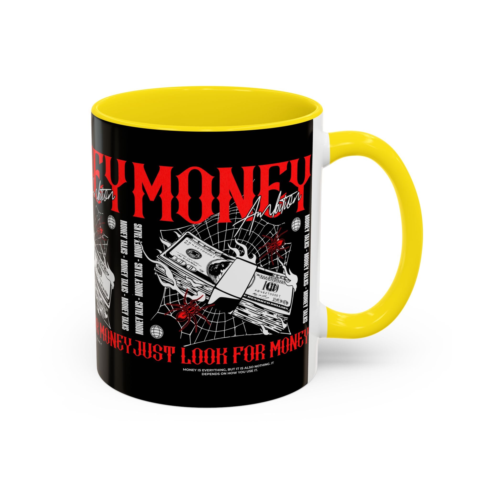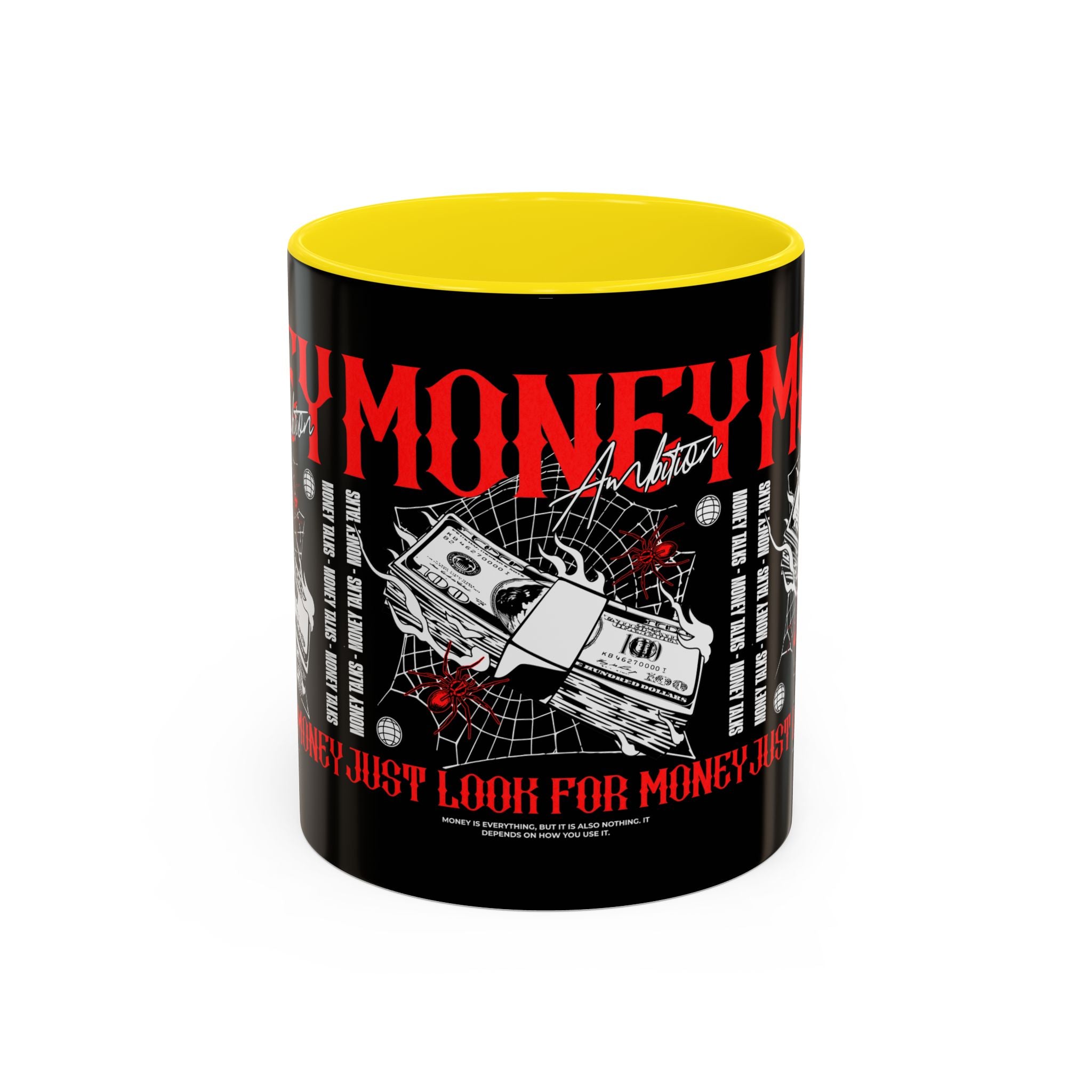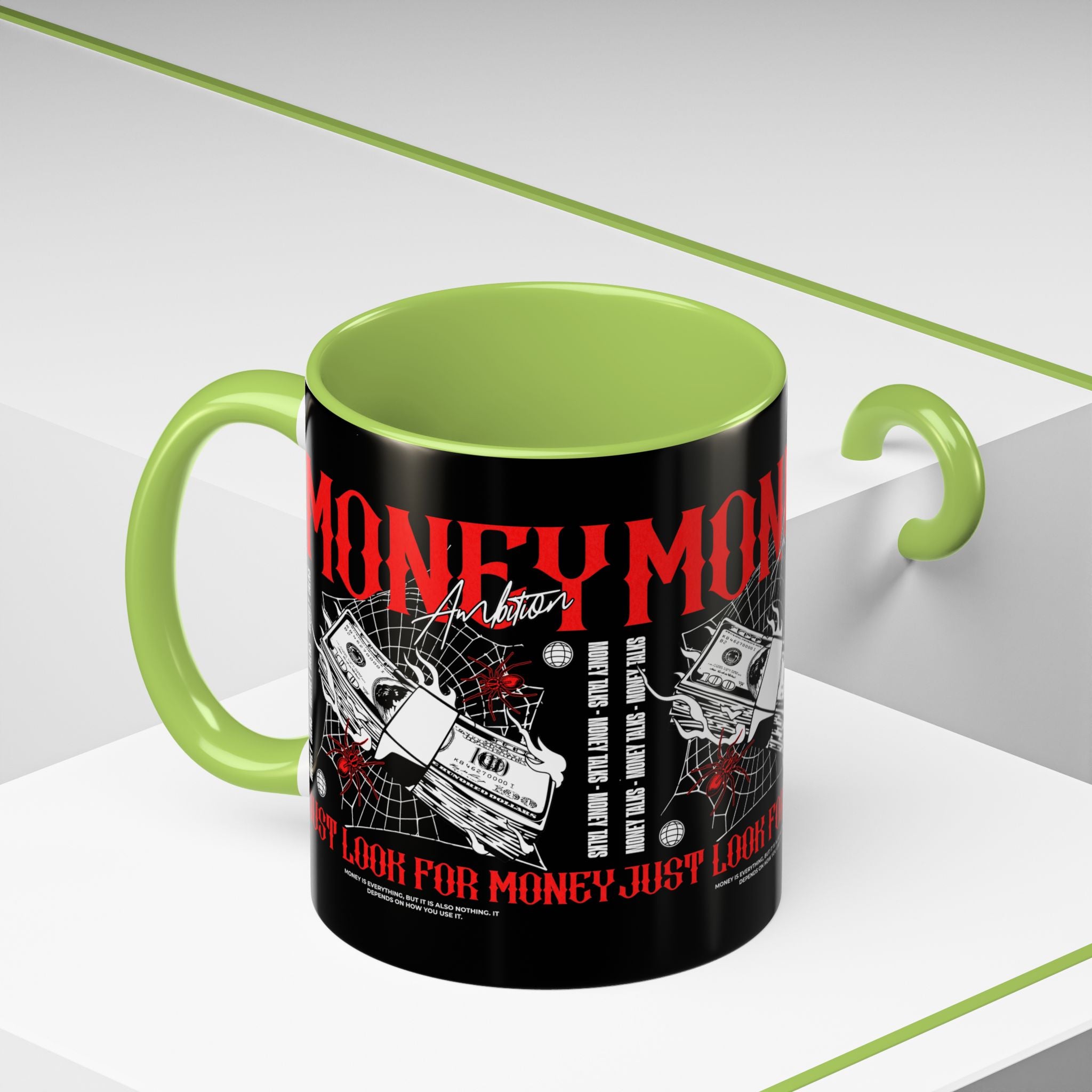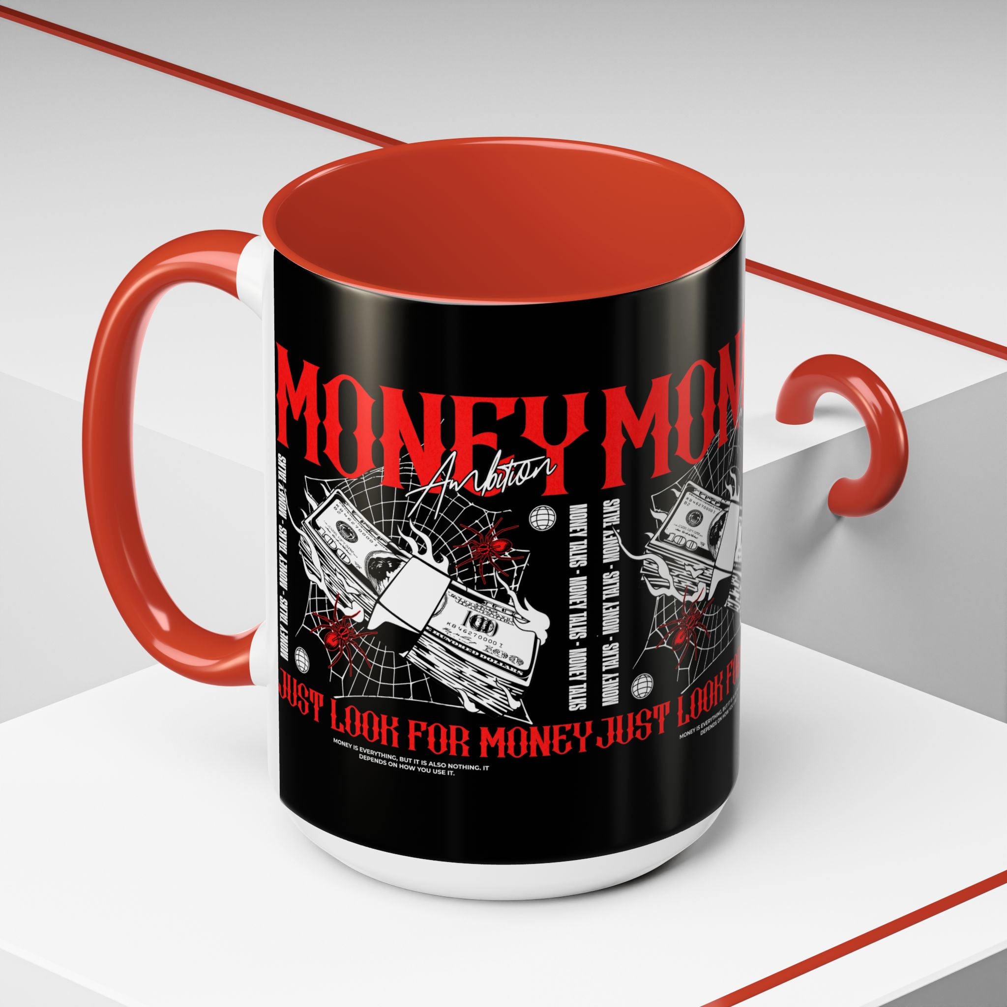 Fuel your grind with the Money Ambition Accent Coffee Mug, a bold statement piece for entrepreneurs, hustlers, and dream-chasers. Featuring a striking cash stack and spider web design with vivid red typography, this mug captures the raw energy of ambition and the relentless pursuit of success. Every sip is a reminder that money isn’t just currency—it’s power, mindset, and motivation.