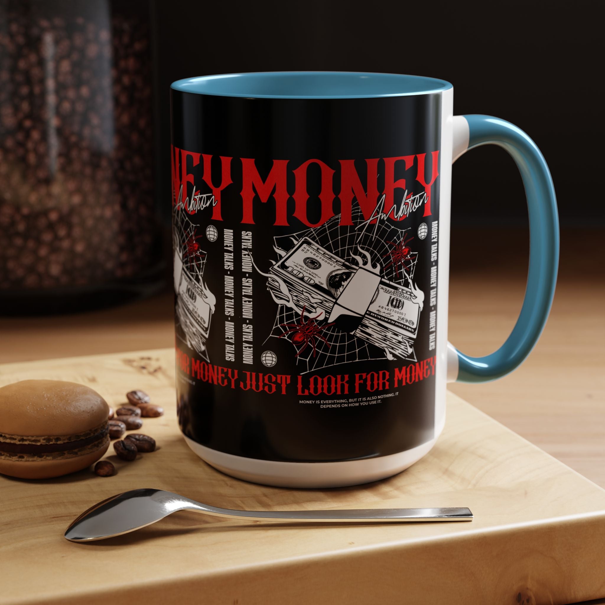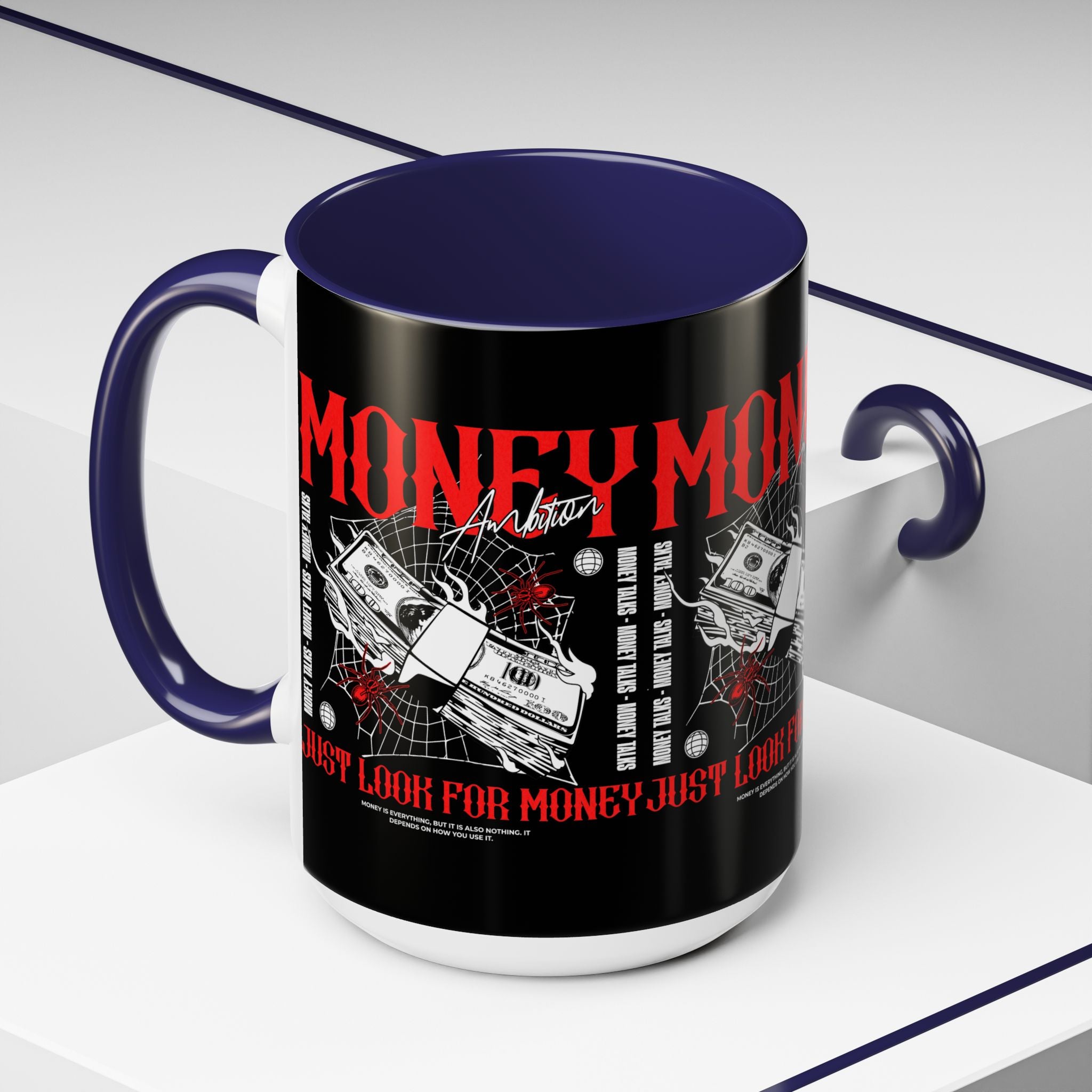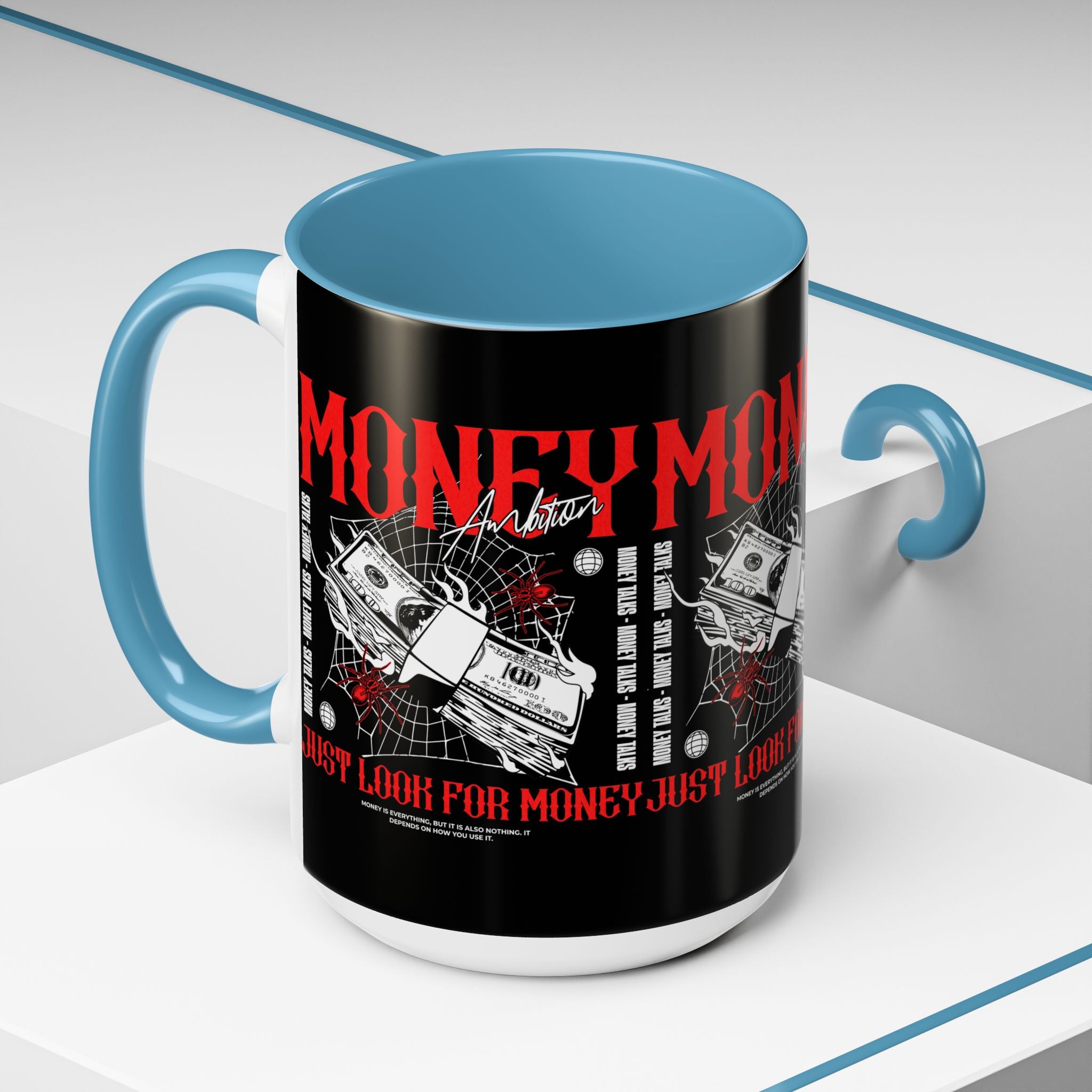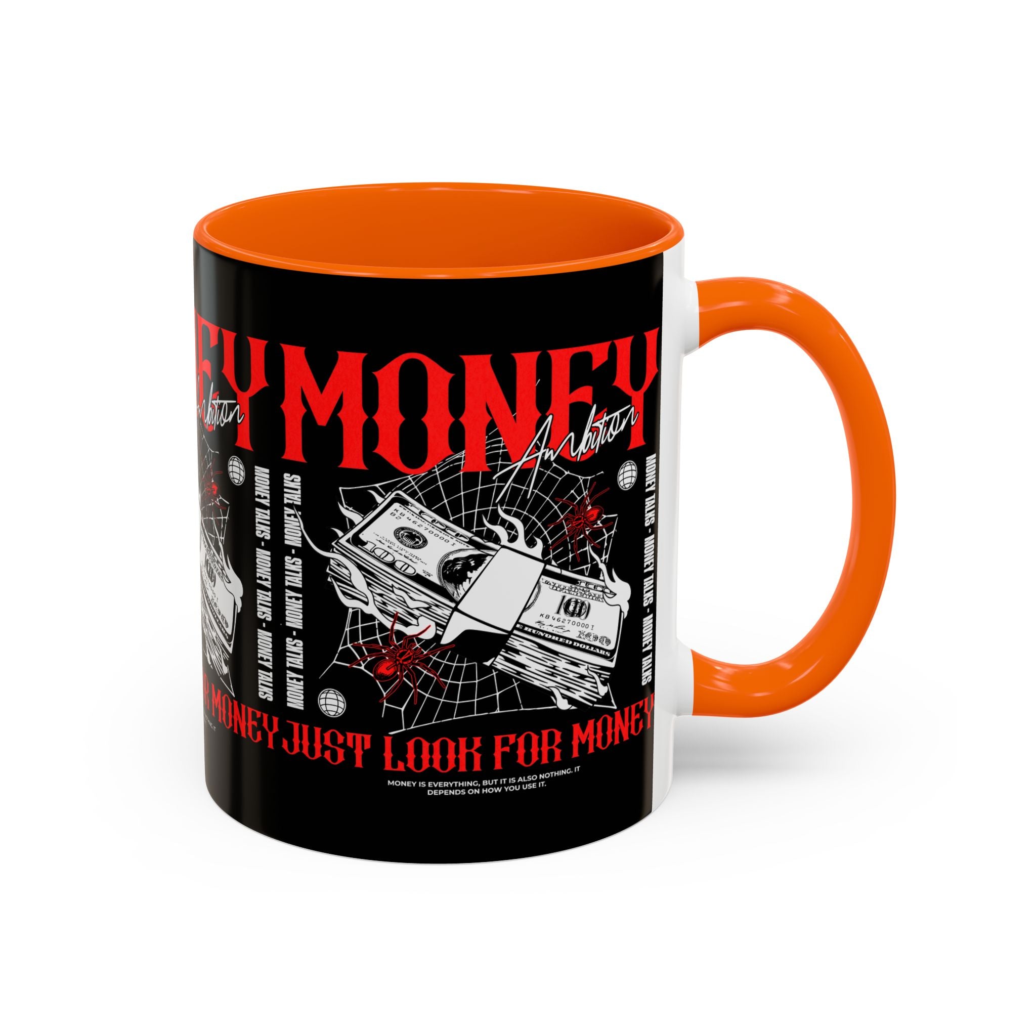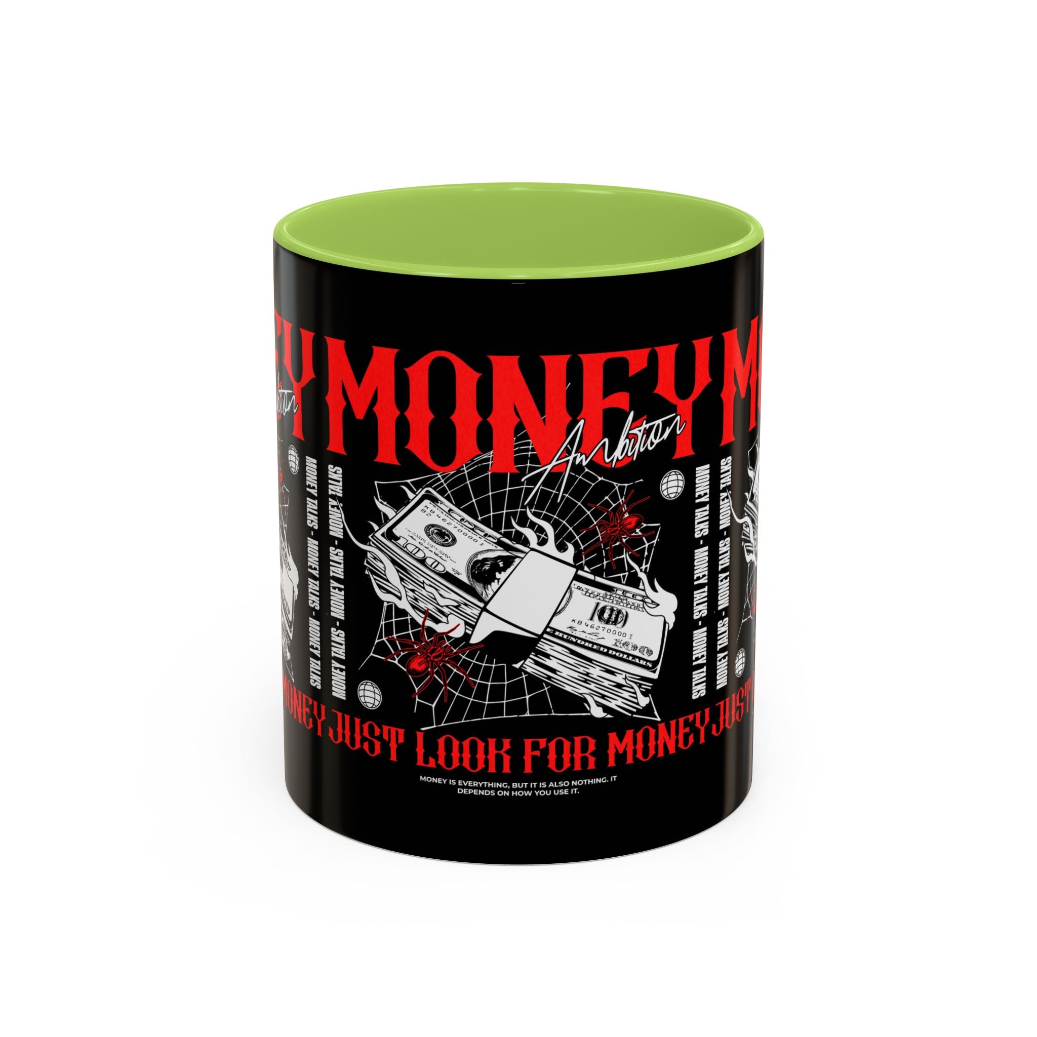 Fuel your grind with the Money Ambition Accent Coffee Mug, a bold statement piece for entrepreneurs, hustlers, and dream-chasers. Featuring a striking cash stack and spider web design with vivid red typography, this mug captures the raw energy of ambition and the relentless pursuit of success. Every sip is a reminder that money isn’t just currency—it’s power, mindset, and motivation.