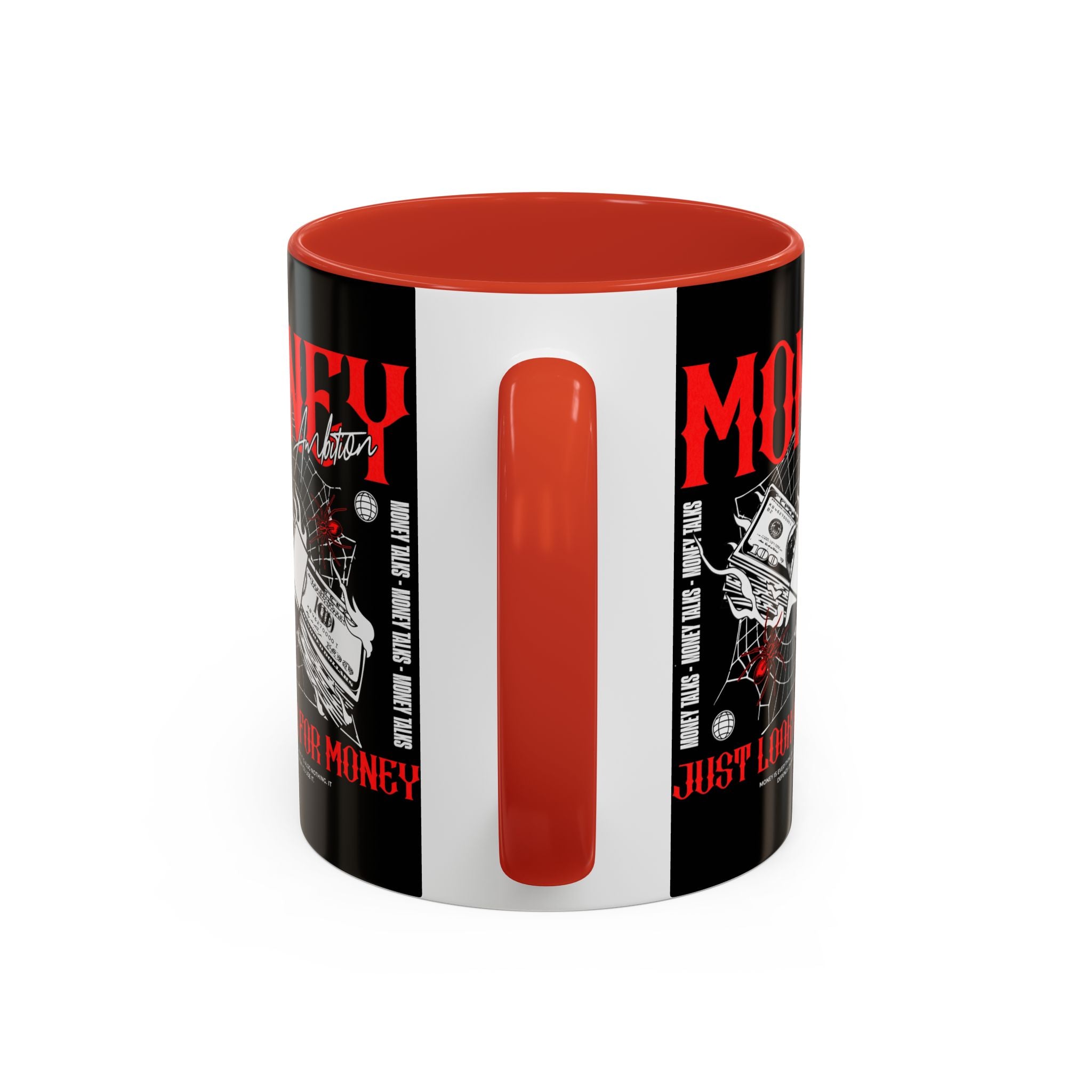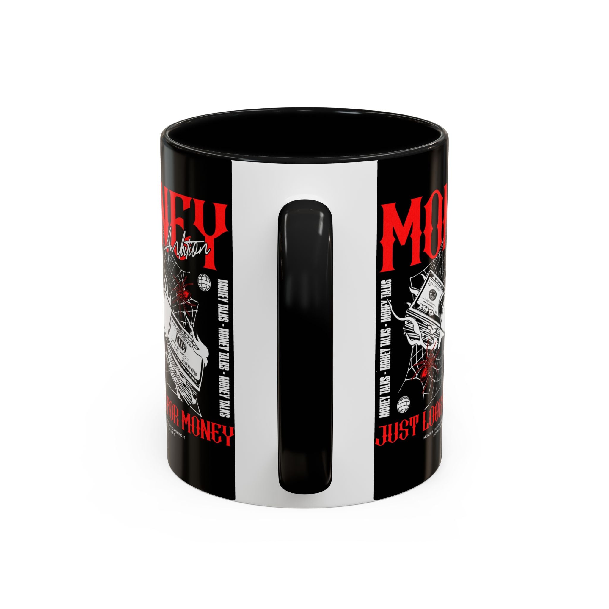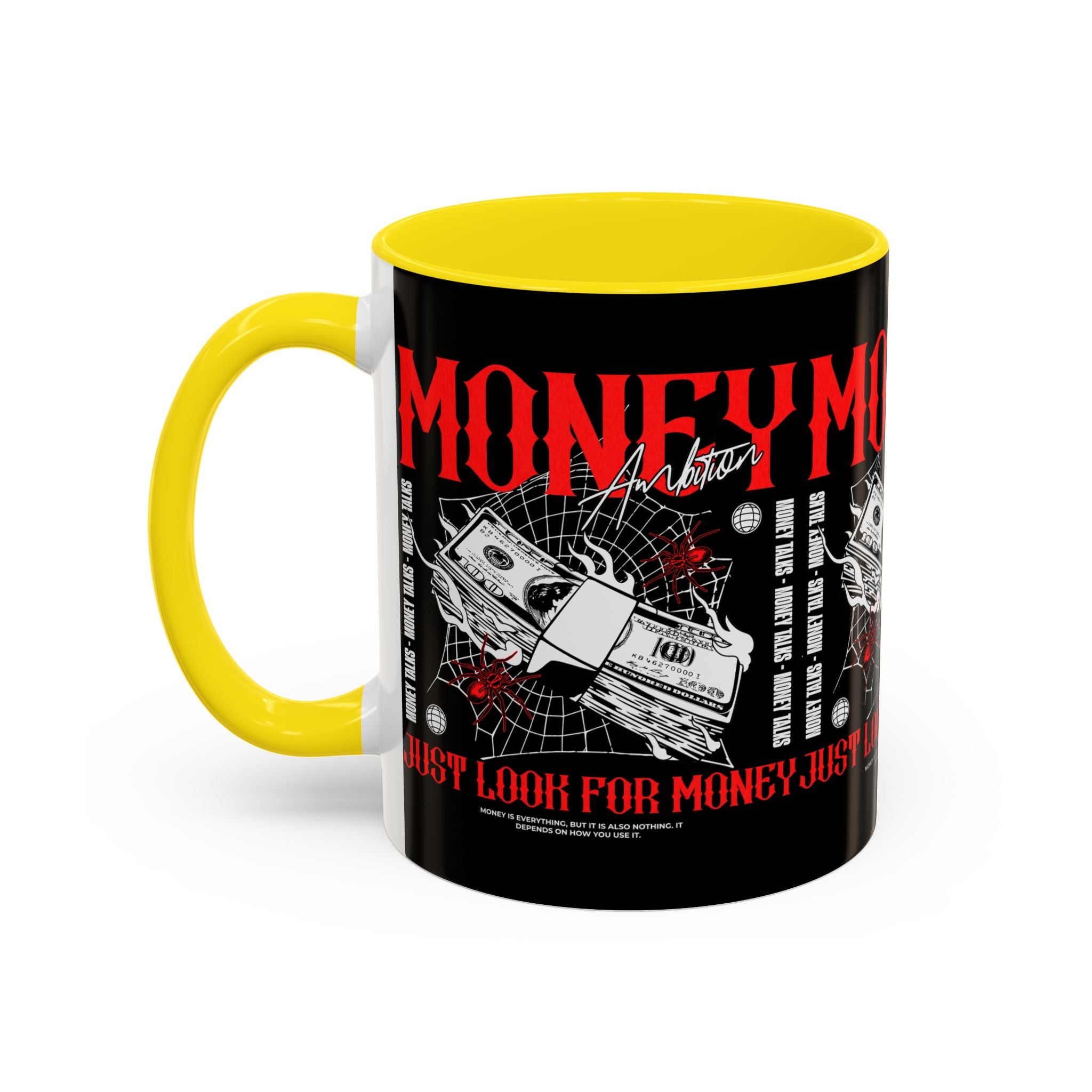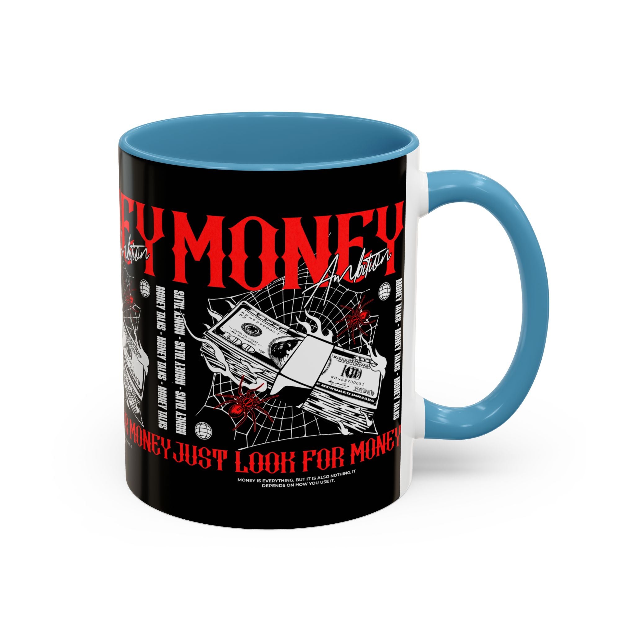 Fuel your grind with the Money Ambition Accent Coffee Mug, a bold statement piece for entrepreneurs, hustlers, and dream-chasers. Featuring a striking cash stack and spider web design with vivid red typography, this mug captures the raw energy of ambition and the relentless pursuit of success. Every sip is a reminder that money isn’t just currency—it’s power, mindset, and motivation.