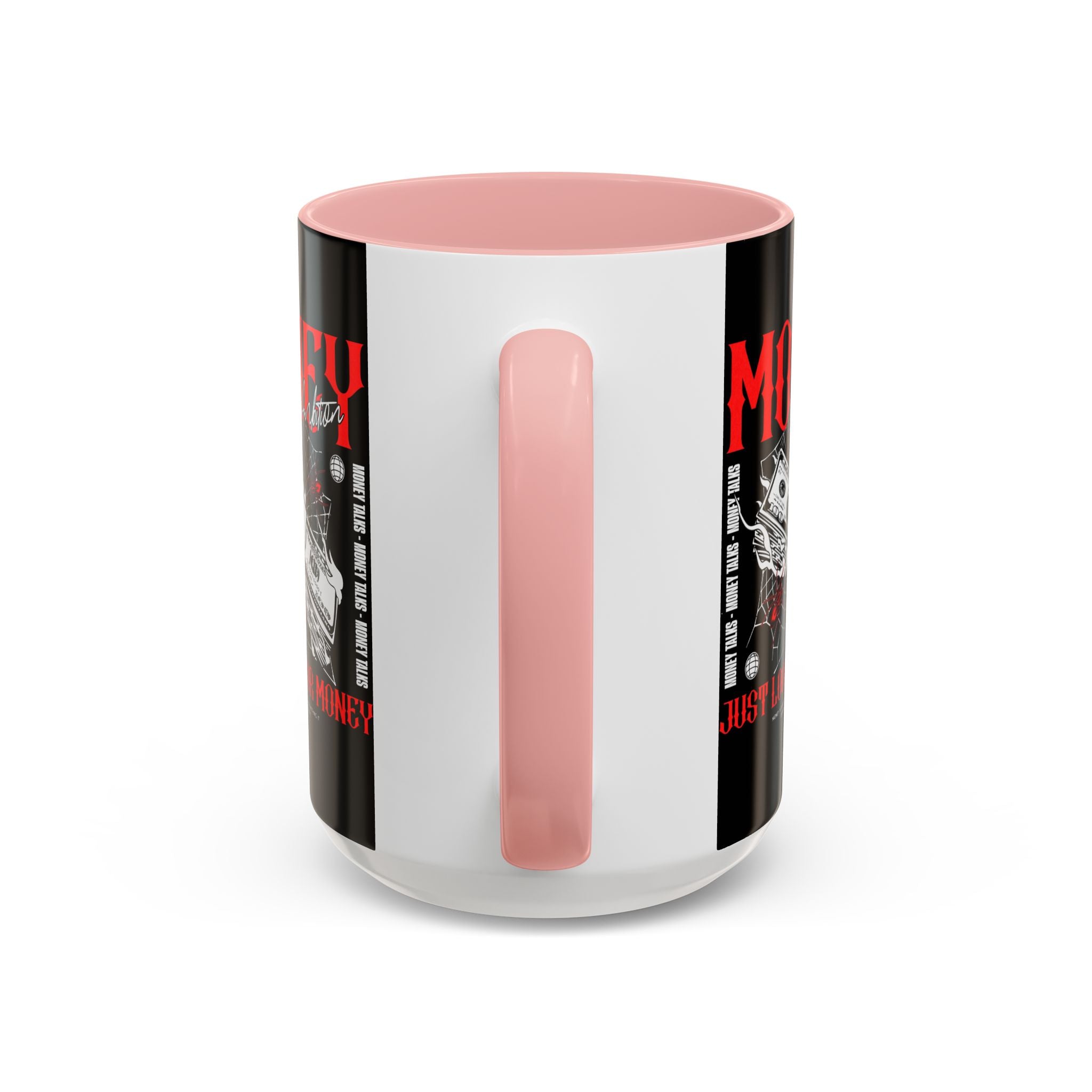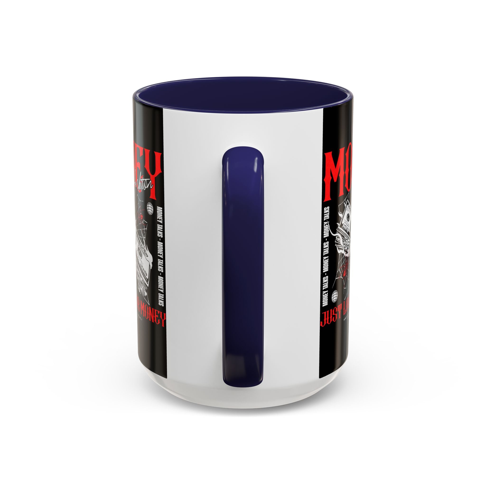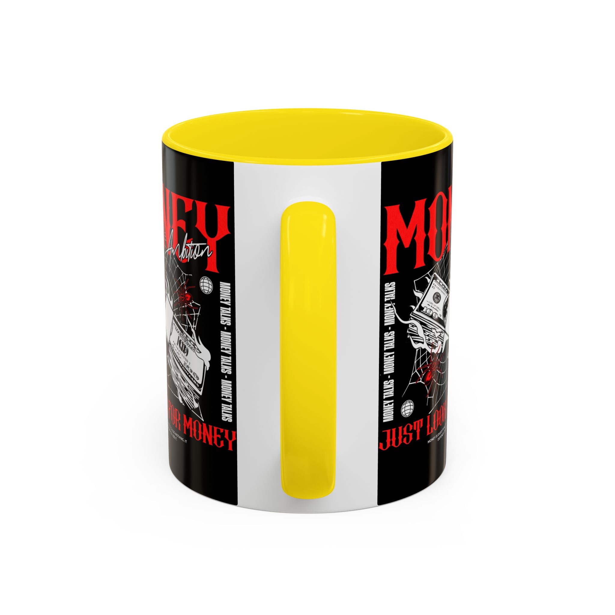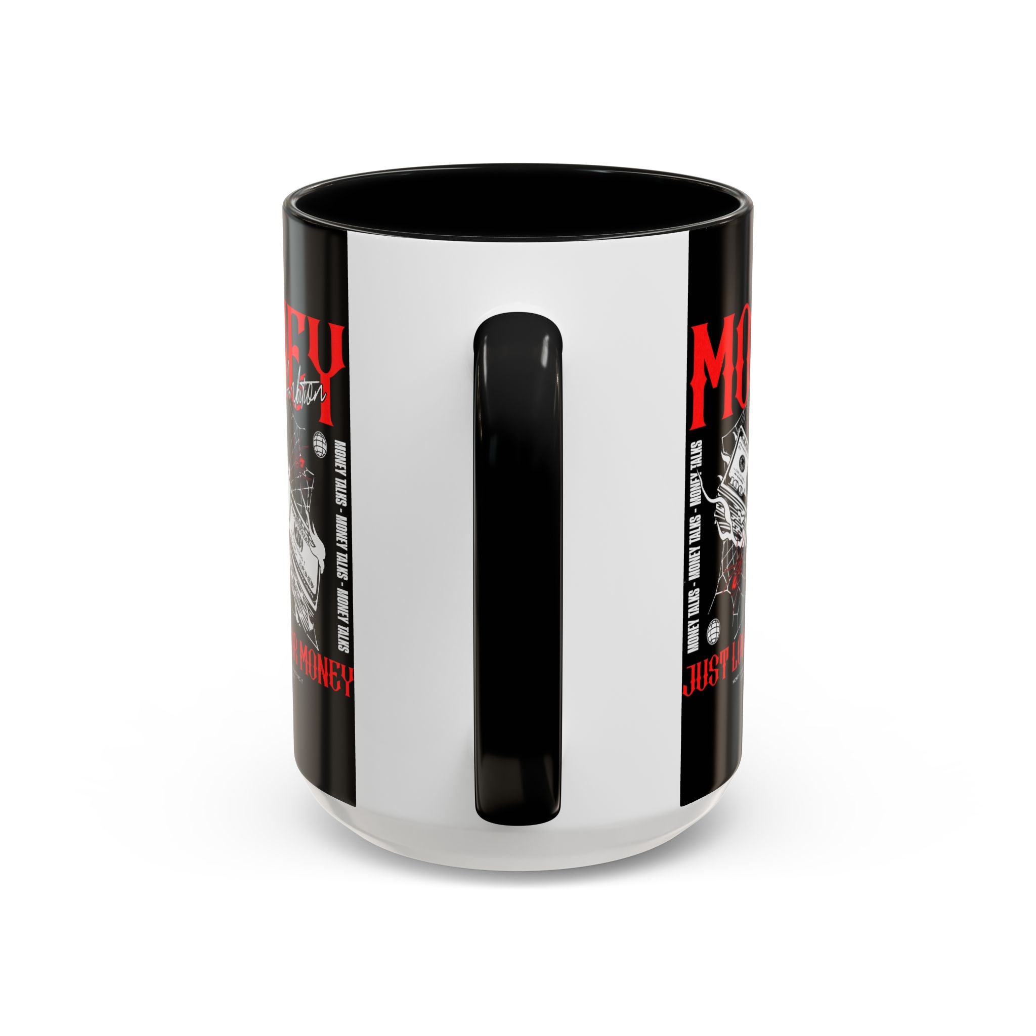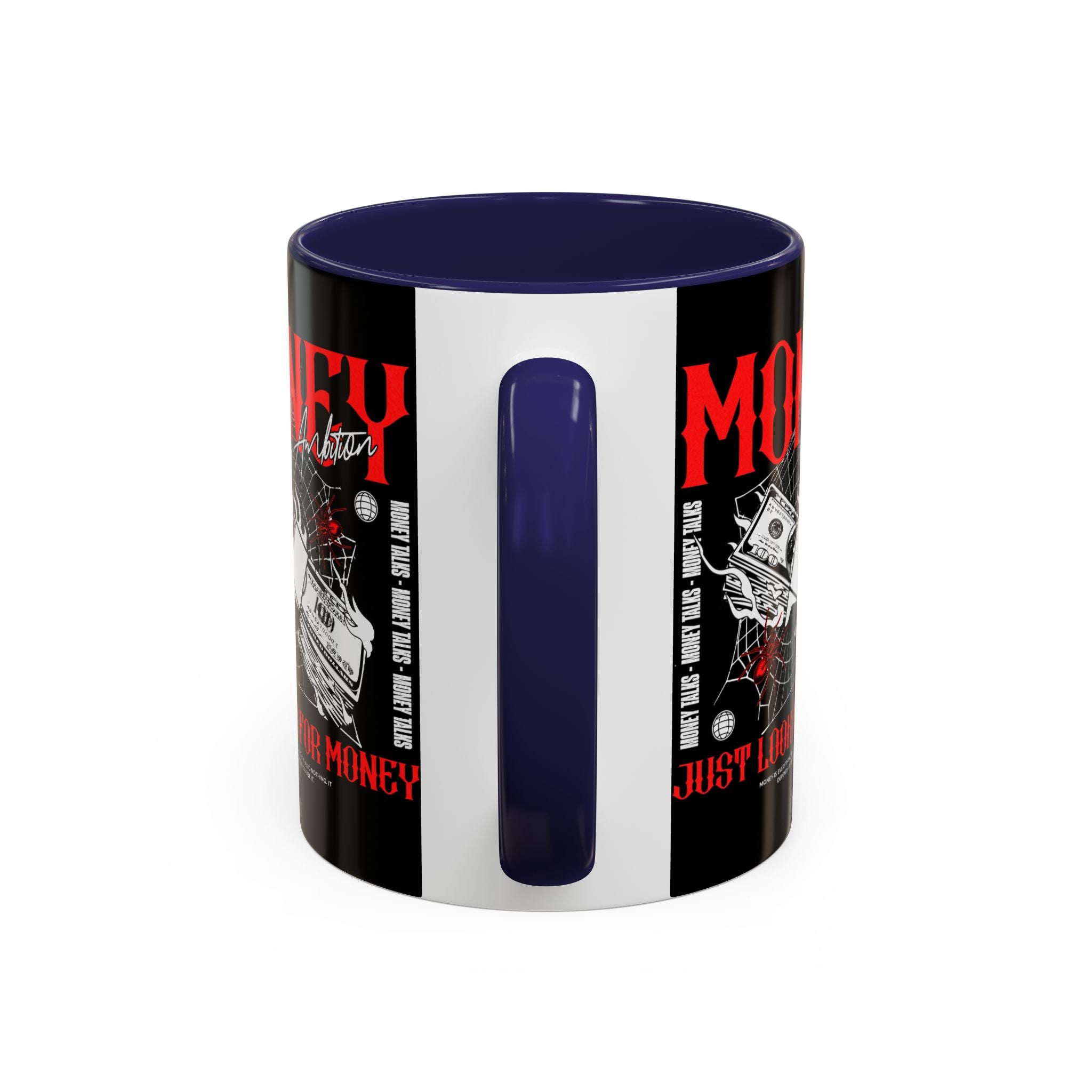 Fuel your grind with the Money Ambition Accent Coffee Mug, a bold statement piece for entrepreneurs, hustlers, and dream-chasers. Featuring a striking cash stack and spider web design with vivid red typography, this mug captures the raw energy of ambition and the relentless pursuit of success. Every sip is a reminder that money isn’t just currency—it’s power, mindset, and motivation.