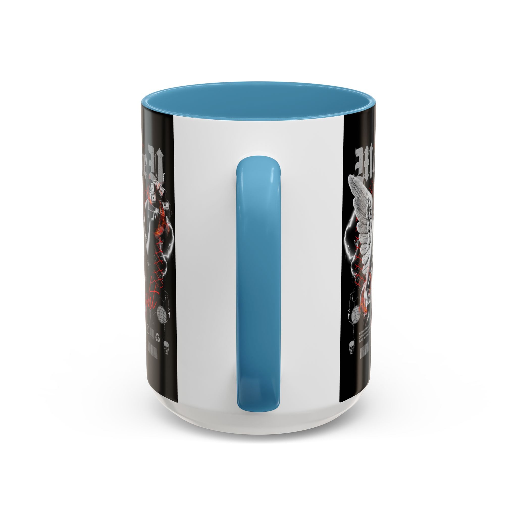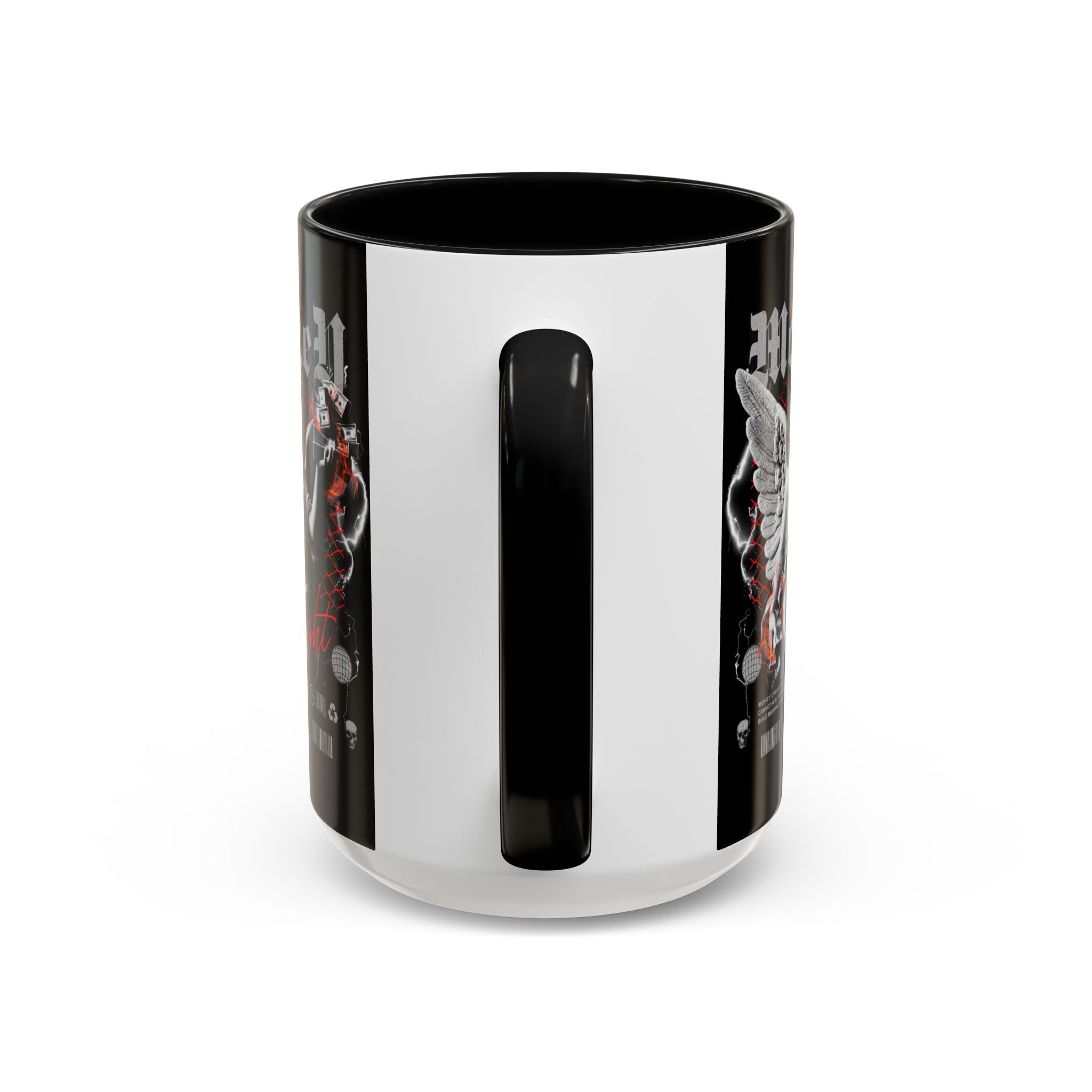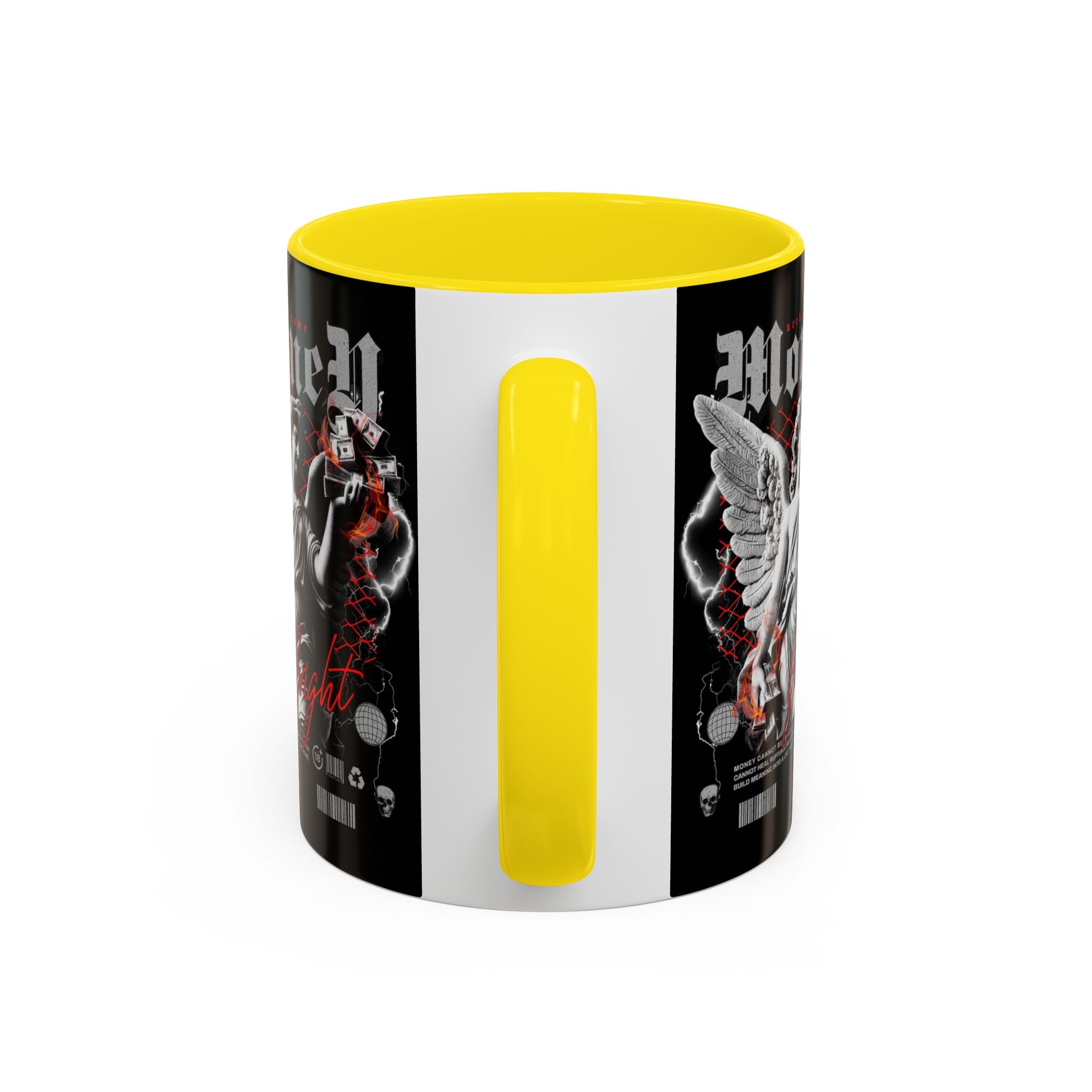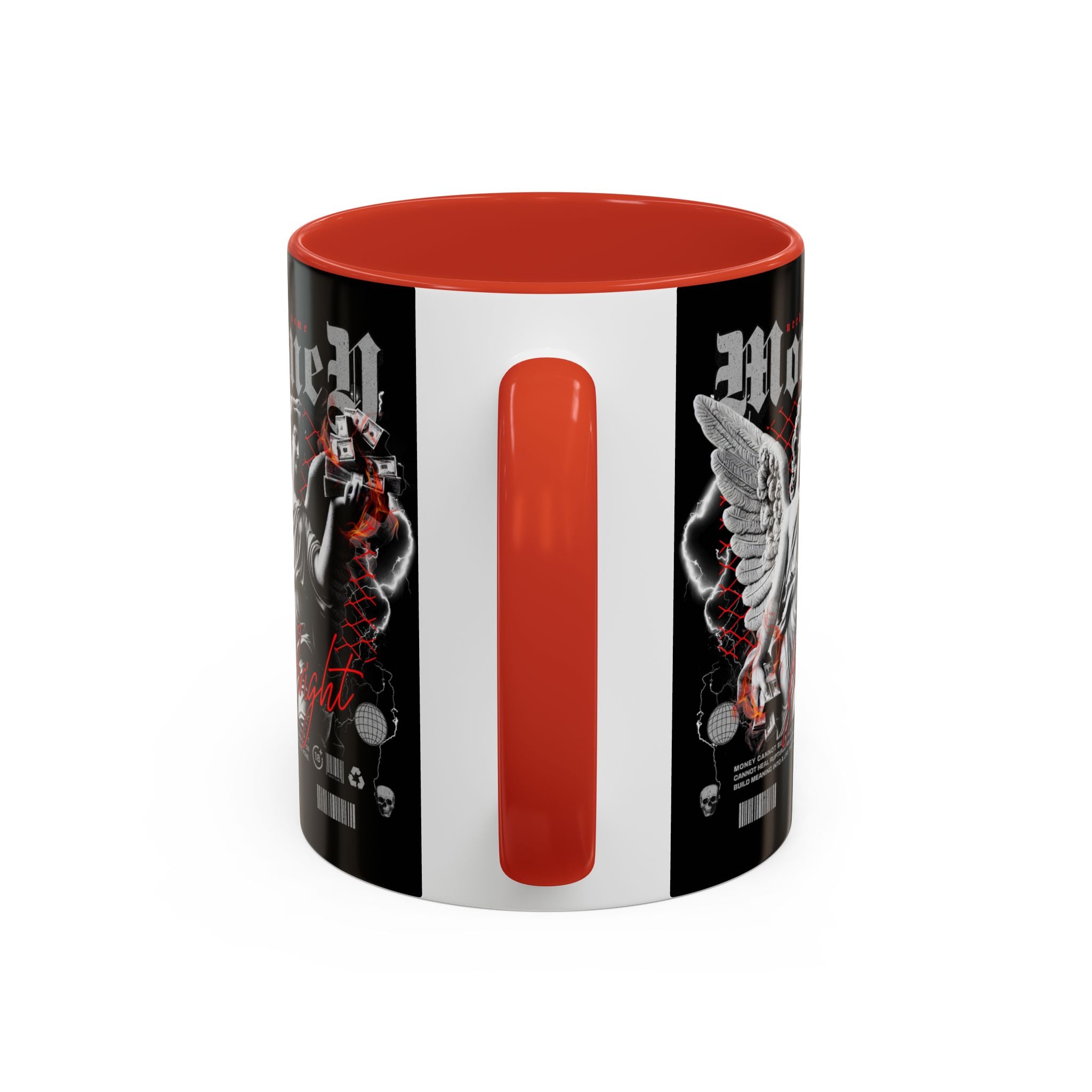 Make every sip a statement of ambition and bold energy with the Money Bright Accent Coffee Mug. Featuring a striking gothic-style angel statue holding stacks of cash, surrounded by fiery red neon grid art, this mug blends classic sculpture with raw modern hustle energy.