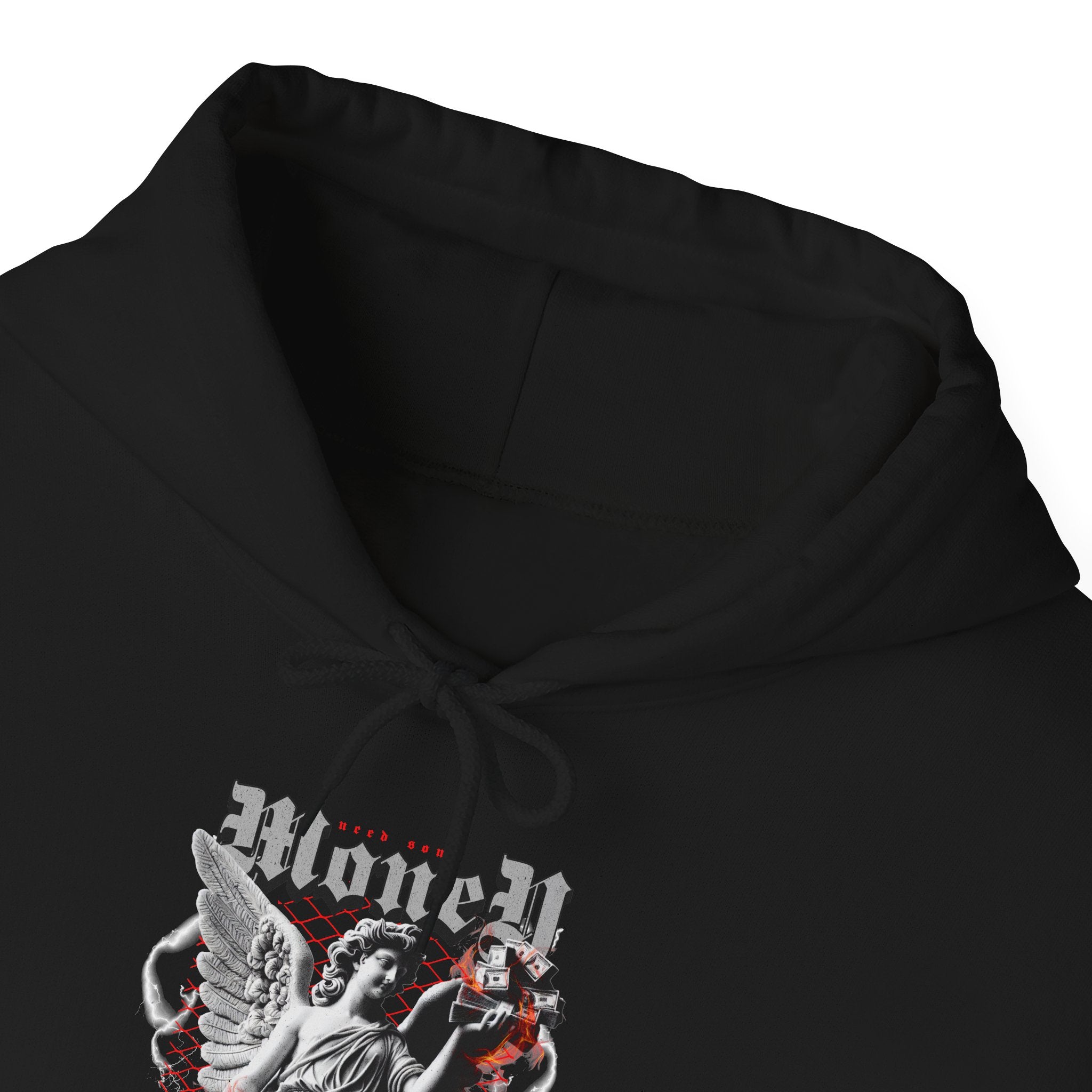 Unisex heavy blend hoodie with angel statue and neon money design