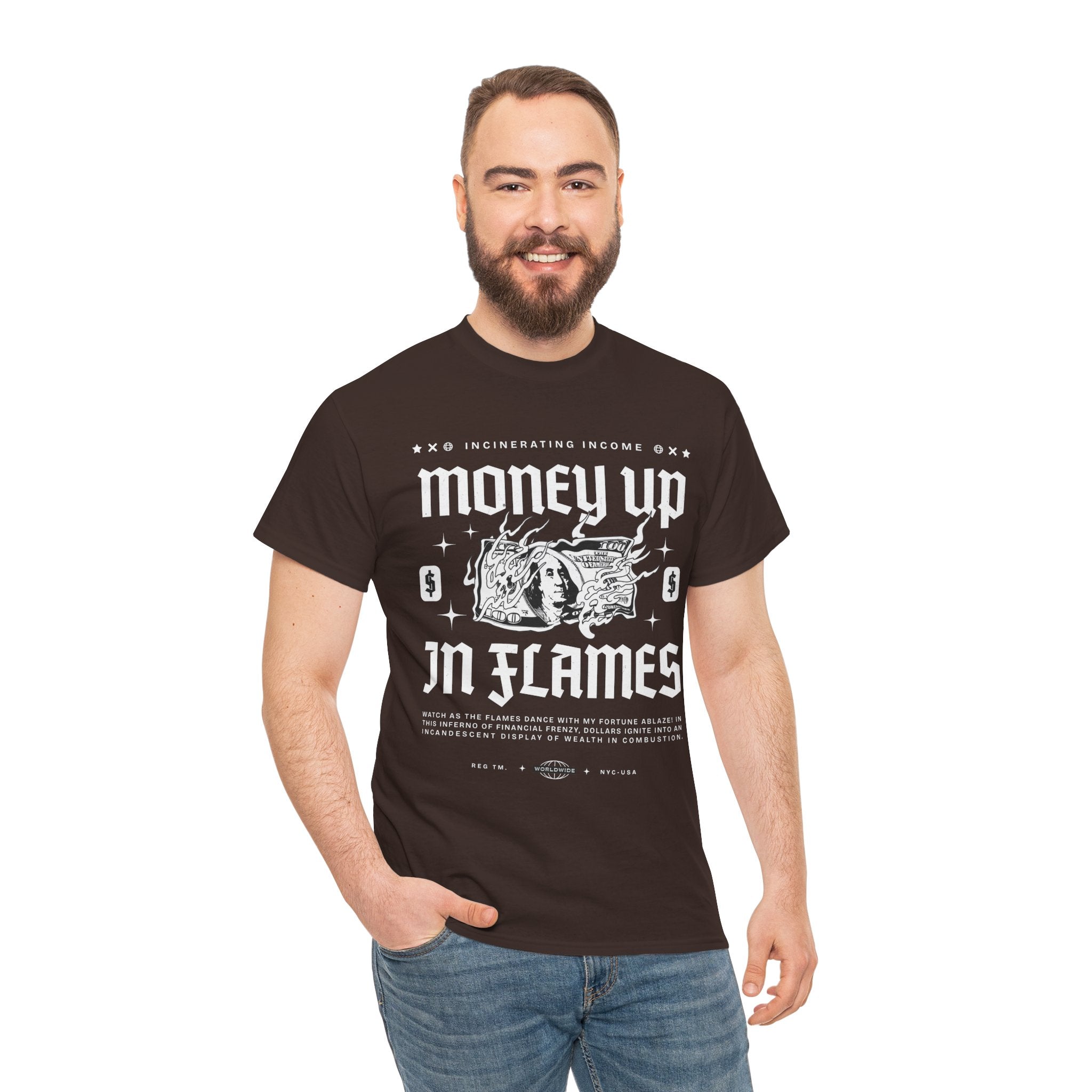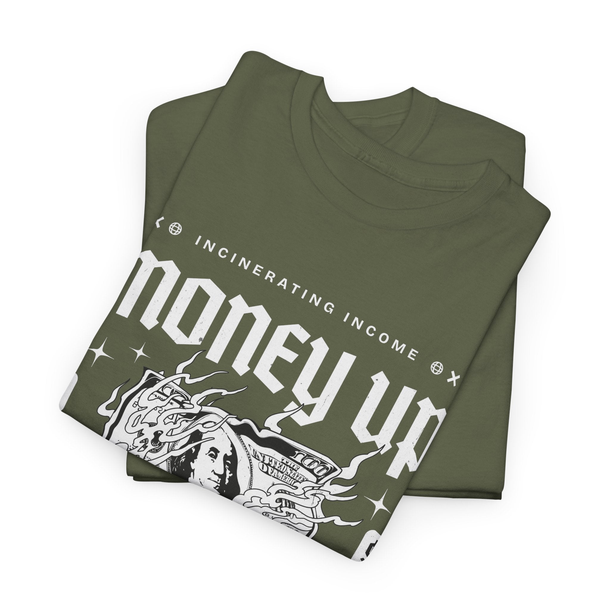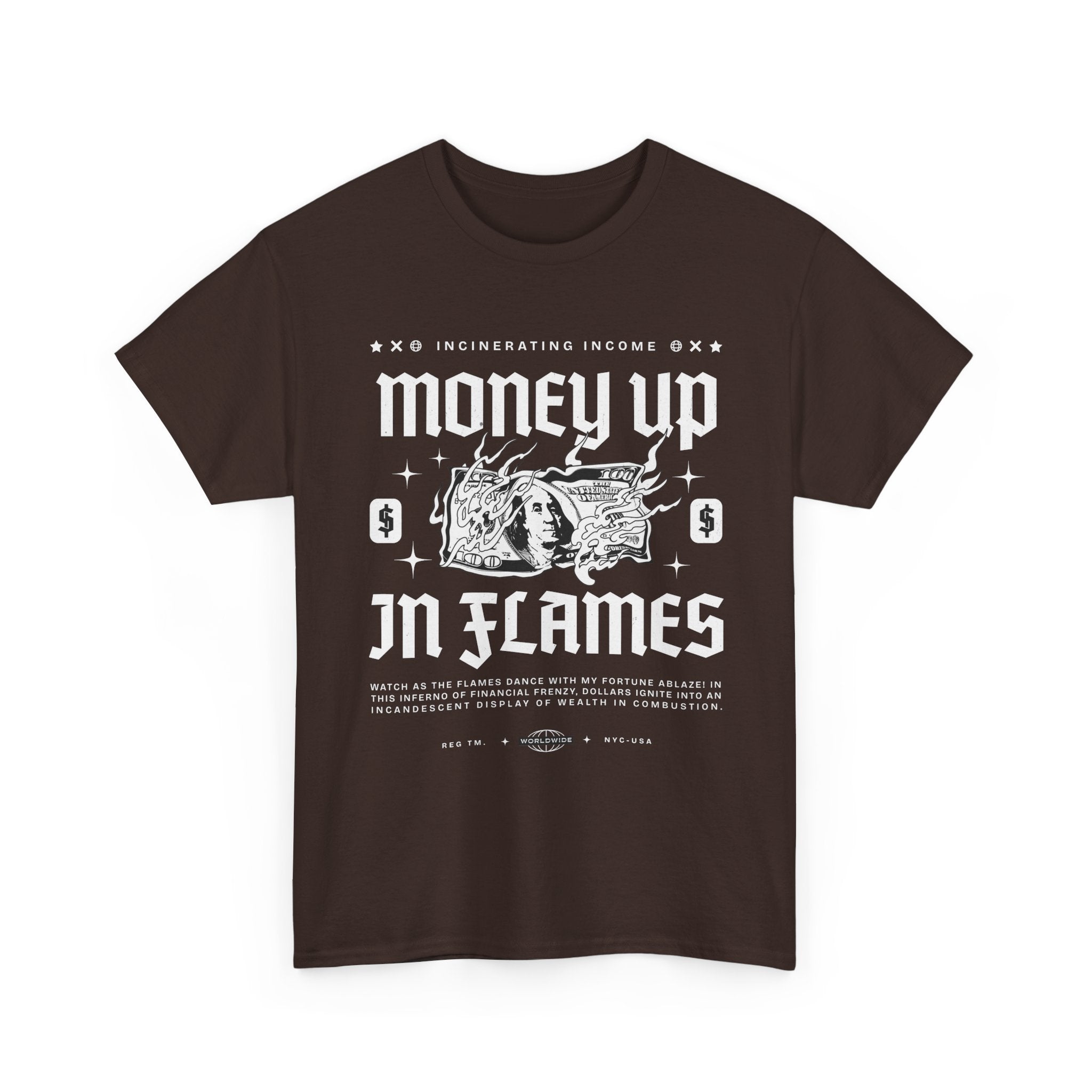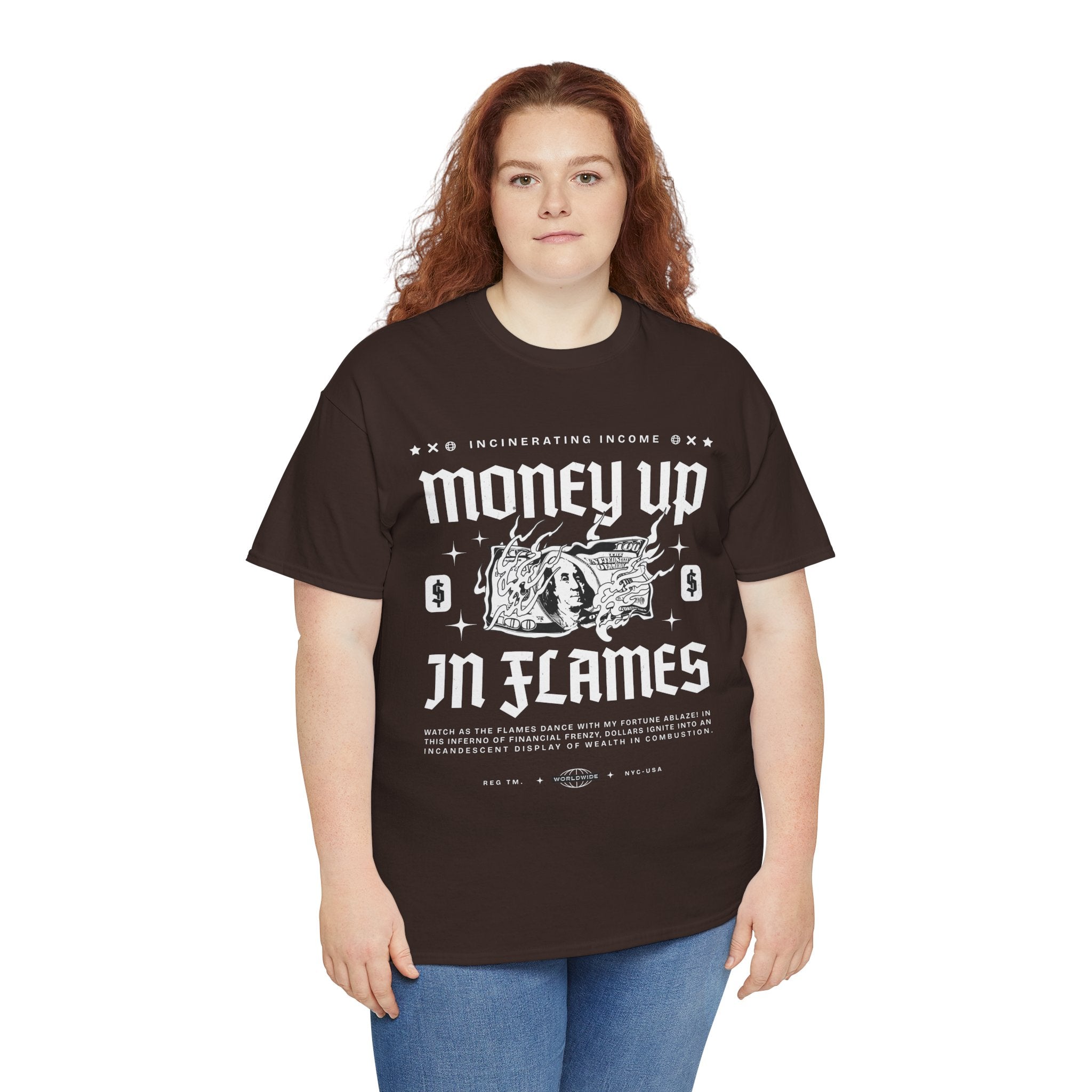 The Money Up In Flames Unisex Heavy Cotton Tee is more than just a shirt β itβs a bold commentary on ambition, wealth, and the fire of risk-taking. Featuring a striking burning dollar bill graphic with gothic-inspired typography, this design embodies the raw intensity of the hustler and alpha mindset.