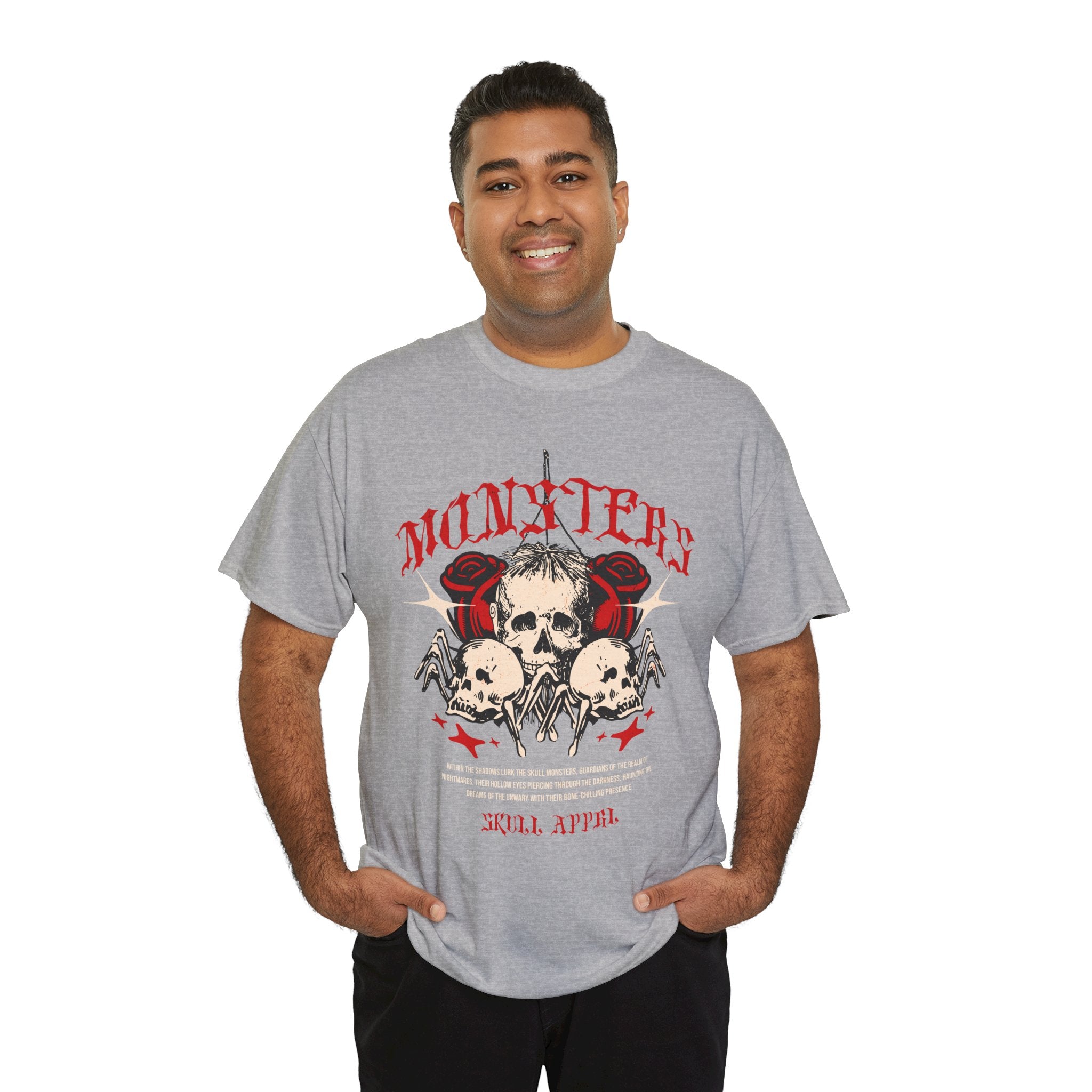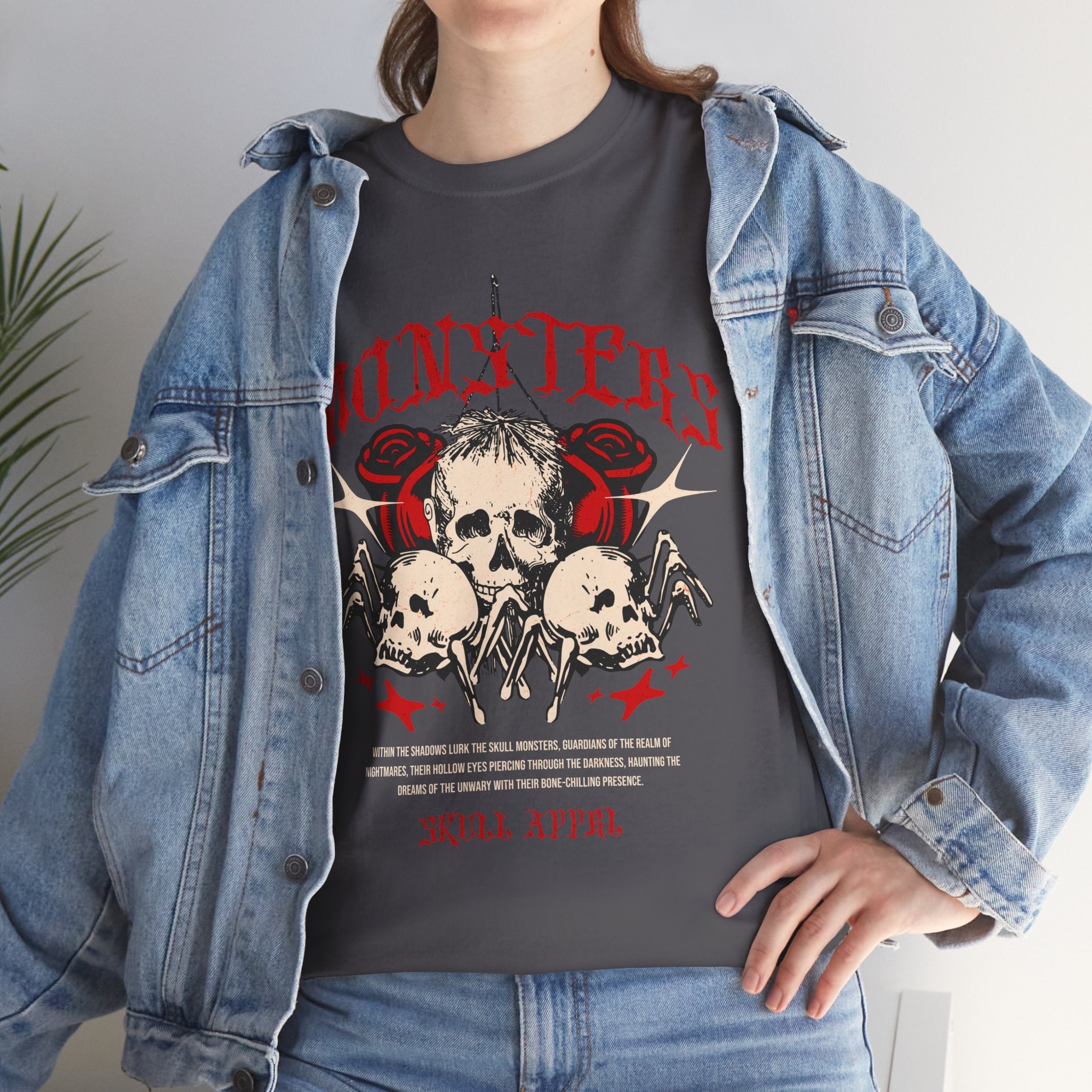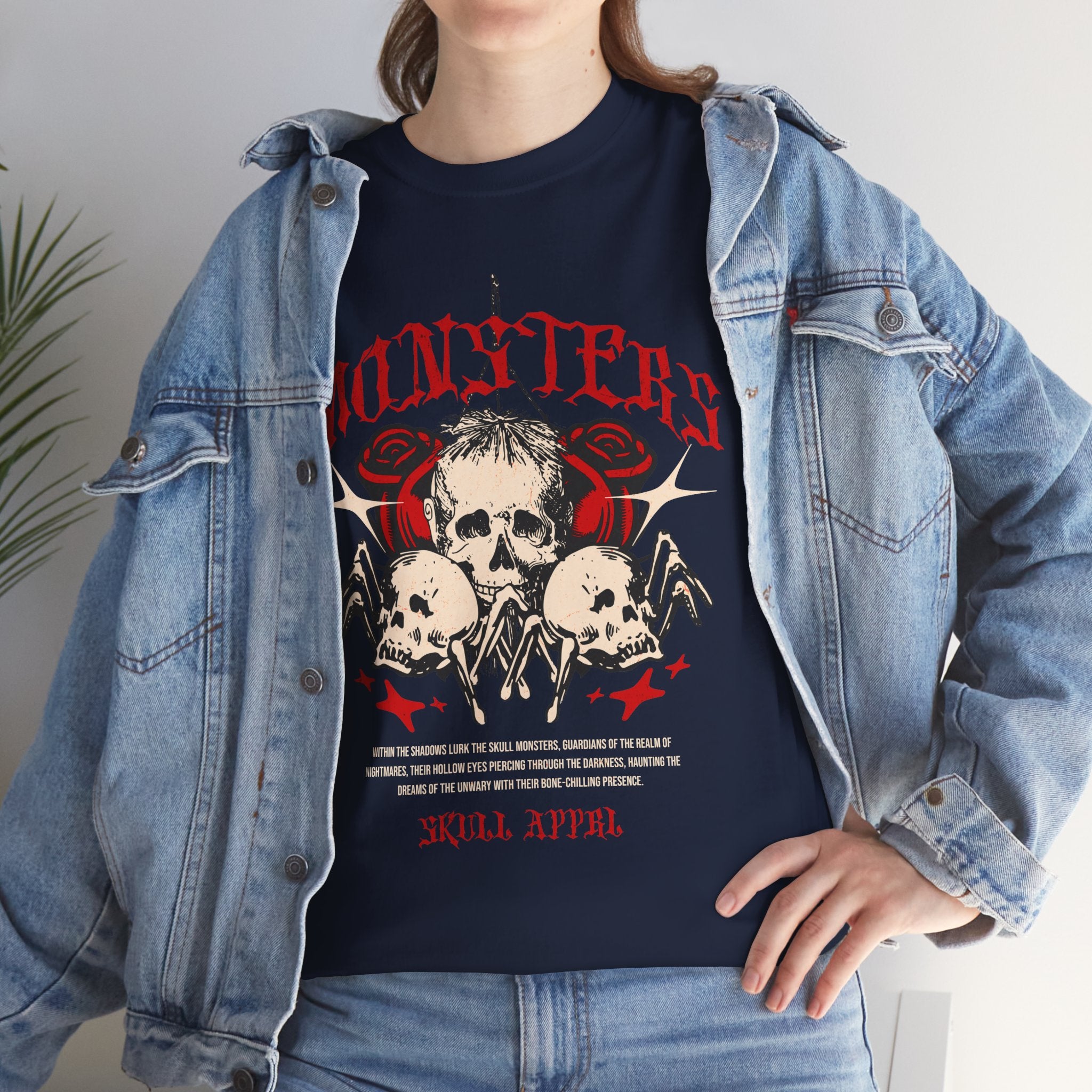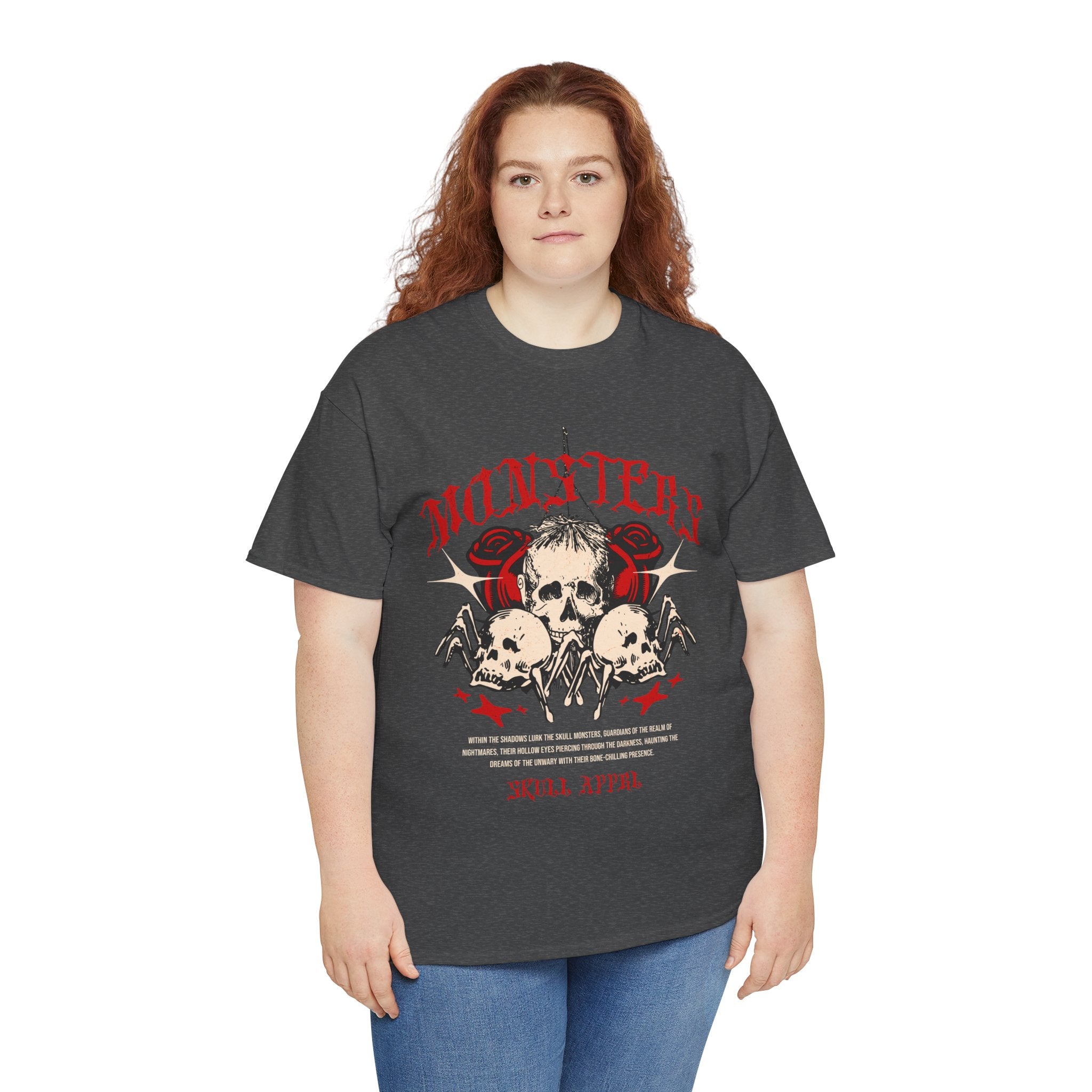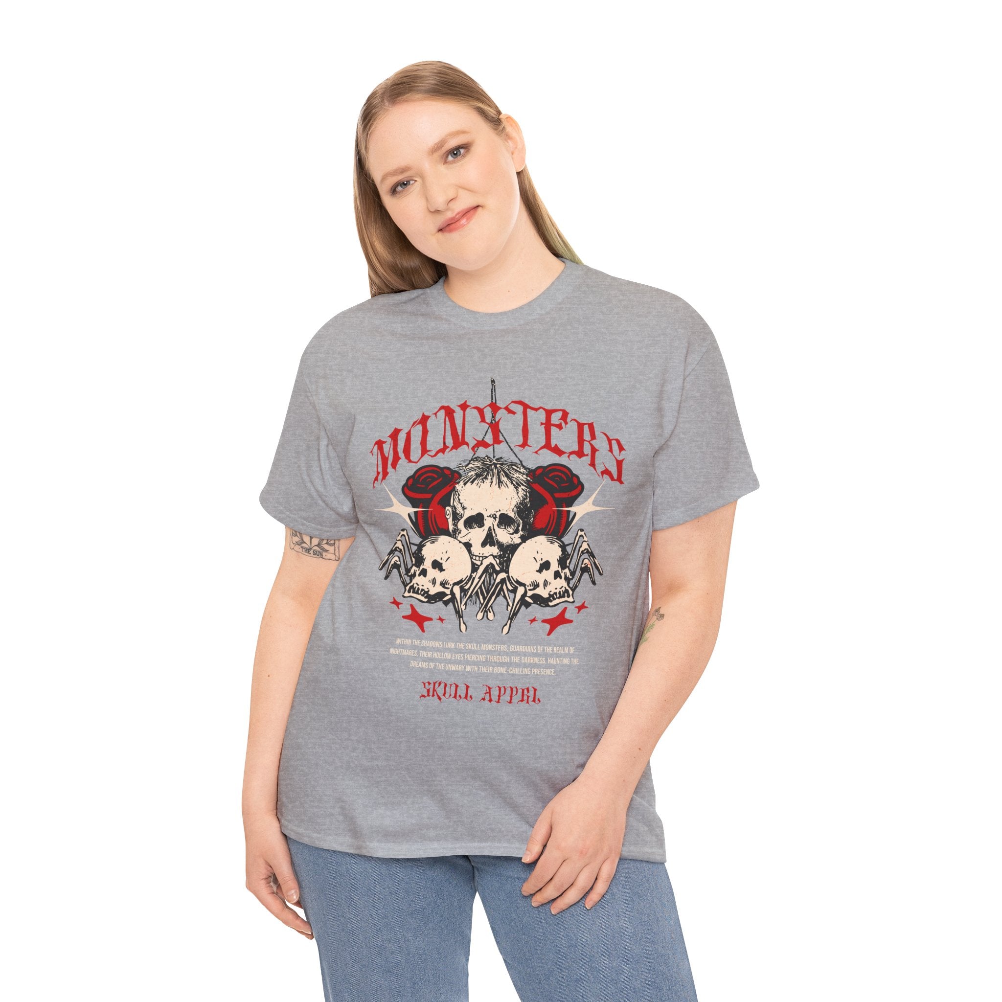 The Monsters Unisex Heavy Cotton Tee is a bold dive into the world of dark gothic art and horror-inspired streetwear. Featuring a haunting design of skulls framed with monstrous claws, eerie shadows, and gothic red typography, this shirt symbolizes the guardians of nightmares and the eternal pull of the unknown. With its vintage-inspired distressed style, it’s perfect for those who want to wear their love for gothic and horror fashion.