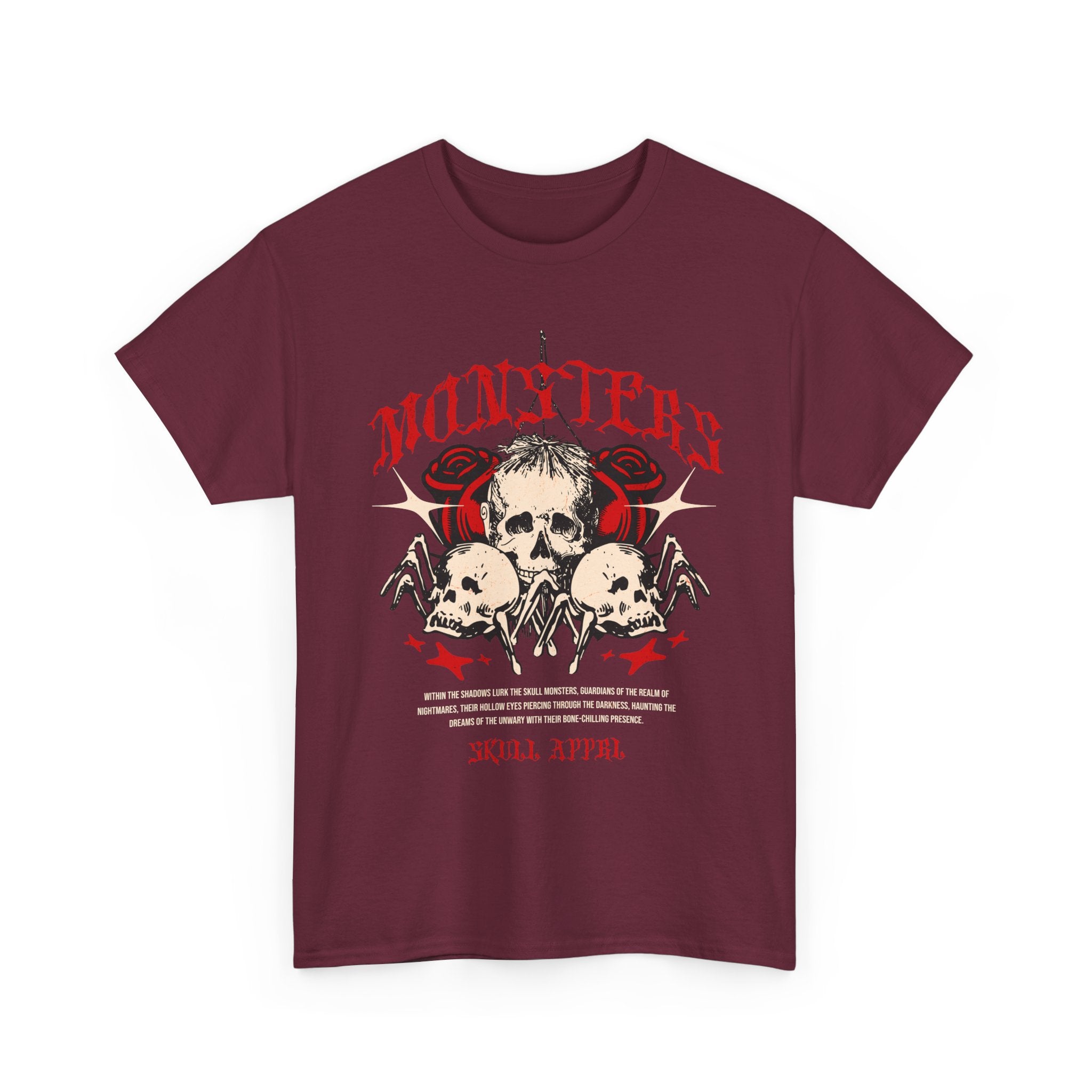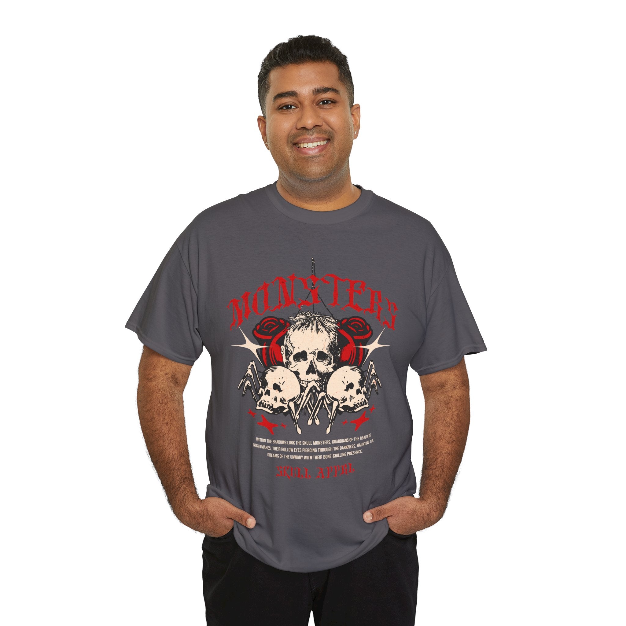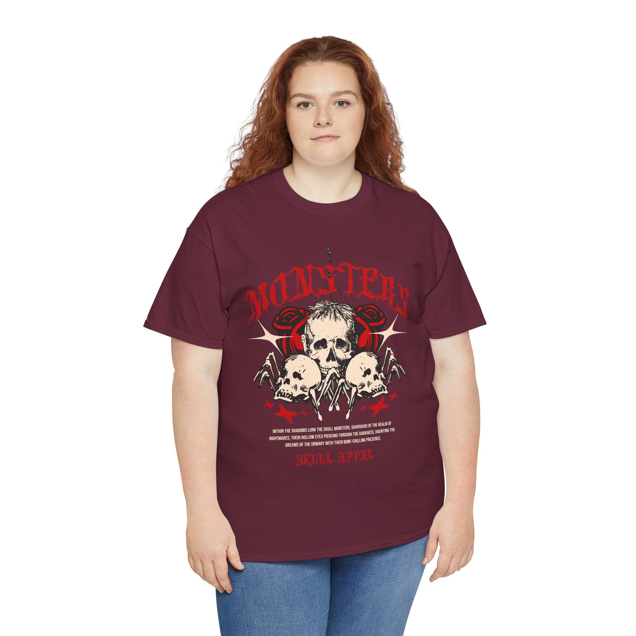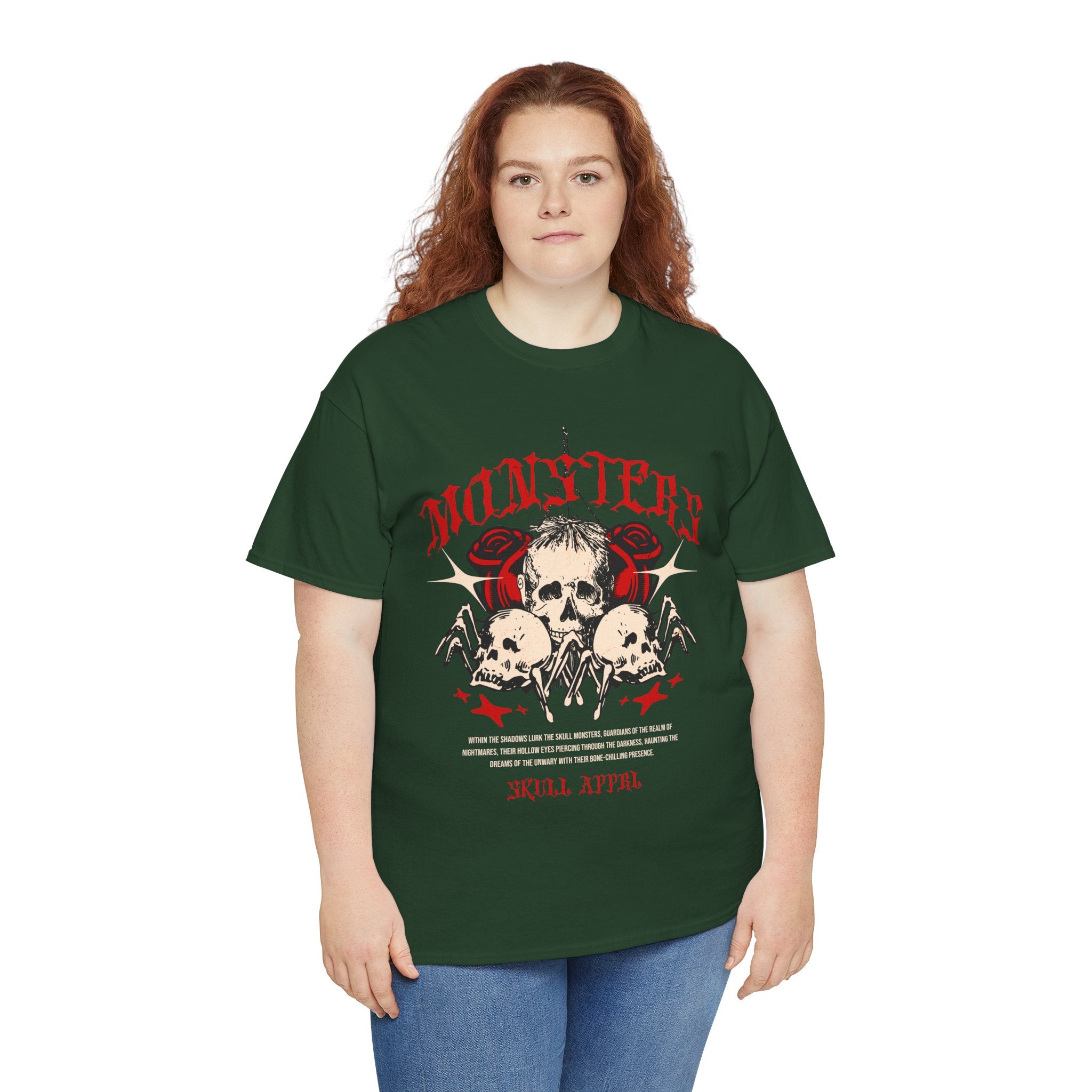 The Monsters Unisex Heavy Cotton Tee is a bold dive into the world of dark gothic art and horror-inspired streetwear. Featuring a haunting design of skulls framed with monstrous claws, eerie shadows, and gothic red typography, this shirt symbolizes the guardians of nightmares and the eternal pull of the unknown. With its vintage-inspired distressed style, it’s perfect for those who want to wear their love for gothic and horror fashion.