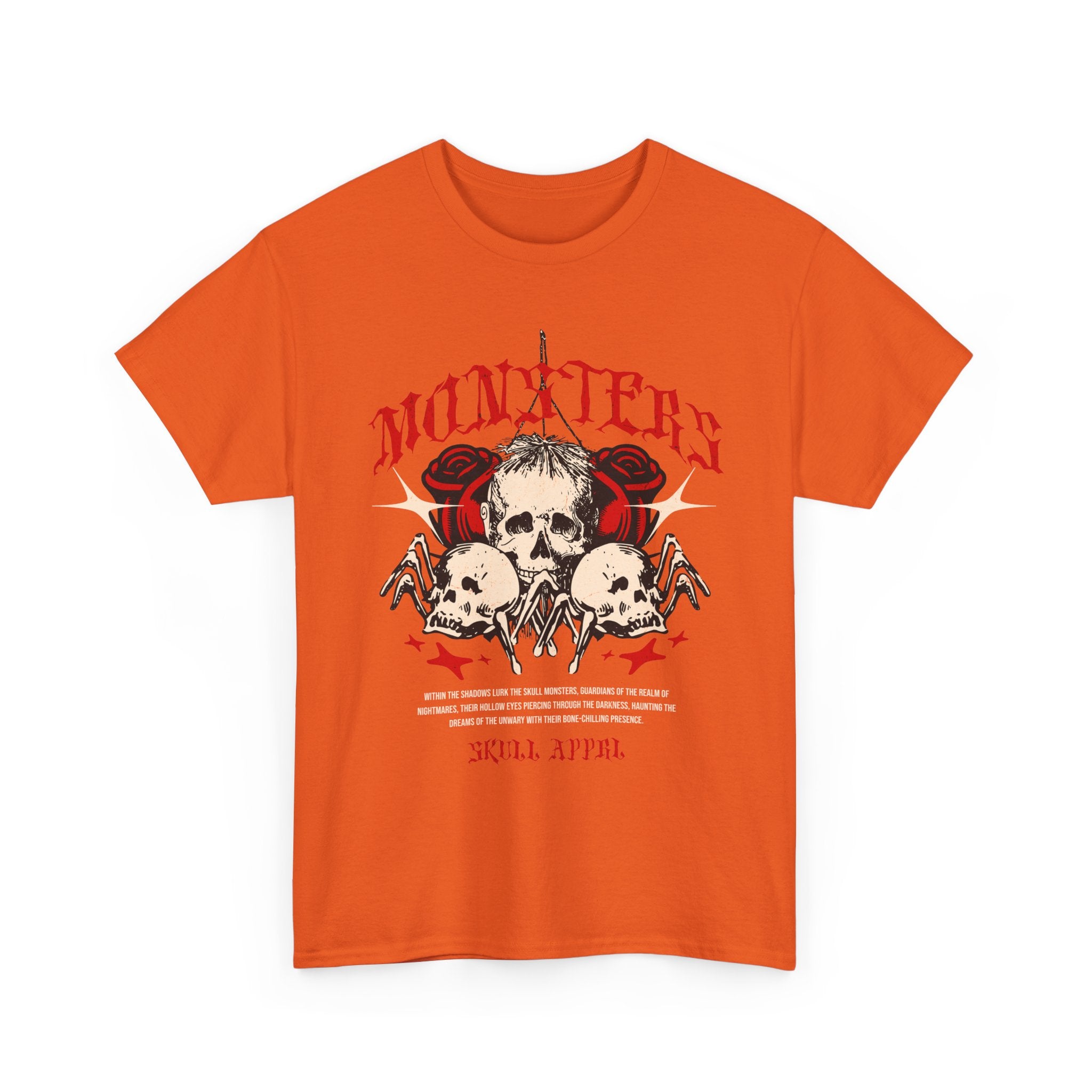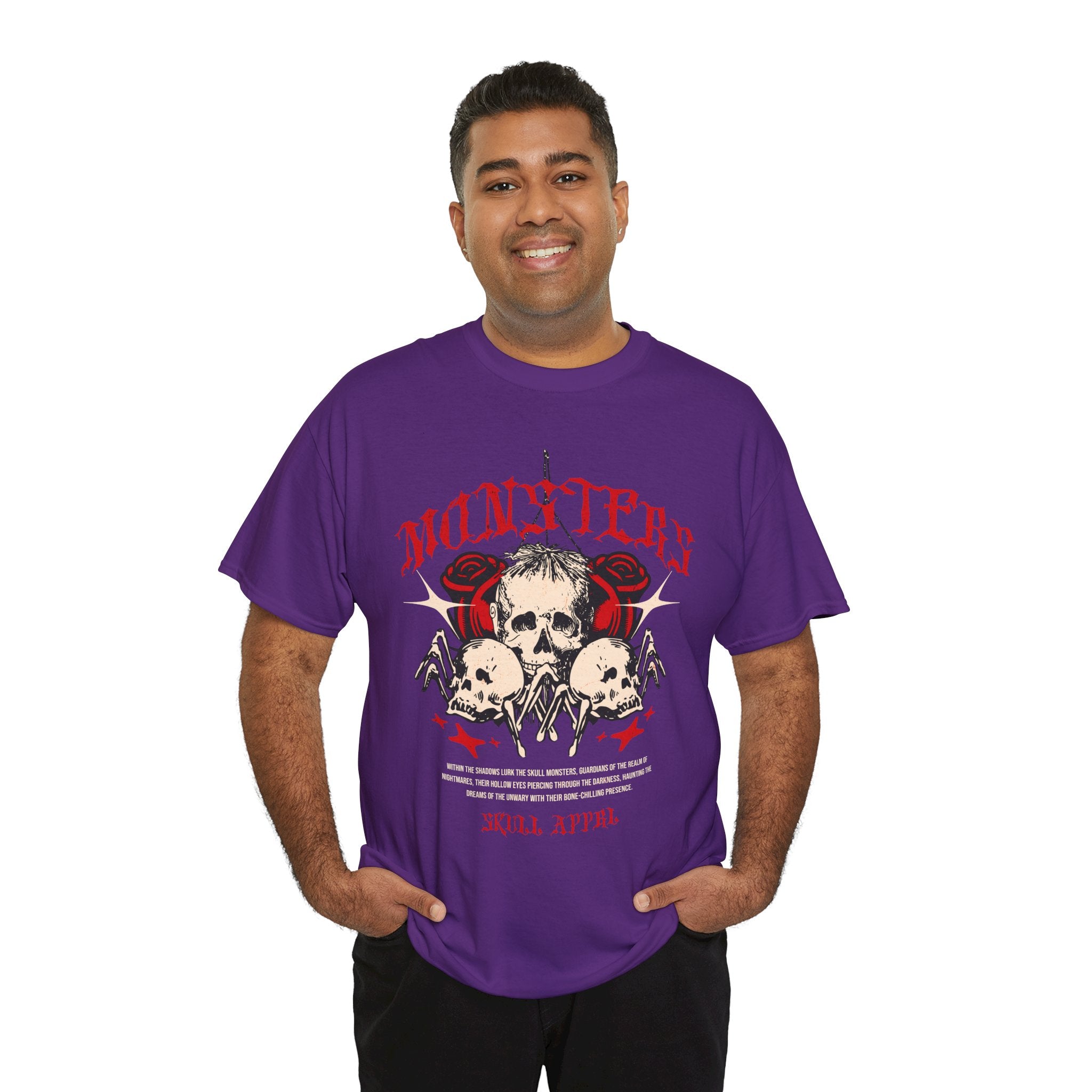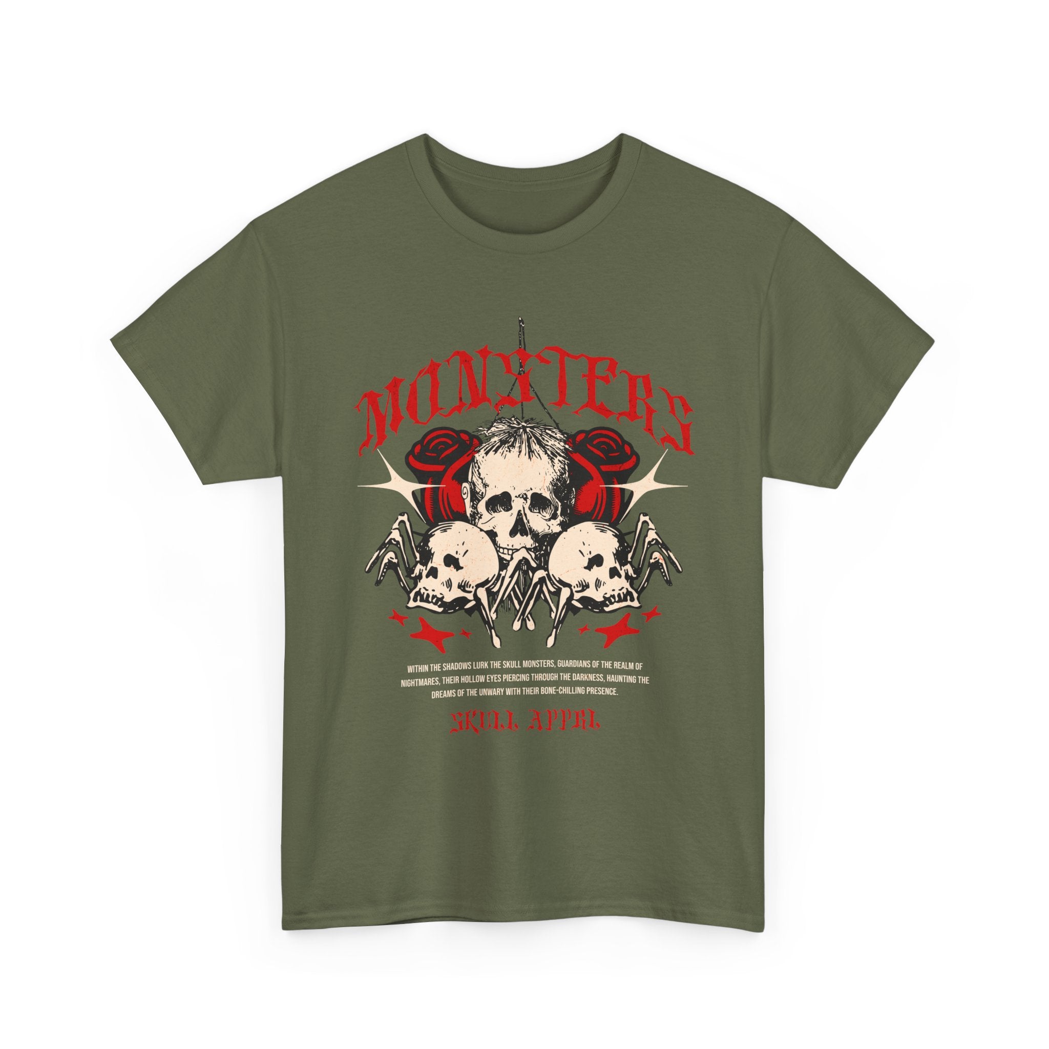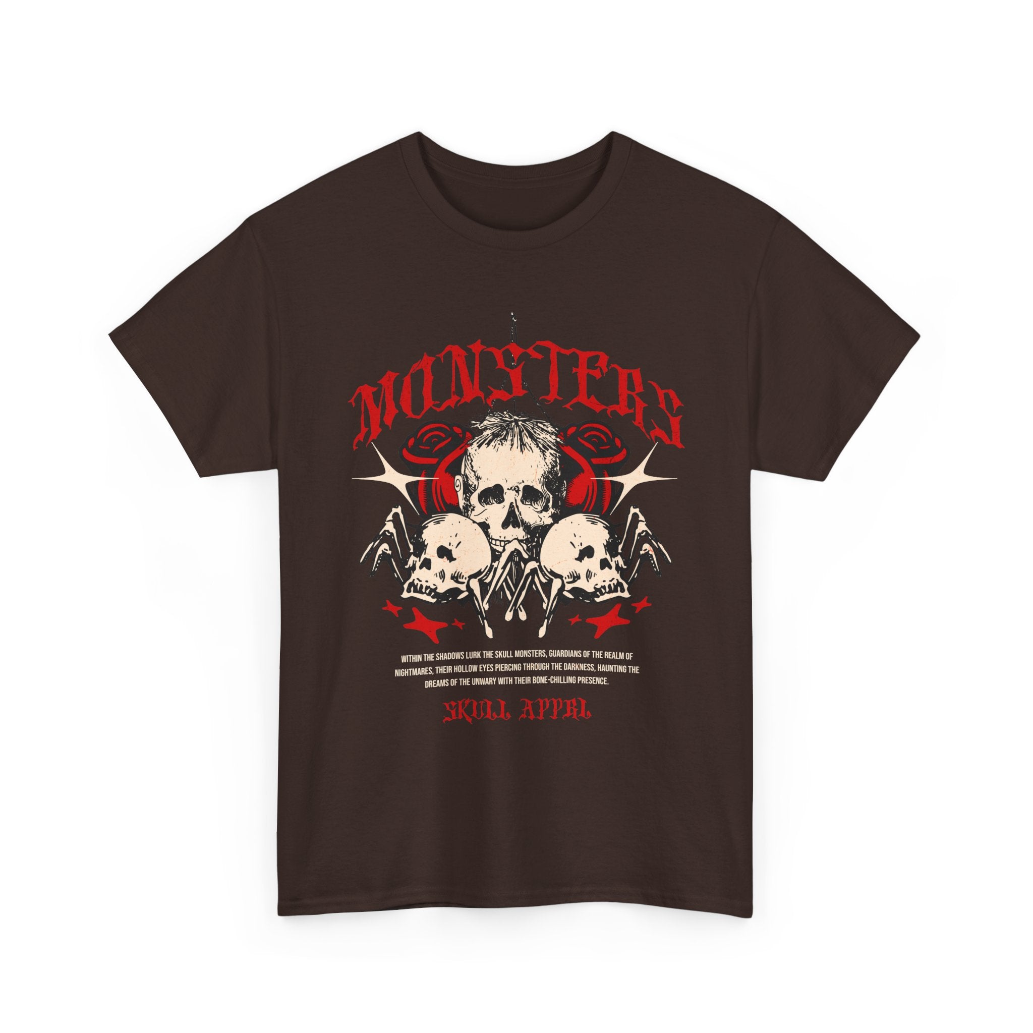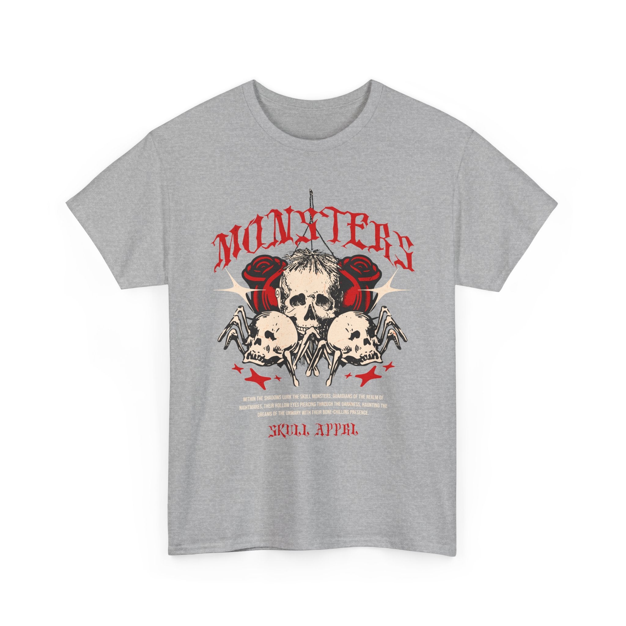 The Monsters Unisex Heavy Cotton Tee is a bold dive into the world of dark gothic art and horror-inspired streetwear. Featuring a haunting design of skulls framed with monstrous claws, eerie shadows, and gothic red typography, this shirt symbolizes the guardians of nightmares and the eternal pull of the unknown. With its vintage-inspired distressed style, it’s perfect for those who want to wear their love for gothic and horror fashion.