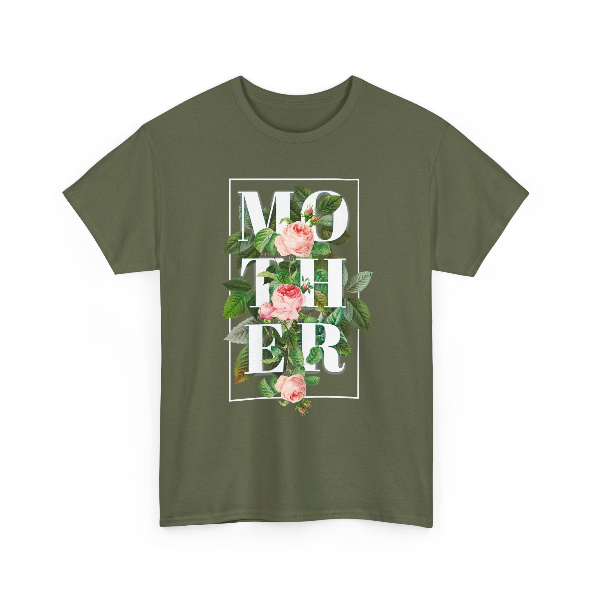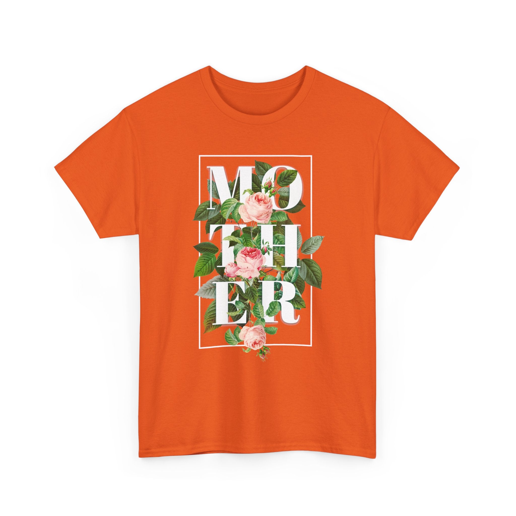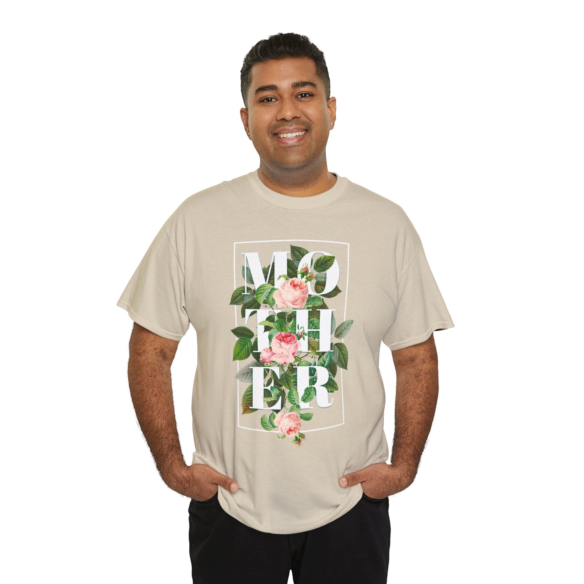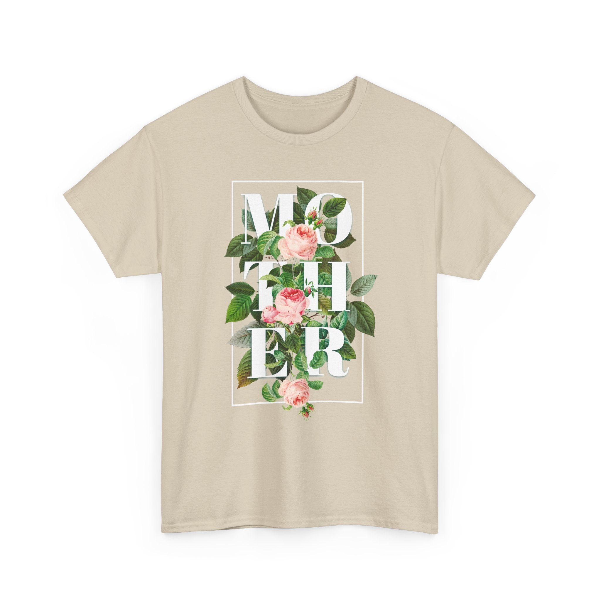 Celebrate love, strength, and beauty with the Mother Floral Unisex Heavy Cotton Tee. This design blends elegant roses and lush greenery with bold typography spelling “MOTHER,” symbolizing nurturing, resilience, and timeless grace.