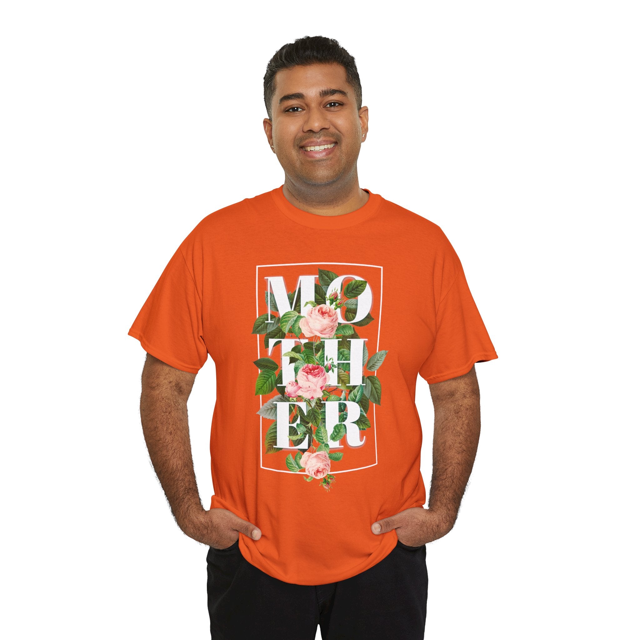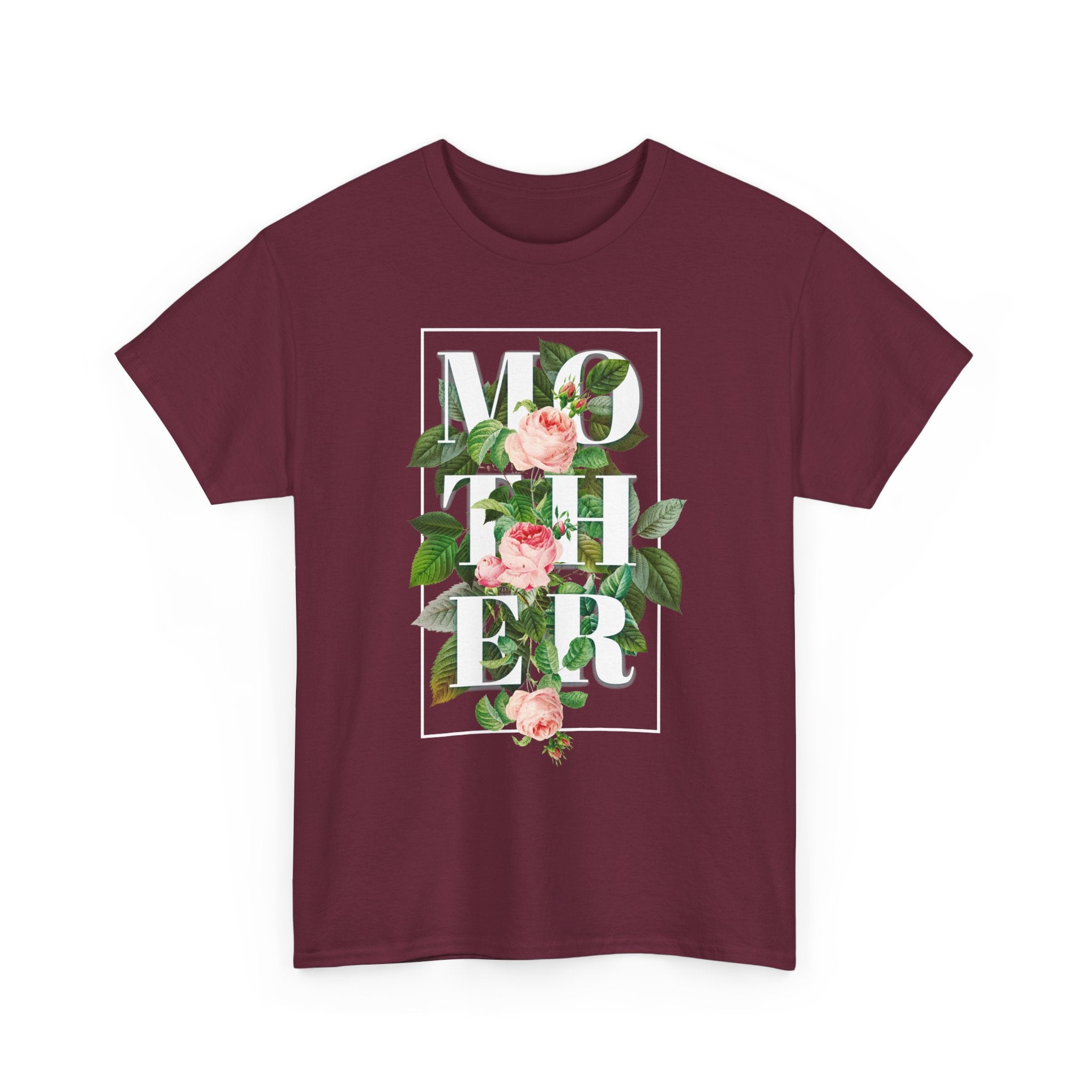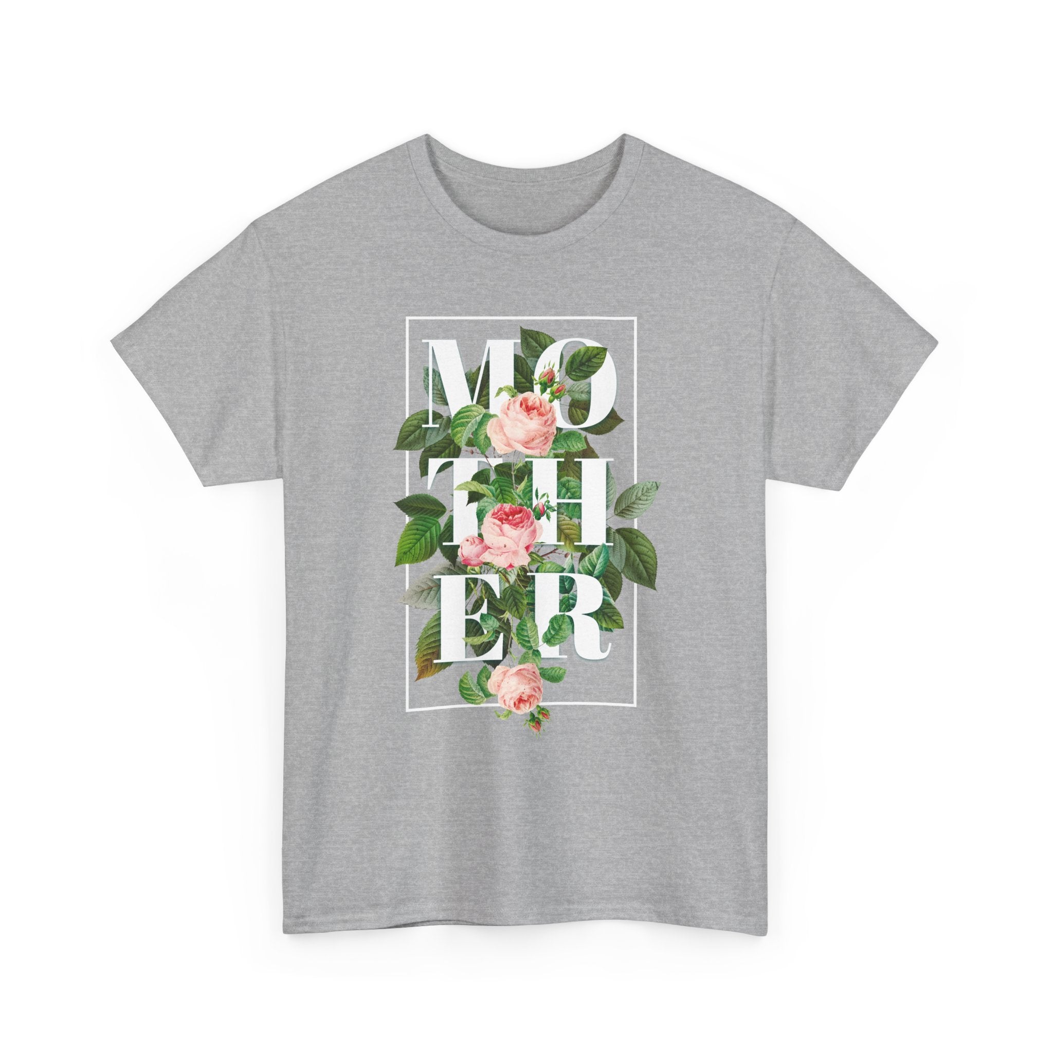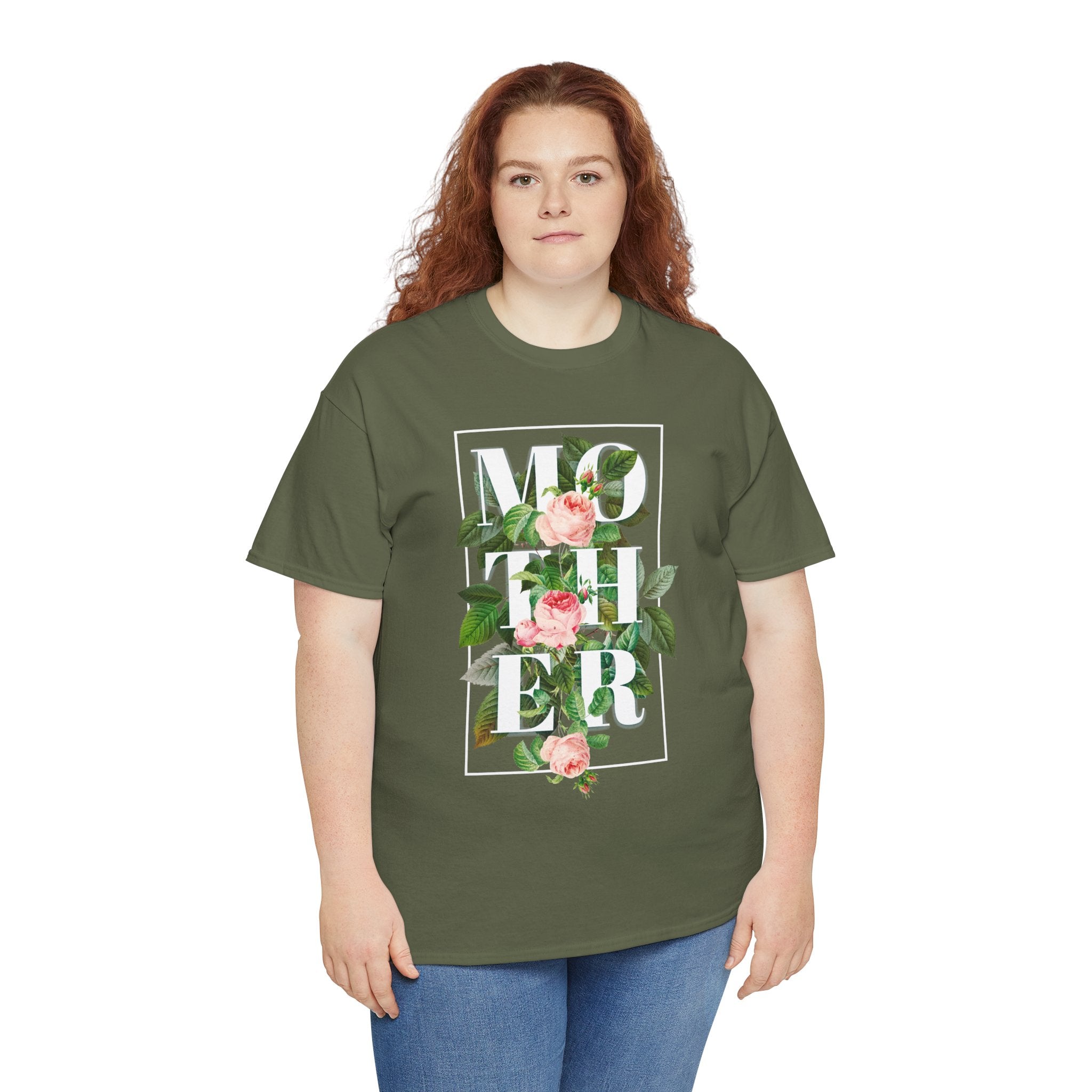 Celebrate love, strength, and beauty with the Mother Floral Unisex Heavy Cotton Tee. This design blends elegant roses and lush greenery with bold typography spelling “MOTHER,” symbolizing nurturing, resilience, and timeless grace.