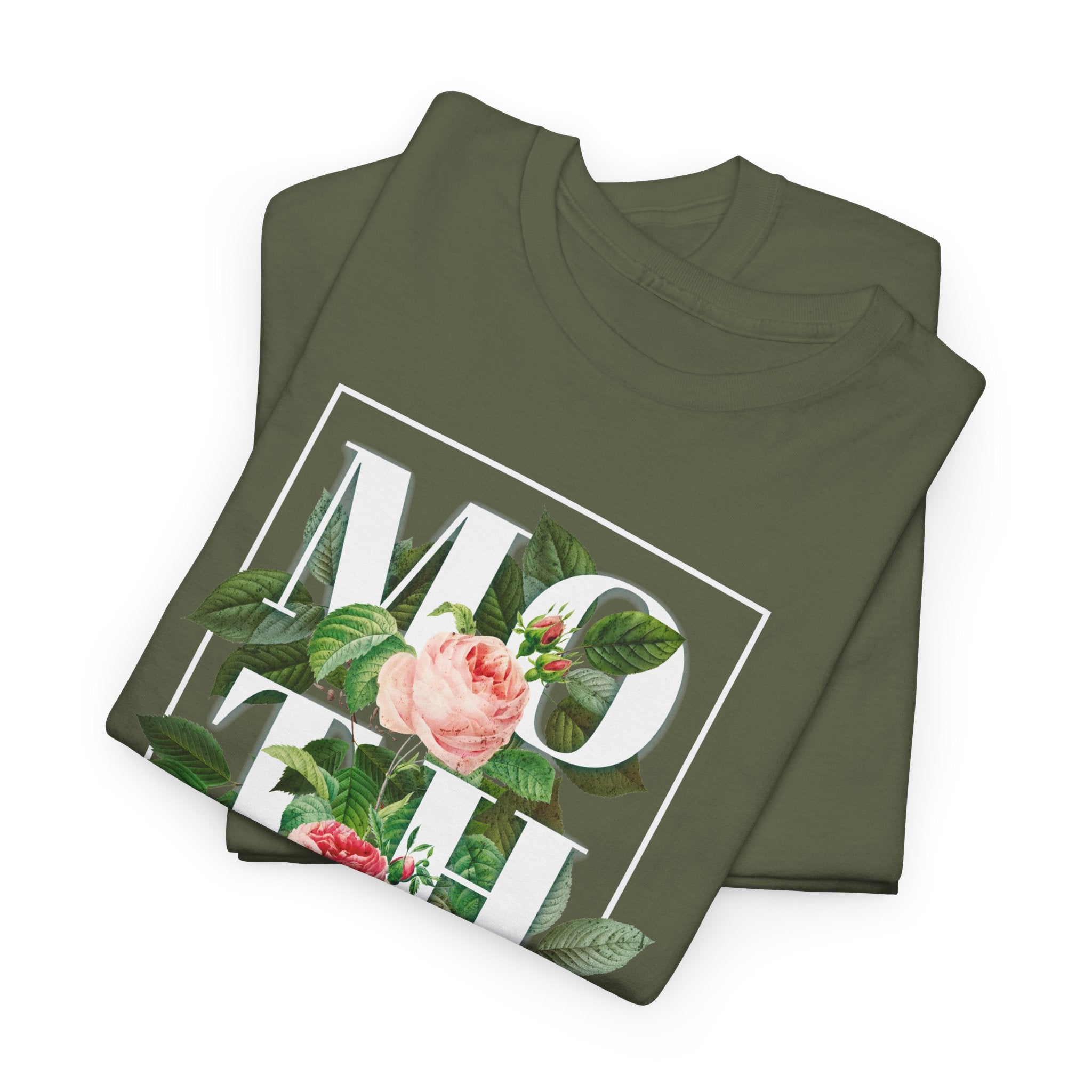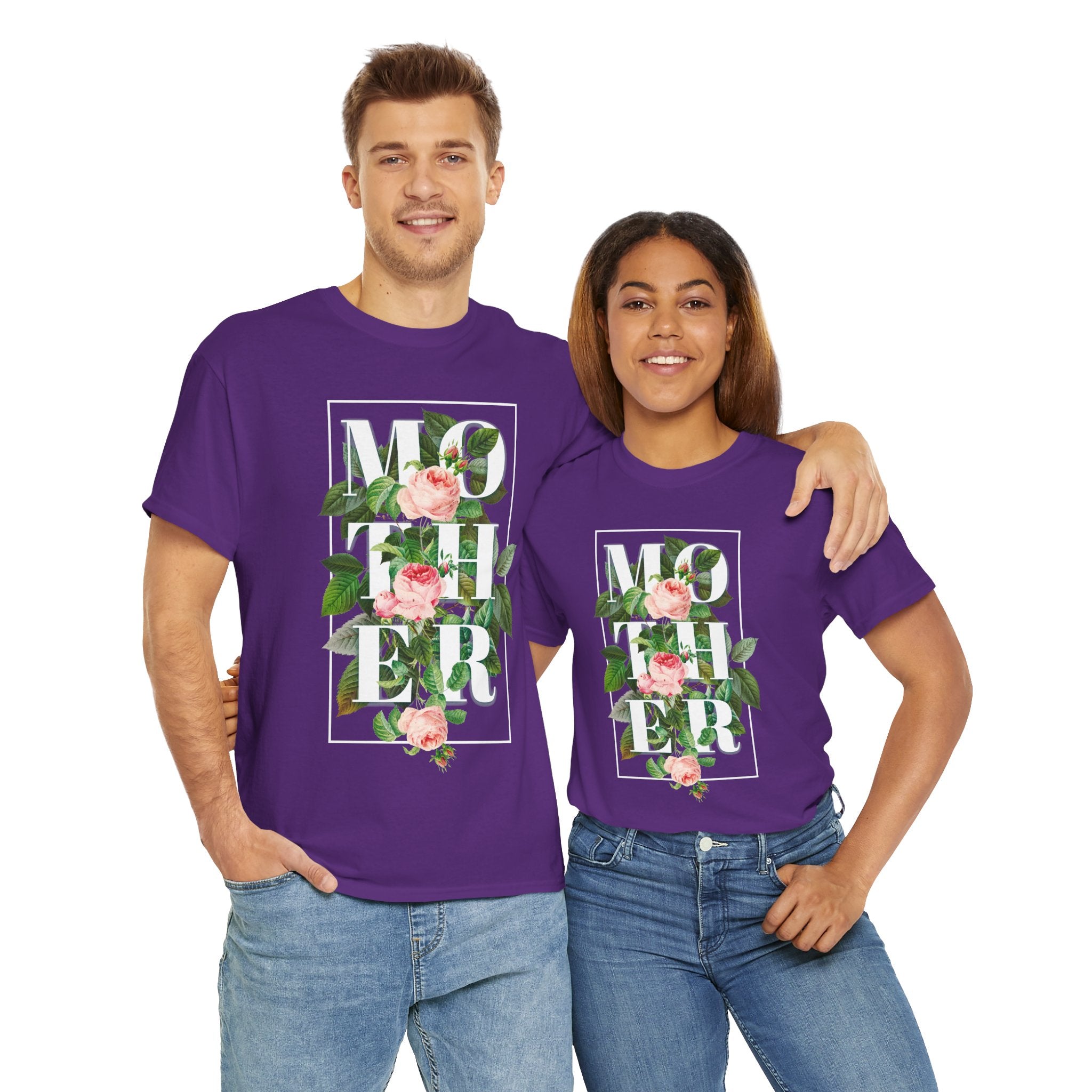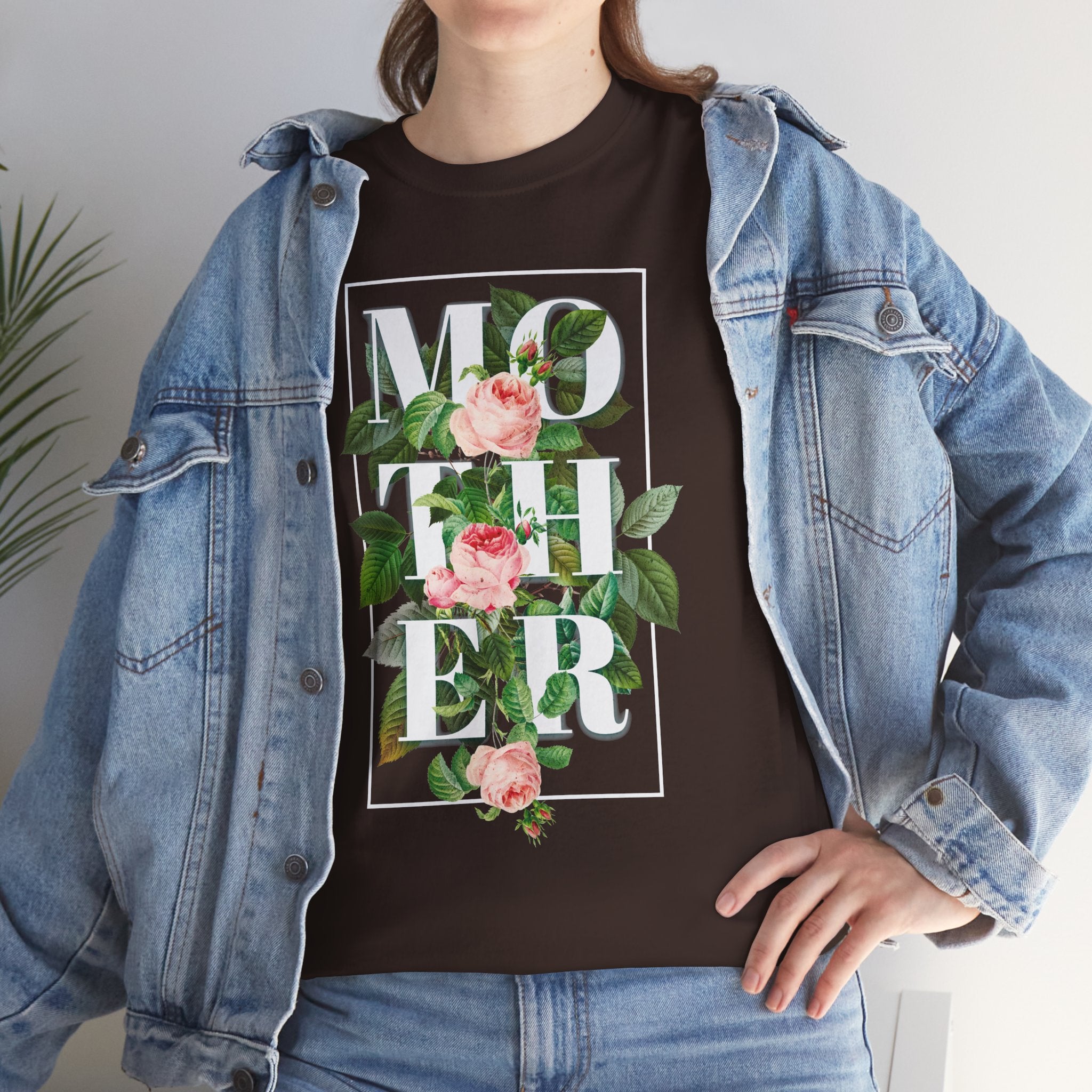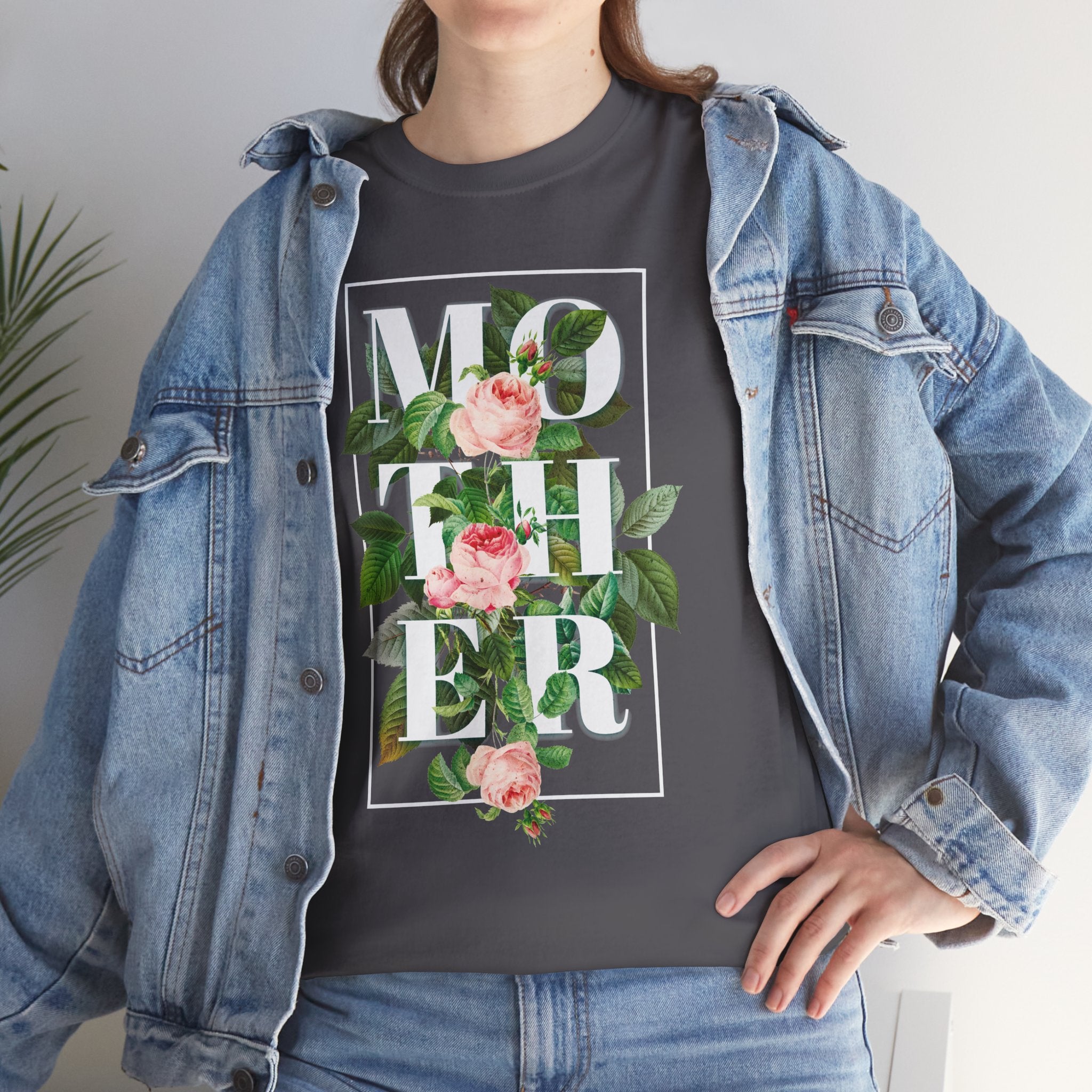 Celebrate love, strength, and beauty with the Mother Floral Unisex Heavy Cotton Tee. This design blends elegant roses and lush greenery with bold typography spelling “MOTHER,” symbolizing nurturing, resilience, and timeless grace.