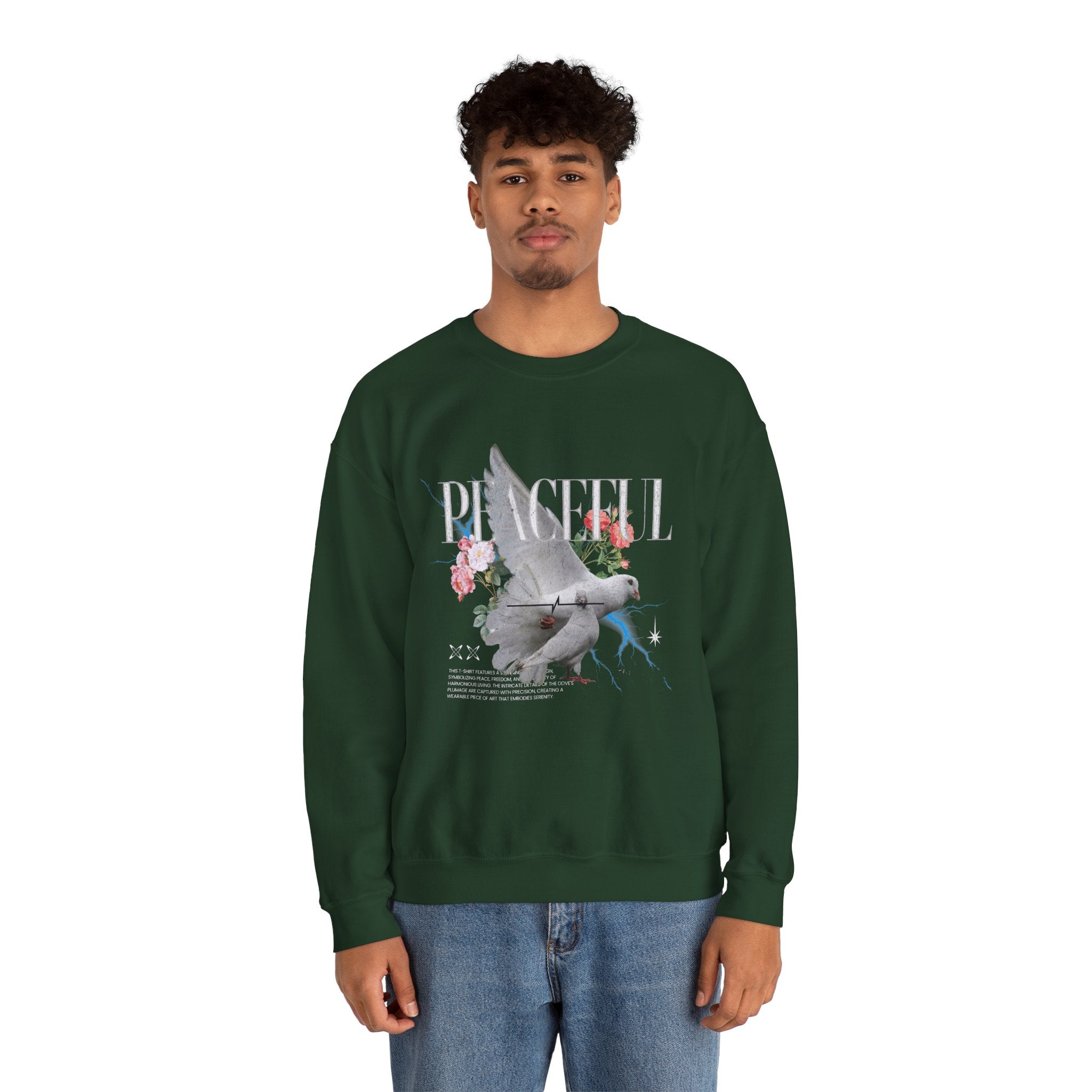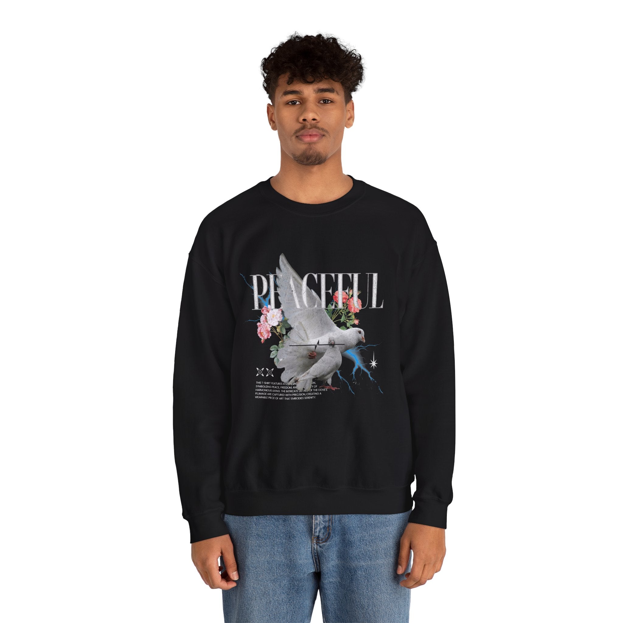 Crafted with a soft cotton-poly blend, this crewneck offers all-day comfort with just the right amount of warmth. Designed for unisex wear, it pairs effortlessly with joggers, jeans, or layered streetwear looks. Whether gifting it to someone who values peace or wearing it as a statement piece, this sweatshirt embodies meaningful style.
