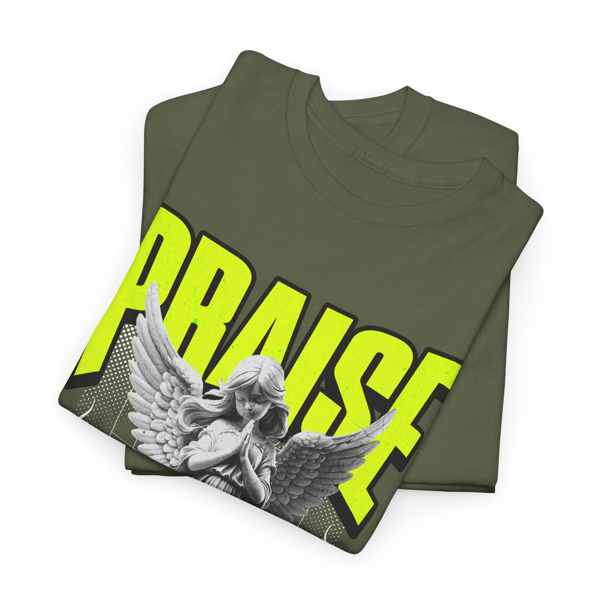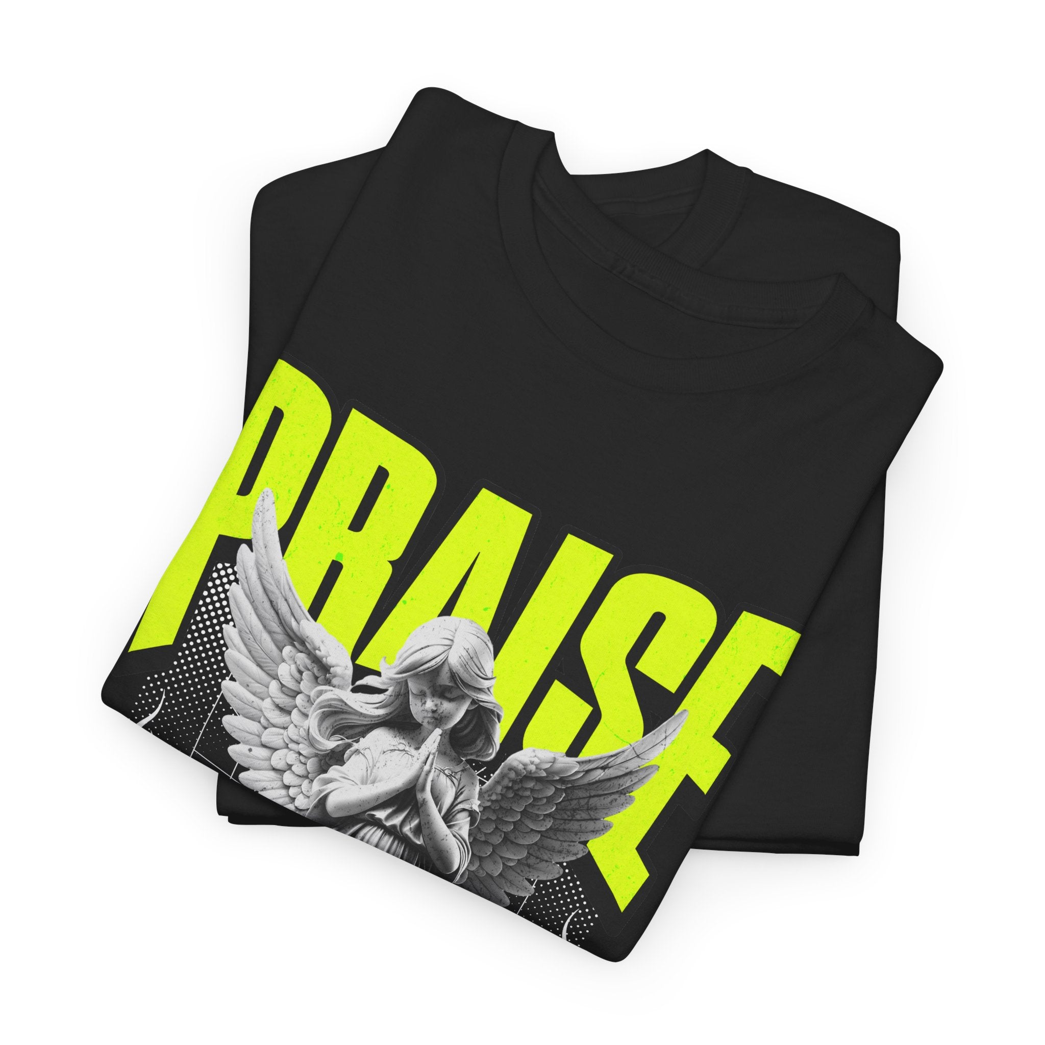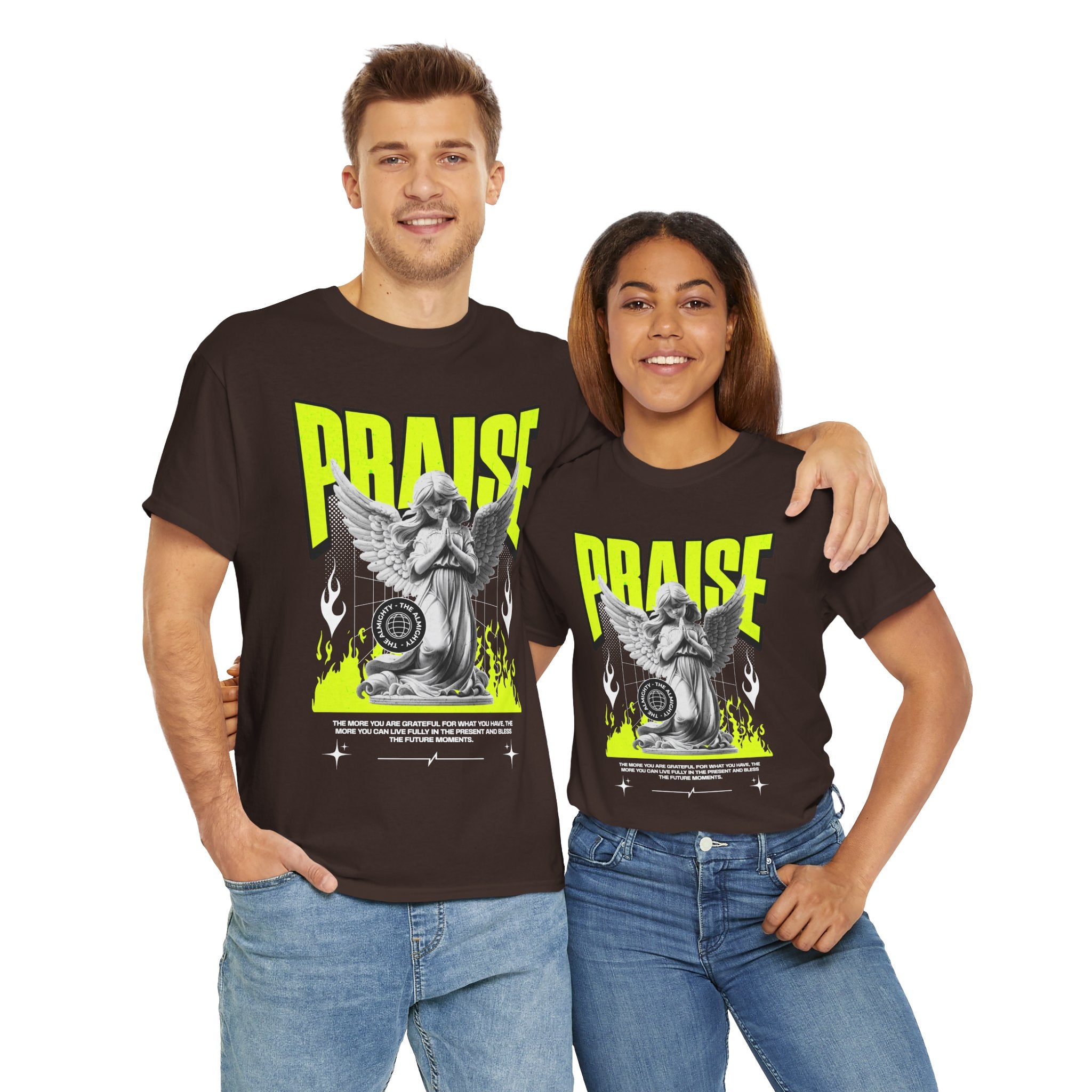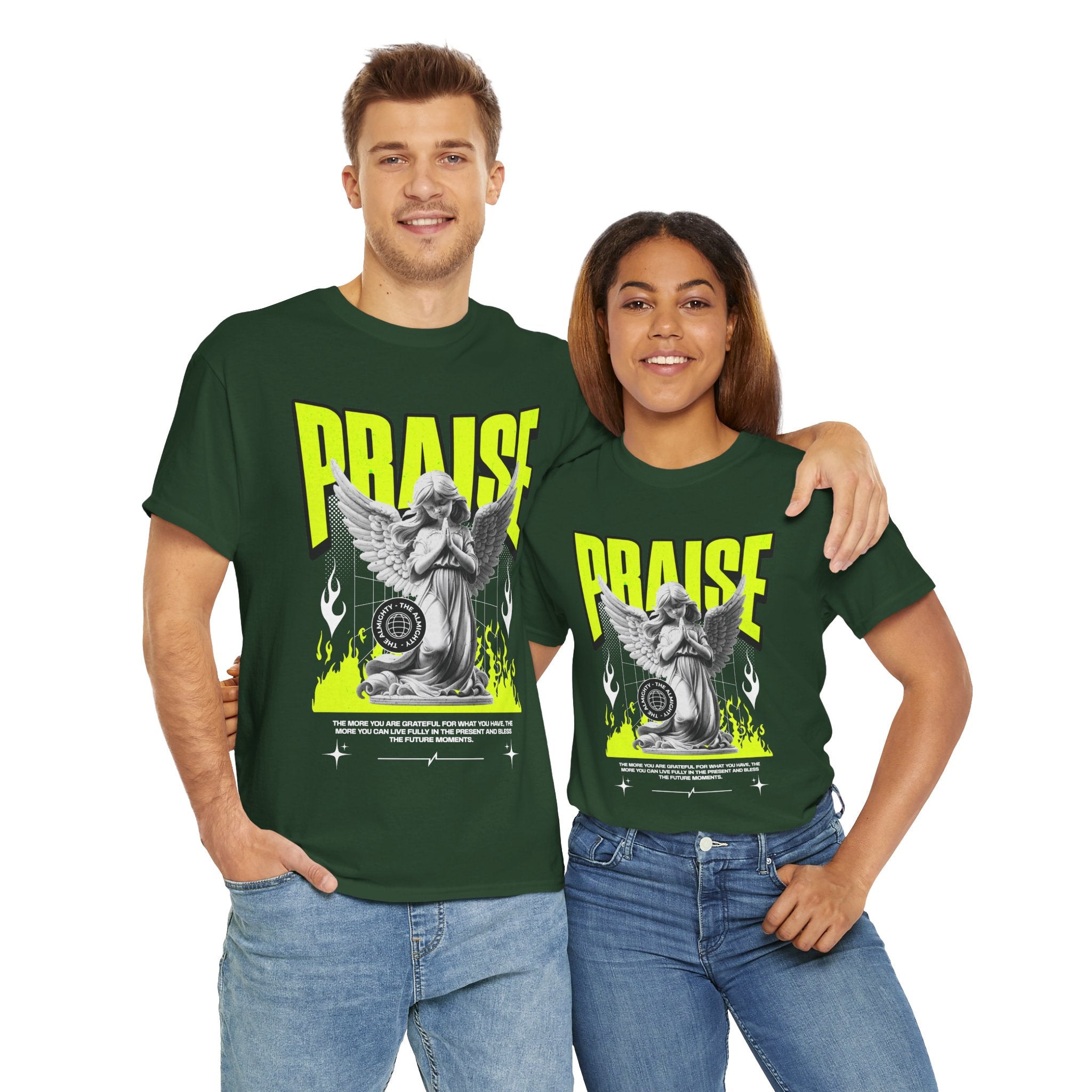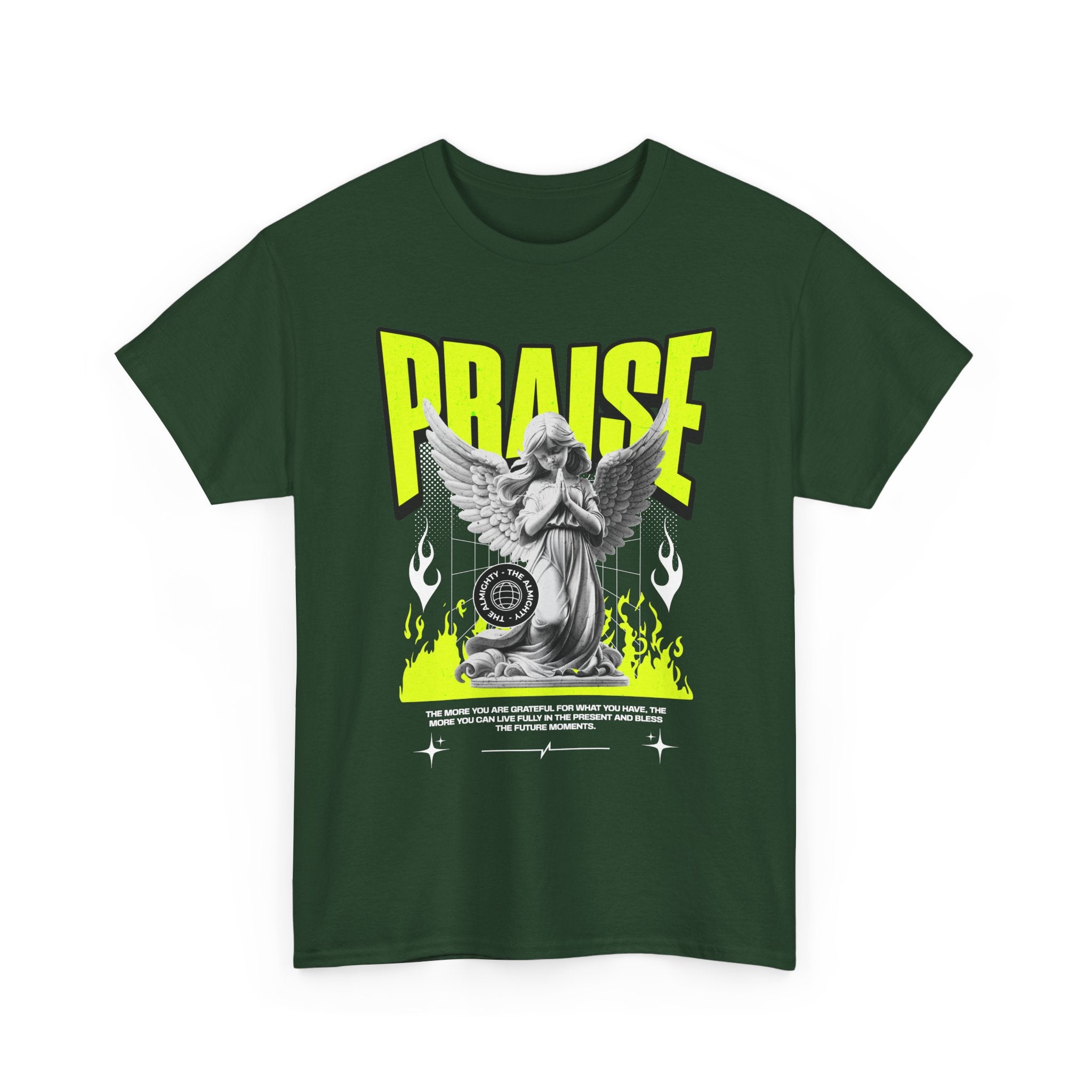 Channel the power of gratitude and bold streetwear style with the Praise Heavy Cotton Tee. Featuring a striking angel statue graphic surrounded by neon flames and modern gothic typography, this tee is more than just clothing – it’s a statement of inner strength, faith, and street-ready confidence.