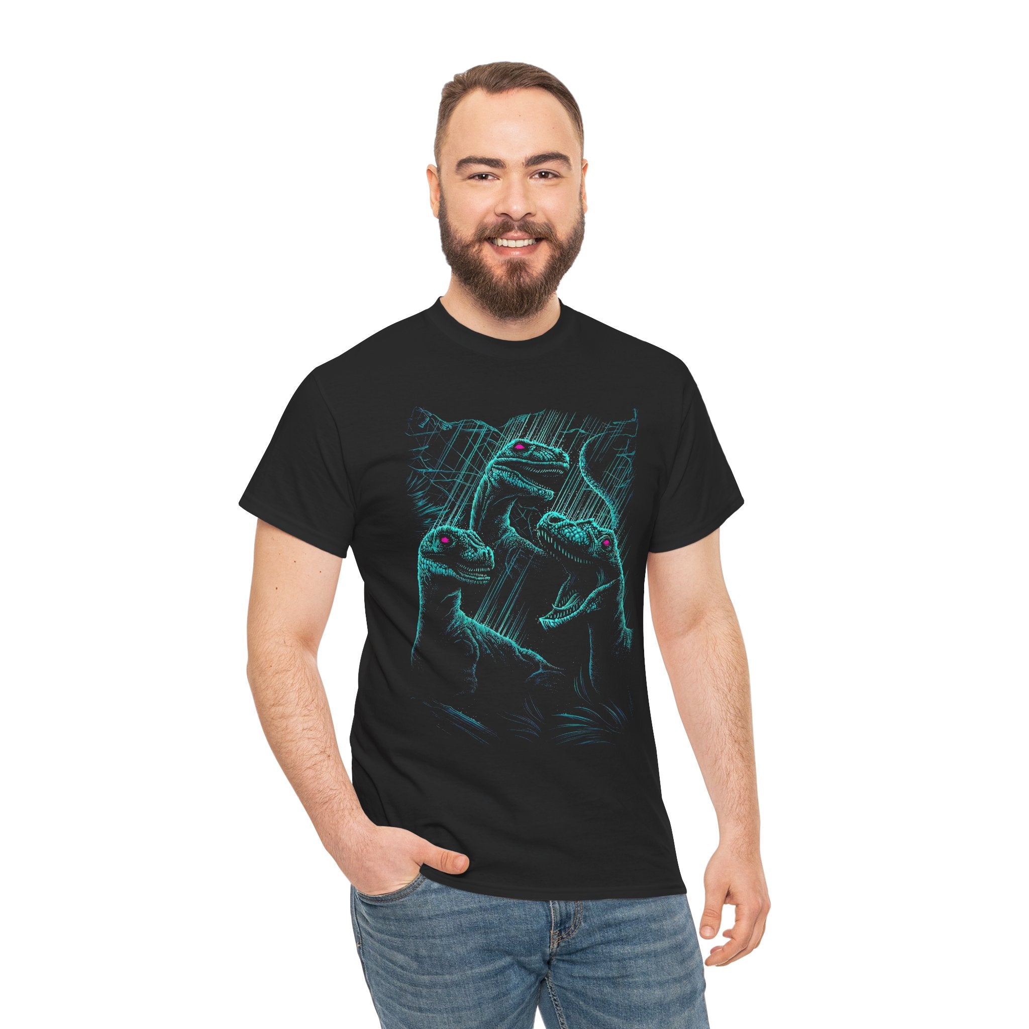 Step into the storm where giants once ruled — the Prehistoric Thunder Heavy Cotton Tee captures the fierce energy of the ancient world reborn in neon.