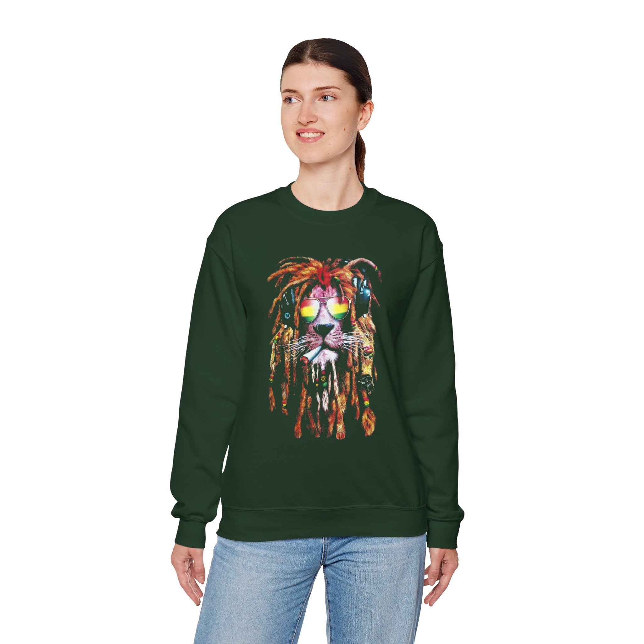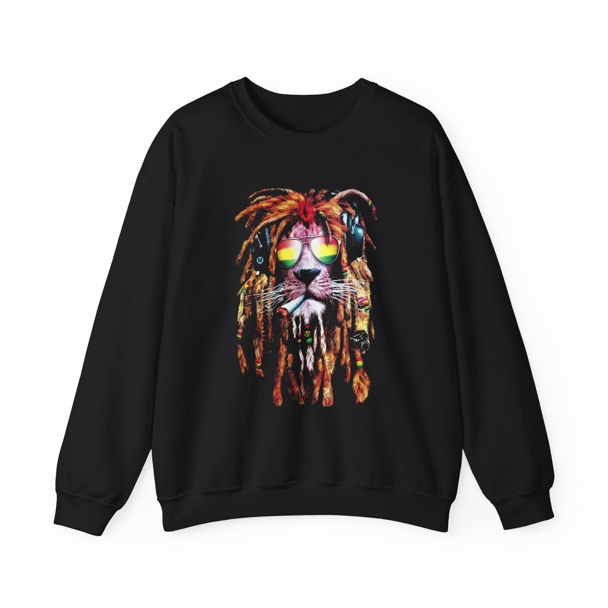 With its radiant lion artwork β dreadlocks, mirrored sunglasses, and headphones pulsing with reggae spirit β this sweatshirt is for those who lead with vibe, not volume.