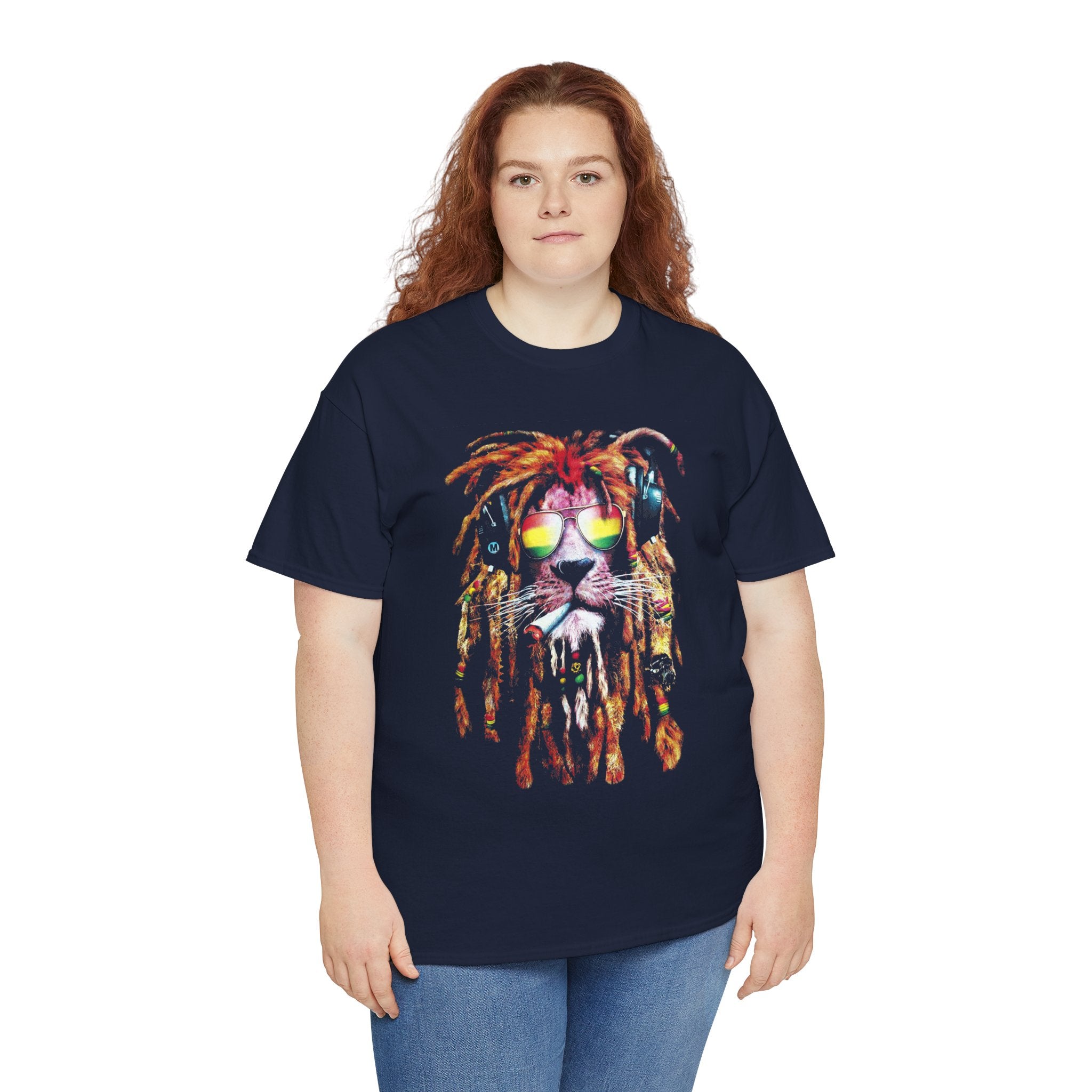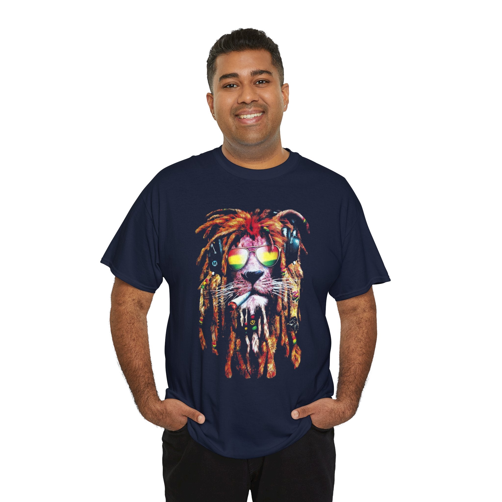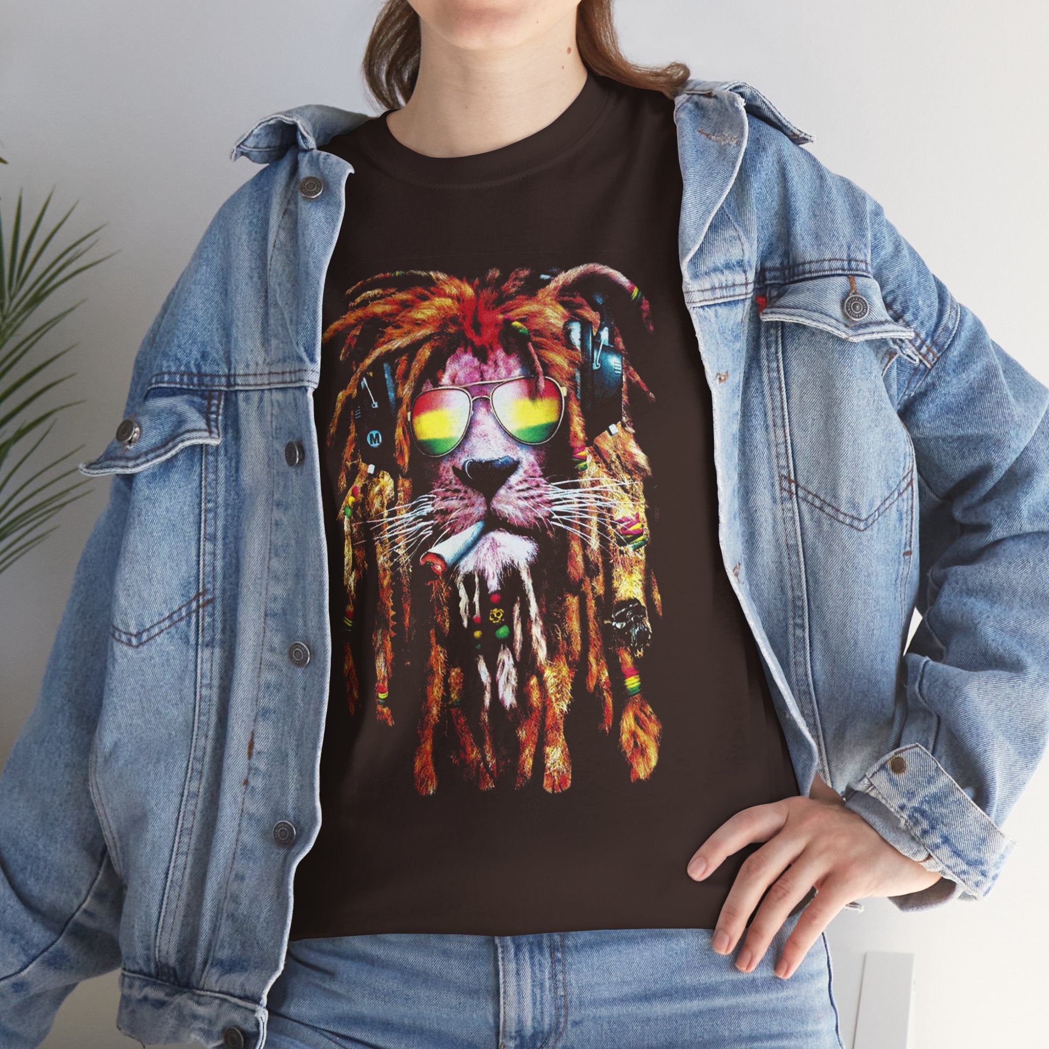 This unique artwork features a majestic lion wearing dreadlocks, shades, and headphones, symbolizing freedom, confidence, and good vibes.