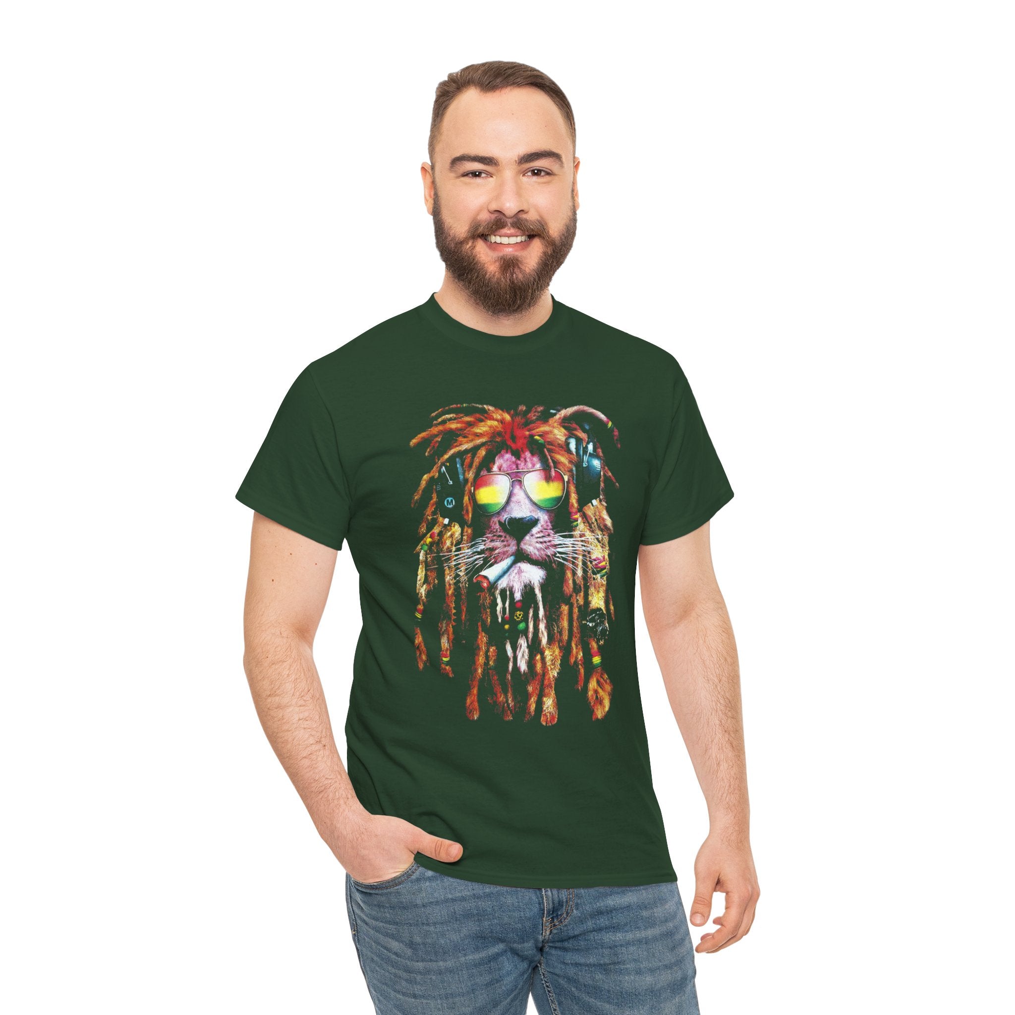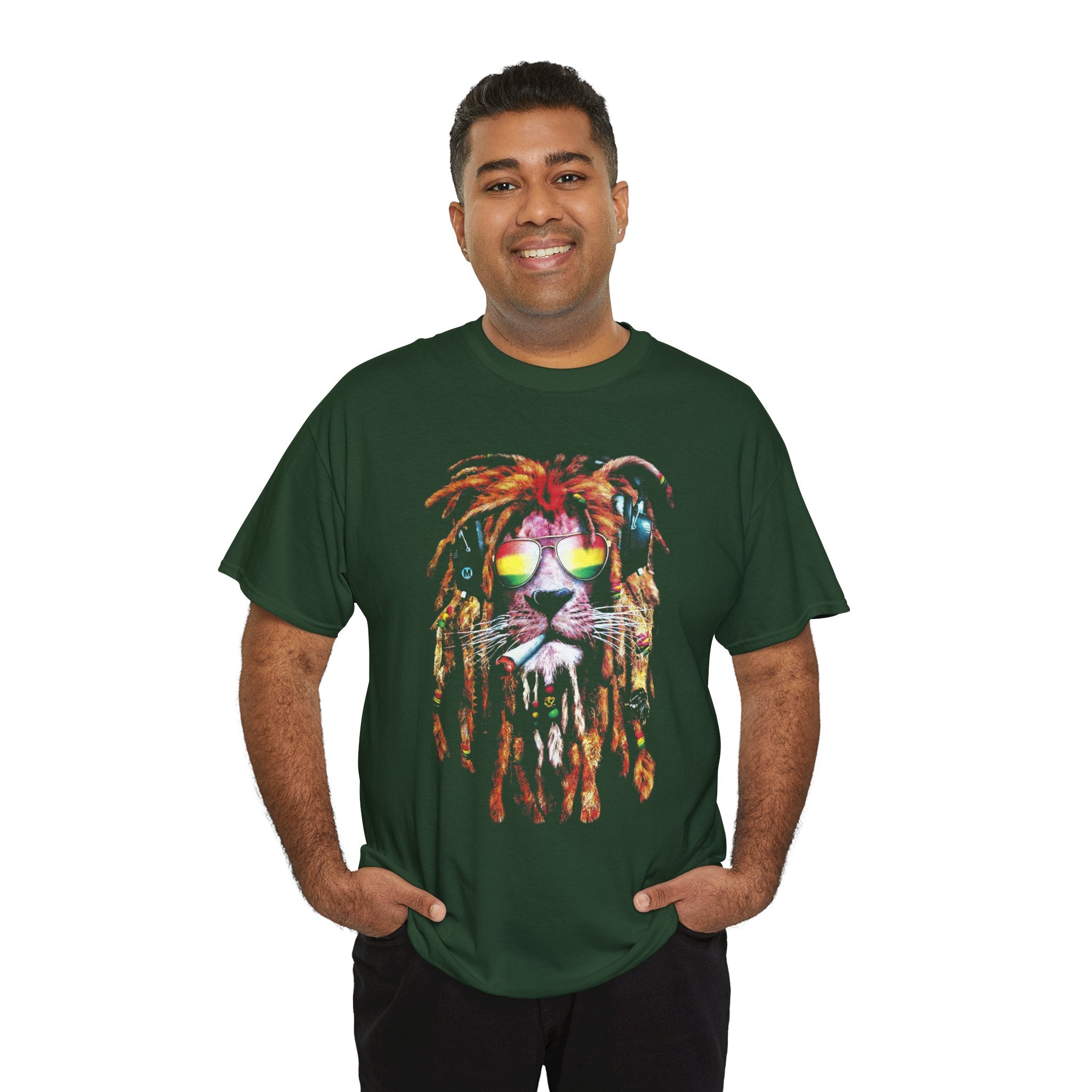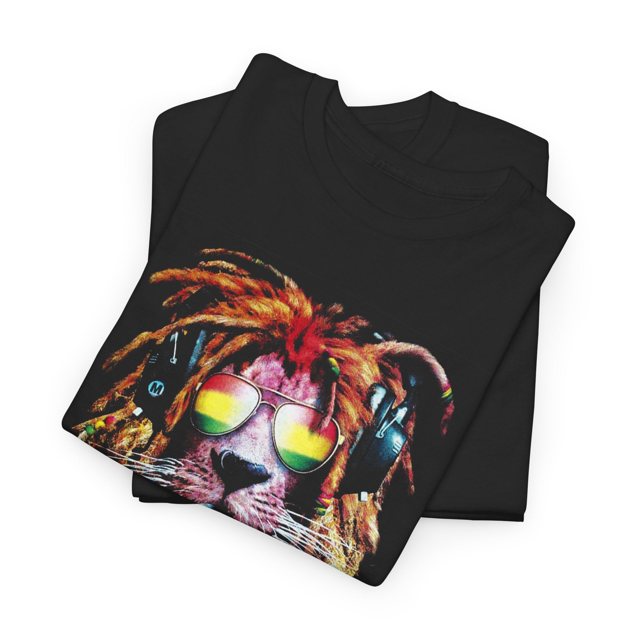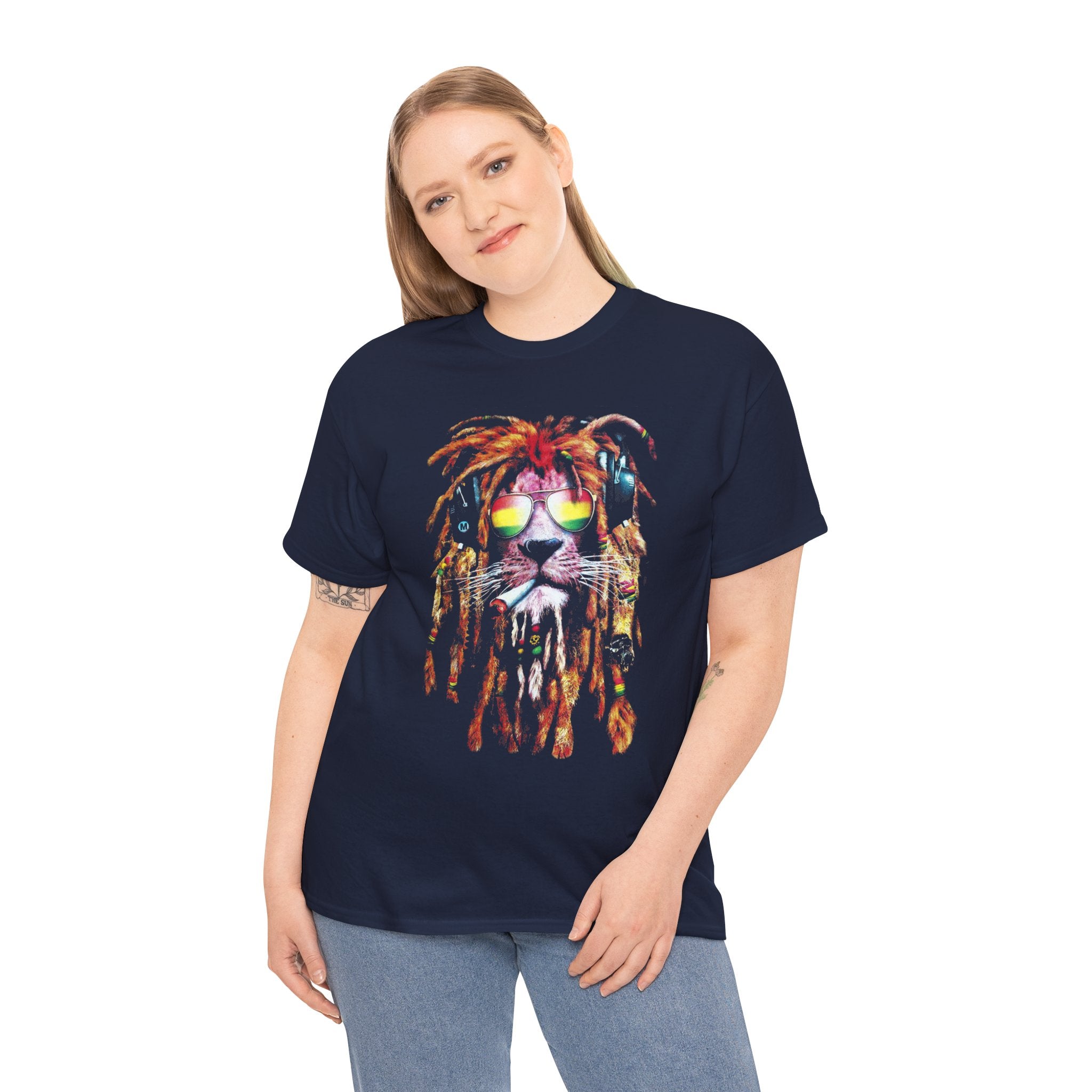 This unique artwork features a majestic lion wearing dreadlocks, shades, and headphones, symbolizing freedom, confidence, and good vibes.